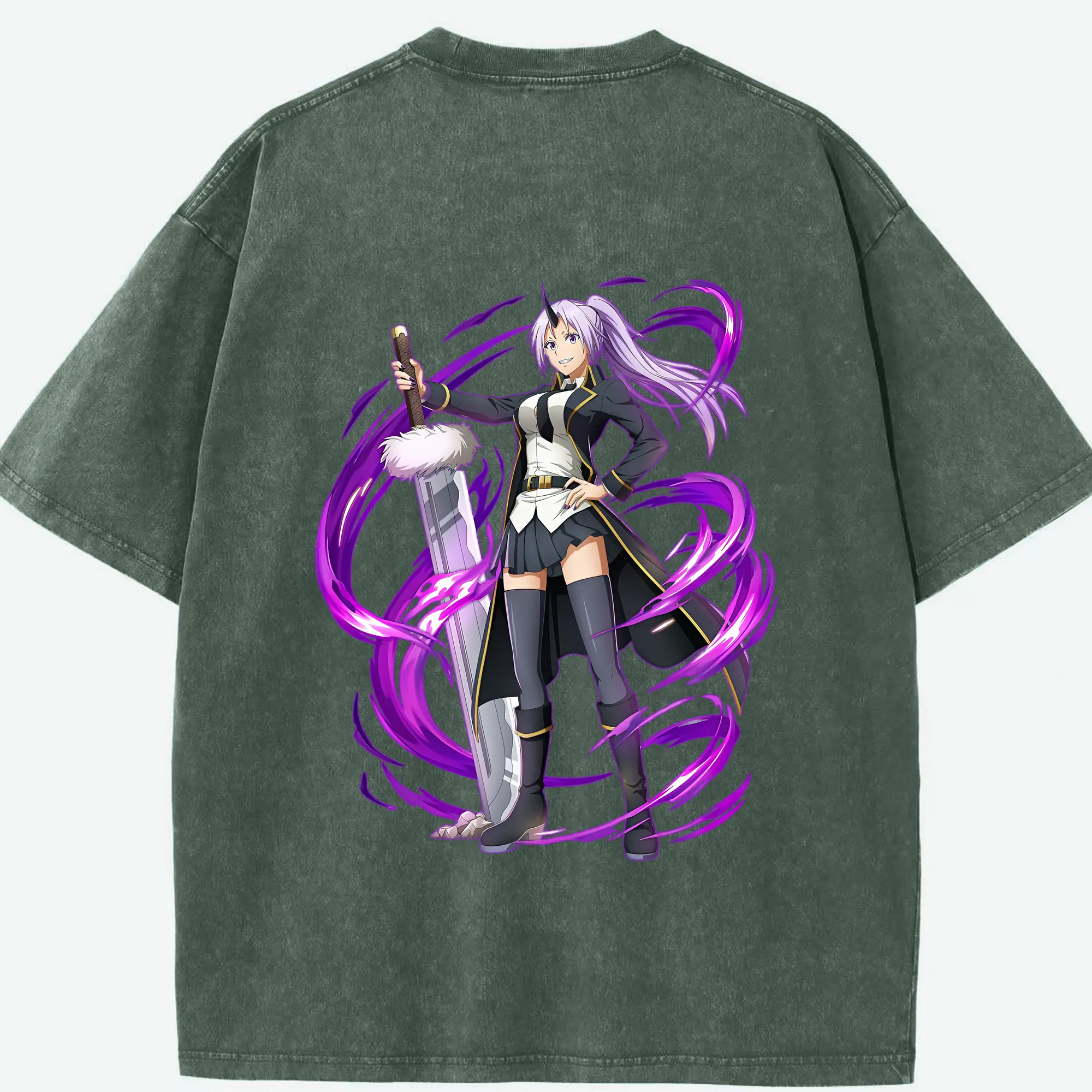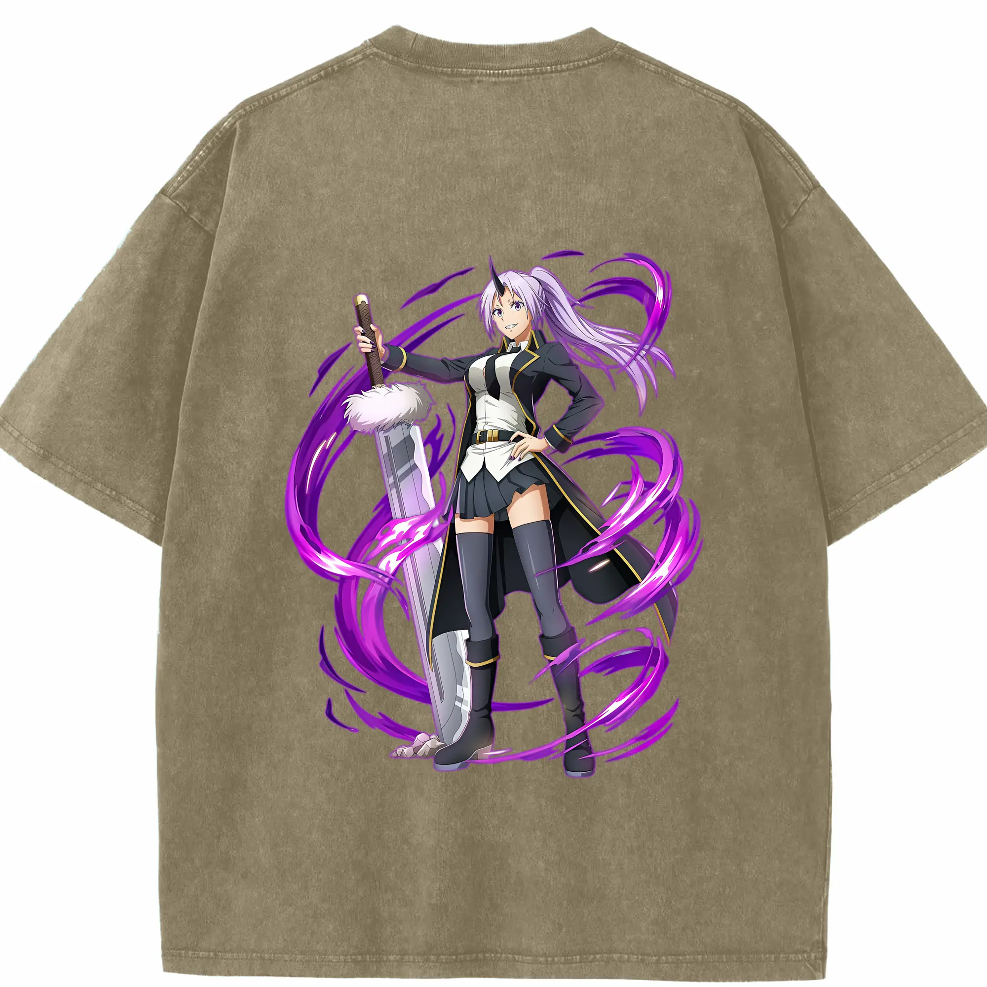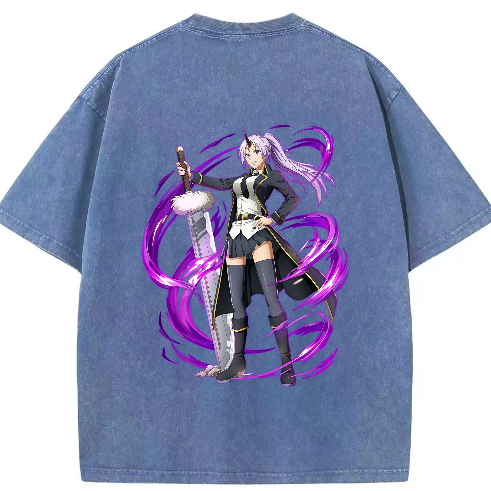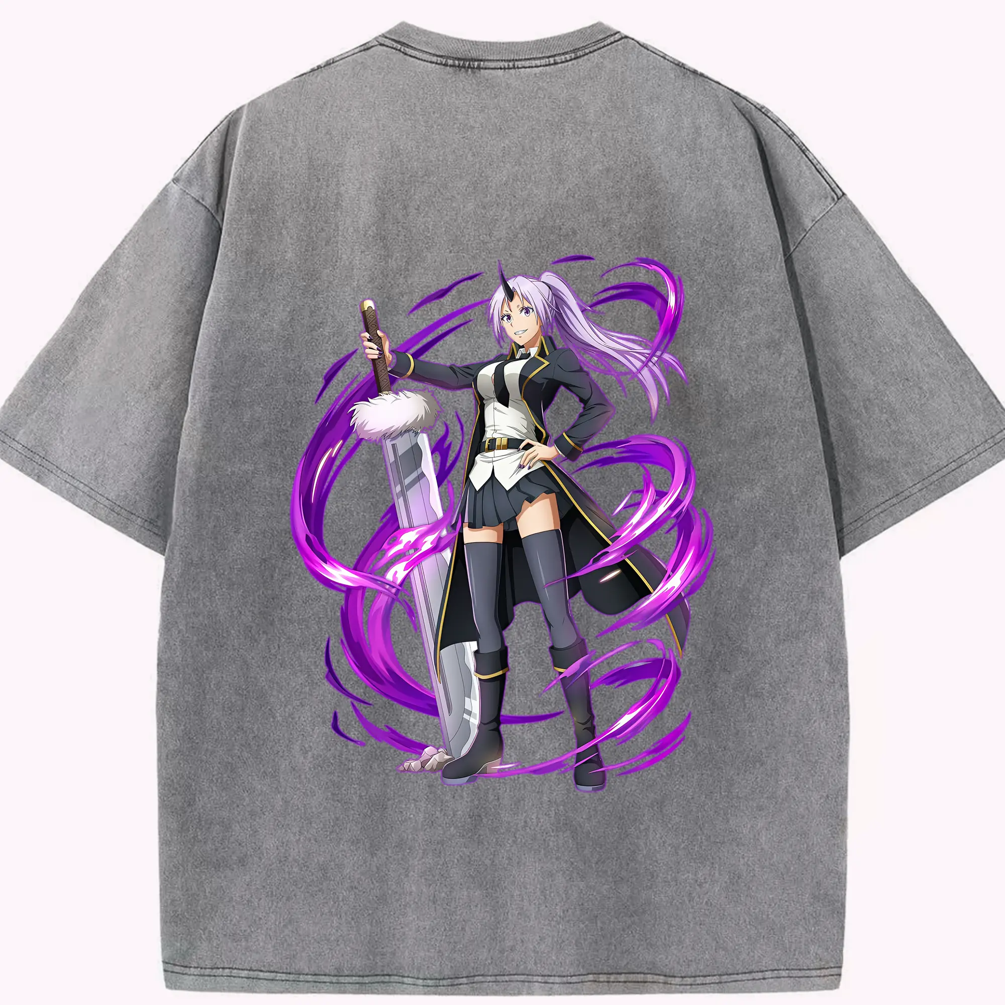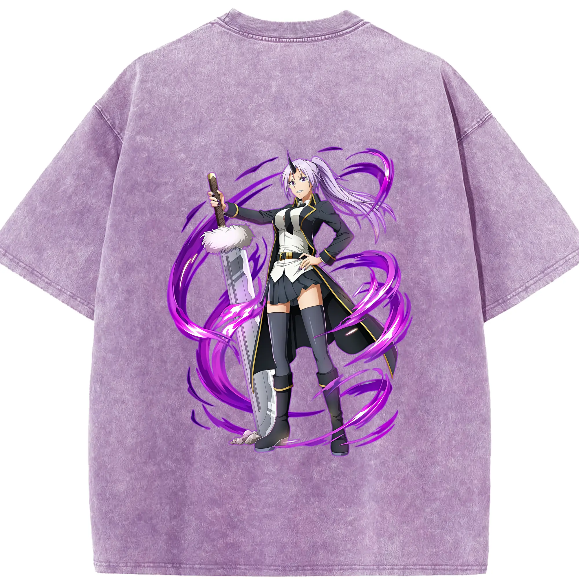 転生したらスライムだった件 グッズ,シオン - 綿100% ヴィンテージ風 半袖Tシャツ ・ フロントプリント ・ 柔らか肌触り ・ 通気性 快適 ・ スポーツ カジュアル 外出用