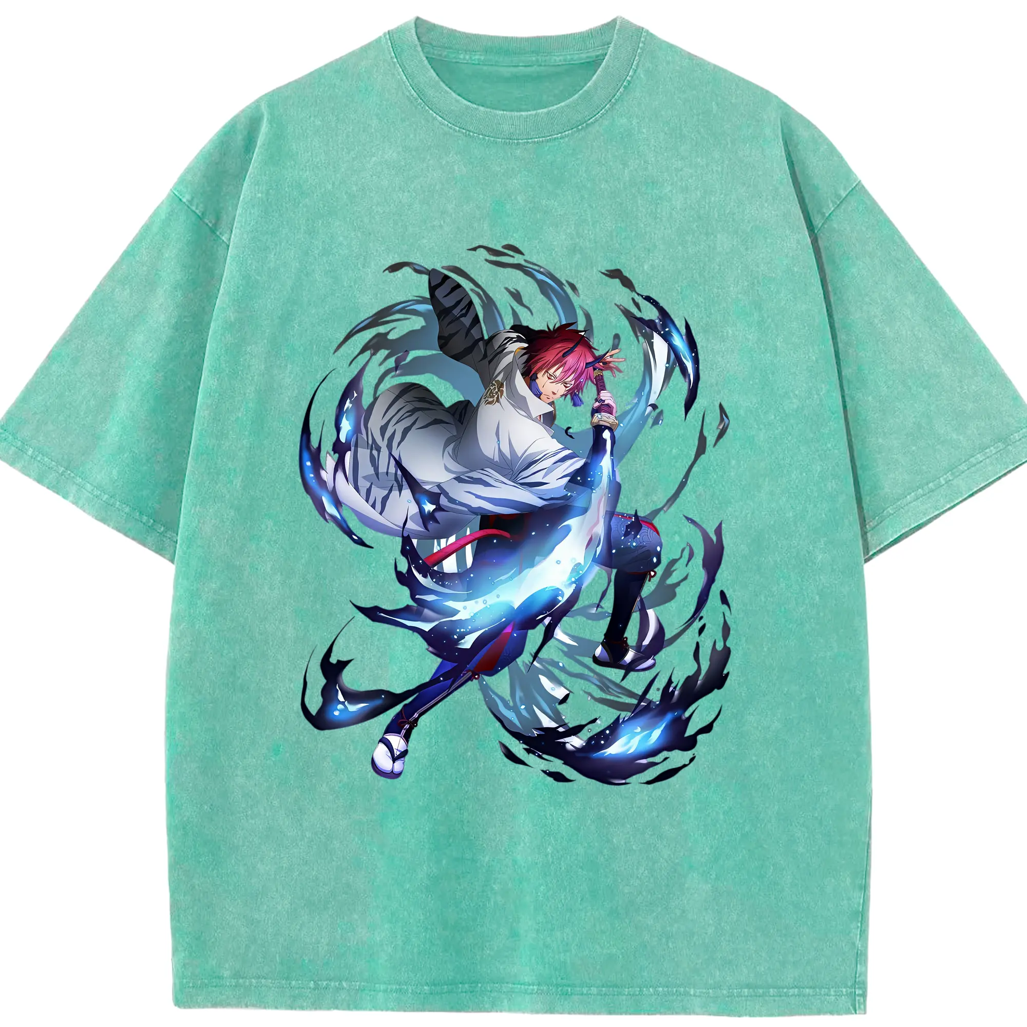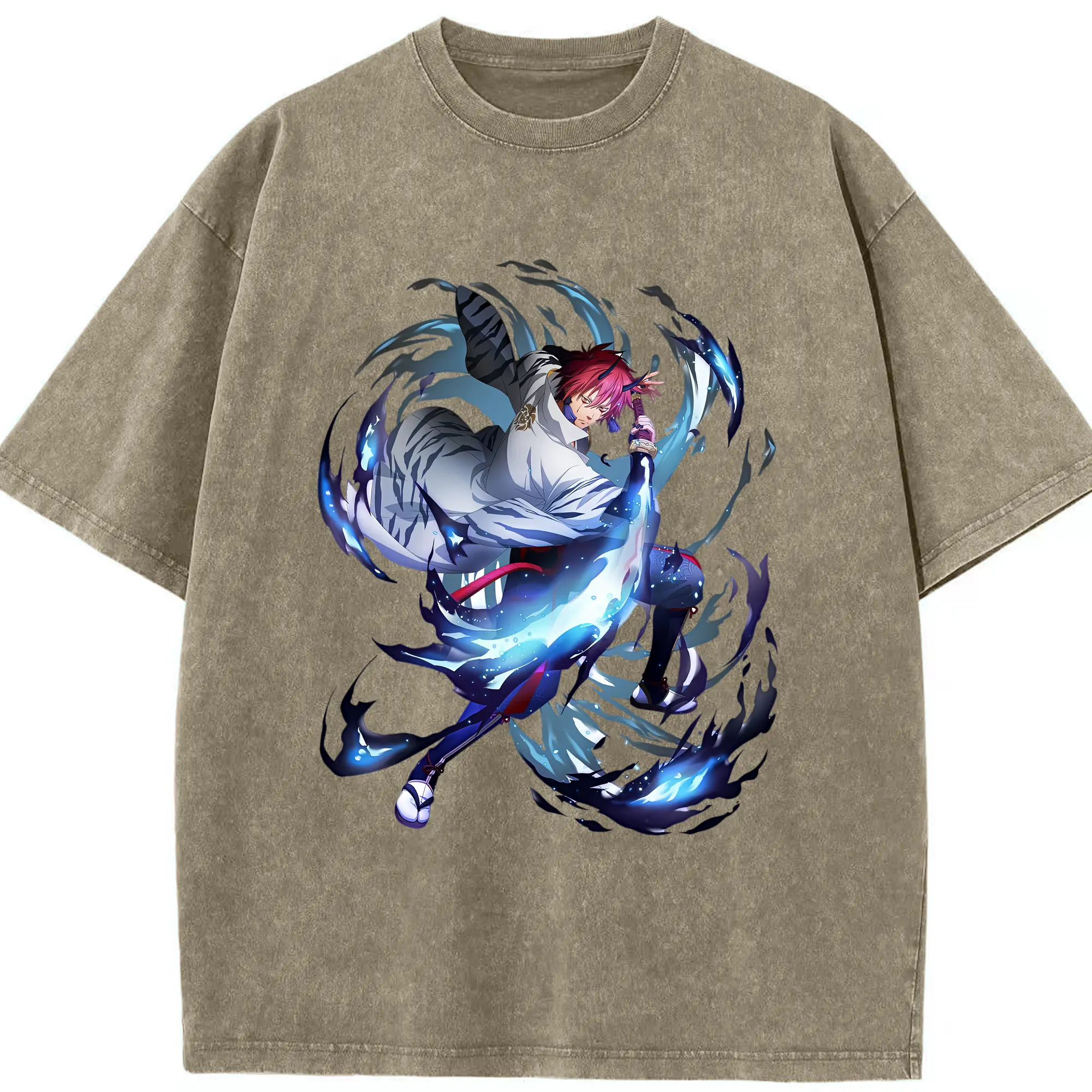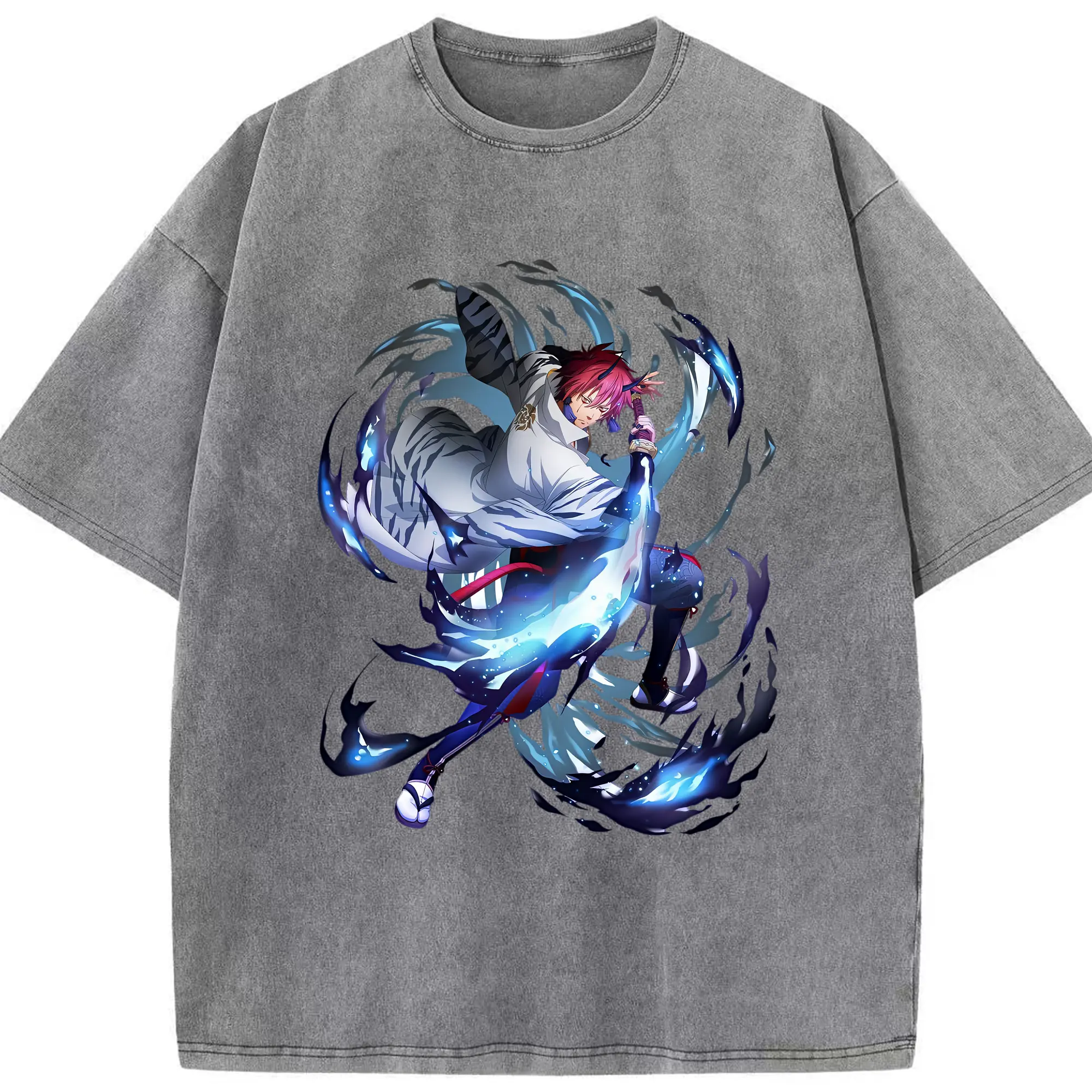 鬼滅の刃 グッズ,冨岡 義勇 - 綿100% ヴィンテージ風 半袖Tシャツ ・ フロントプリント ・ 柔らか肌触り ・ 通気性 快適 ・ スポーツ カジュアル 外出用