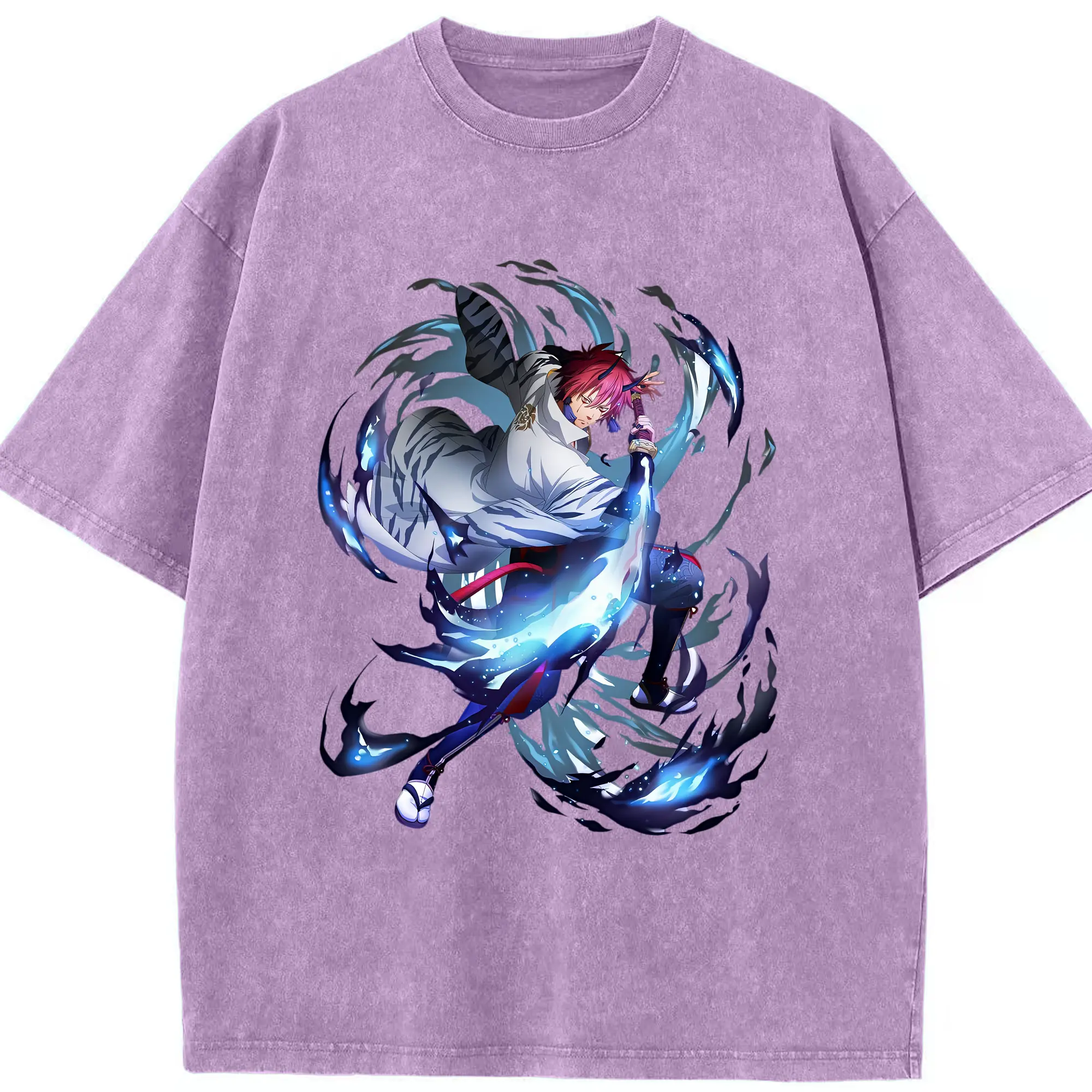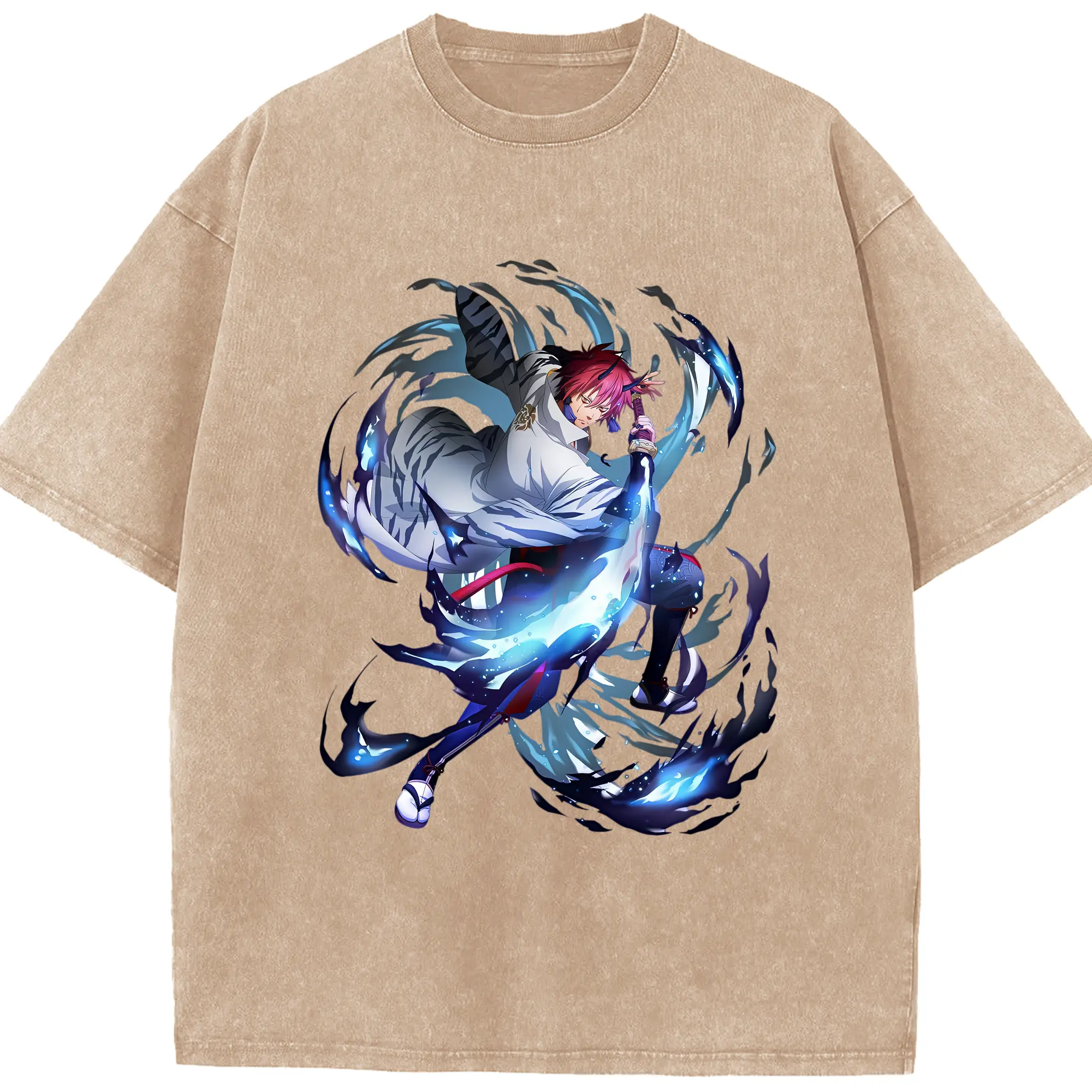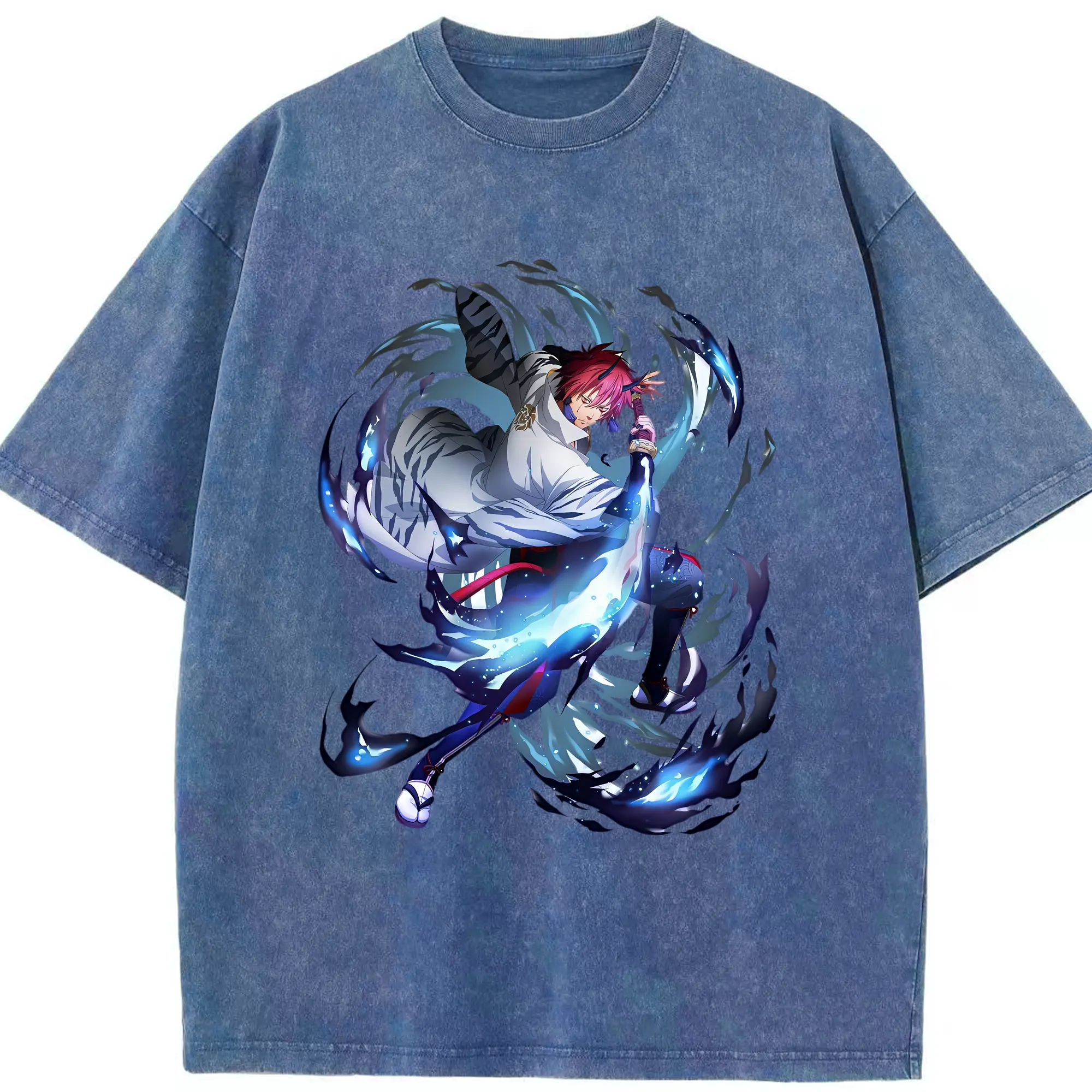 鬼滅の刃 グッズ,冨岡 義勇 - 綿100% ヴィンテージ風 半袖Tシャツ ・ フロントプリント ・ 柔らか肌触り ・ 通気性 快適 ・ スポーツ カジュアル 外出用