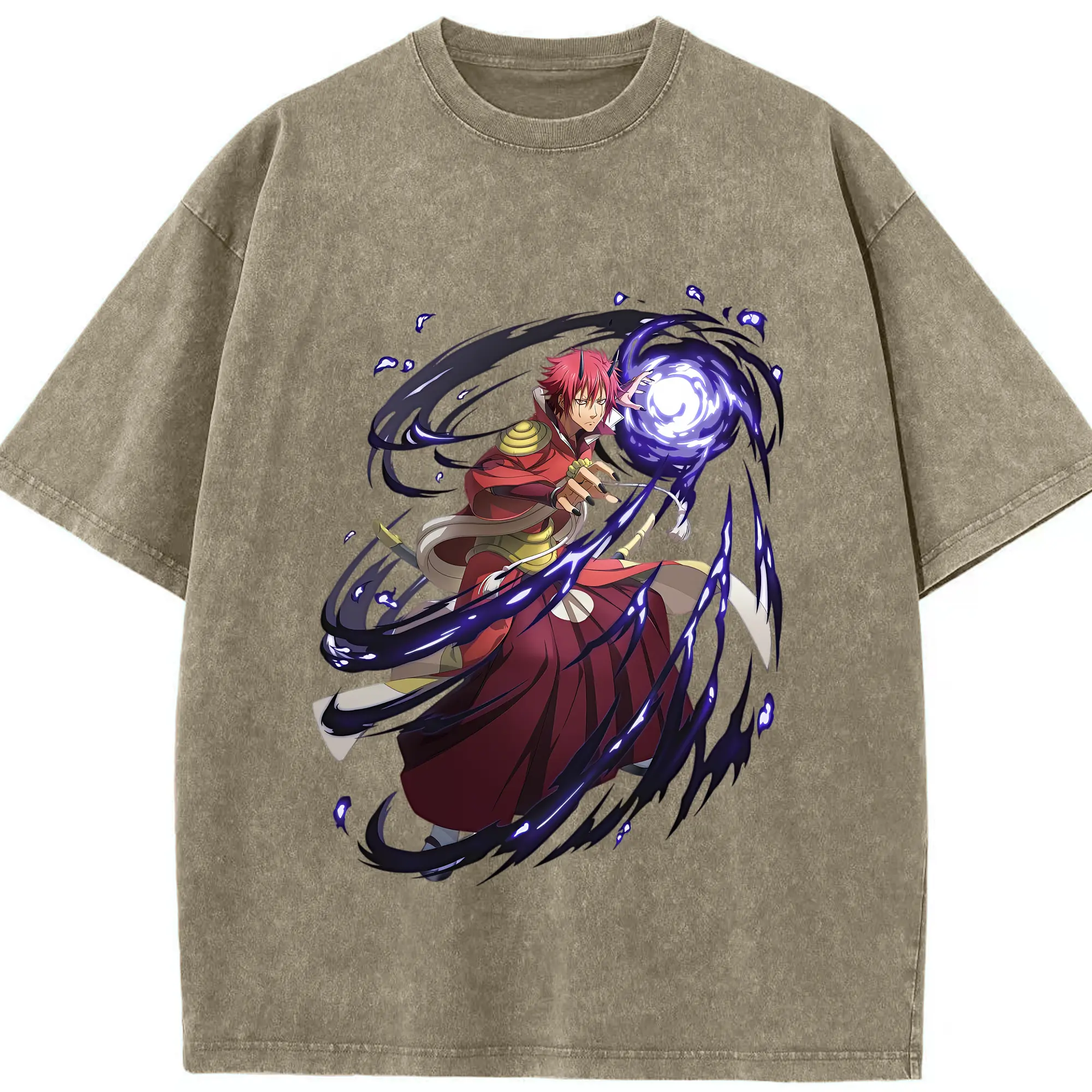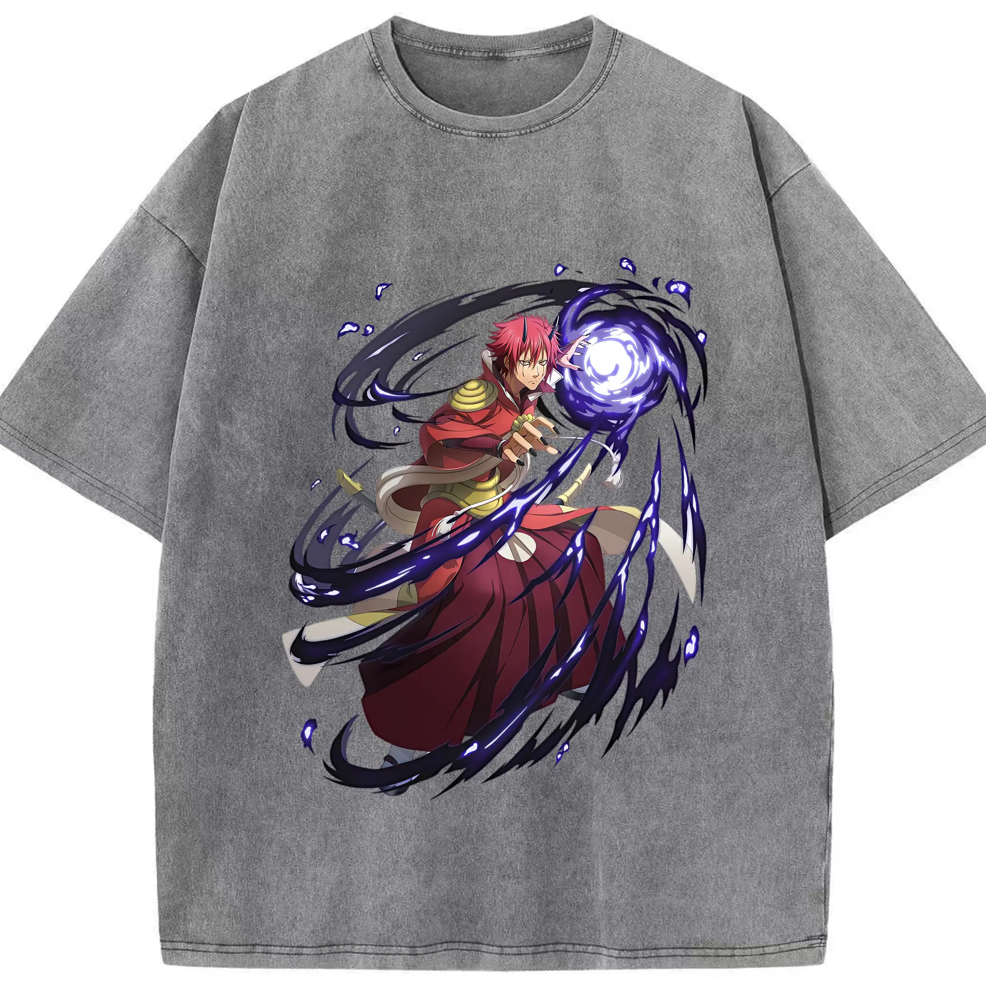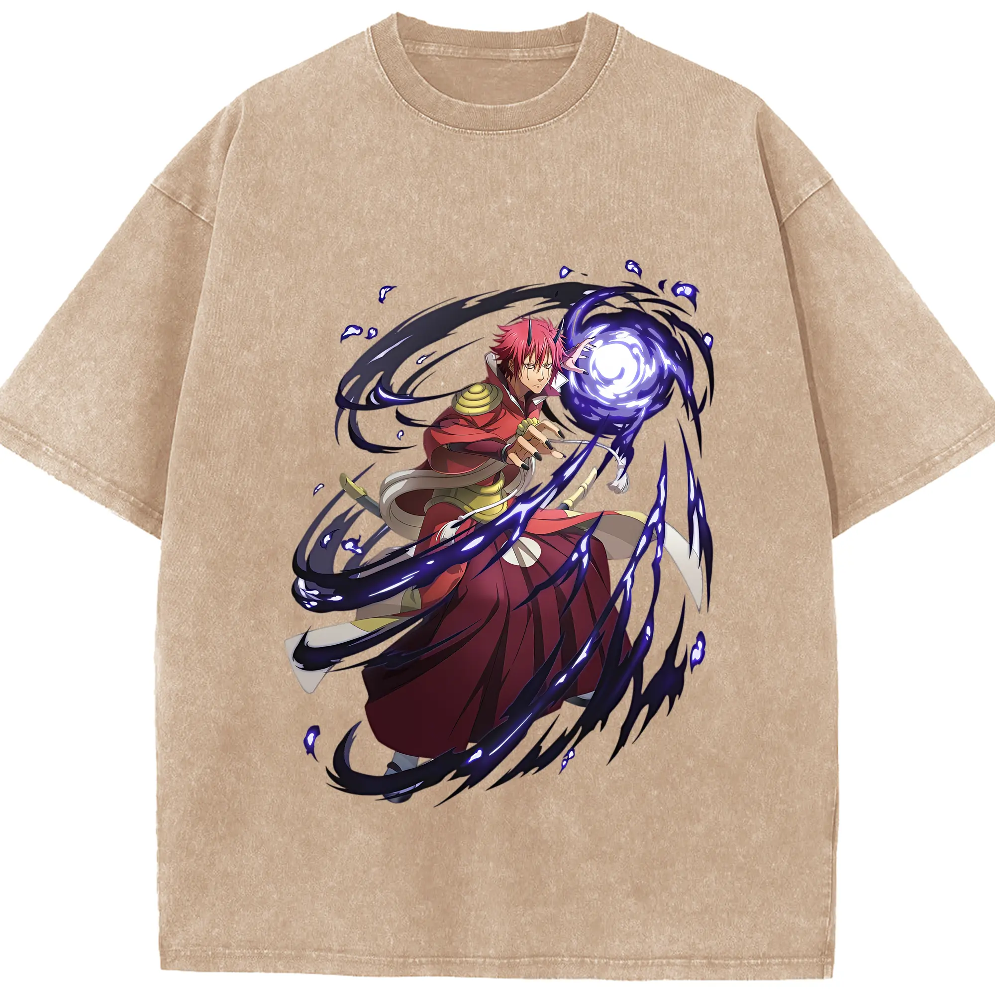 転生したらスライムだった件 グッズ,ベニマル - 綿100% ヴィンテージ風 半袖Tシャツ ・ 背面プリント ・ 柔らか肌触り ・ 通気性 快適 ・ スポーツ カジュアル 外出用