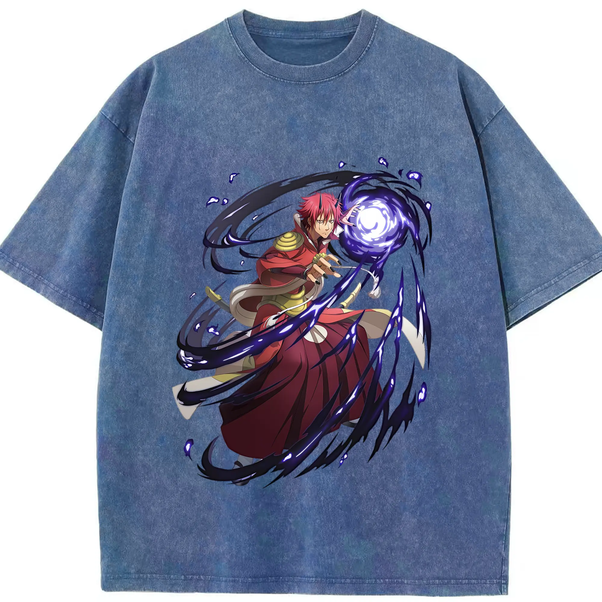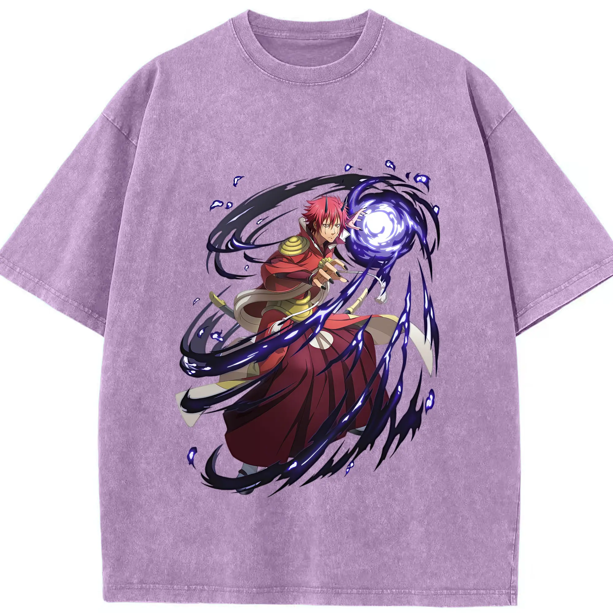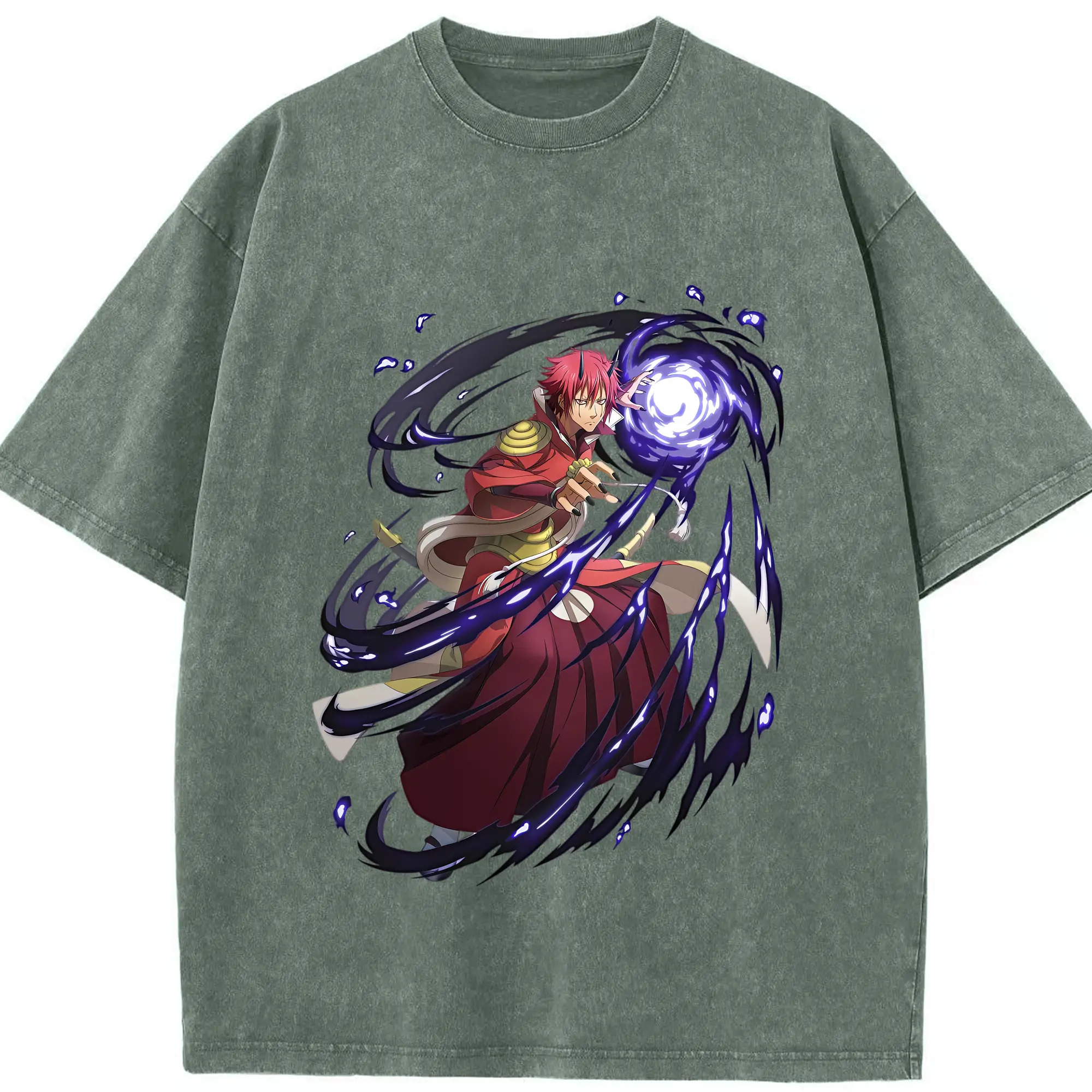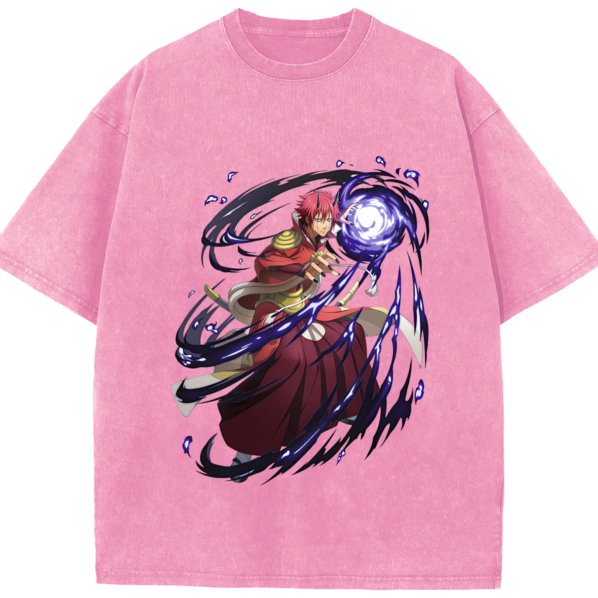 転生したらスライムだった件 グッズ,ベニマル - 綿100% ヴィンテージ風 半袖Tシャツ ・ 背面プリント ・ 柔らか肌触り ・ 通気性 快適 ・ スポーツ カジュアル 外出用
