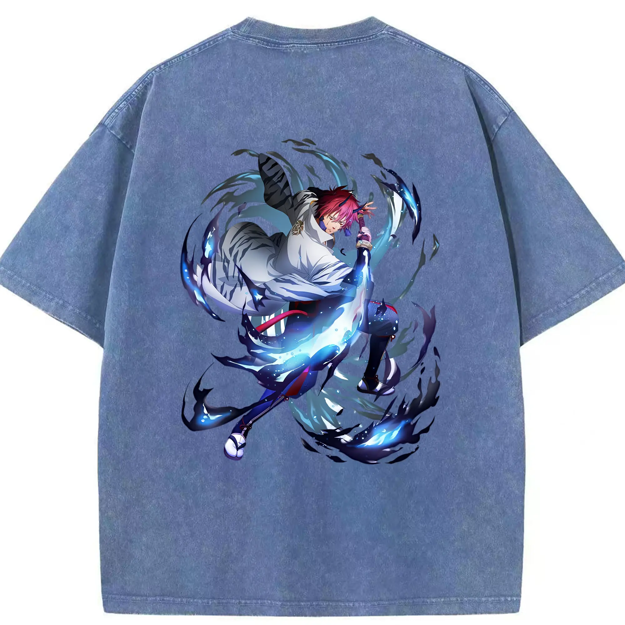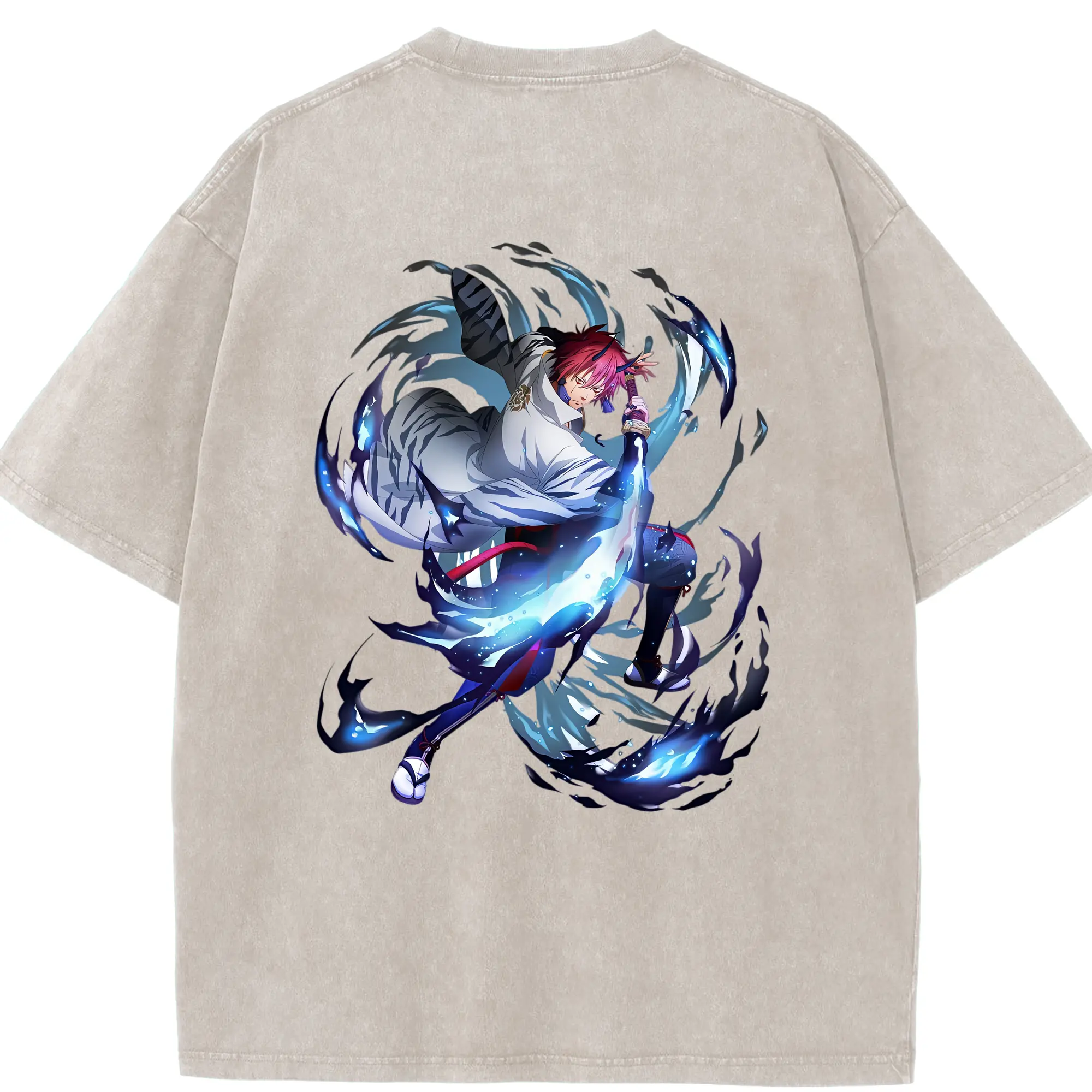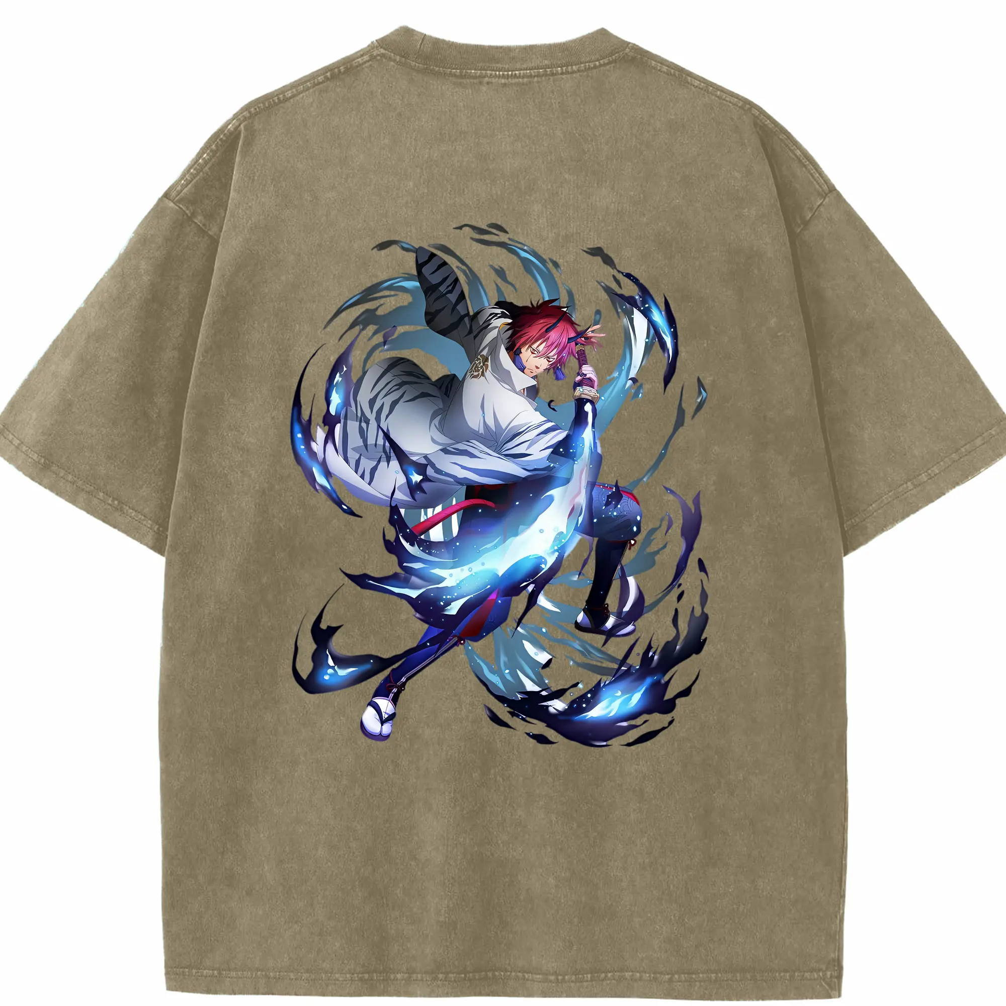 鳴潮 グッズ ヤンヤン - 綿100% ヴィンテージ風 半袖Tシャツ ・ 背面プリント ・ 柔らか肌触り ・ 通気性 快適 ・ スポーツ カジュアル 外出用