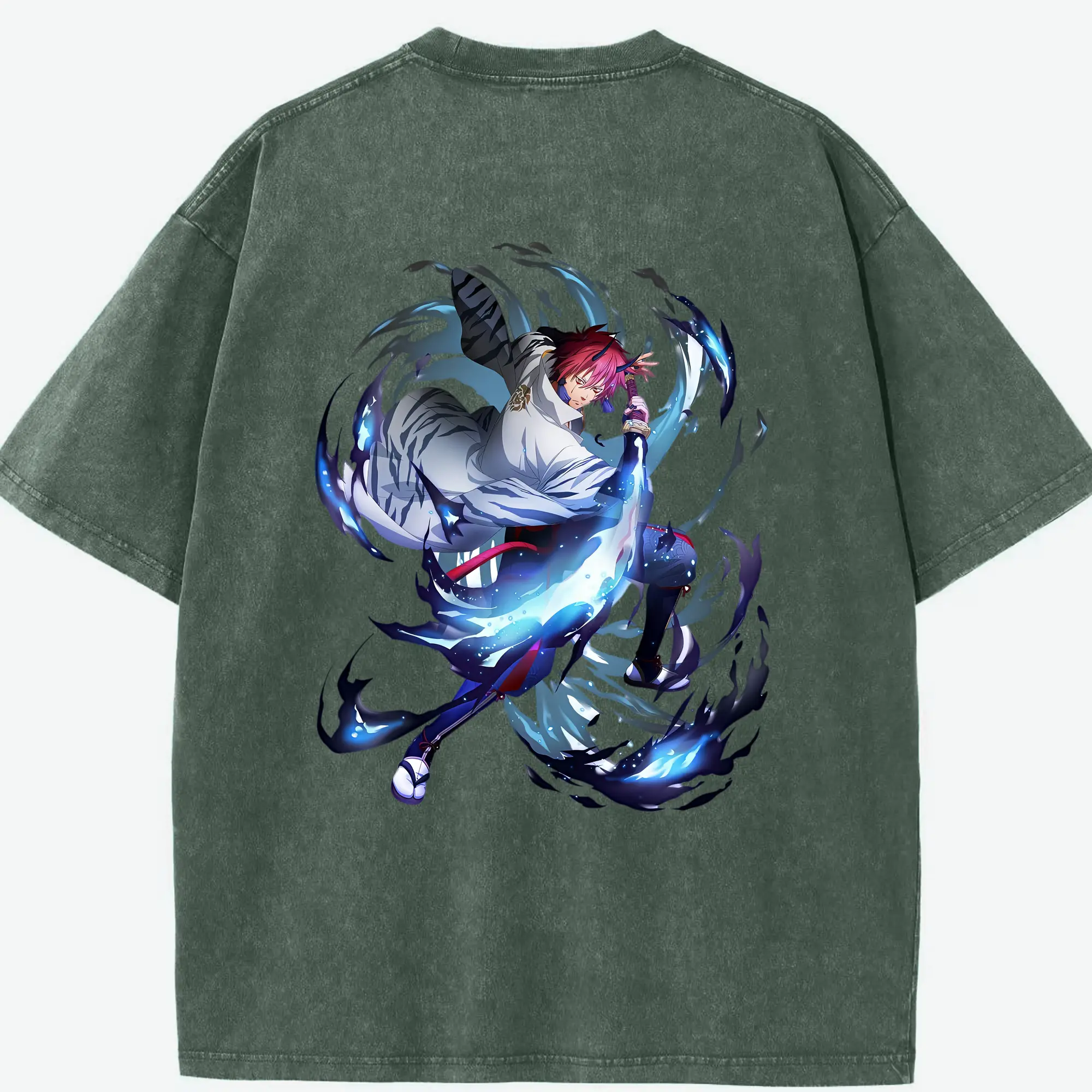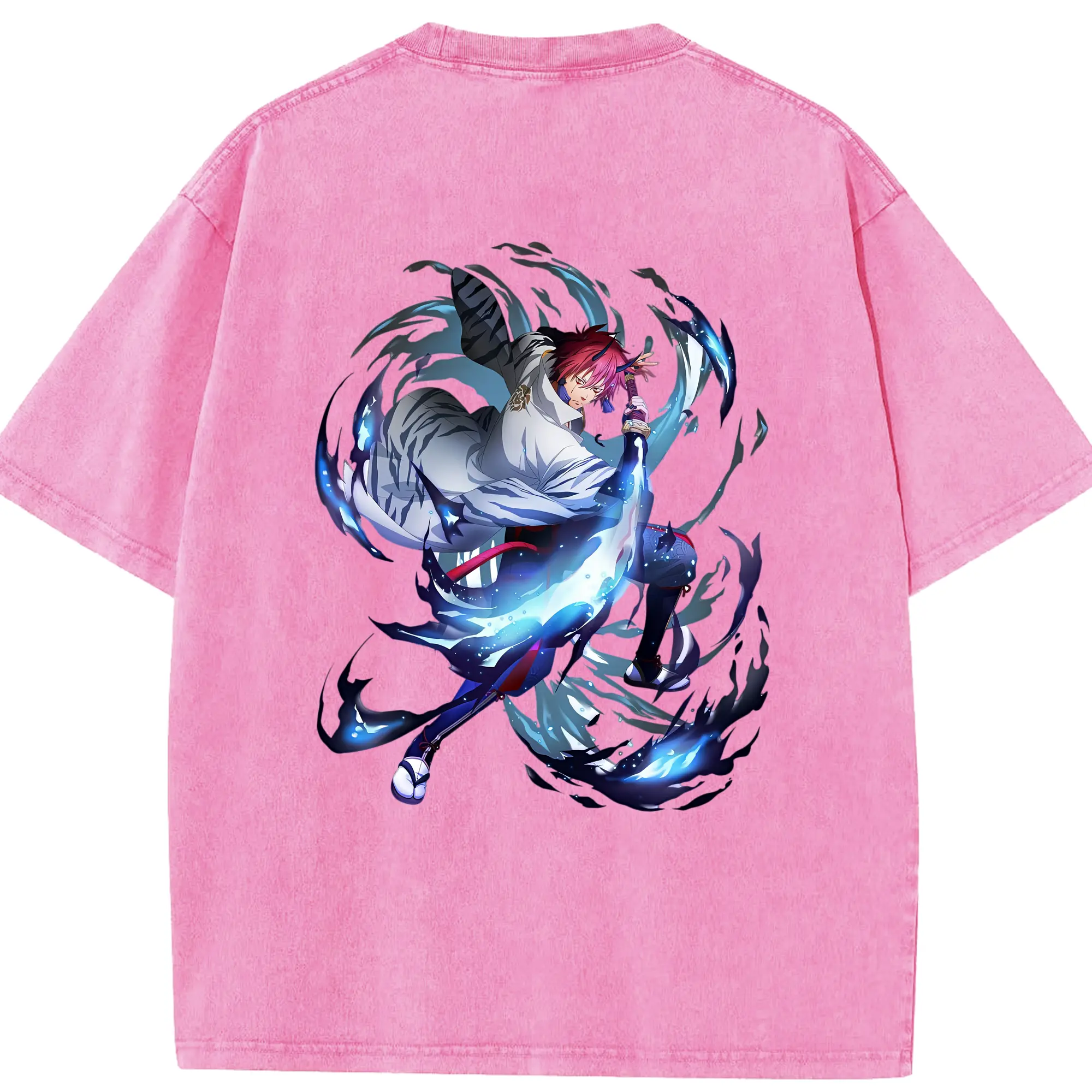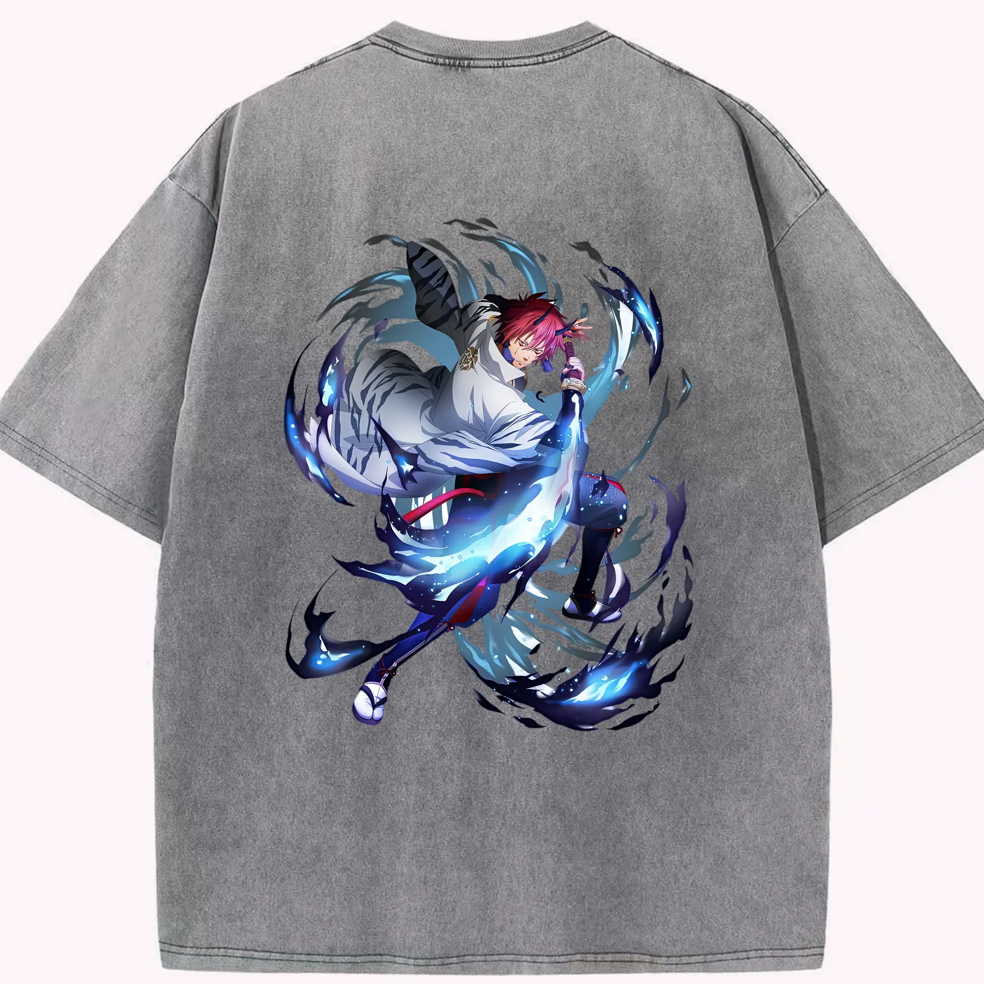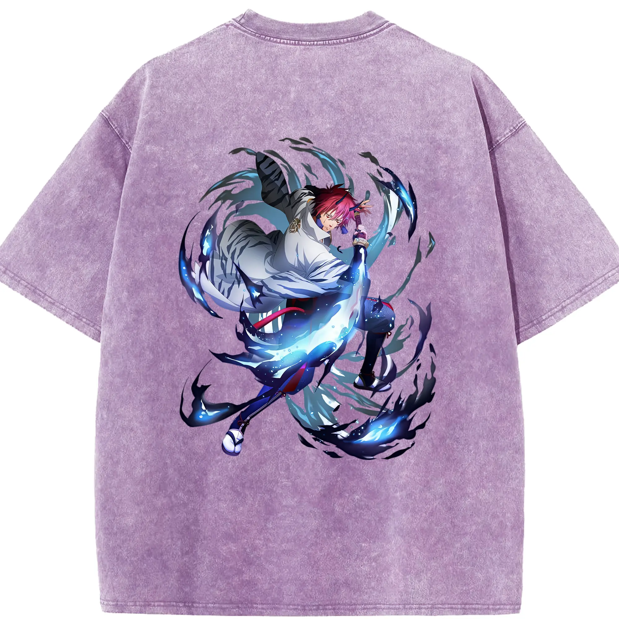 鳴潮 グッズ ヤンヤン - 綿100% ヴィンテージ風 半袖Tシャツ ・ 背面プリント ・ 柔らか肌触り ・ 通気性 快適 ・ スポーツ カジュアル 外出用