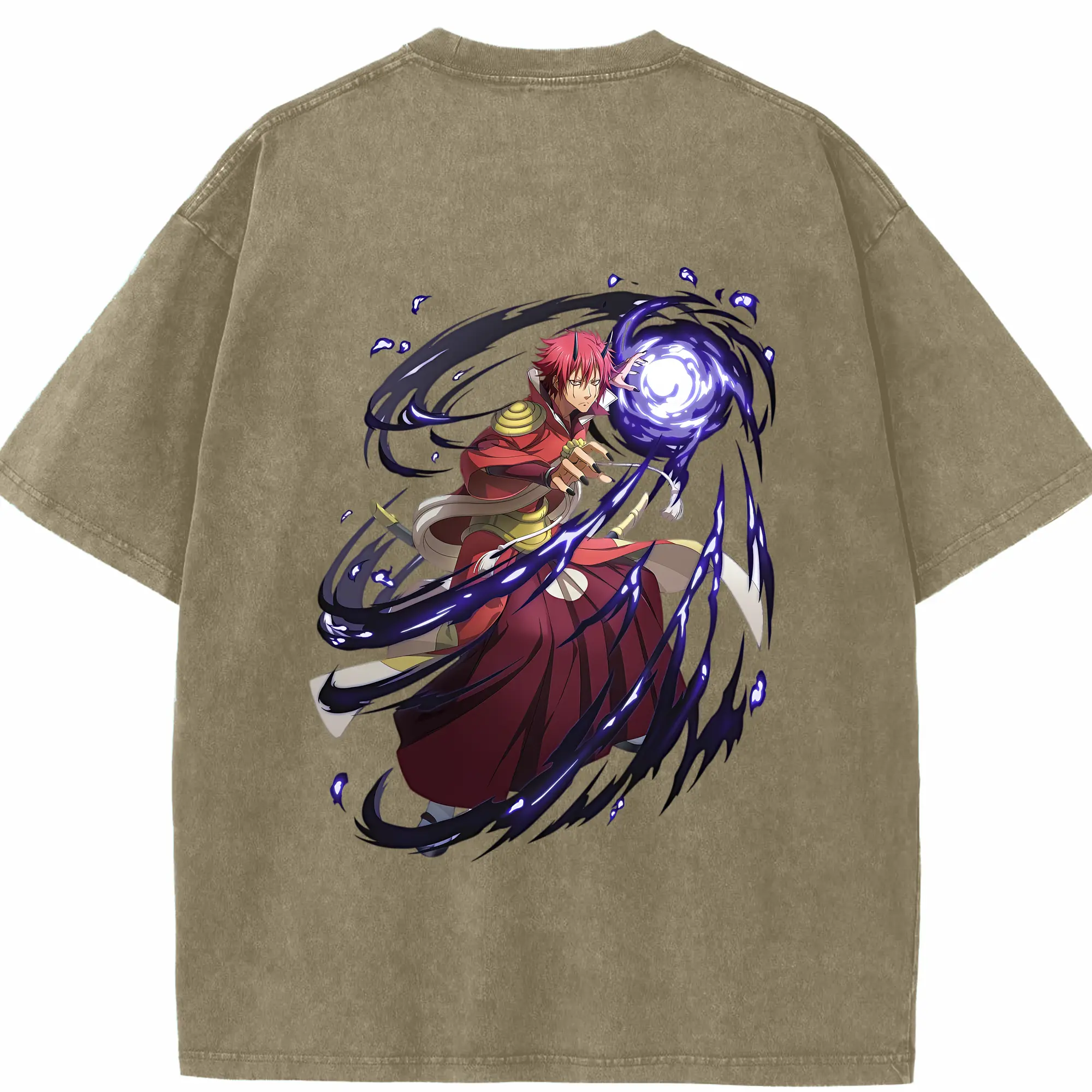 転生したらスライムだった件 グッズ,ベニマル - 綿100% ヴィンテージ風 半袖Tシャツ ・ フロントプリント ・ 柔らか肌触り ・ 通気性 快適 ・ スポーツ カジュアル 外出用