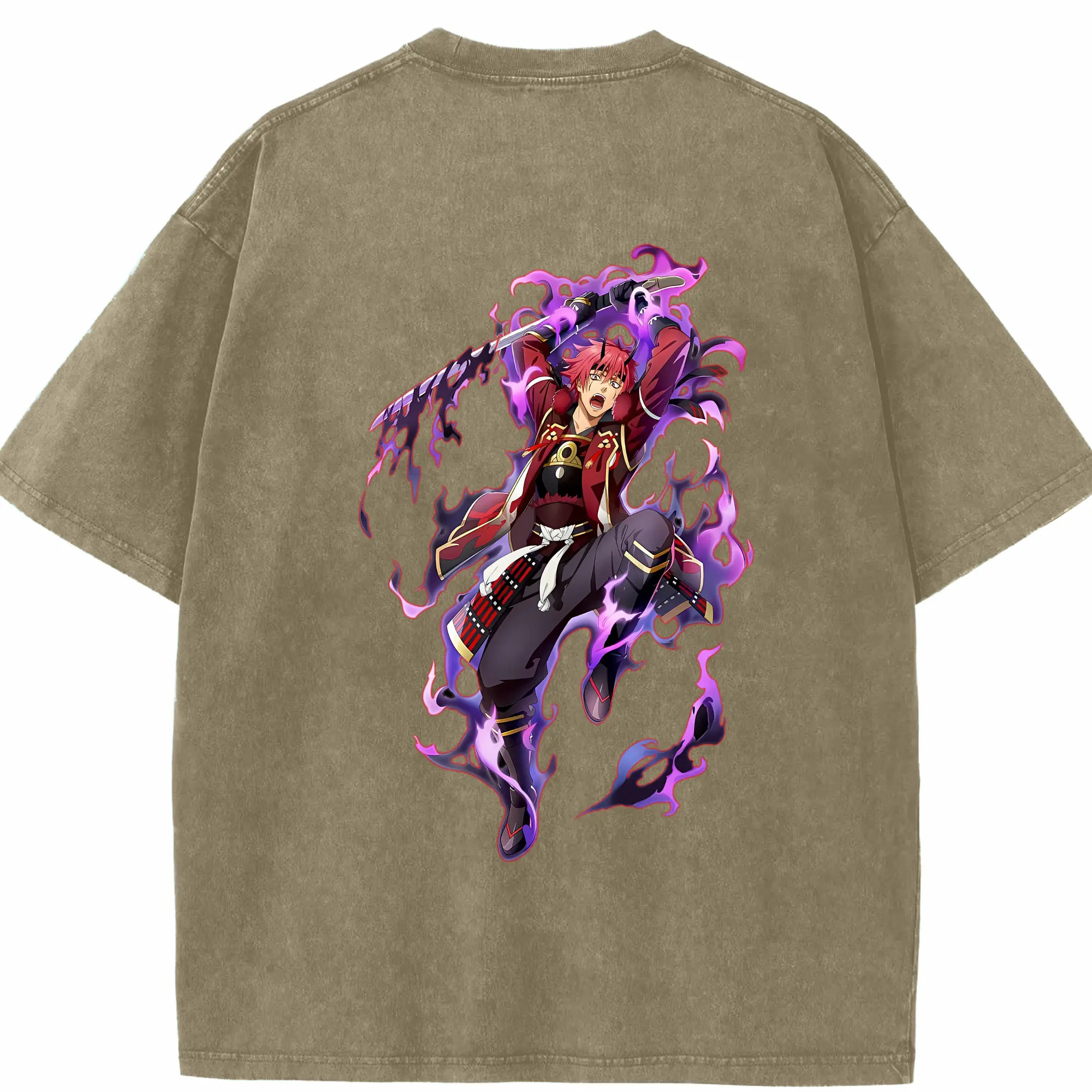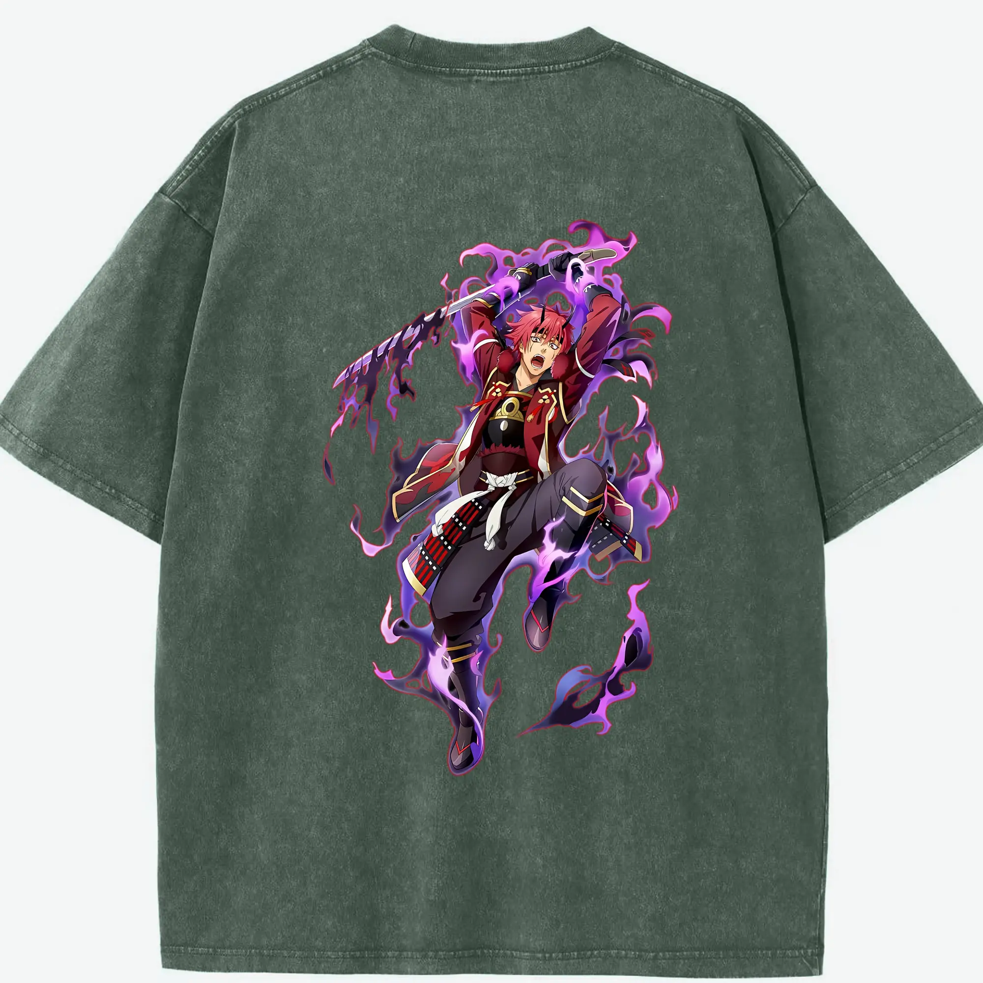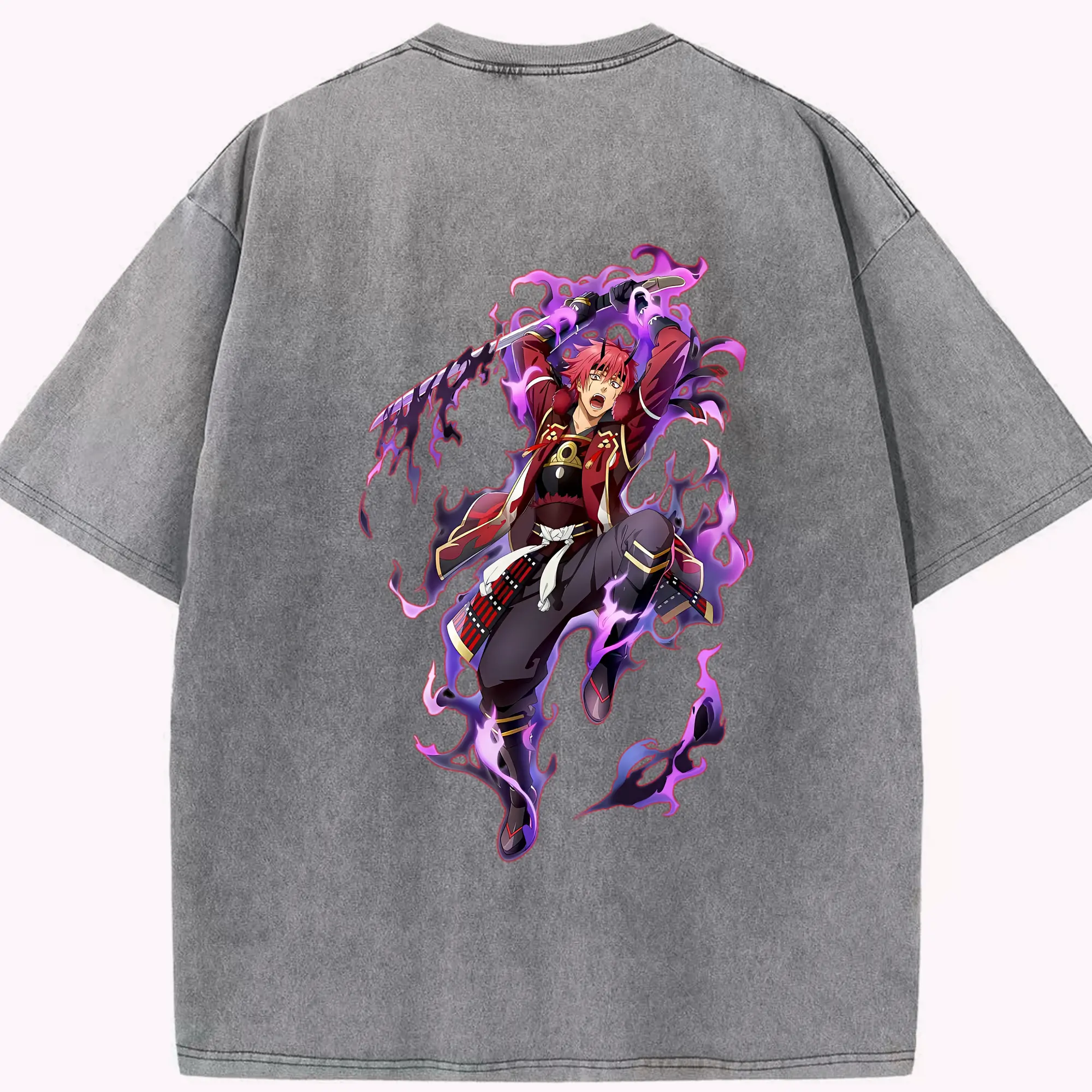 転生したらスライムだった件 グッズ,ベニマル - 綿100% ヴィンテージ風 半袖Tシャツ ・ フロントプリント ・ 柔らか肌触り ・ 通気性 快適 ・ スポーツ カジュアル 外出用
