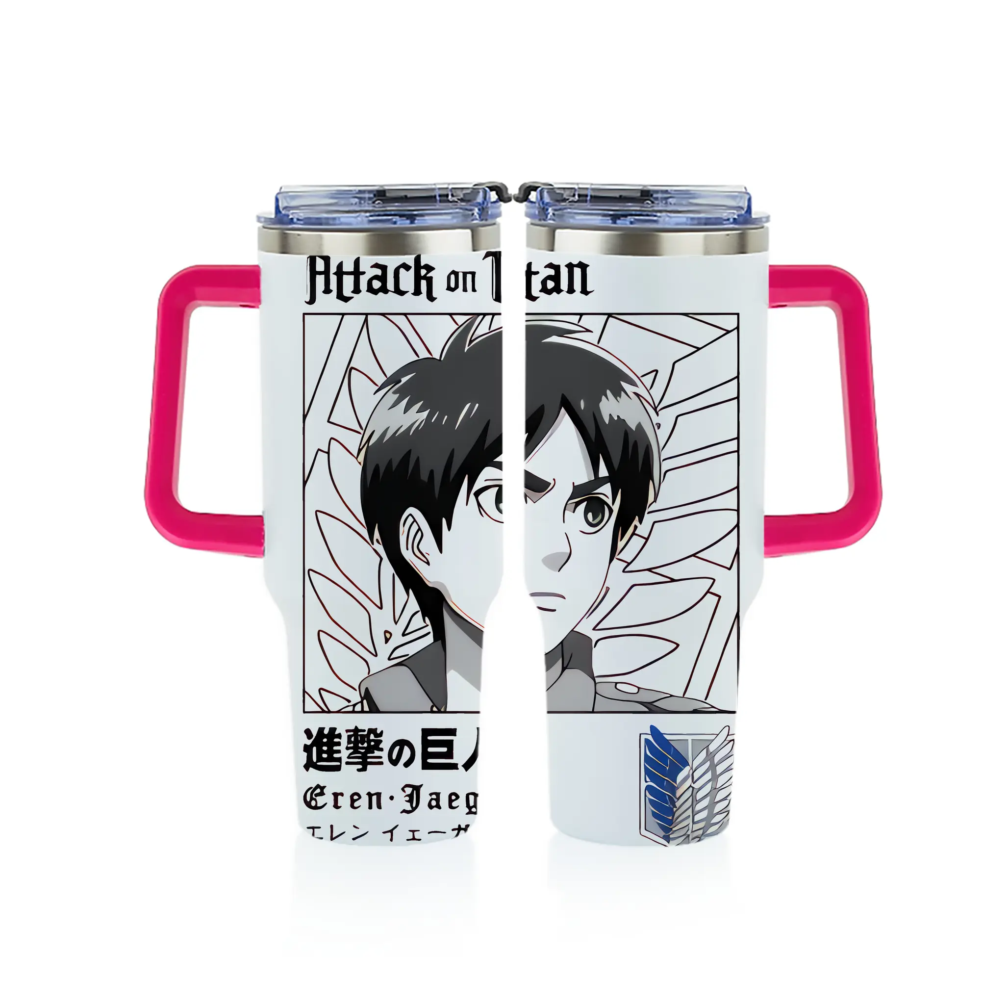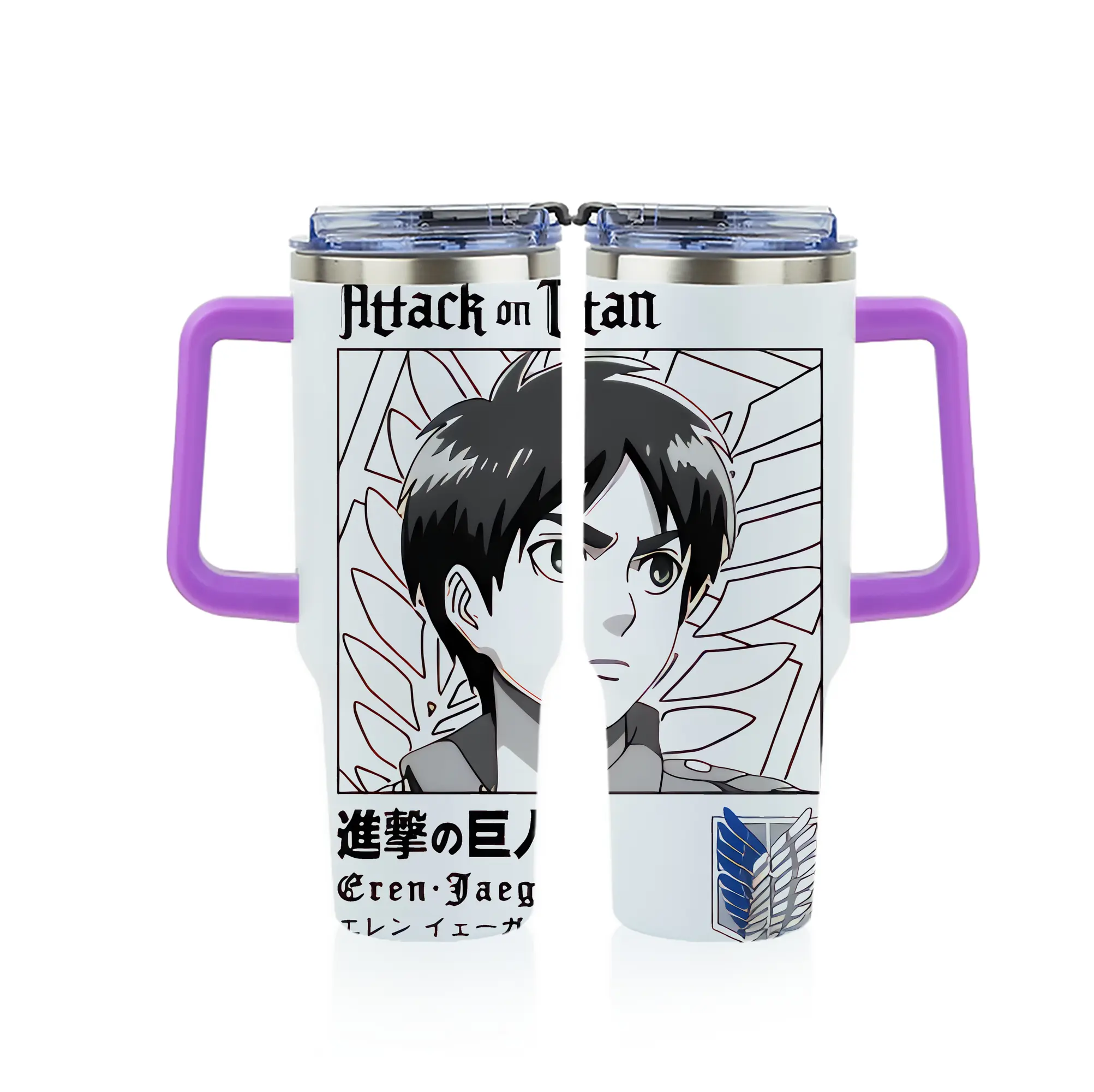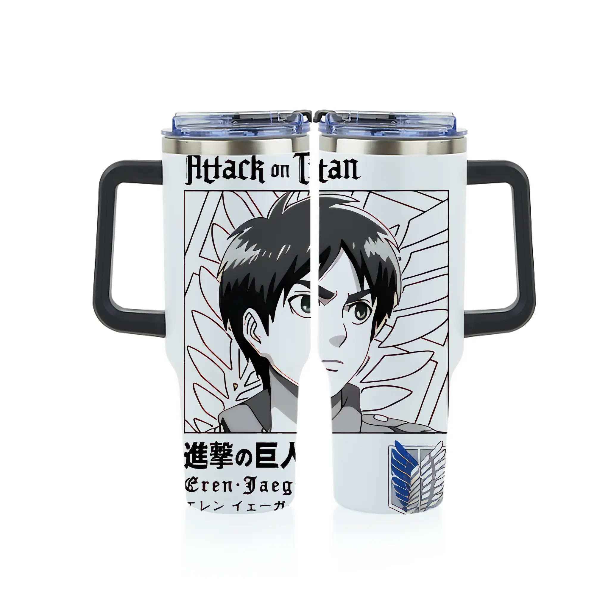進撃の巨人 グッズ エレン・イェーガー - 1200mL フルプリント車用タンブラー ・ 304ステンレス 内側 ・ 201ステンレス 外側 ・ 保温 保冷 ・ 通勤 ドライブ アウトドア用