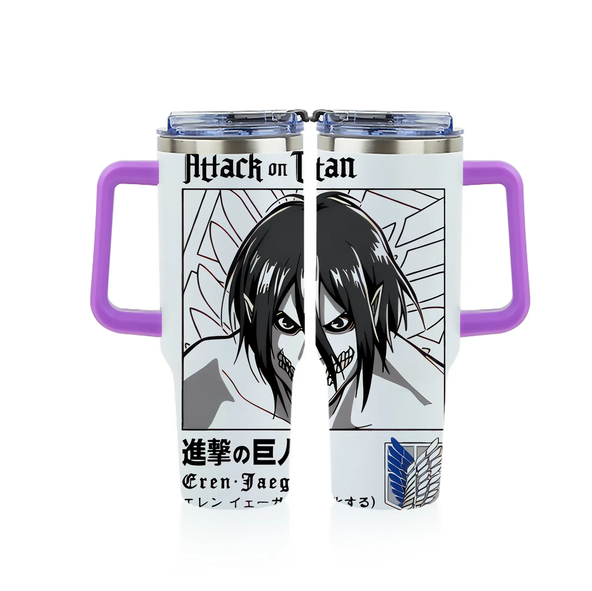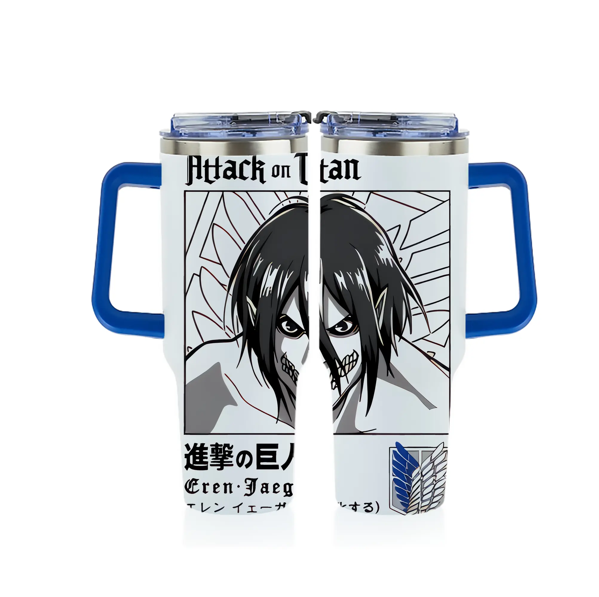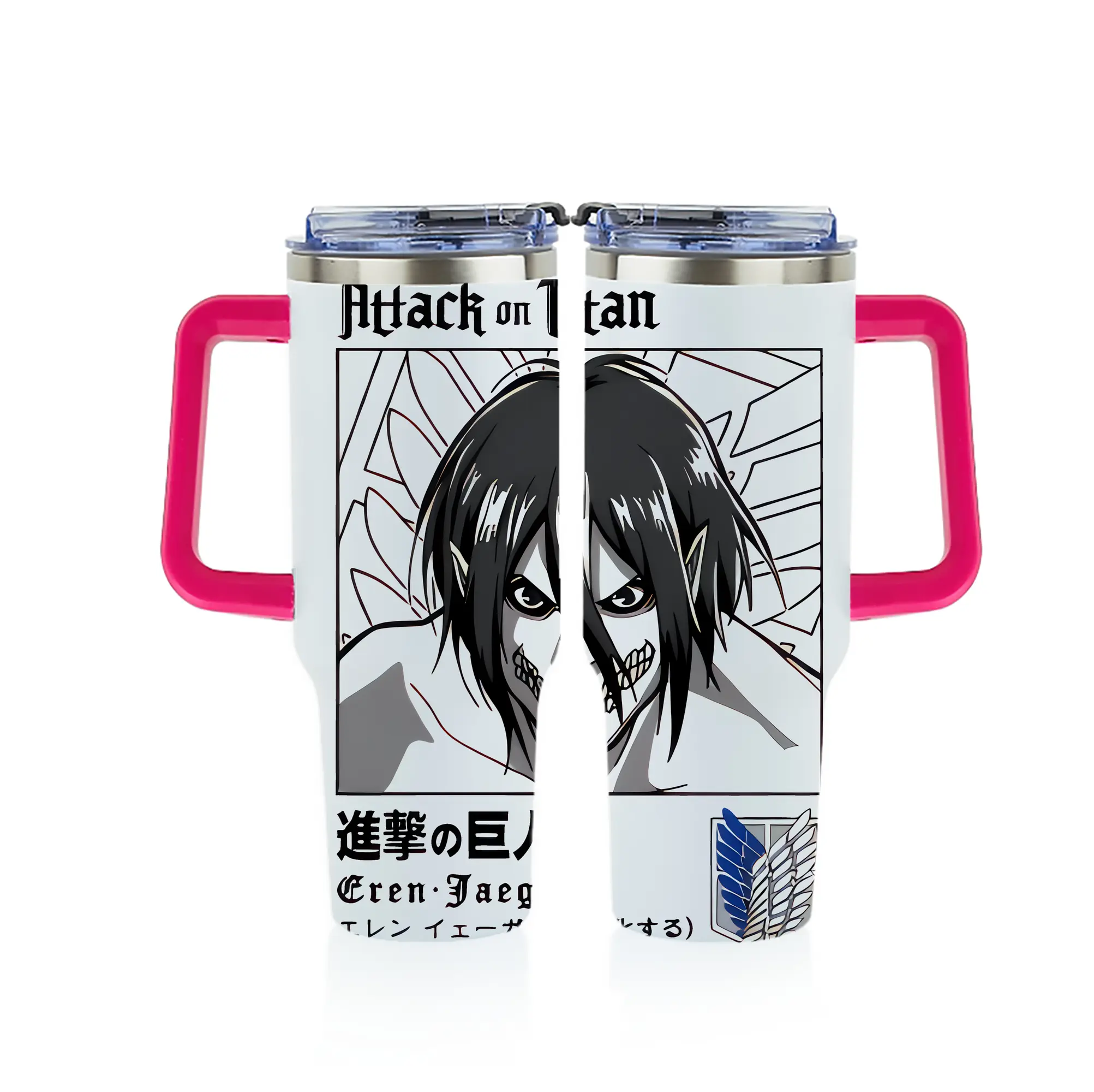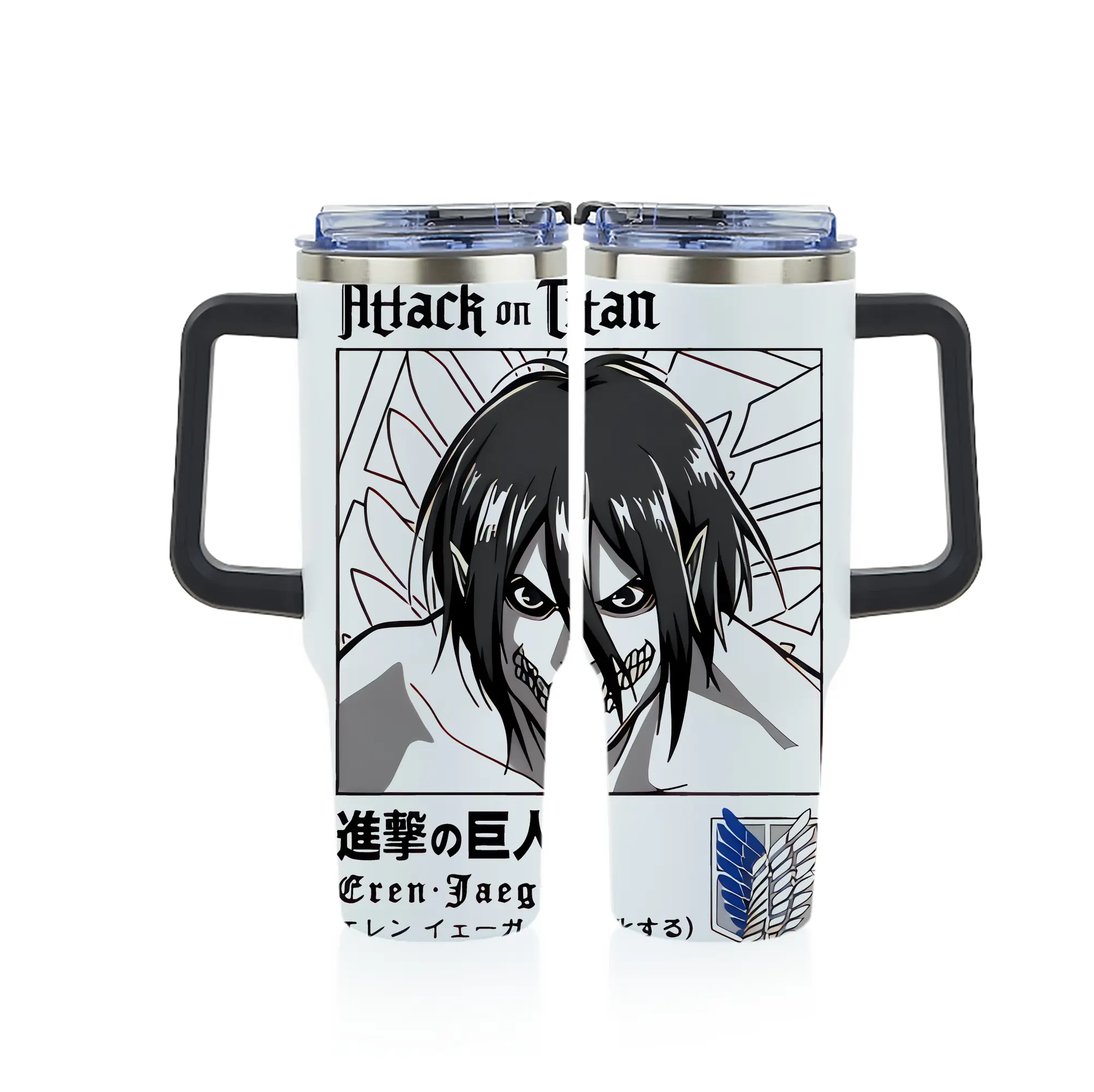 進撃の巨人 グッズ エレン・イェーガー - 1200mL フルプリント車用タンブラー ・ 304ステンレス 内側 ・ 201ステンレス 外側 ・ 保温 保冷 ・ 通勤 ドライブ アウトドア用