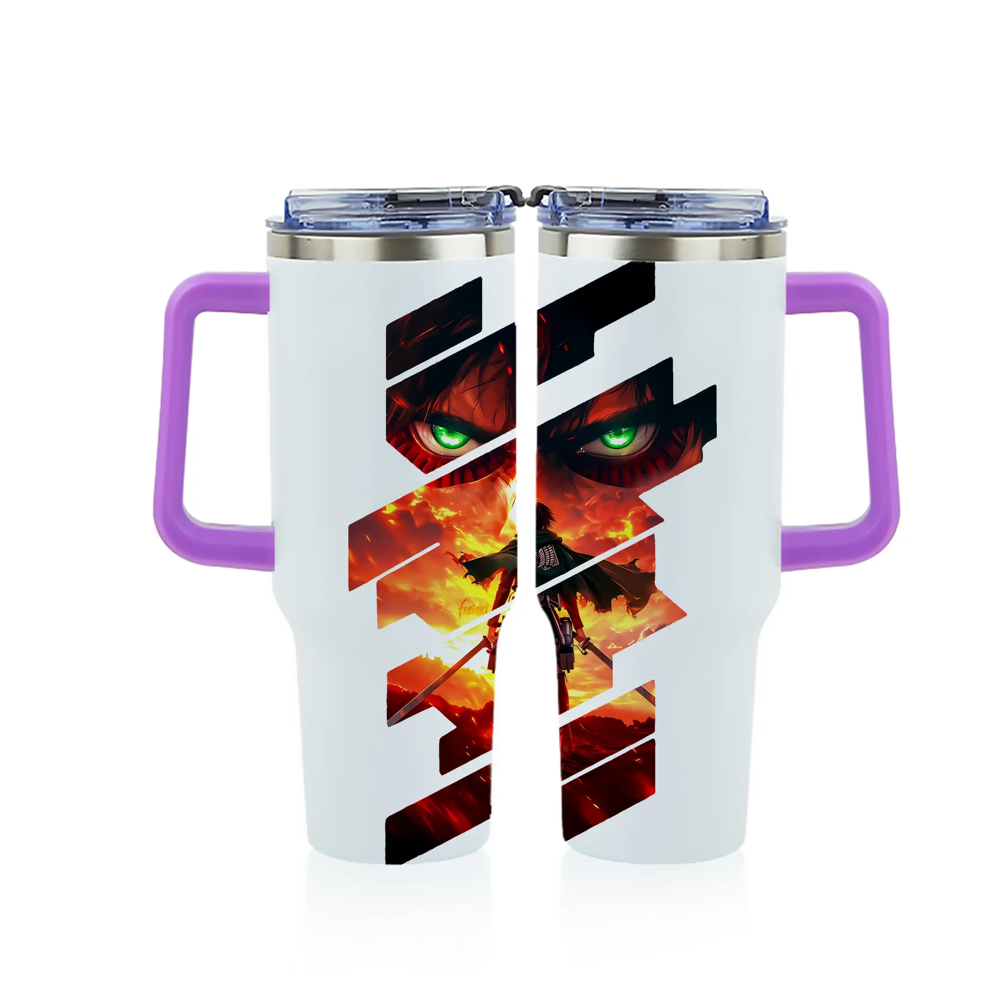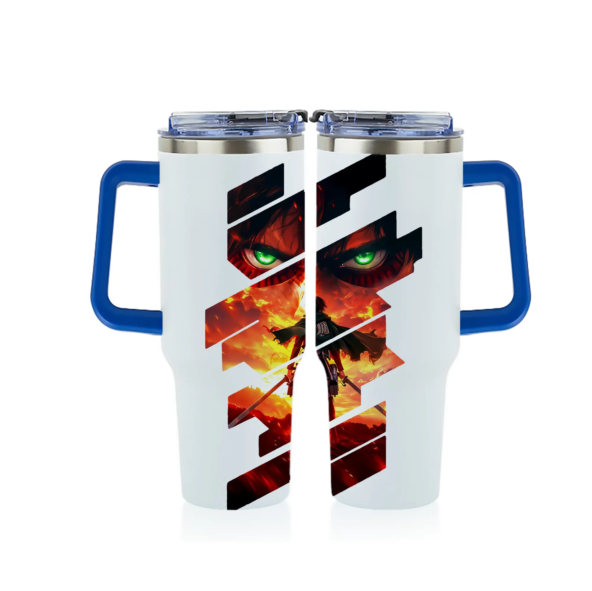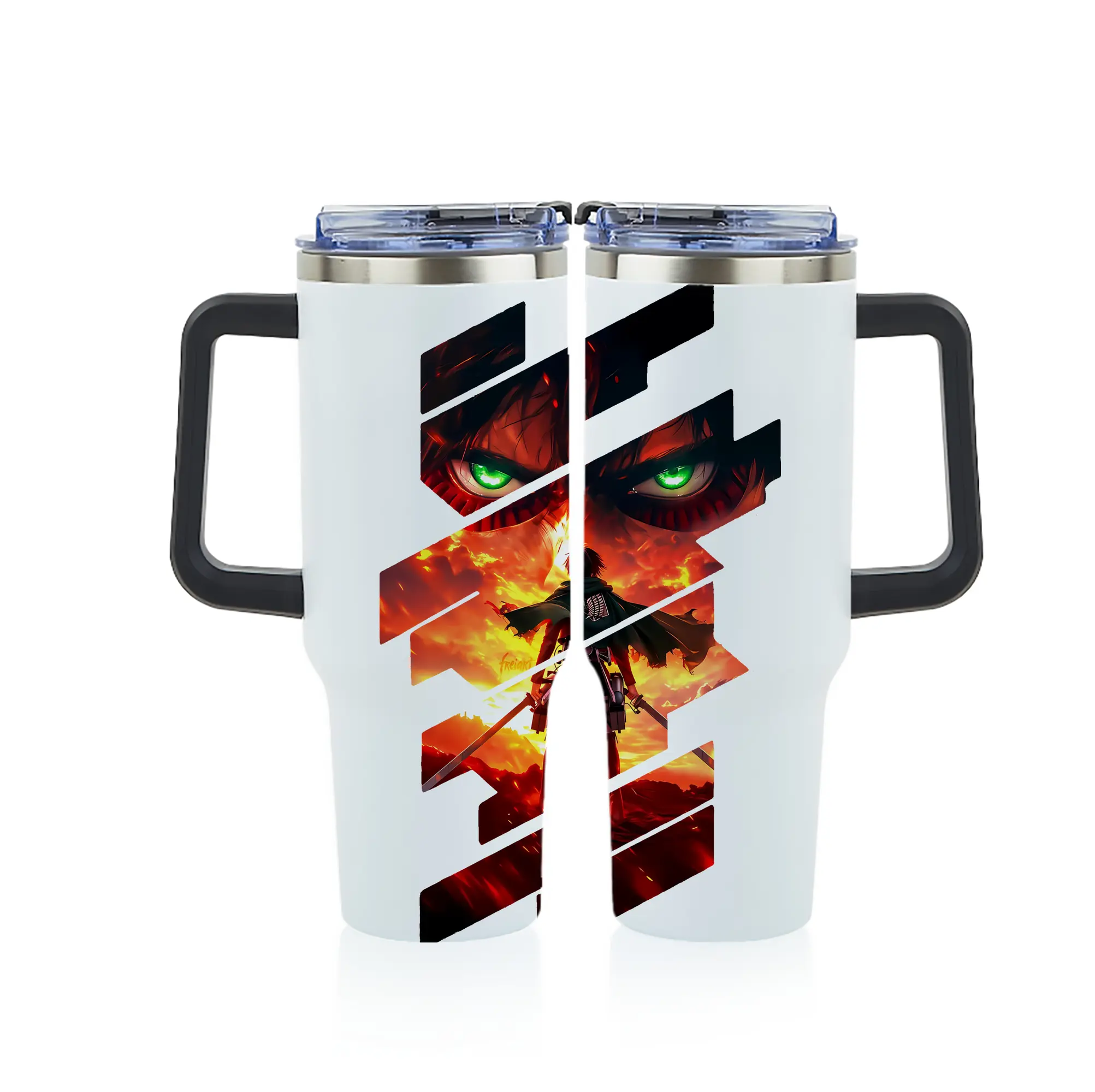進撃の巨人 グッズ エレン・イェーガー - 1200mL フルプリント車用タンブラー ・ 304ステンレス 内側 ・ 201ステンレス 外側 ・ 保温 保冷 ・ 通勤 ドライブ アウトドア用