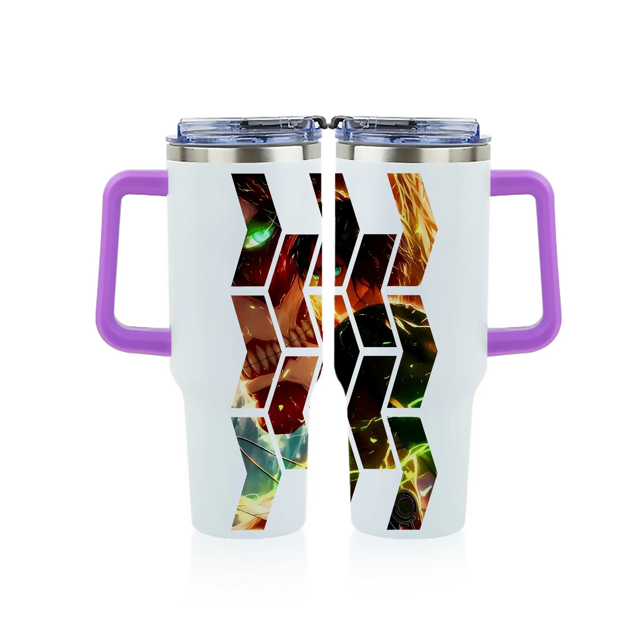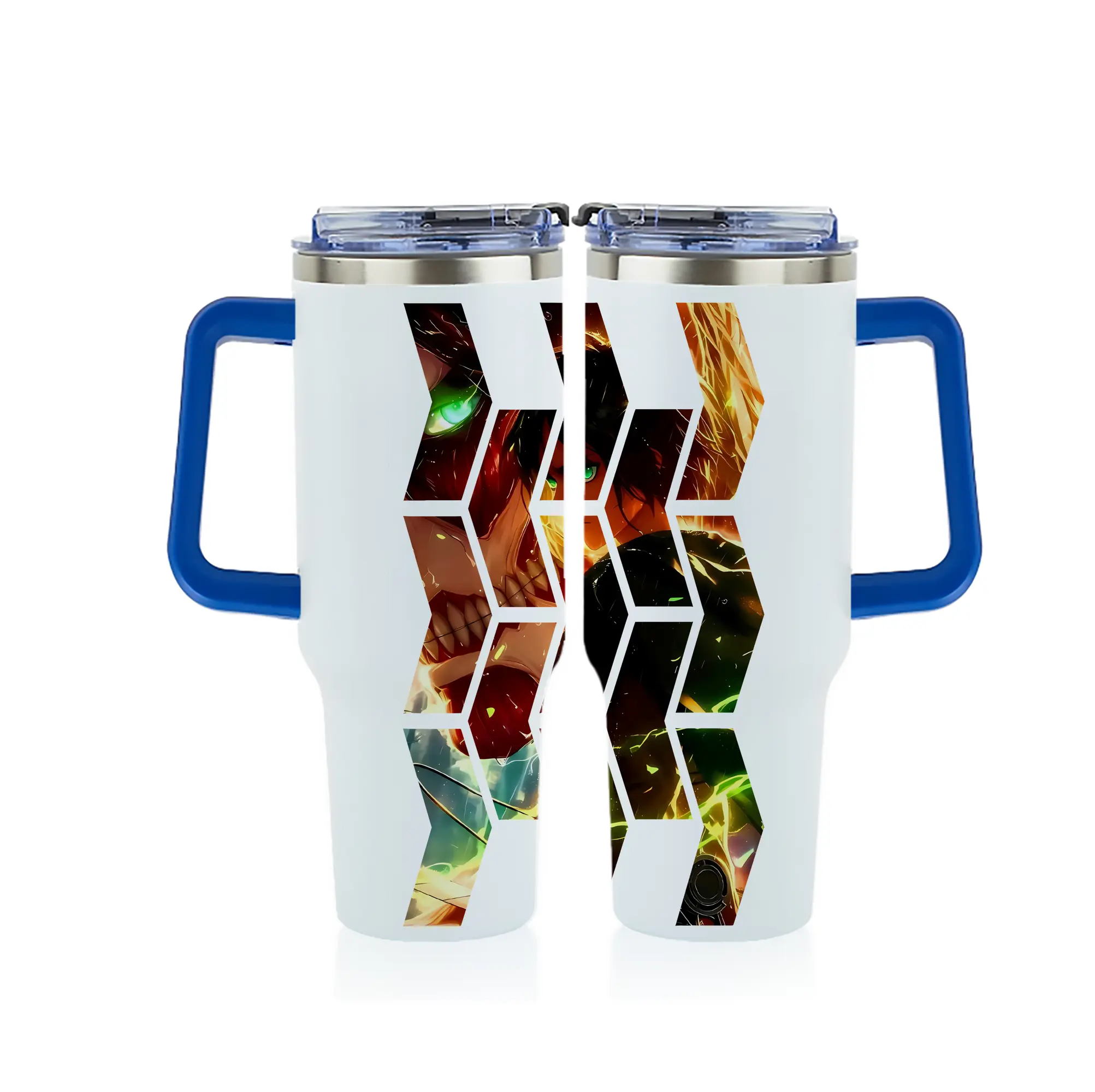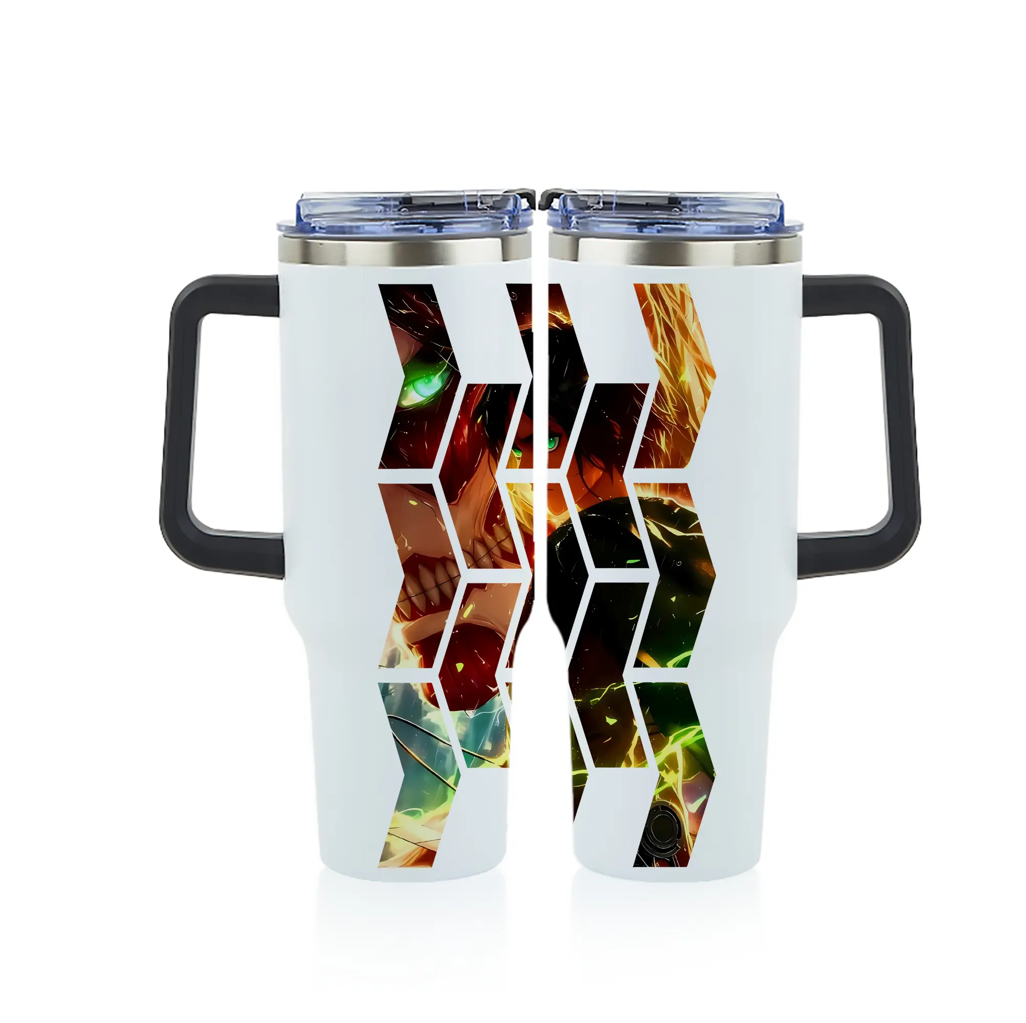 進撃の巨人 グッズ エレン・イェーガー - 1200mL フルプリント車用タンブラー ・ 304ステンレス 内側 ・ 201ステンレス 外側 ・ 保温 保冷 ・ 通勤 ドライブ アウトドア用