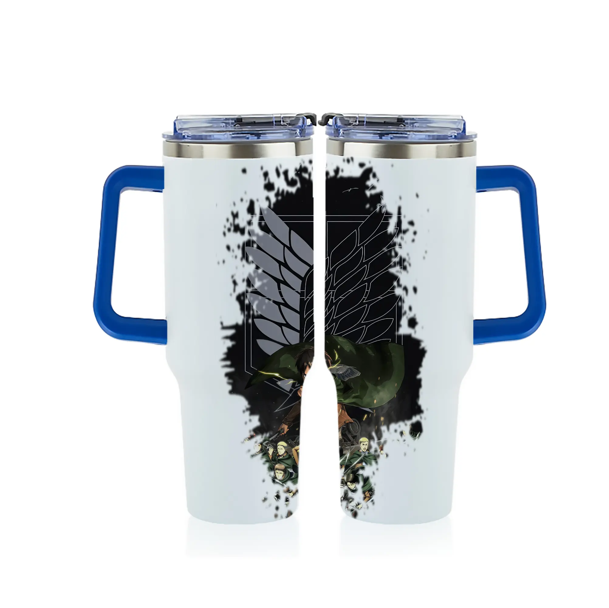 進撃の巨人 グッズ エレン・イェーガー - 1200mL フルプリント車用タンブラー ・ 304ステンレス 内側 ・ 201ステンレス 外側 ・ 保温 保冷 ・ 通勤 ドライブ アウトドア用