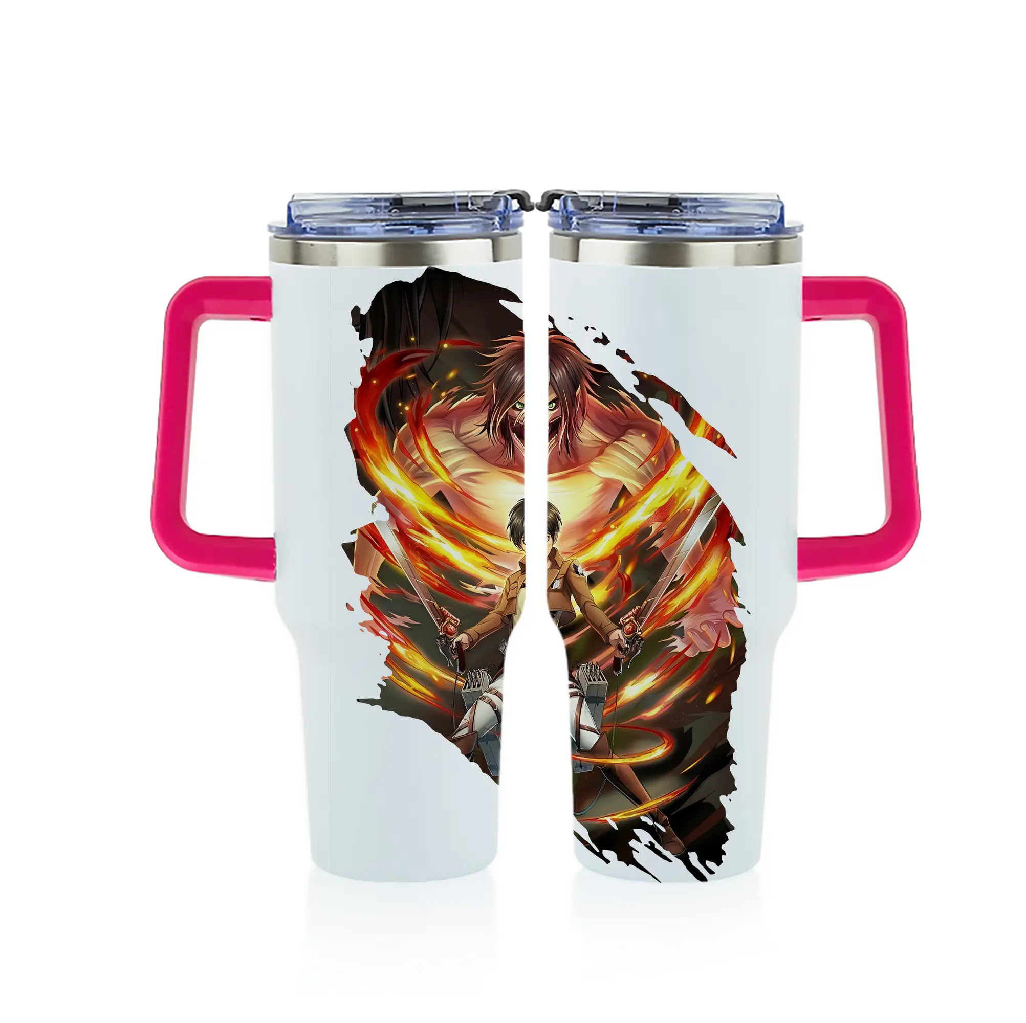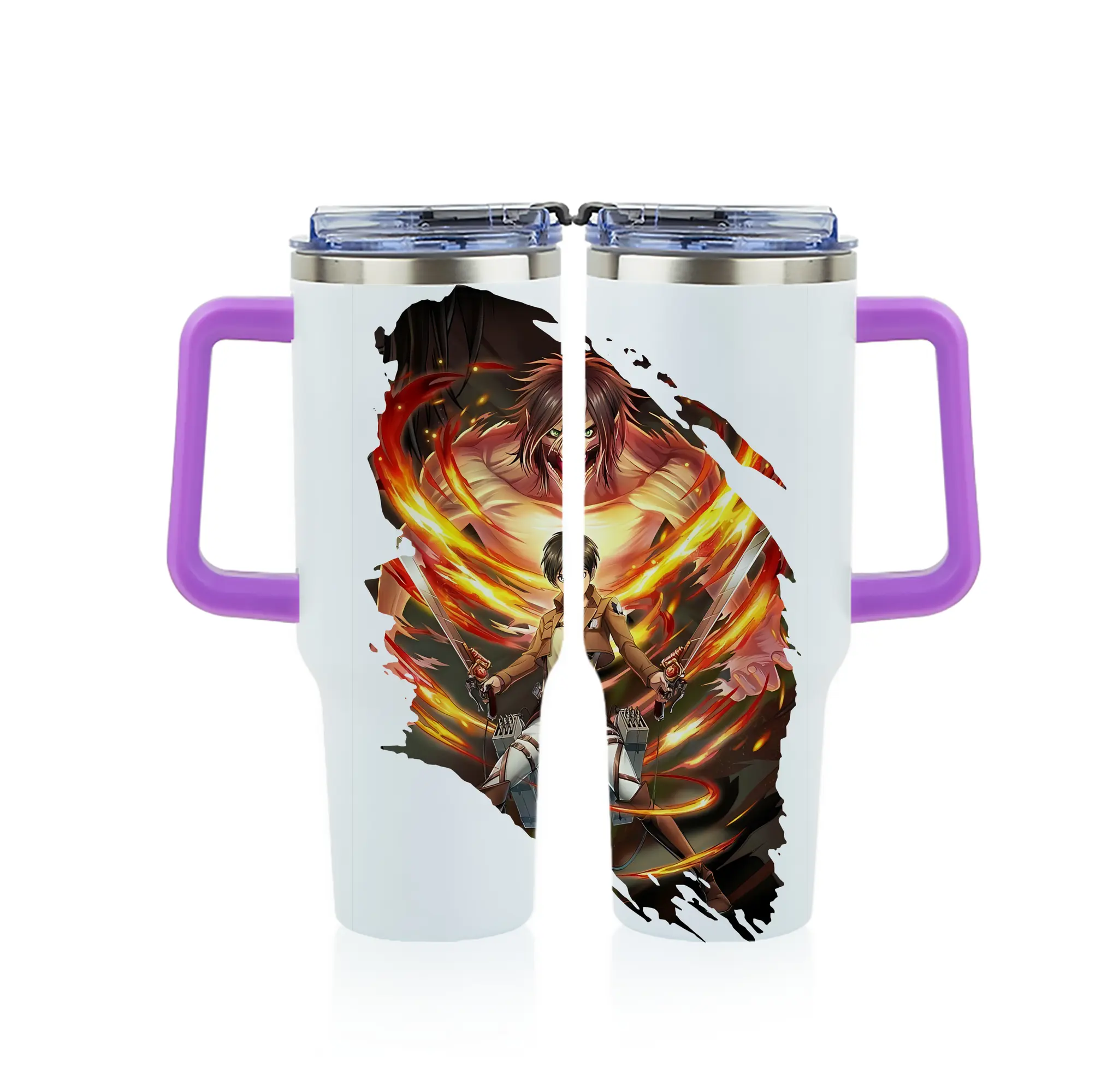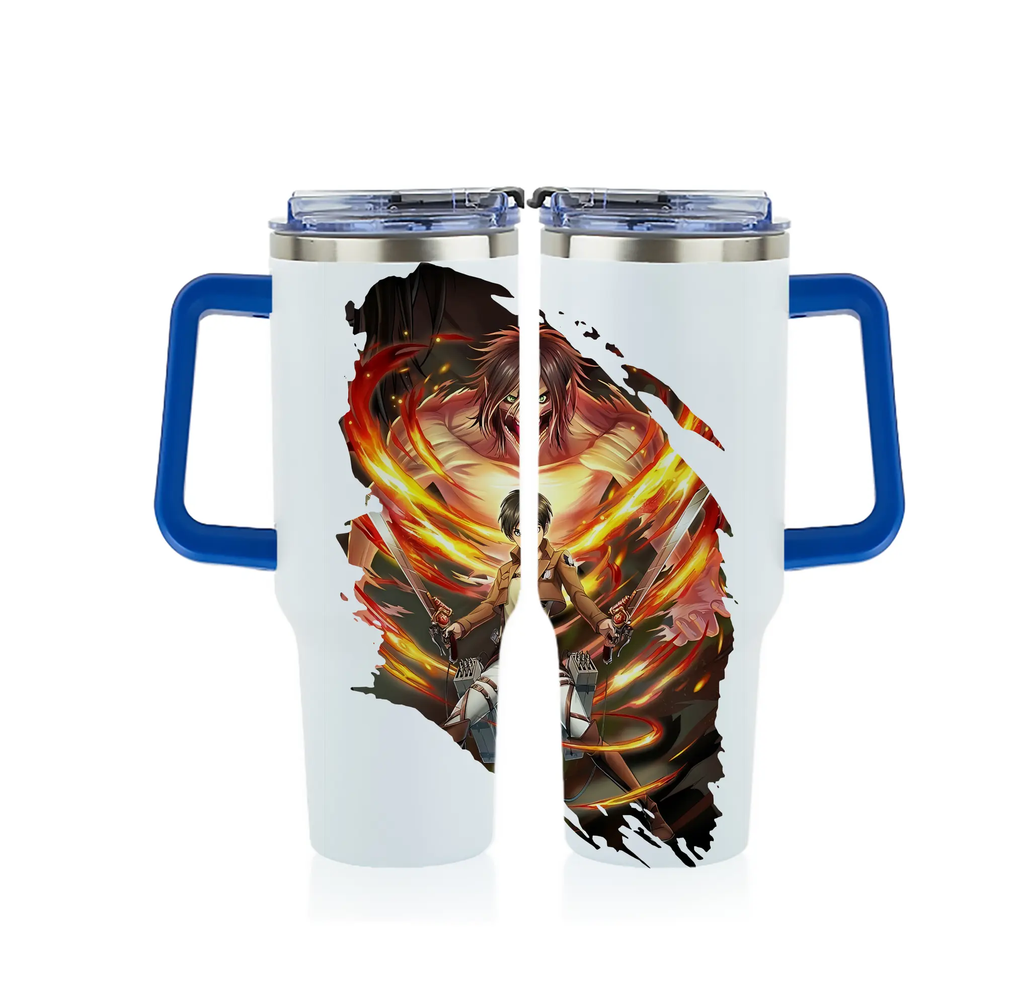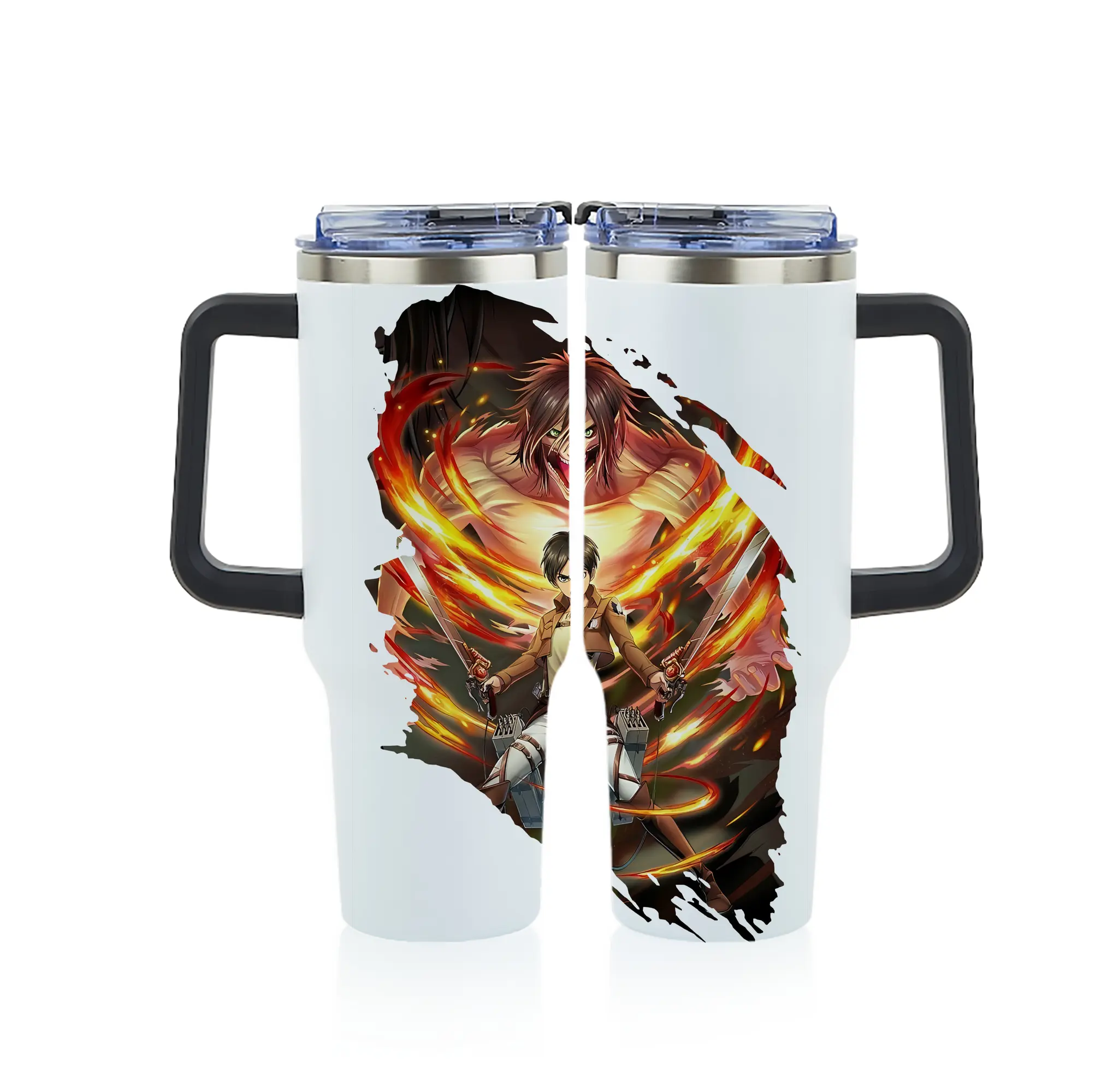 進撃の巨人 グッズ エレン・イェーガー - 1200mL フルプリント車用タンブラー ・ 304ステンレス 内側 ・ 201ステンレス 外側 ・ 保温 保冷 ・ 通勤 ドライブ アウトドア用