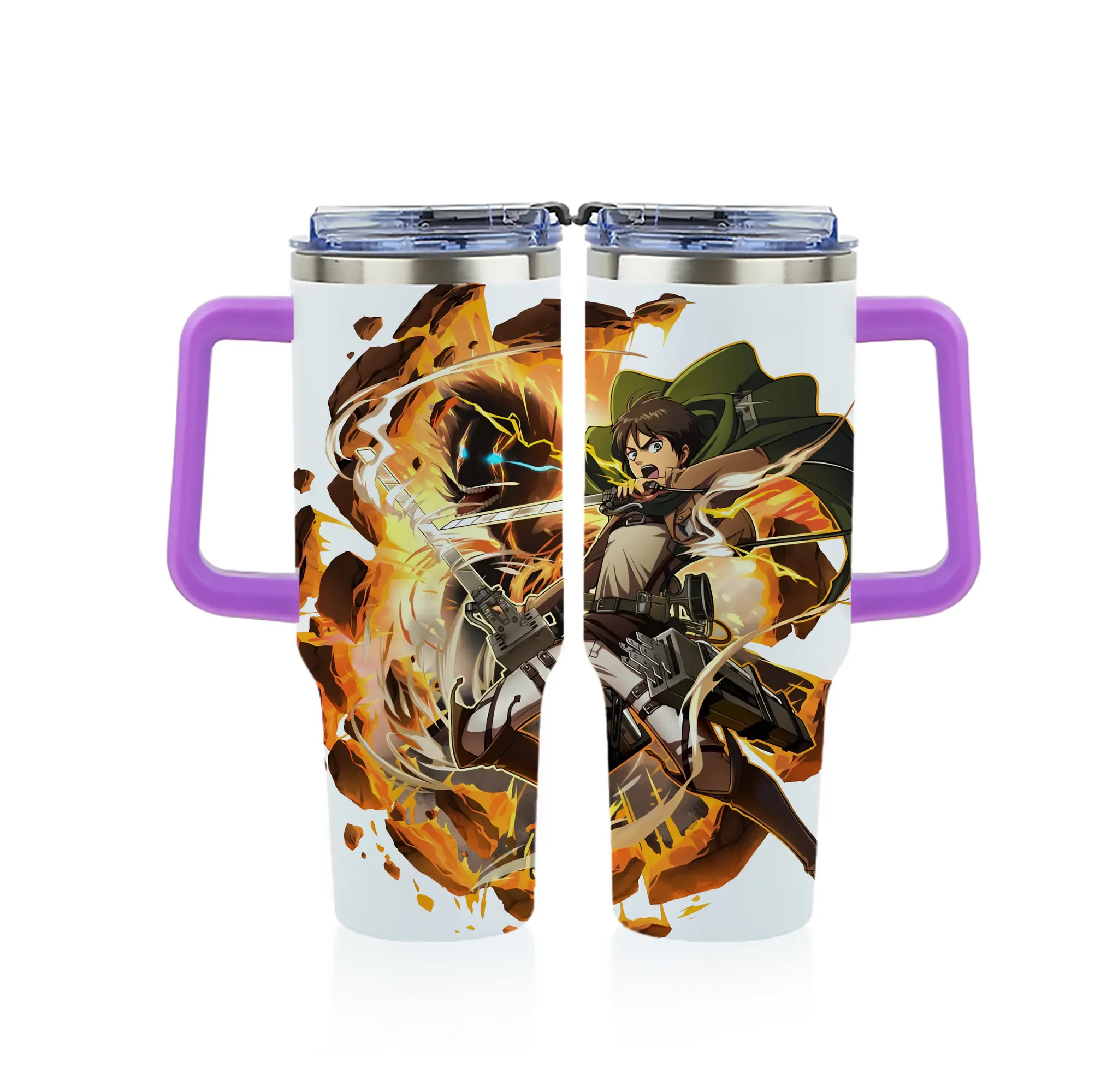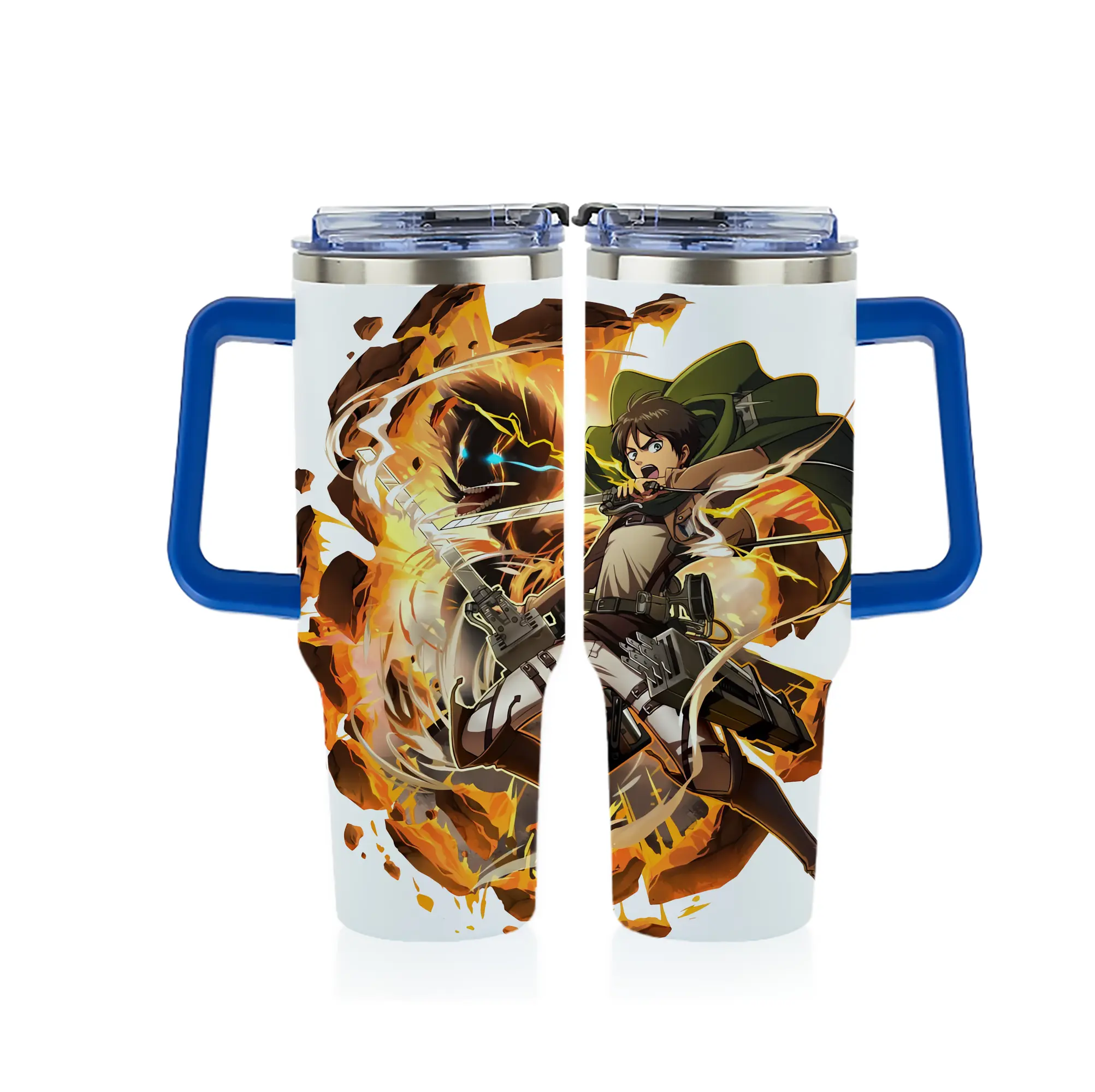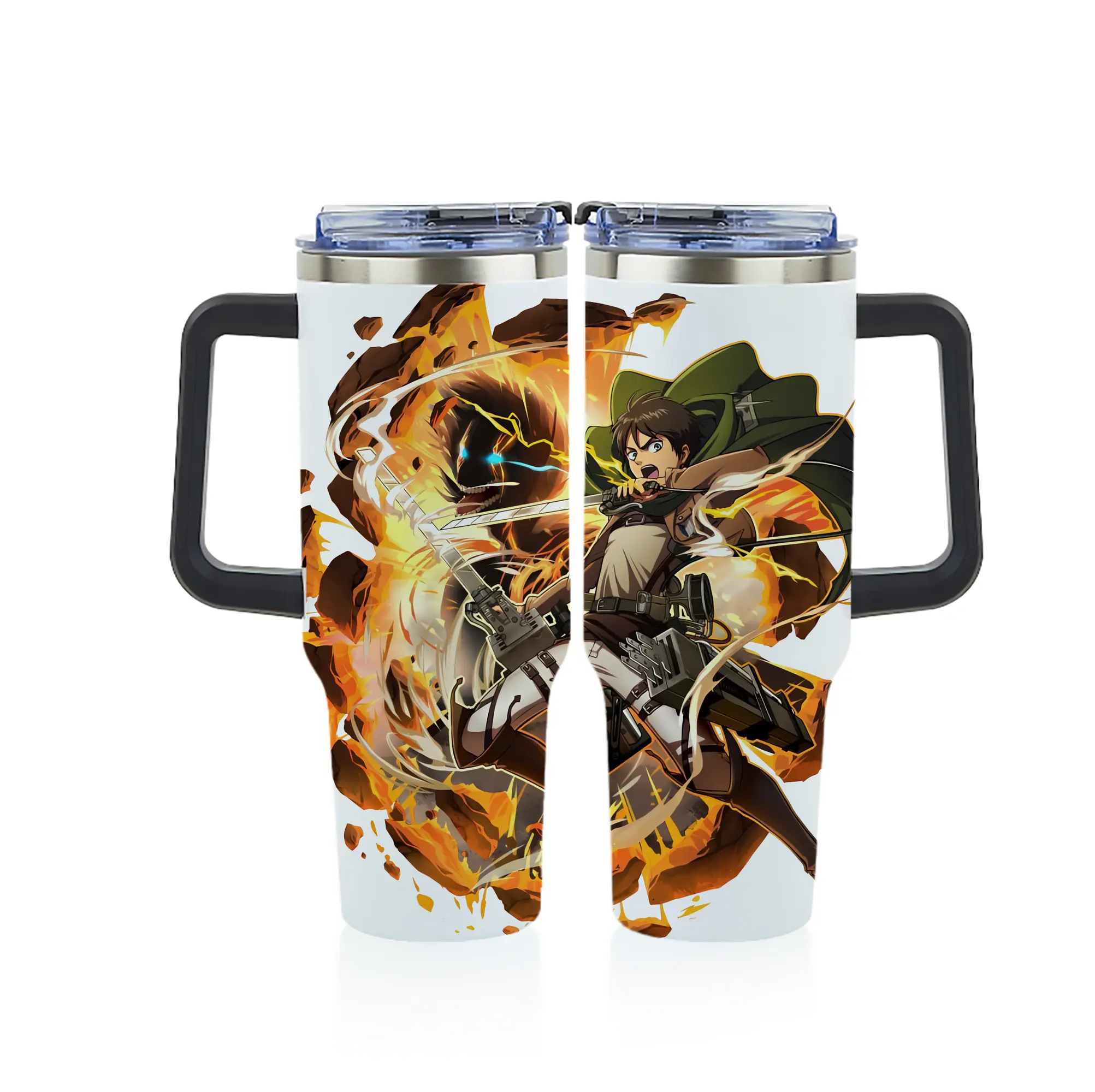 進撃の巨人 グッズ エレン・イェーガー - 1200mL フルプリント車用タンブラー ・ 304ステンレス 内側 ・ 201ステンレス 外側 ・ 保温 保冷 ・ 通勤 ドライブ アウトドア用