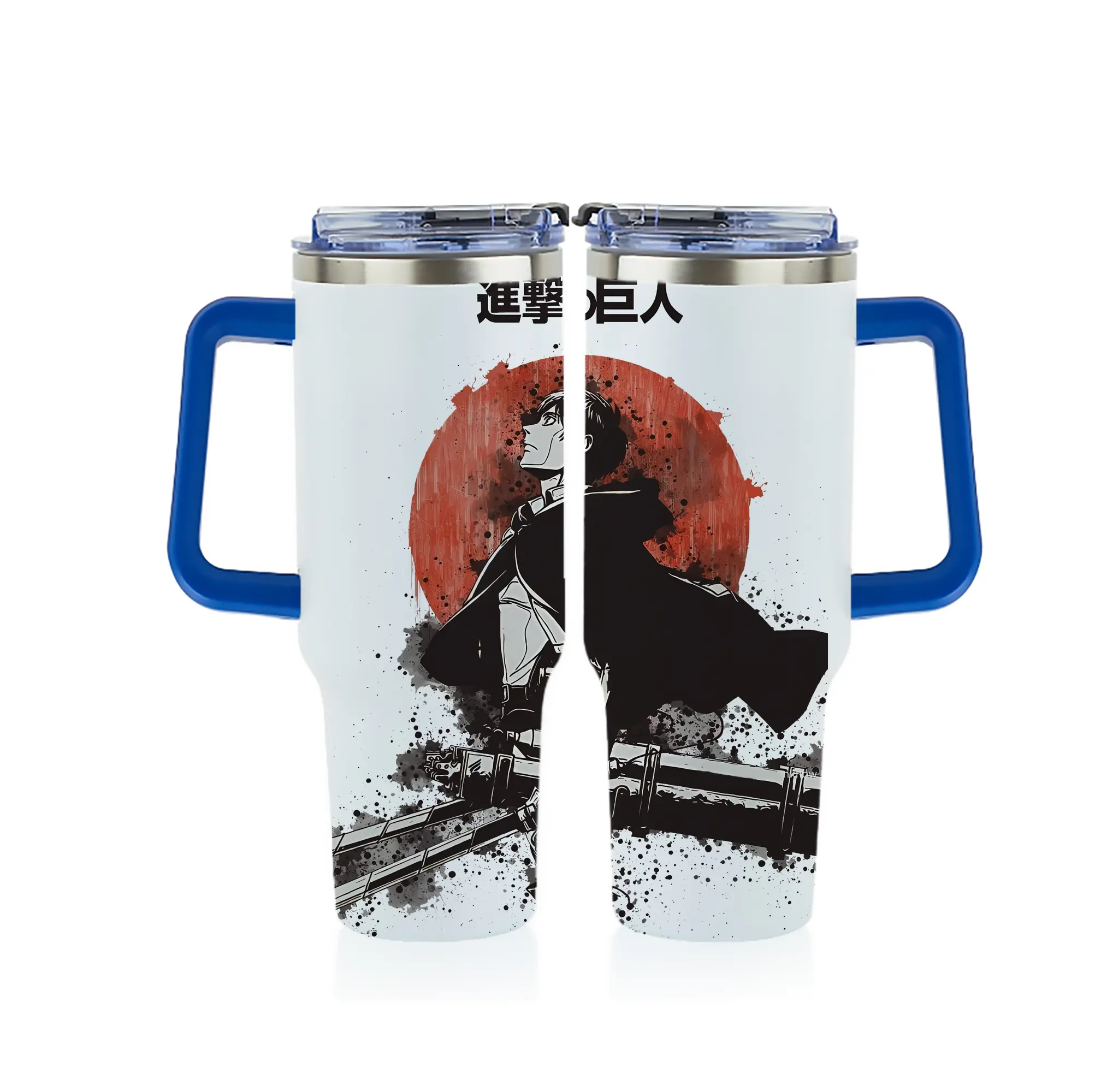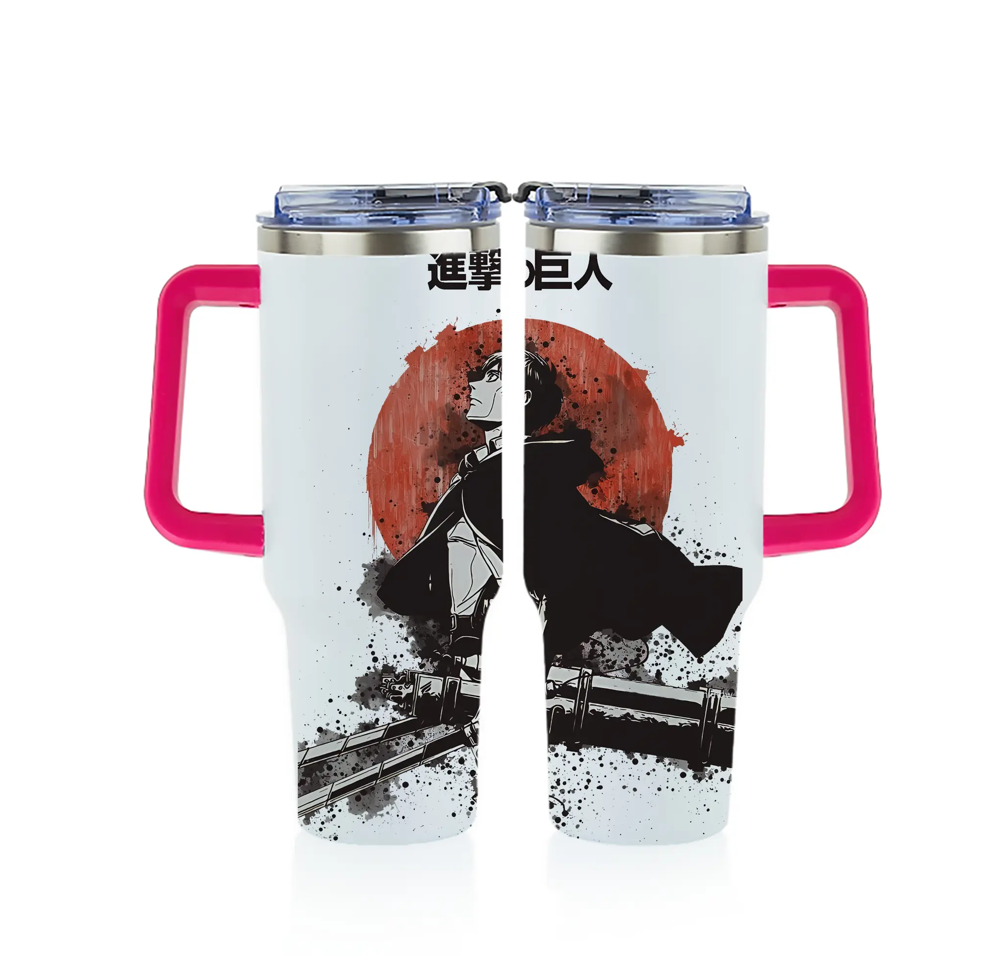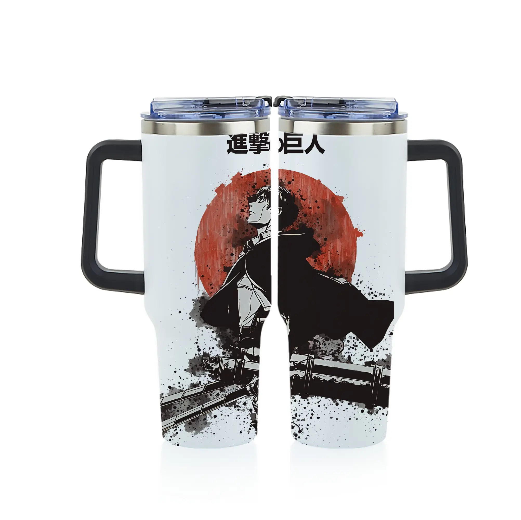 進撃の巨人 グッズ エレン・イェーガー - 1200mL フルプリント車用タンブラー ・ 304ステンレス 内側 ・ 201ステンレス 外側 ・ 保温 保冷 ・ 通勤 ドライブ アウトドア用
