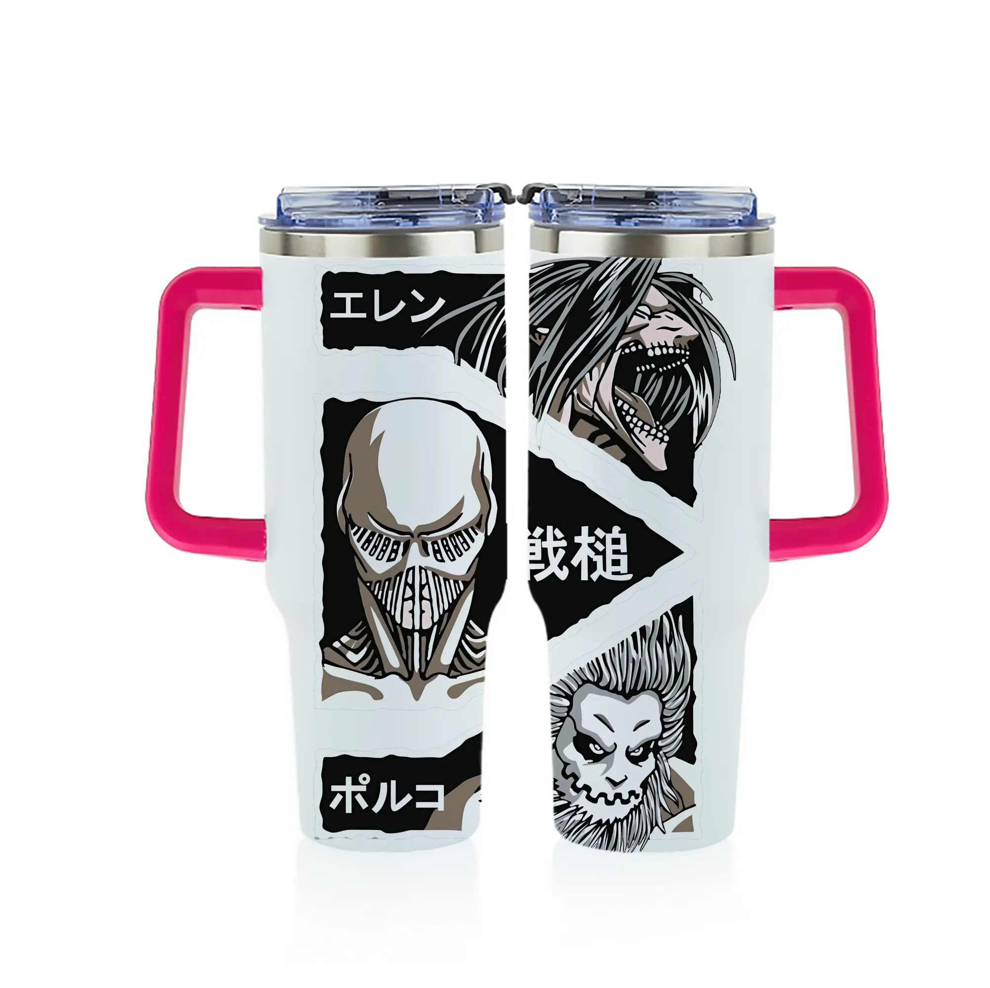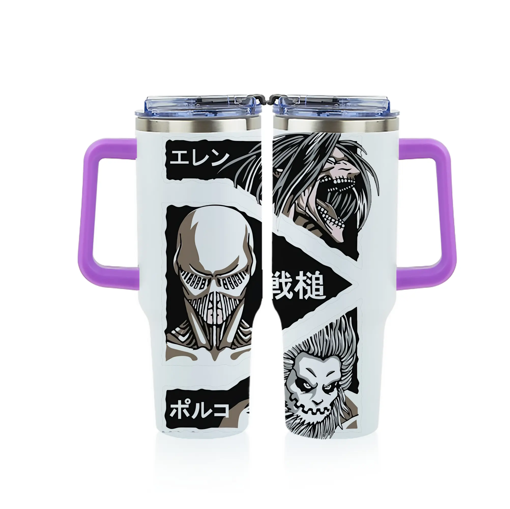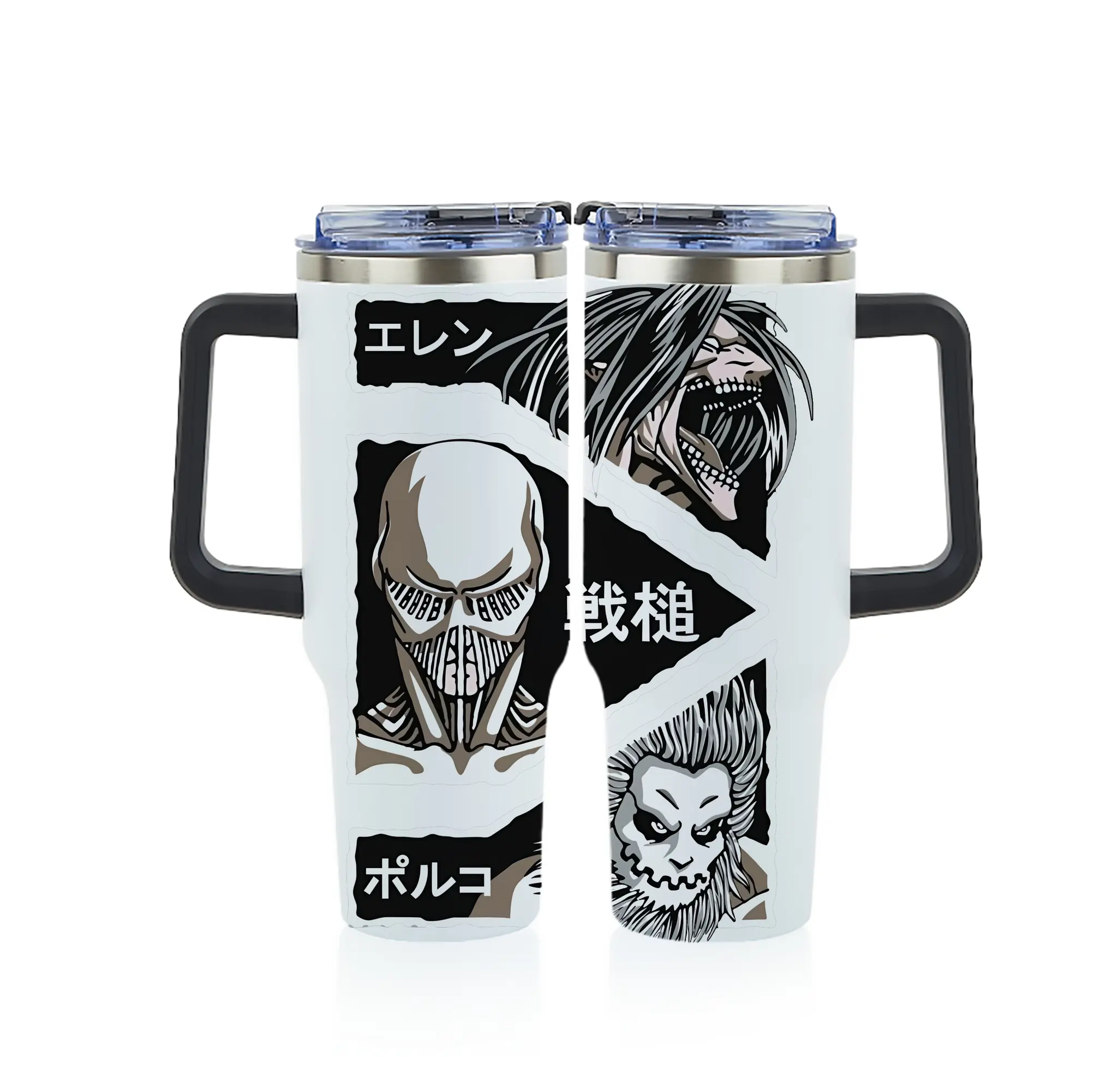 進撃の巨人 グッズ エレン・イェーガー - 1200mL フルプリント車用タンブラー ・ 304ステンレス 内側 ・ 201ステンレス 外側 ・ 保温 保冷 ・ 通勤 ドライブ アウトドア用