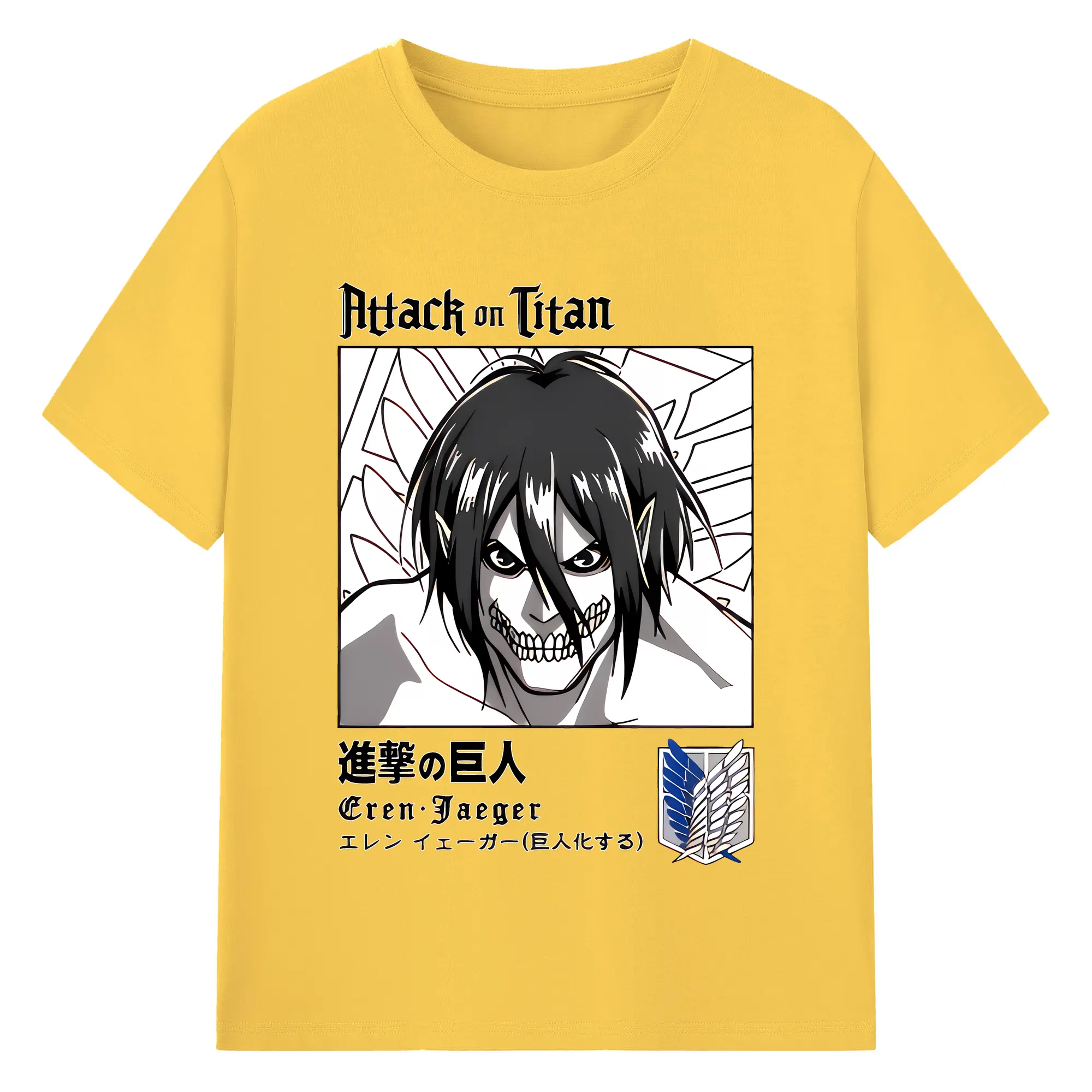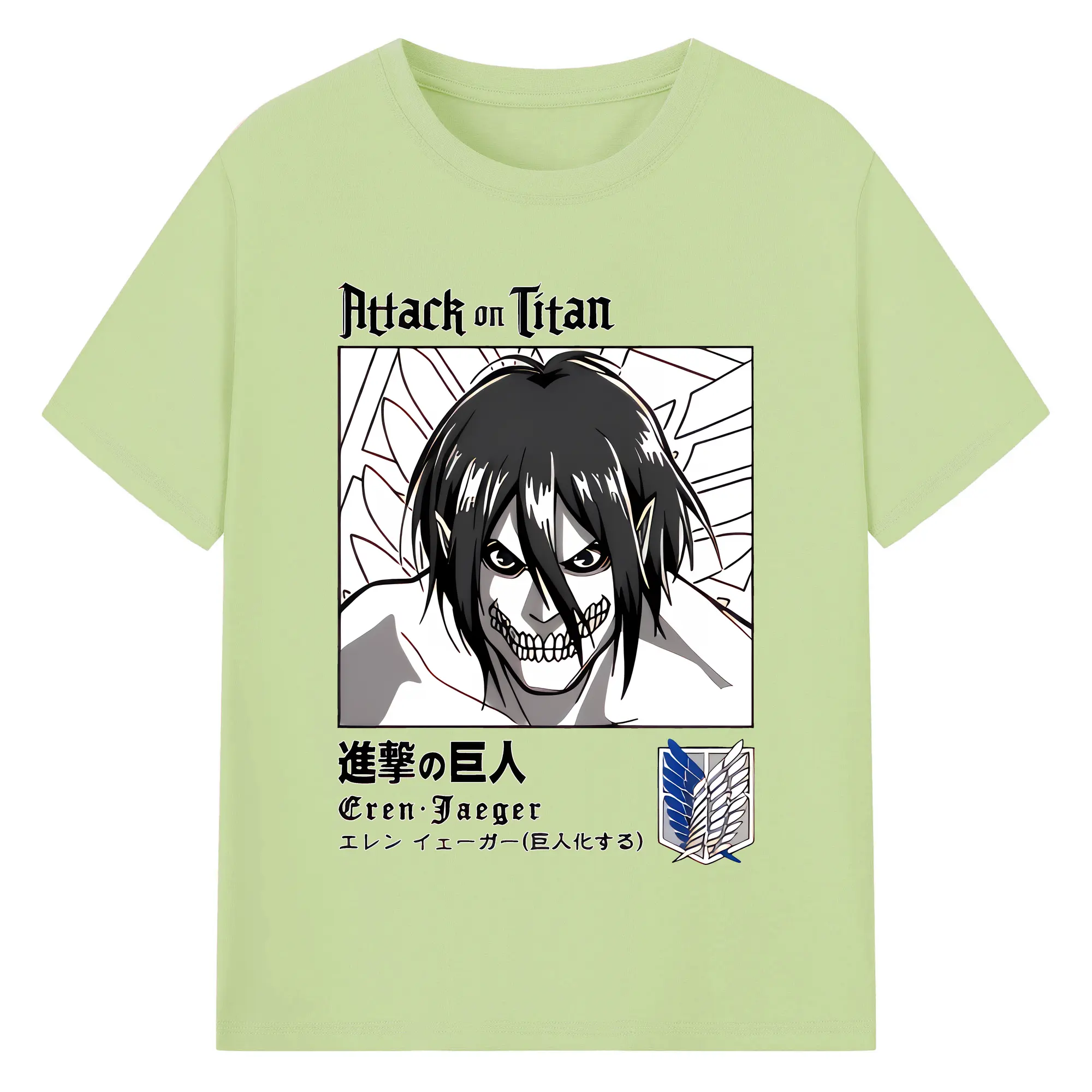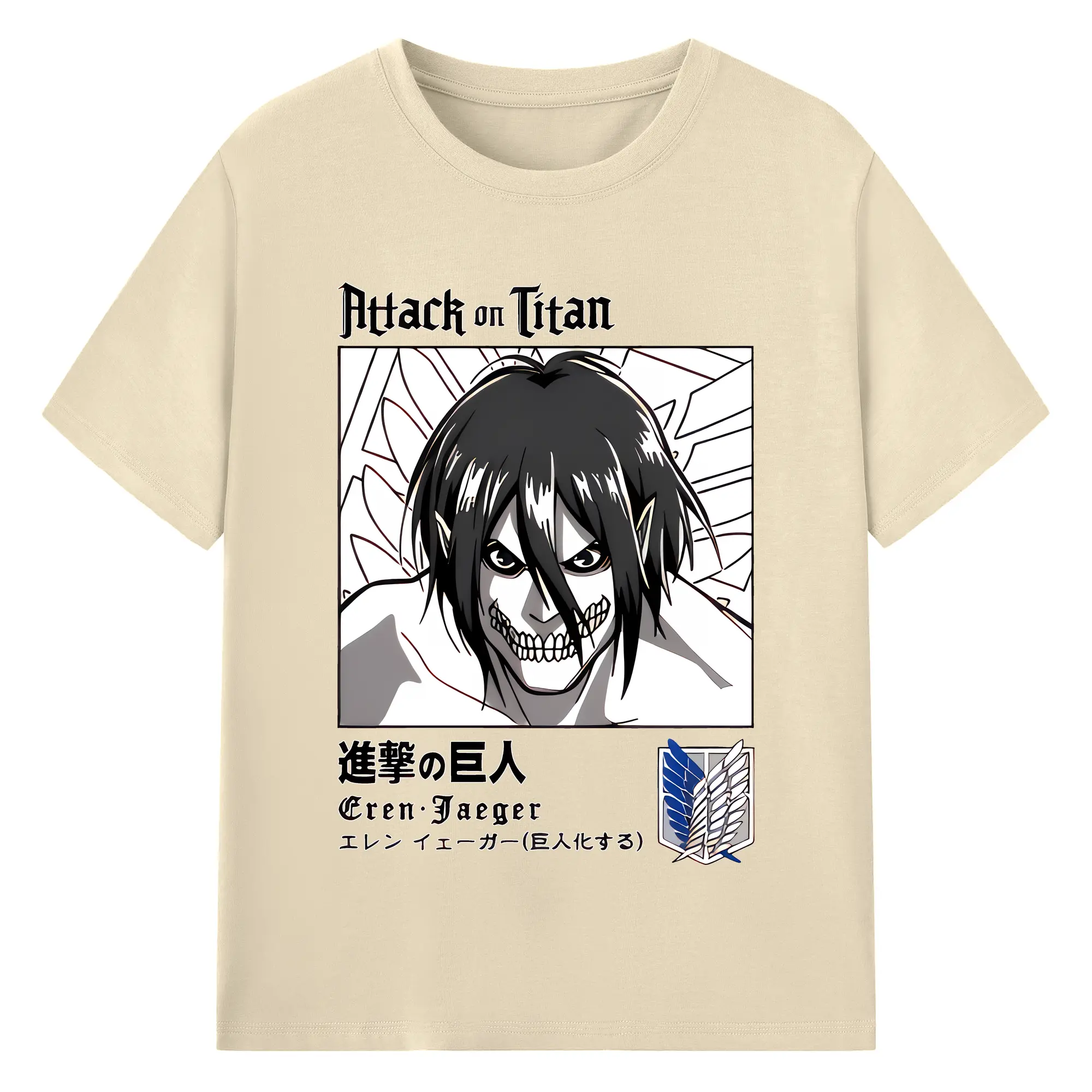 進撃の巨人 グッズ エレン・イェーガー - 綿100% ヴィンテージ風 半袖Tシャツ ・ フロントプリント ・ 柔らか肌触り ・ 通気性 快適 ・ スポーツ カジュアル 外出用