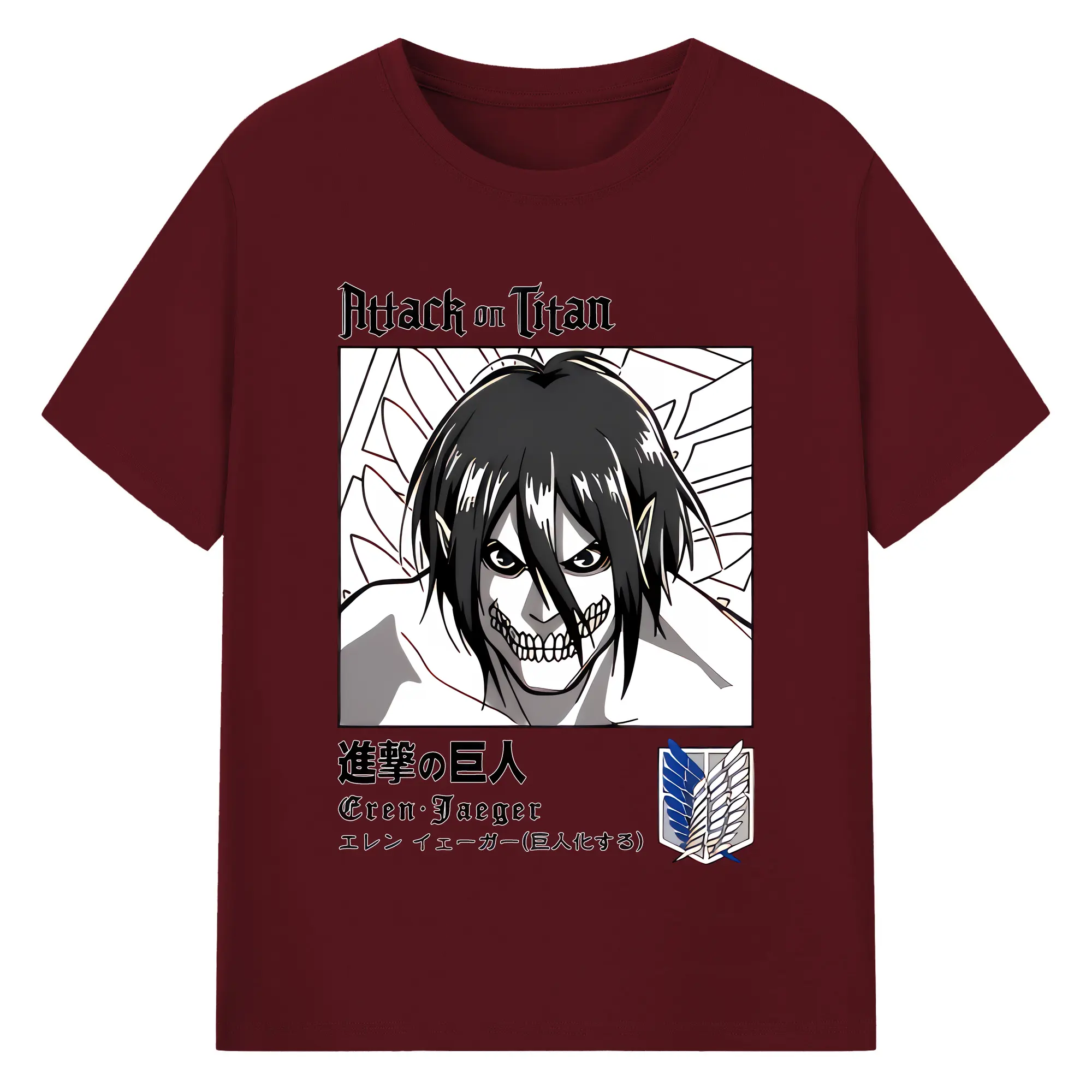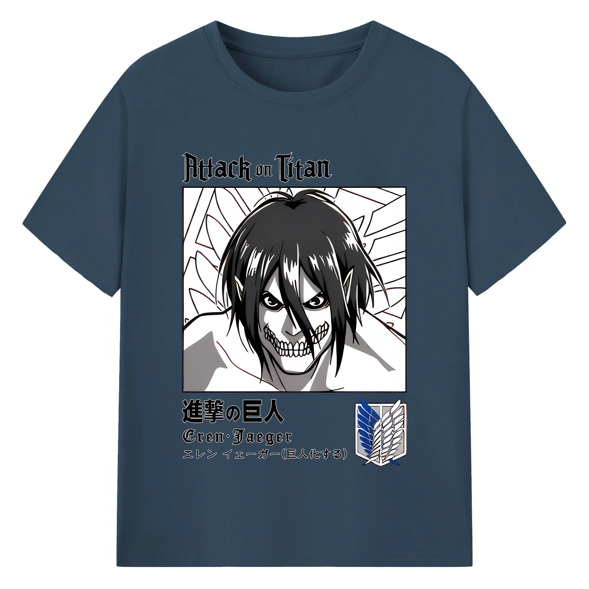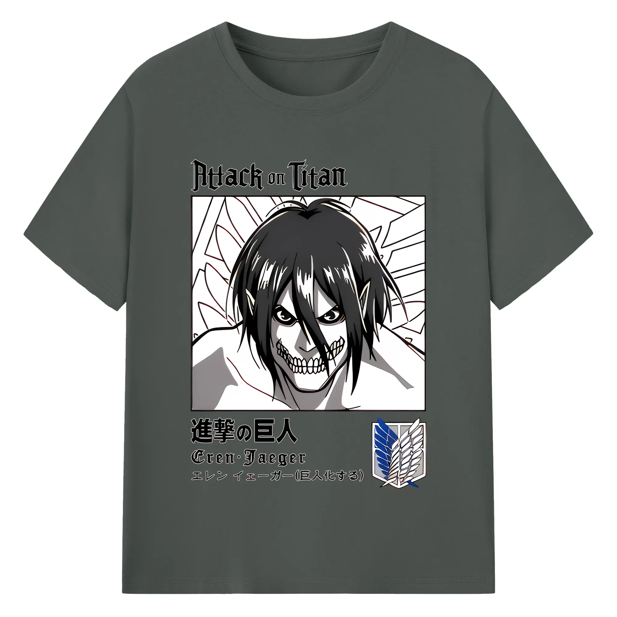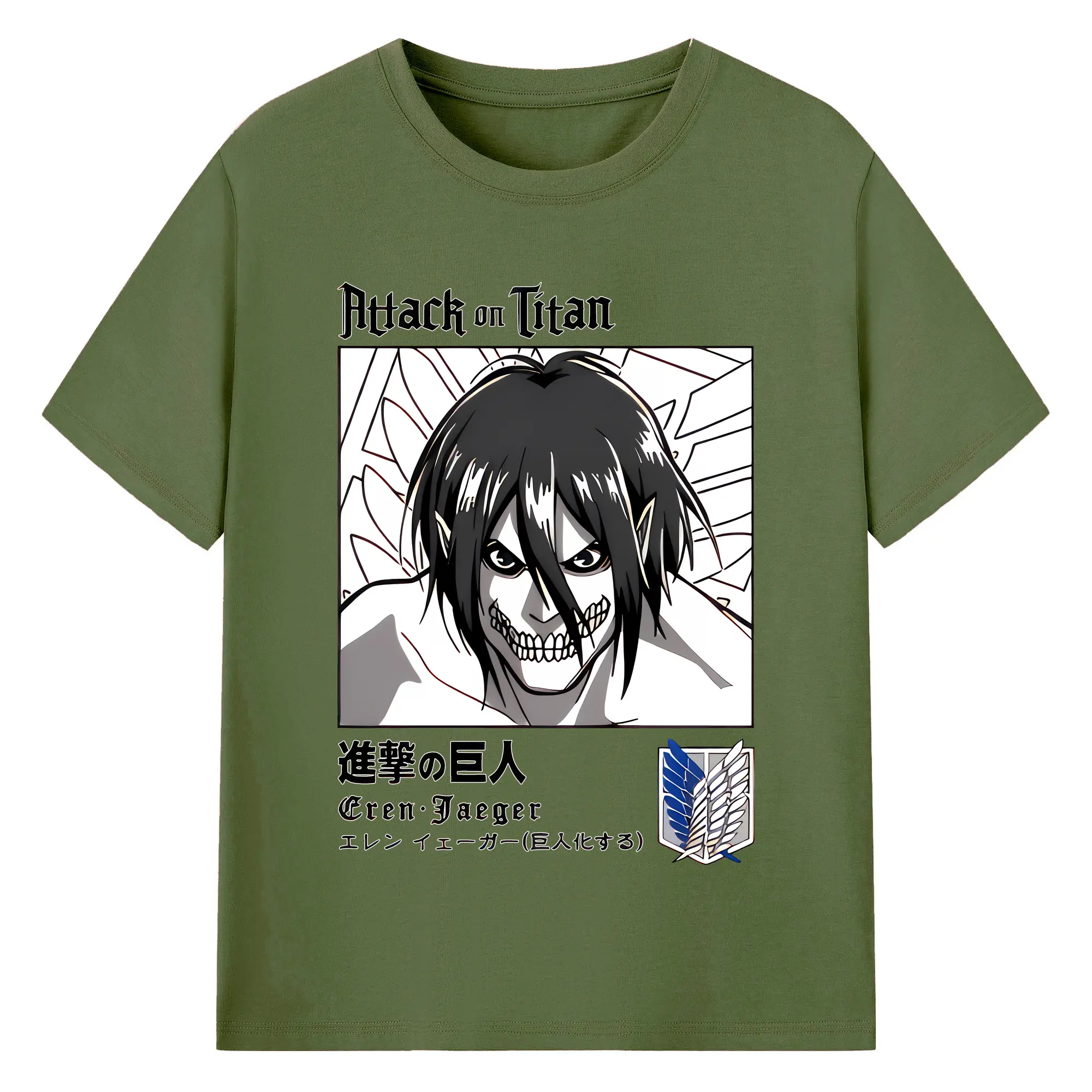 進撃の巨人 グッズ エレン・イェーガー - 綿100% ヴィンテージ風 半袖Tシャツ ・ フロントプリント ・ 柔らか肌触り ・ 通気性 快適 ・ スポーツ カジュアル 外出用