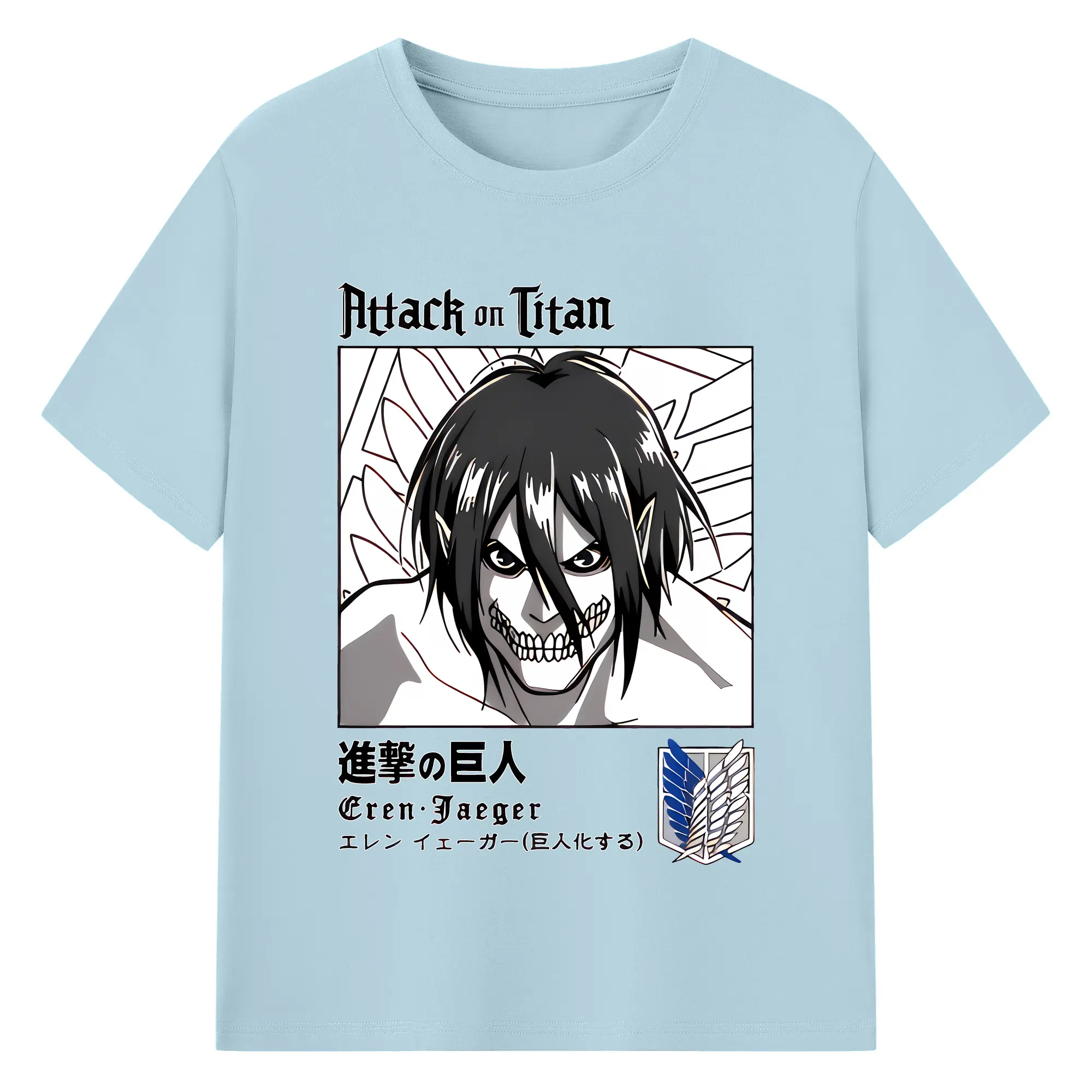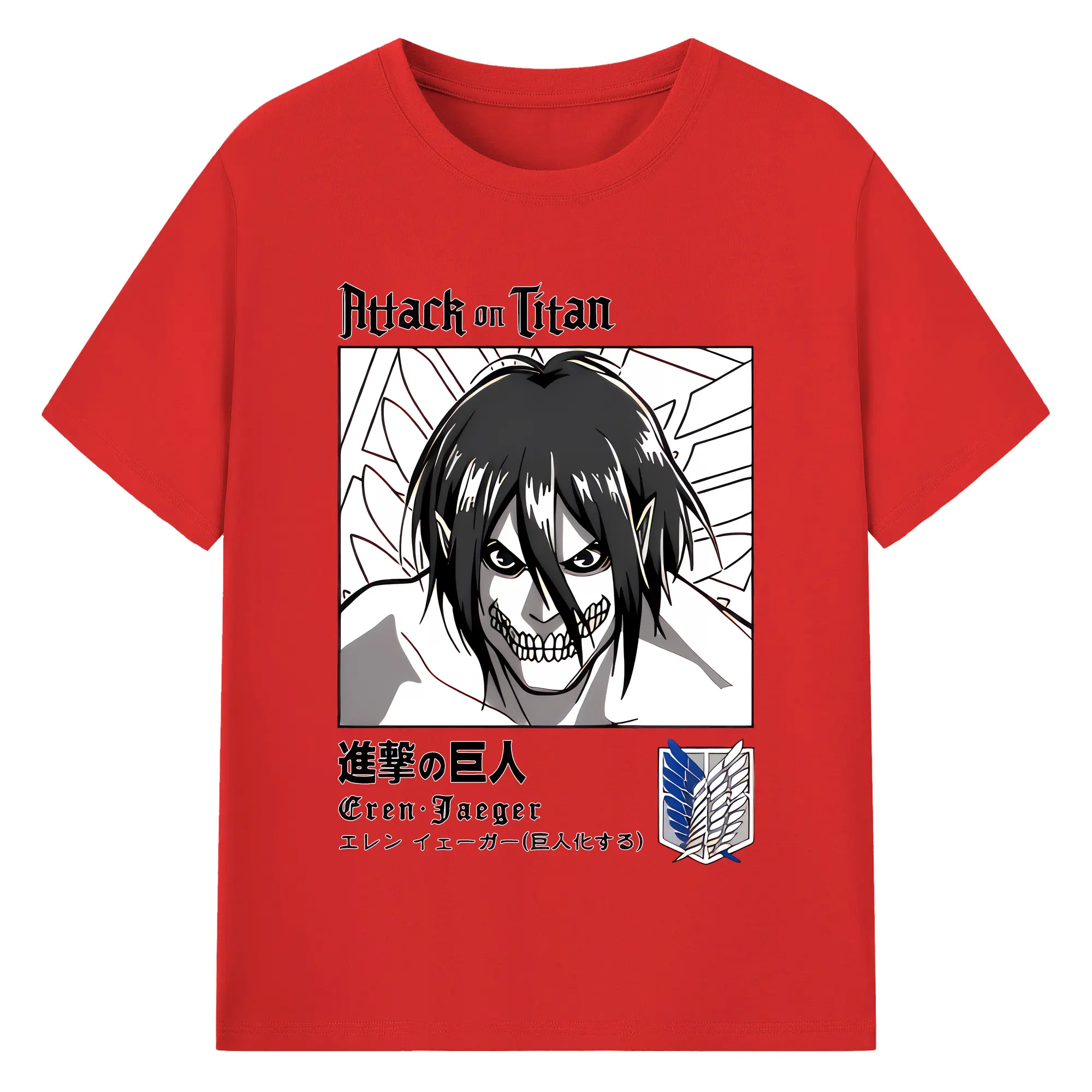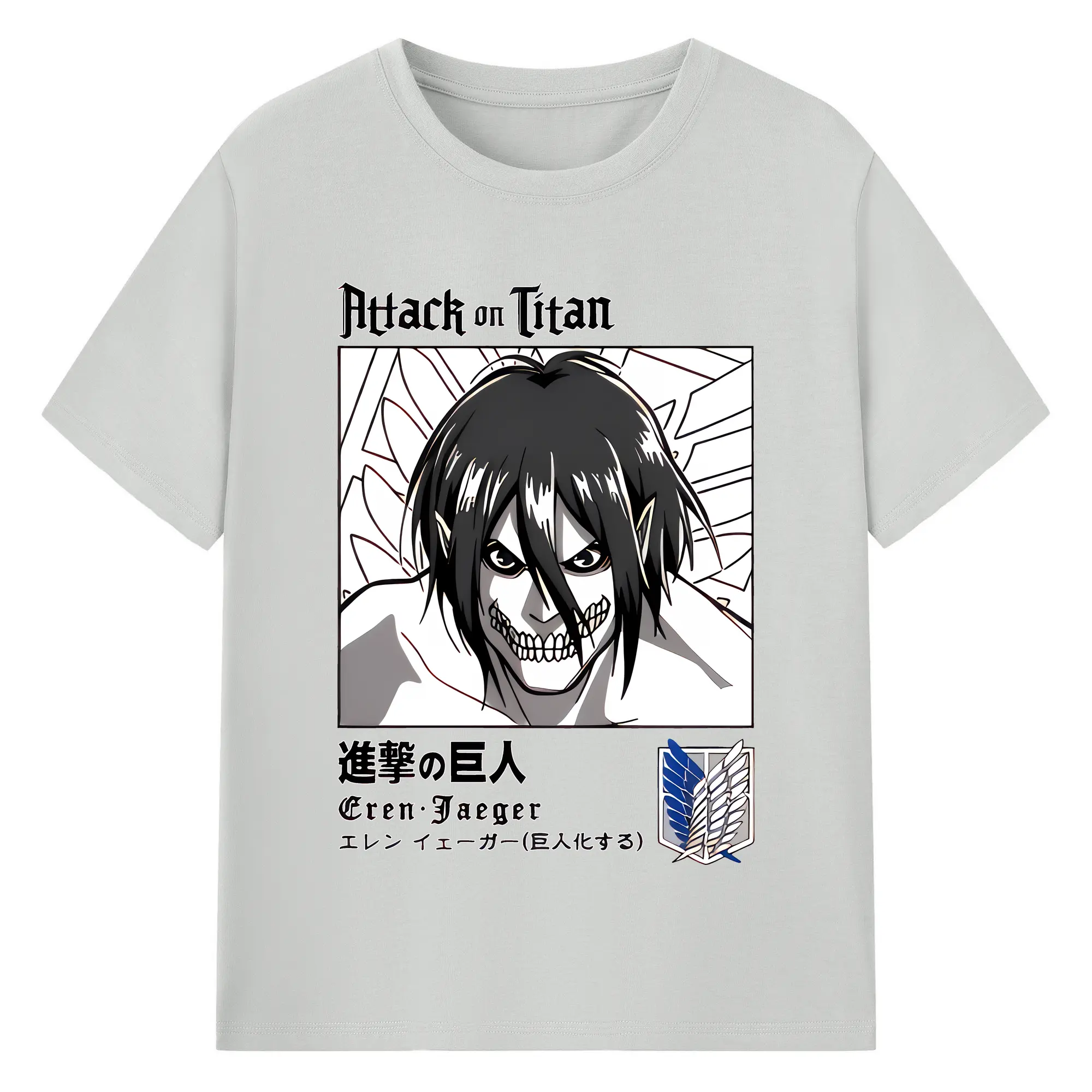 進撃の巨人 グッズ エレン・イェーガー - 綿100% 半袖Tシャツ ・ バックプリント ・ 快適 通気性 ・ 日常使い 散歩 スポーツ用