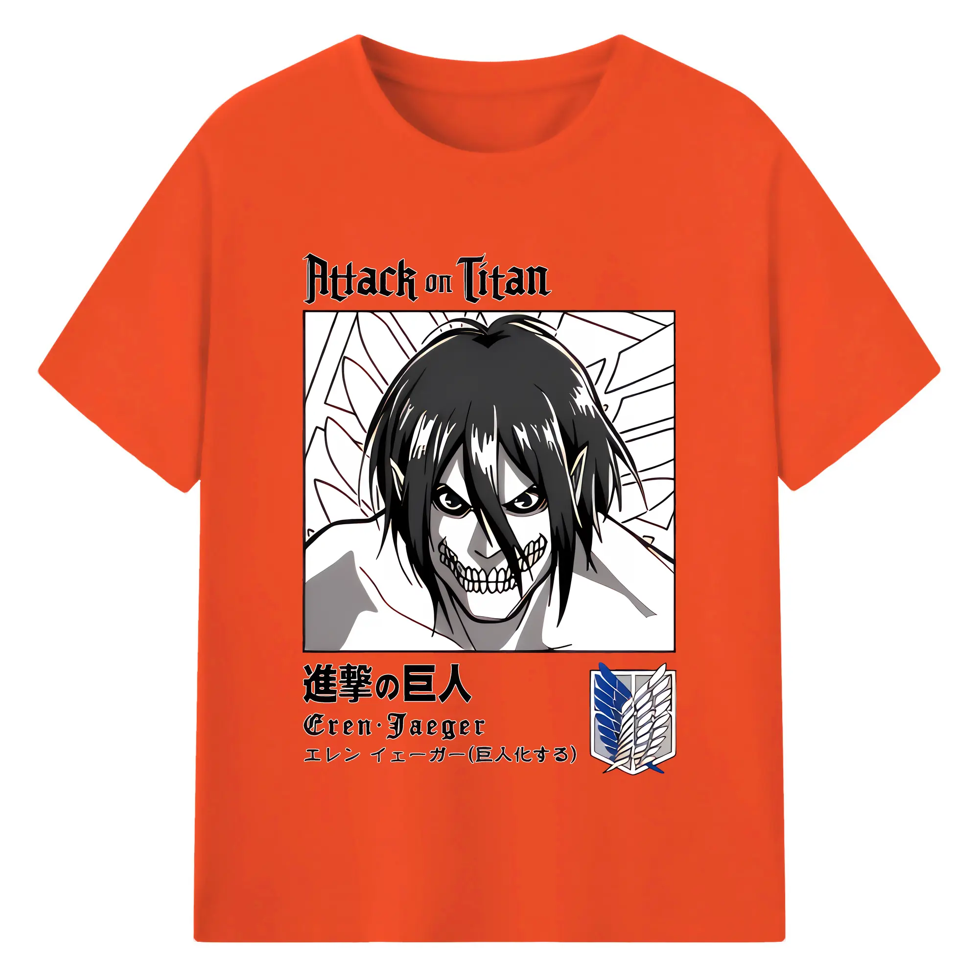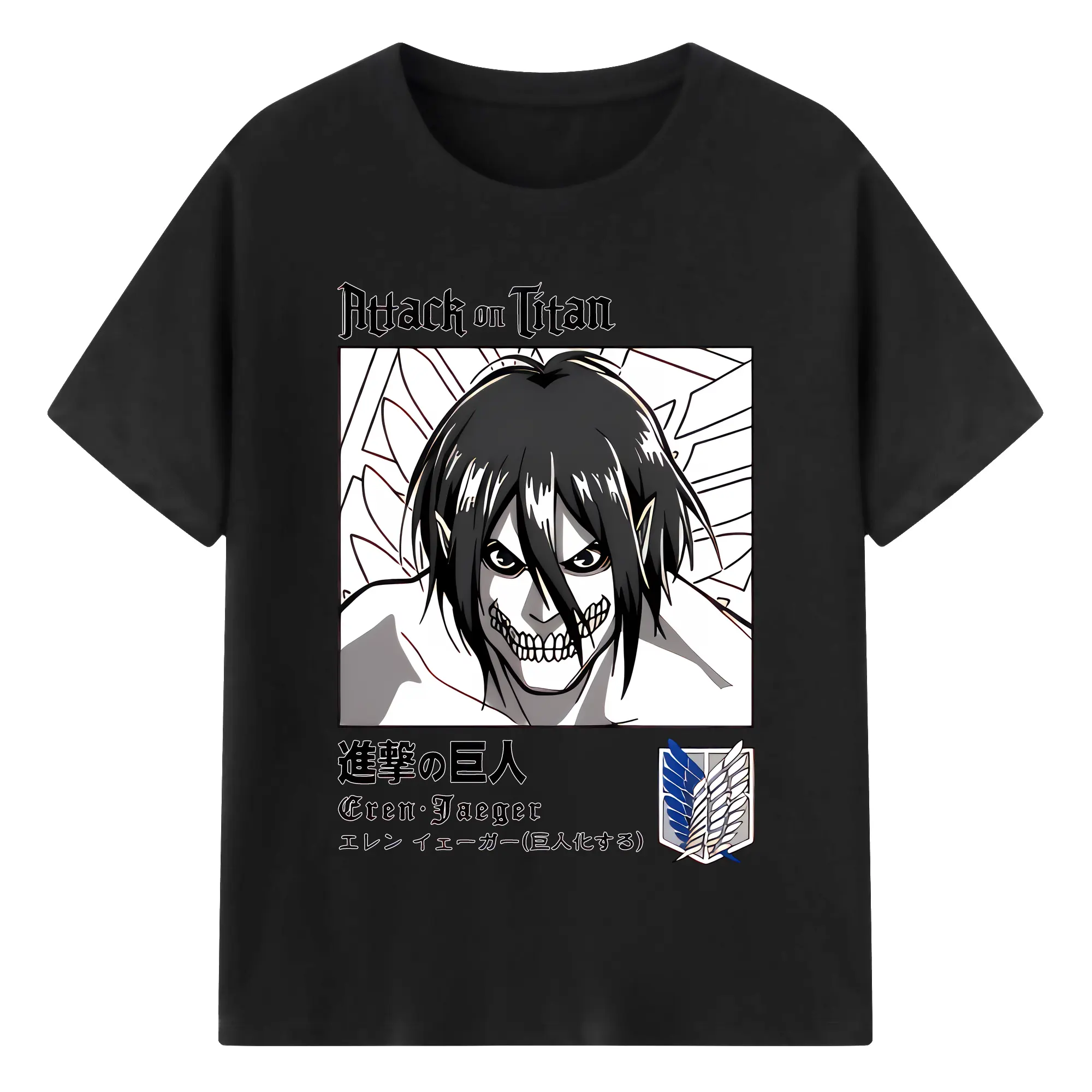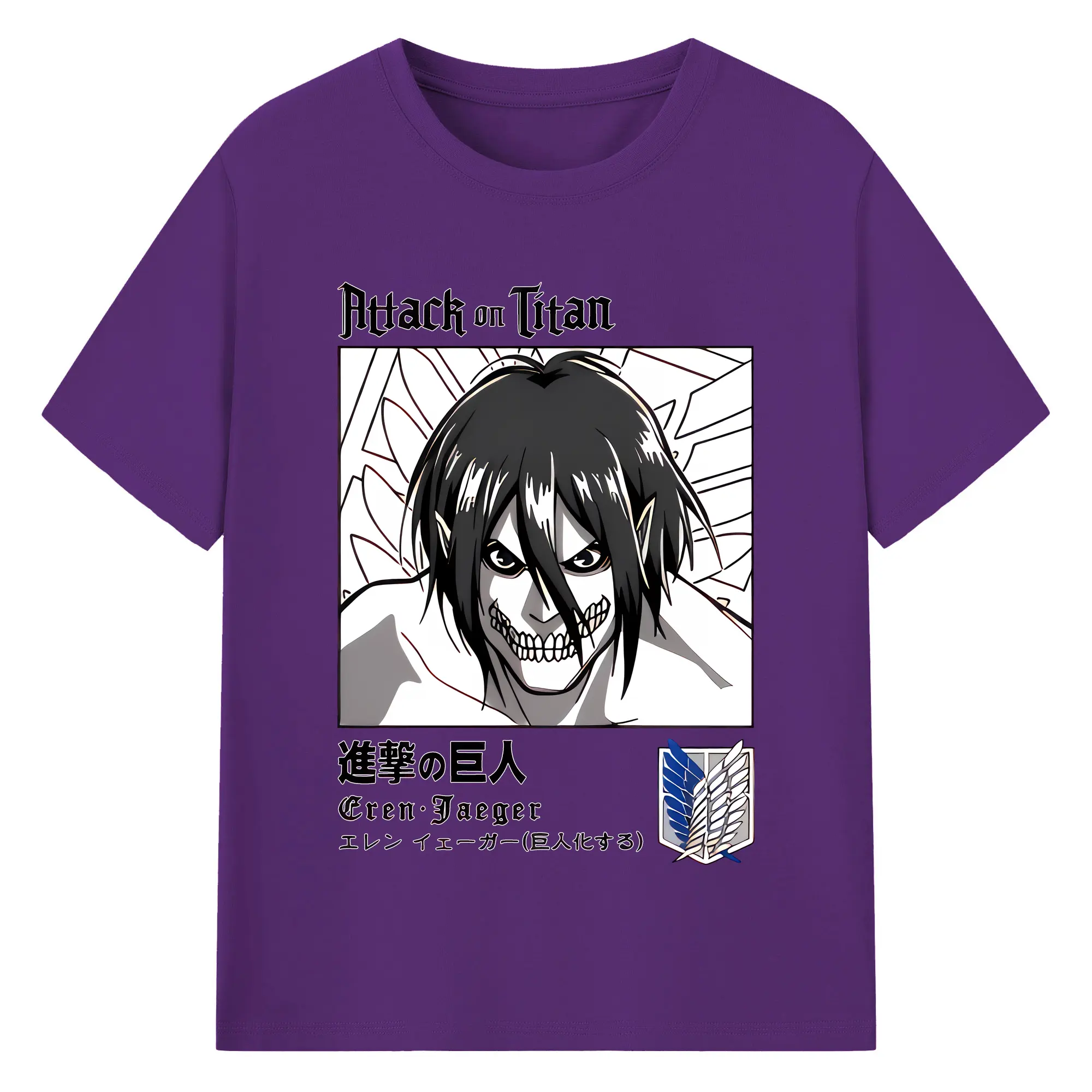 進撃の巨人 グッズ エレン・イェーガー - 綿100% 半袖Tシャツ ・ バックプリント ・ 快適 通気性 ・ 日常使い 散歩 スポーツ用