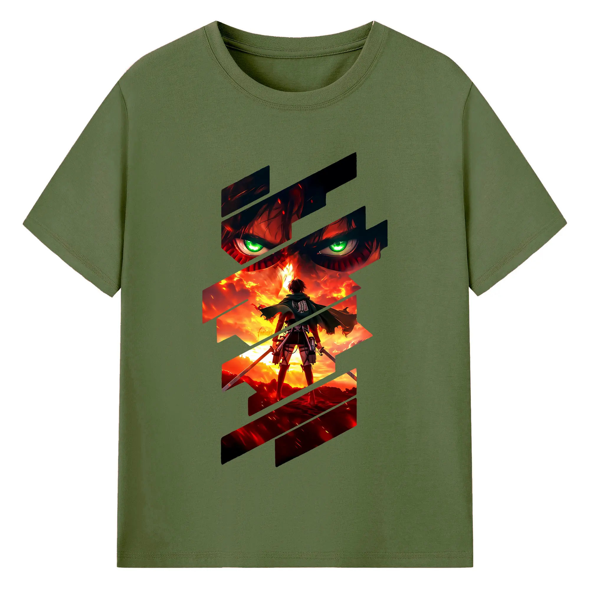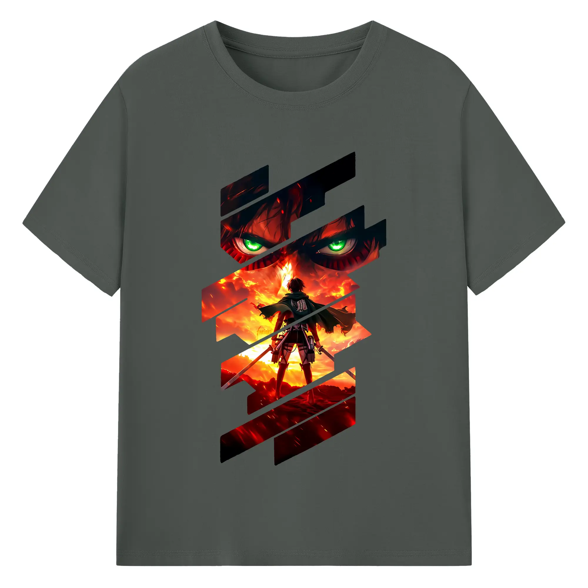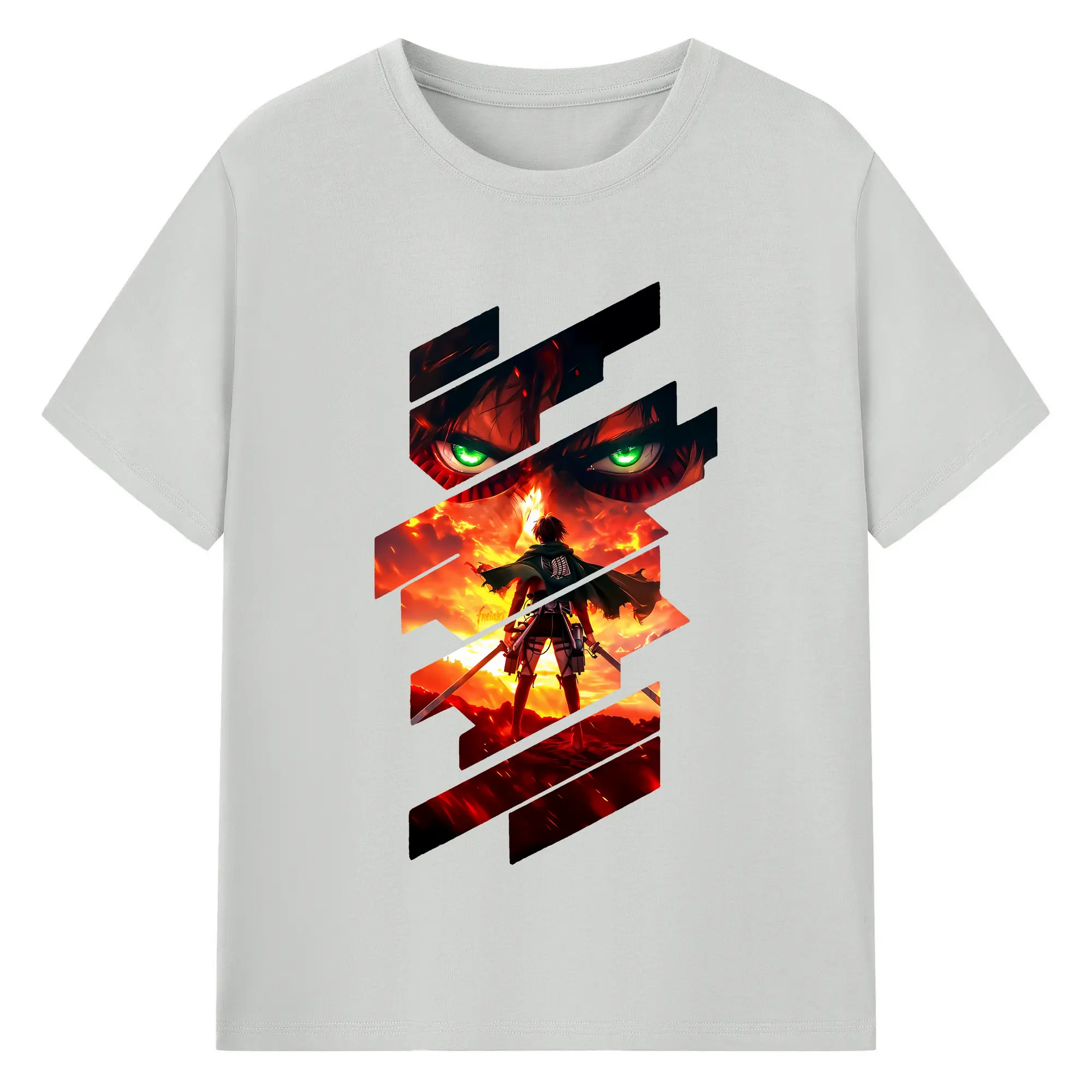 進撃の巨人 グッズ エレン・イェーガー - 綿100% 半袖Tシャツ ・ バックプリント ・ 快適 通気性 ・ 日常使い 散歩 スポーツ用