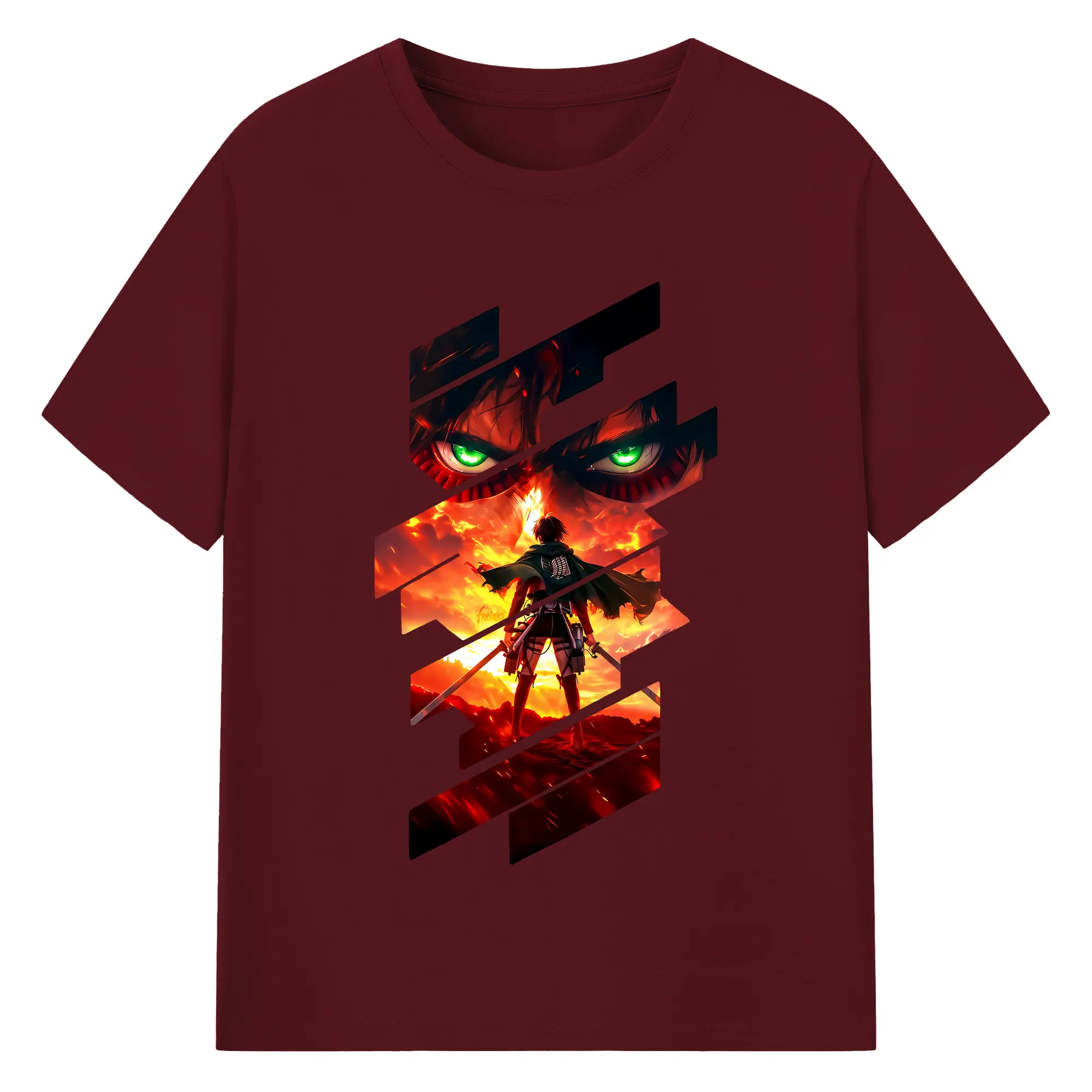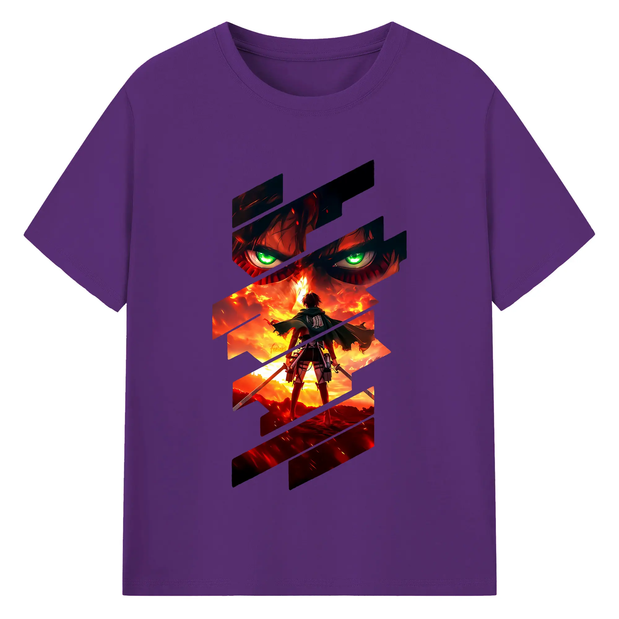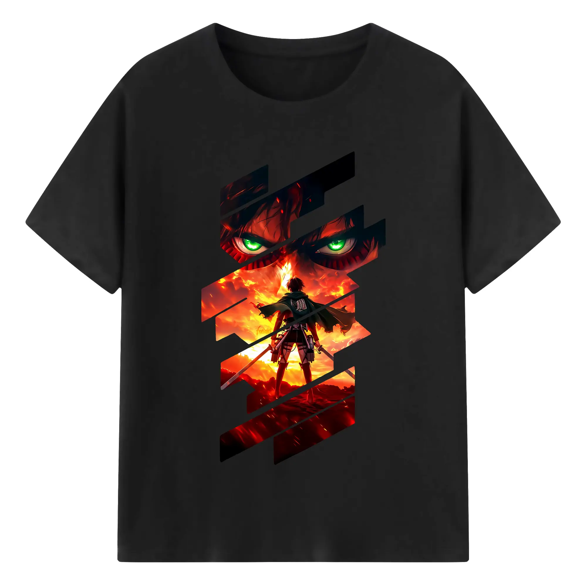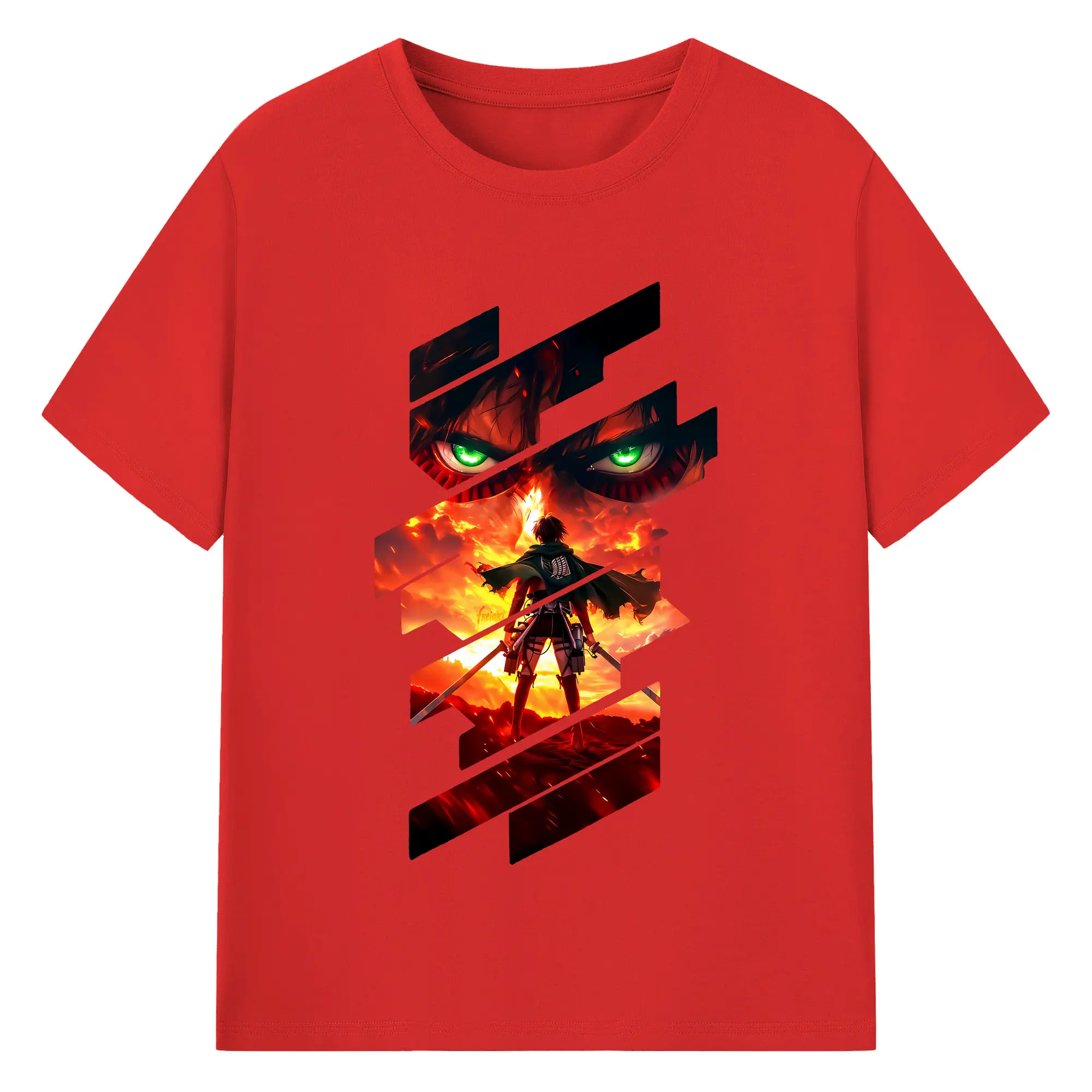 進撃の巨人 グッズ エレン・イェーガー - 綿100% 半袖Tシャツ ・ バックプリント ・ 快適 通気性 ・ 日常使い 散歩 スポーツ用