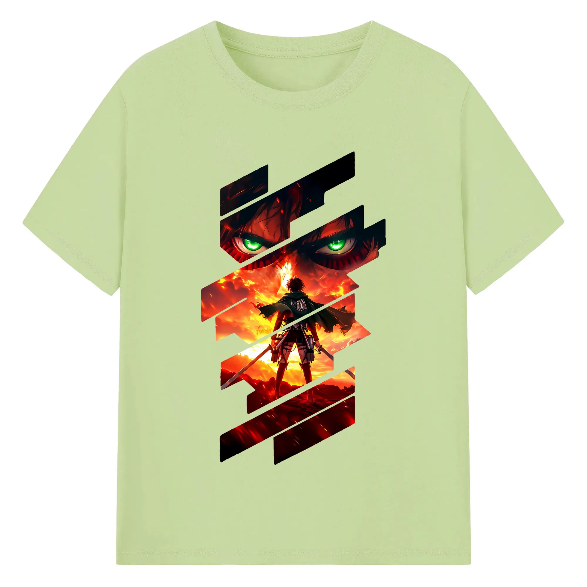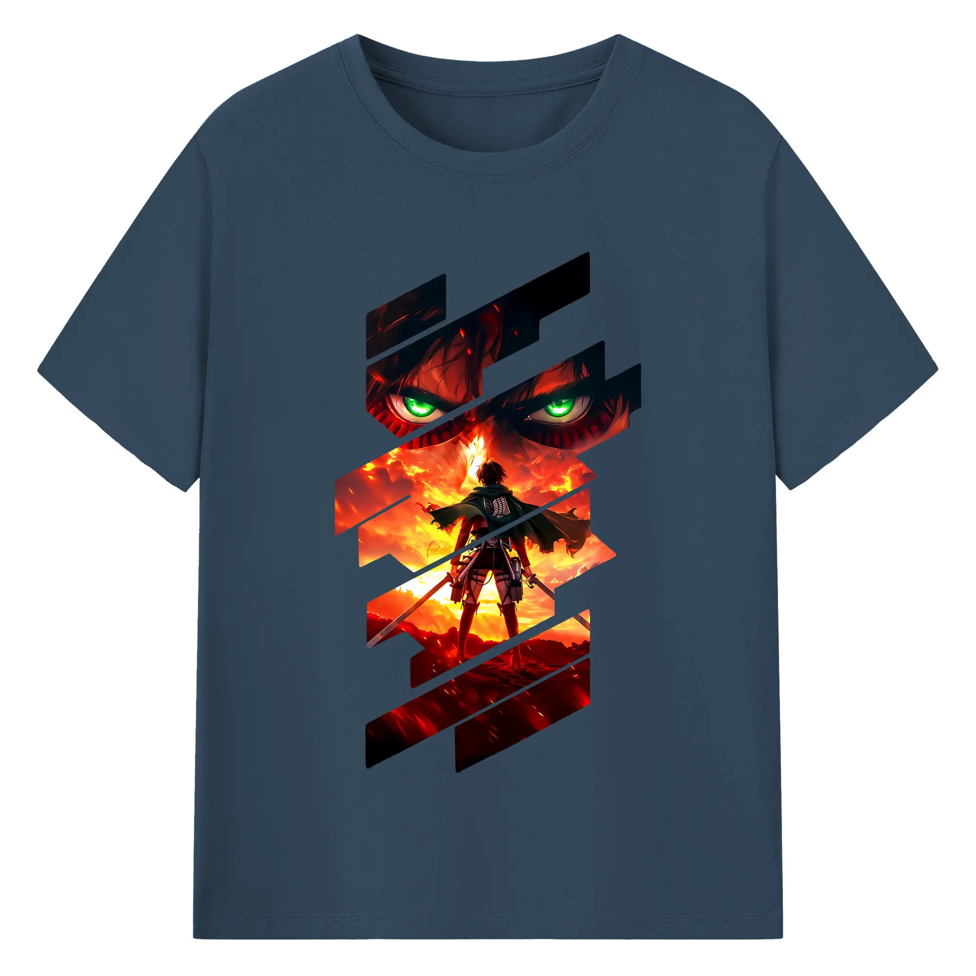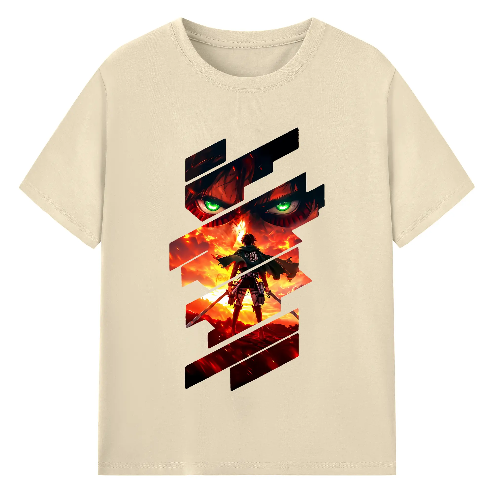 進撃の巨人 グッズ エレン・イェーガー - 綿100% ヴィンテージ風 半袖Tシャツ ・ フロントプリント ・ 柔らか肌触り ・ 通気性 快適 ・ スポーツ カジュアル 外出用