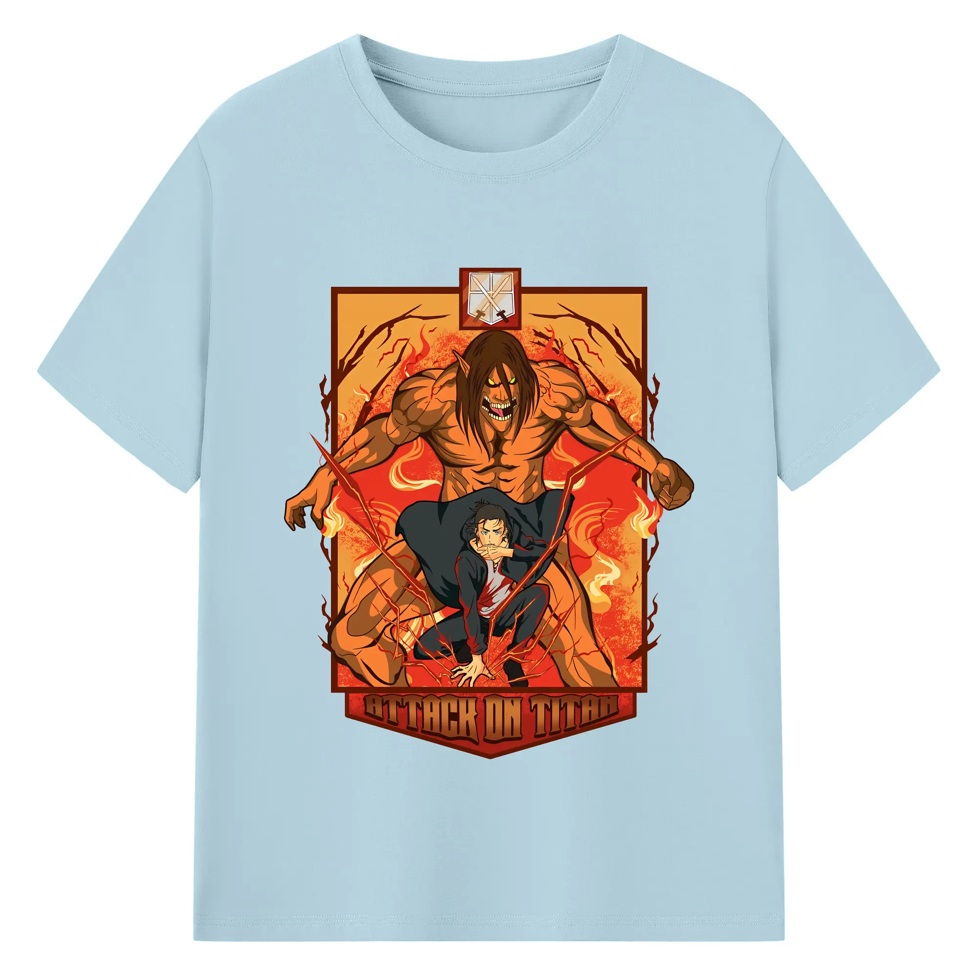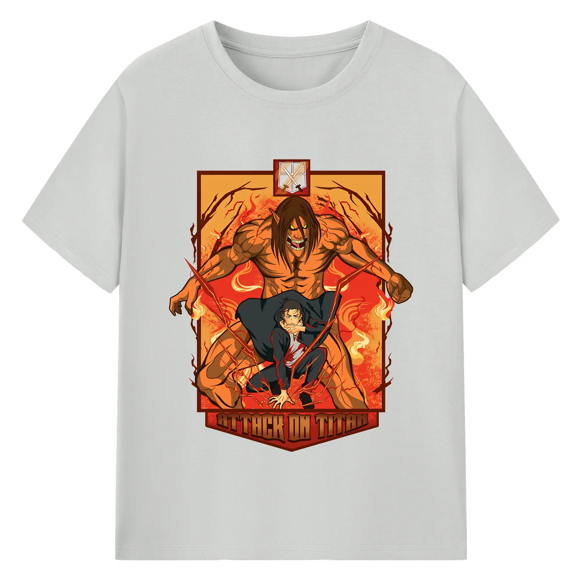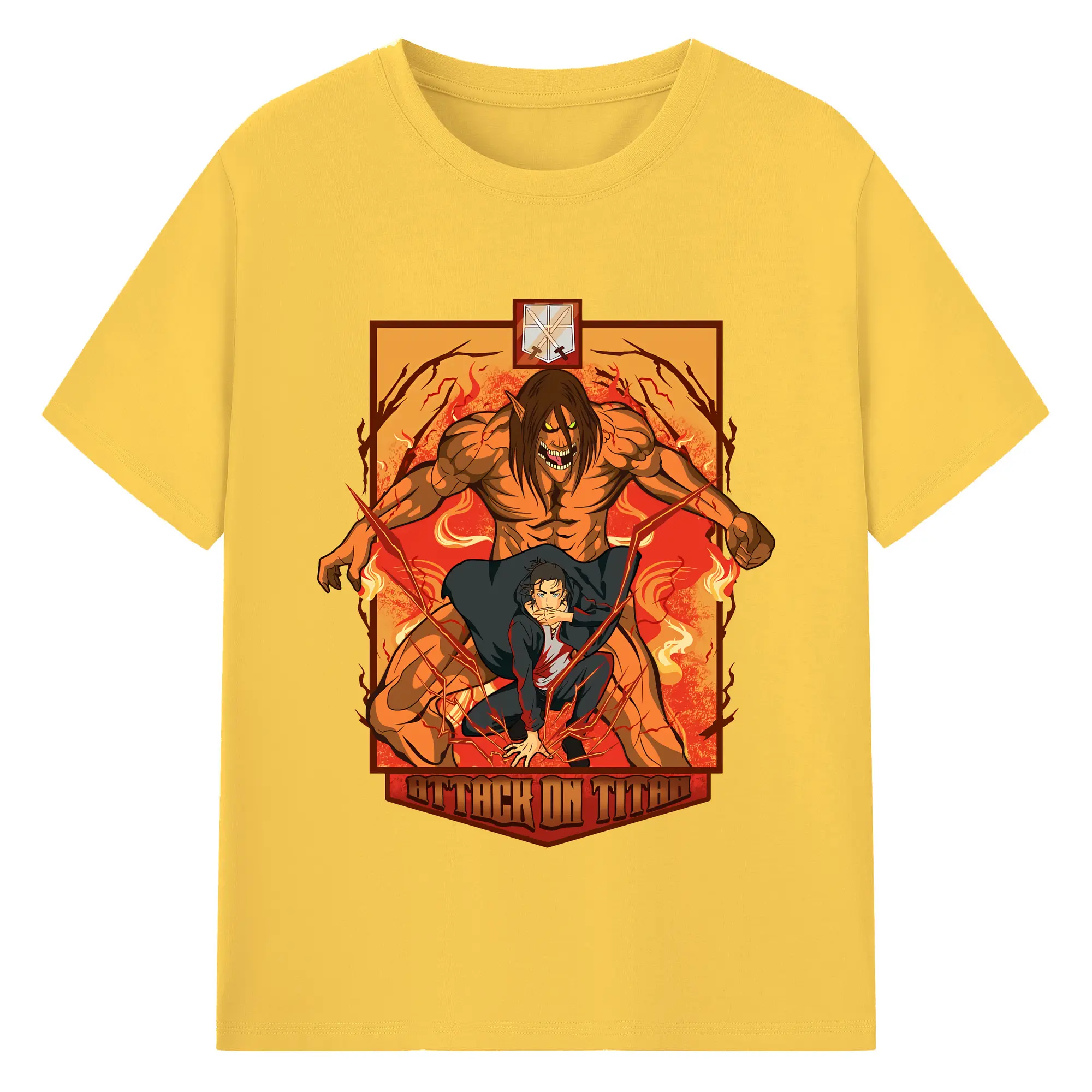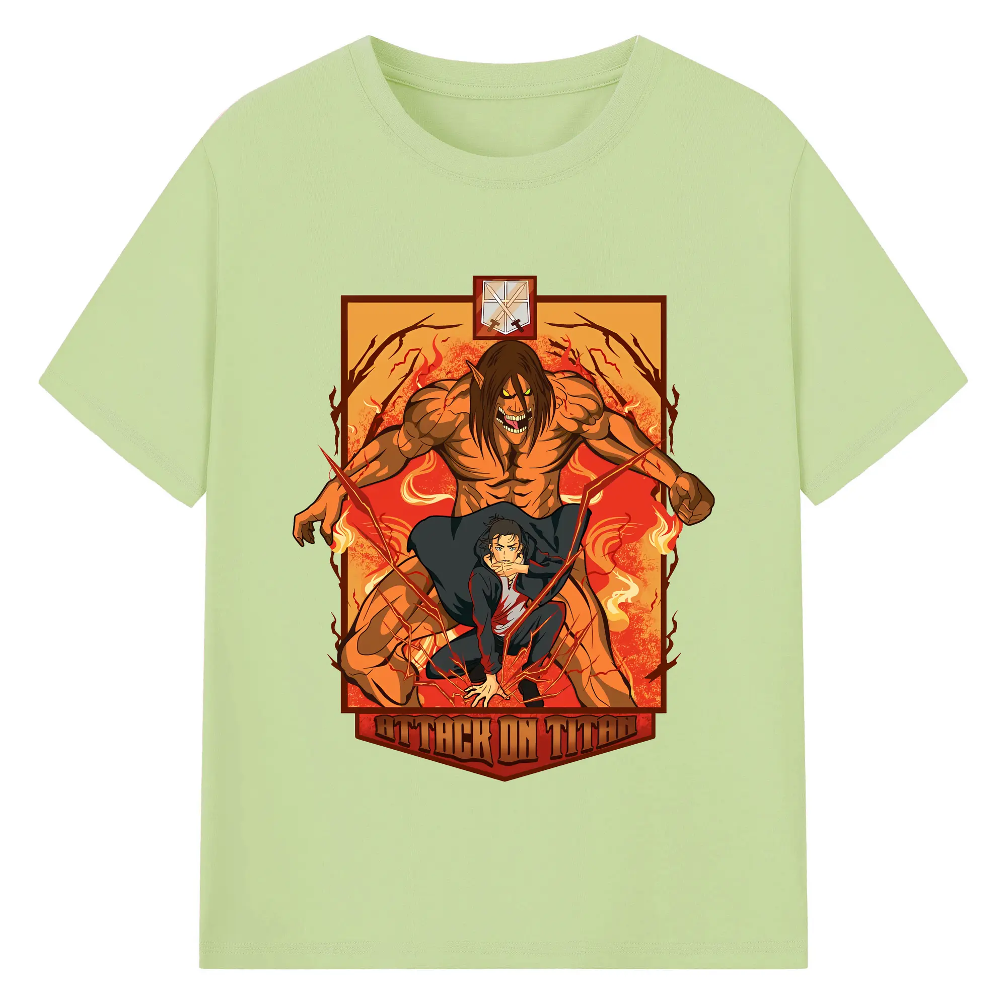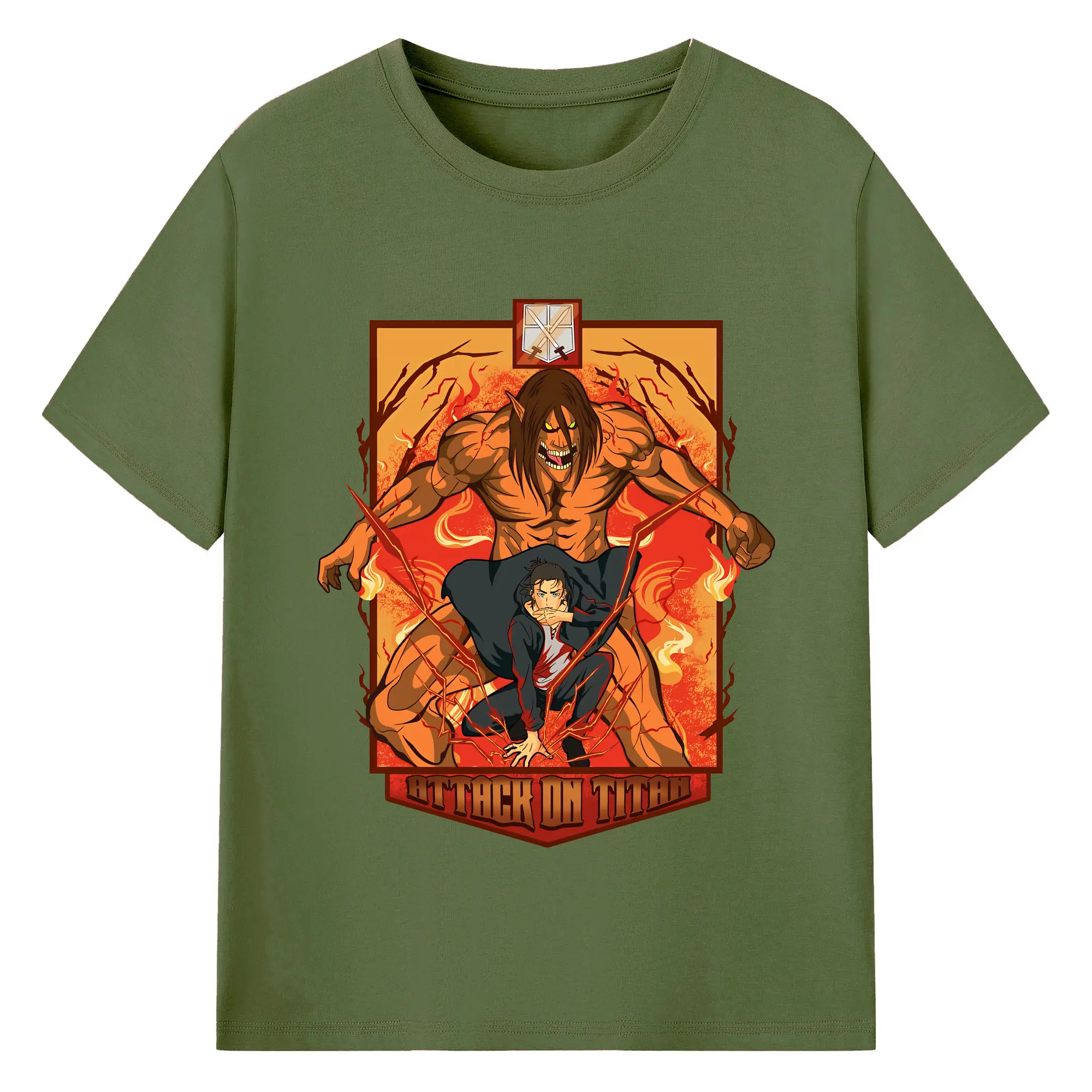 進撃の巨人 グッズ エレン・イェーガー - 綿100% 半袖Tシャツ ・ バックプリント ・ 快適 通気性 ・ 日常使い 散歩 スポーツ用