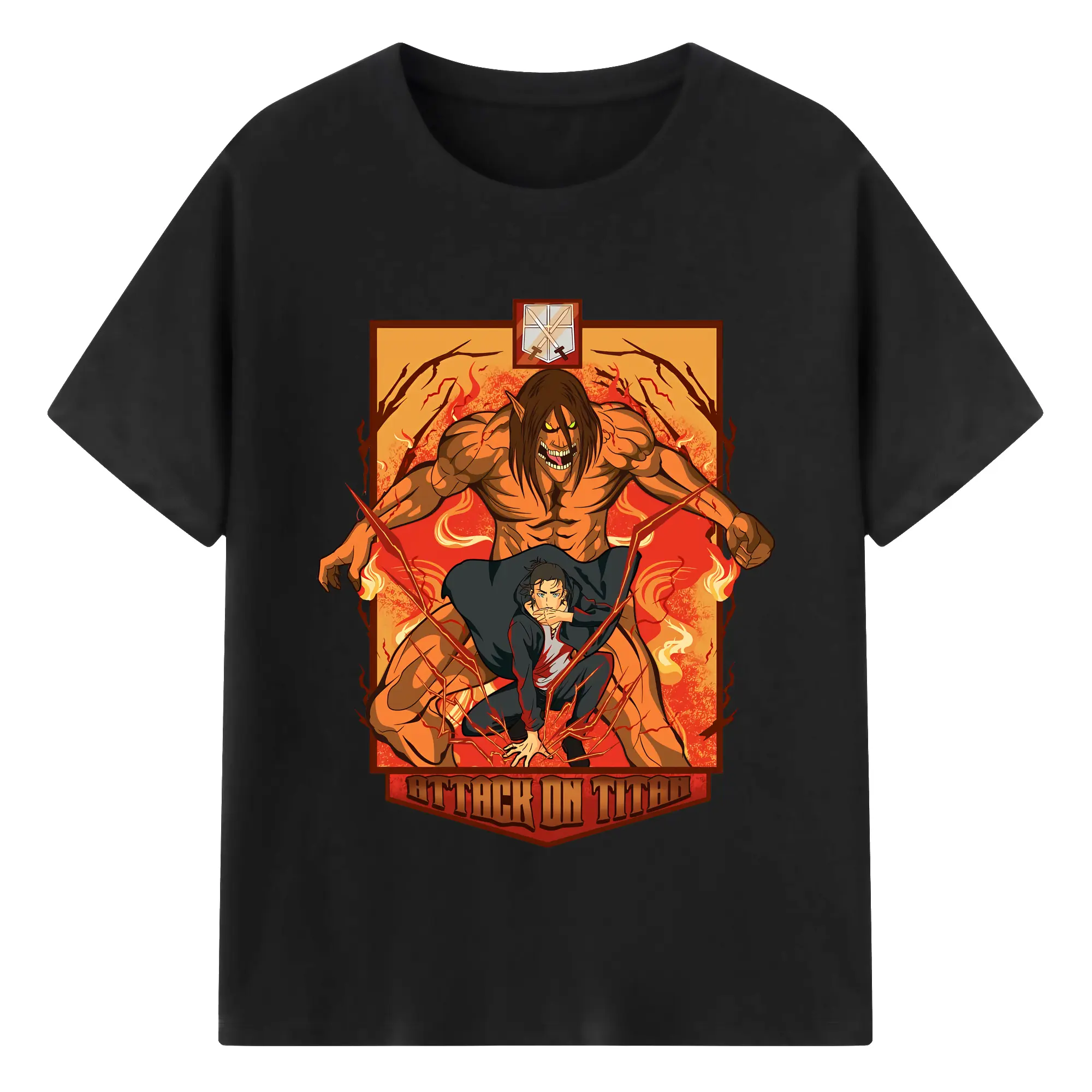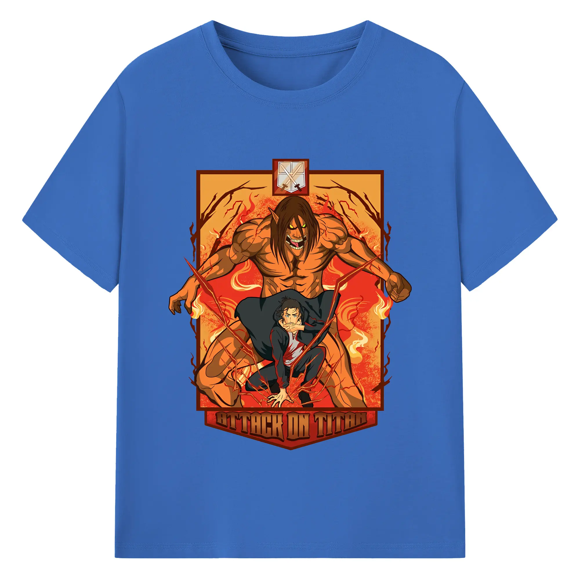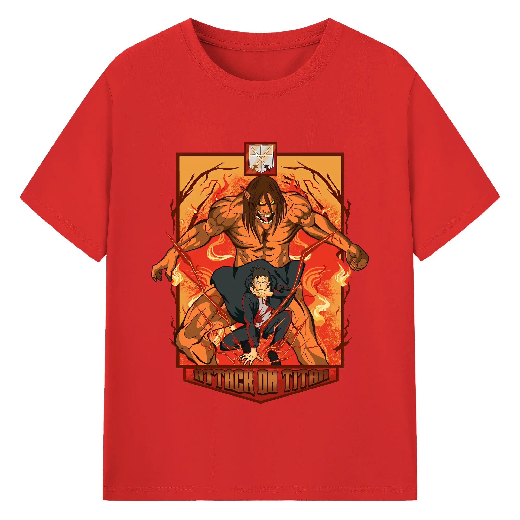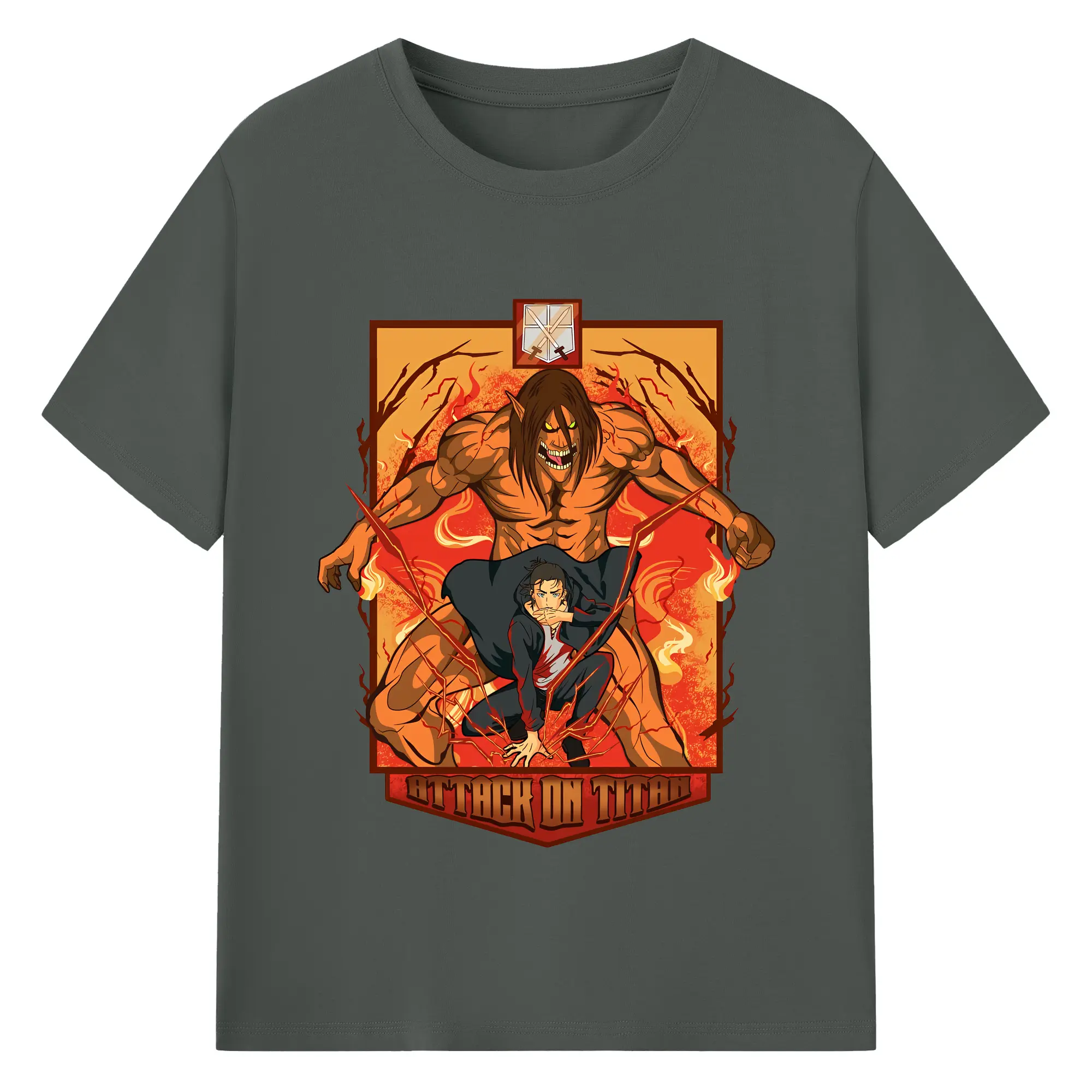 進撃の巨人 グッズ エレン・イェーガー - 綿100% 半袖Tシャツ ・ バックプリント ・ 快適 通気性 ・ 日常使い 散歩 スポーツ用