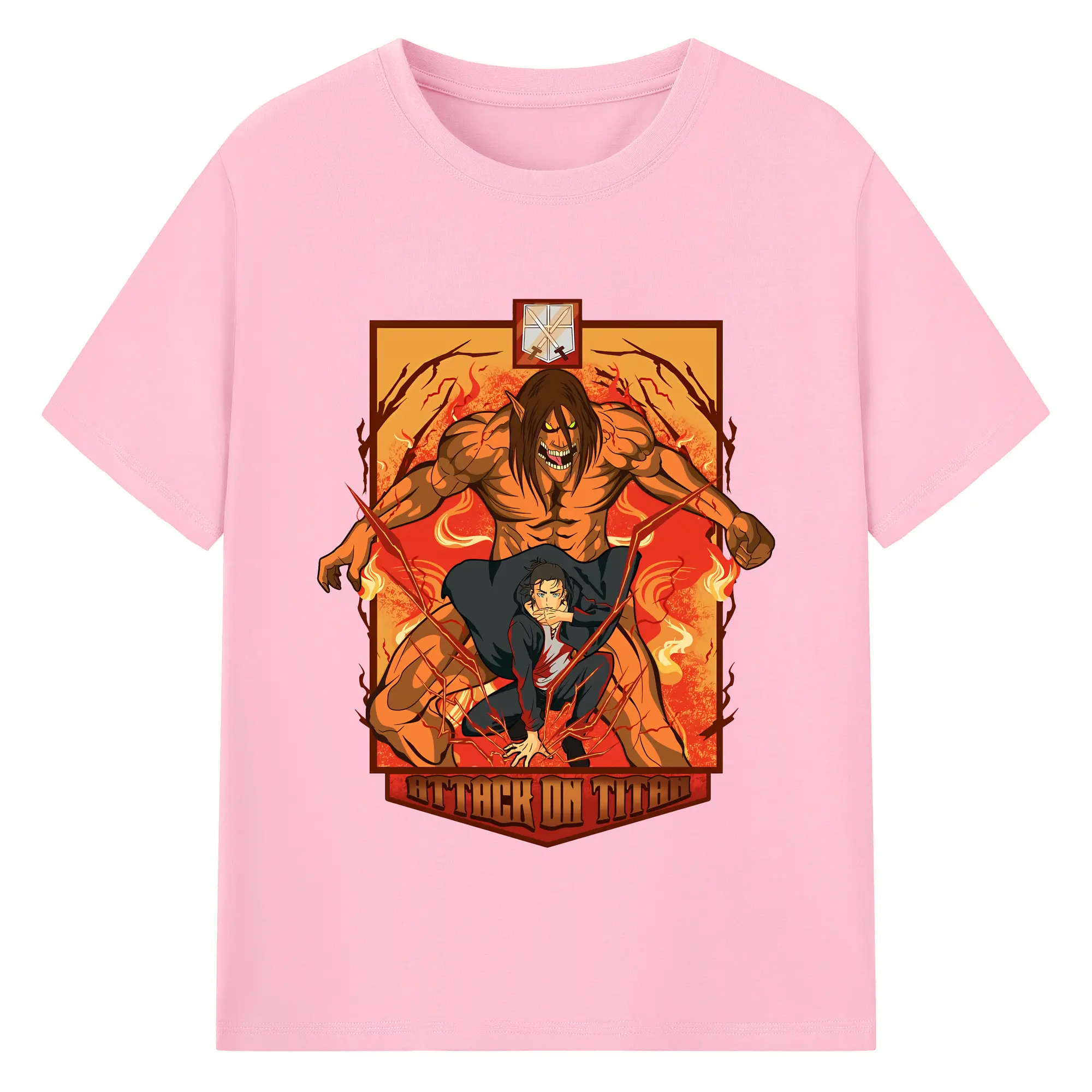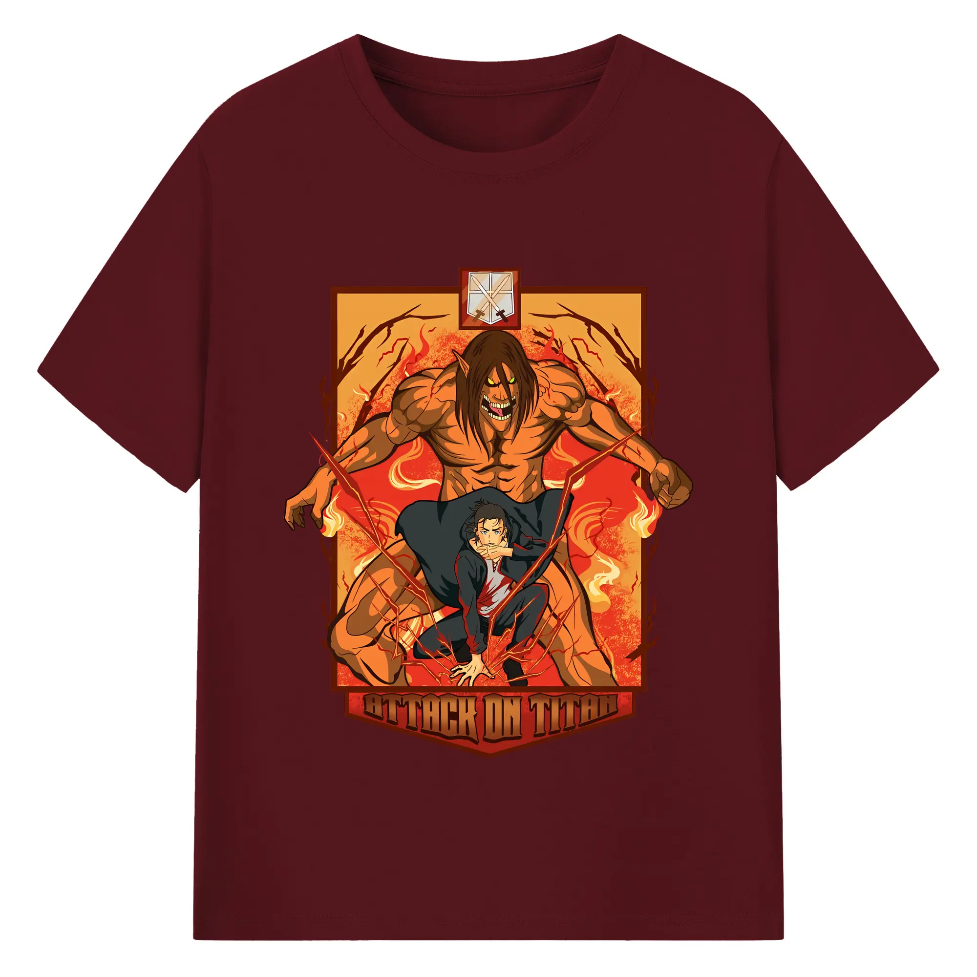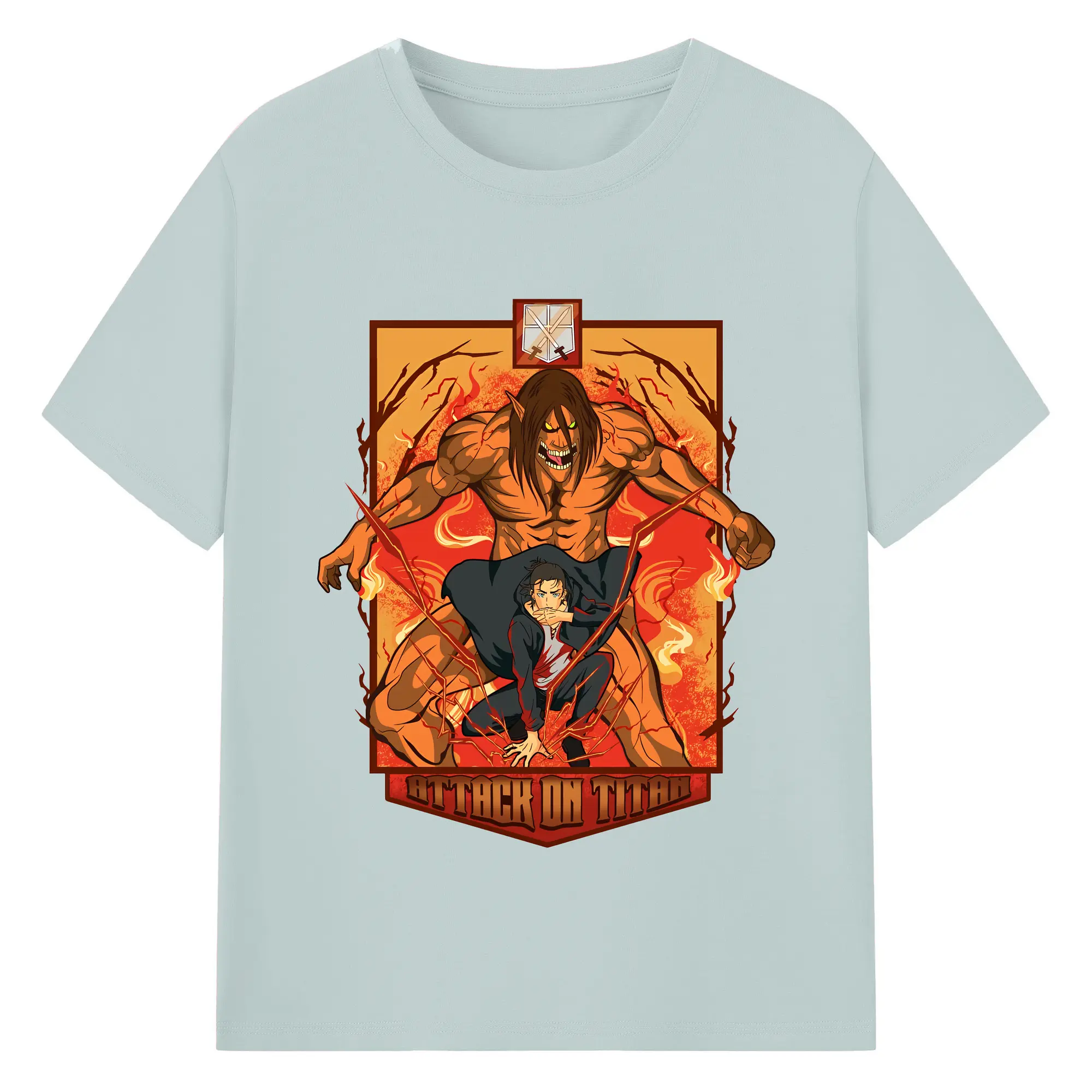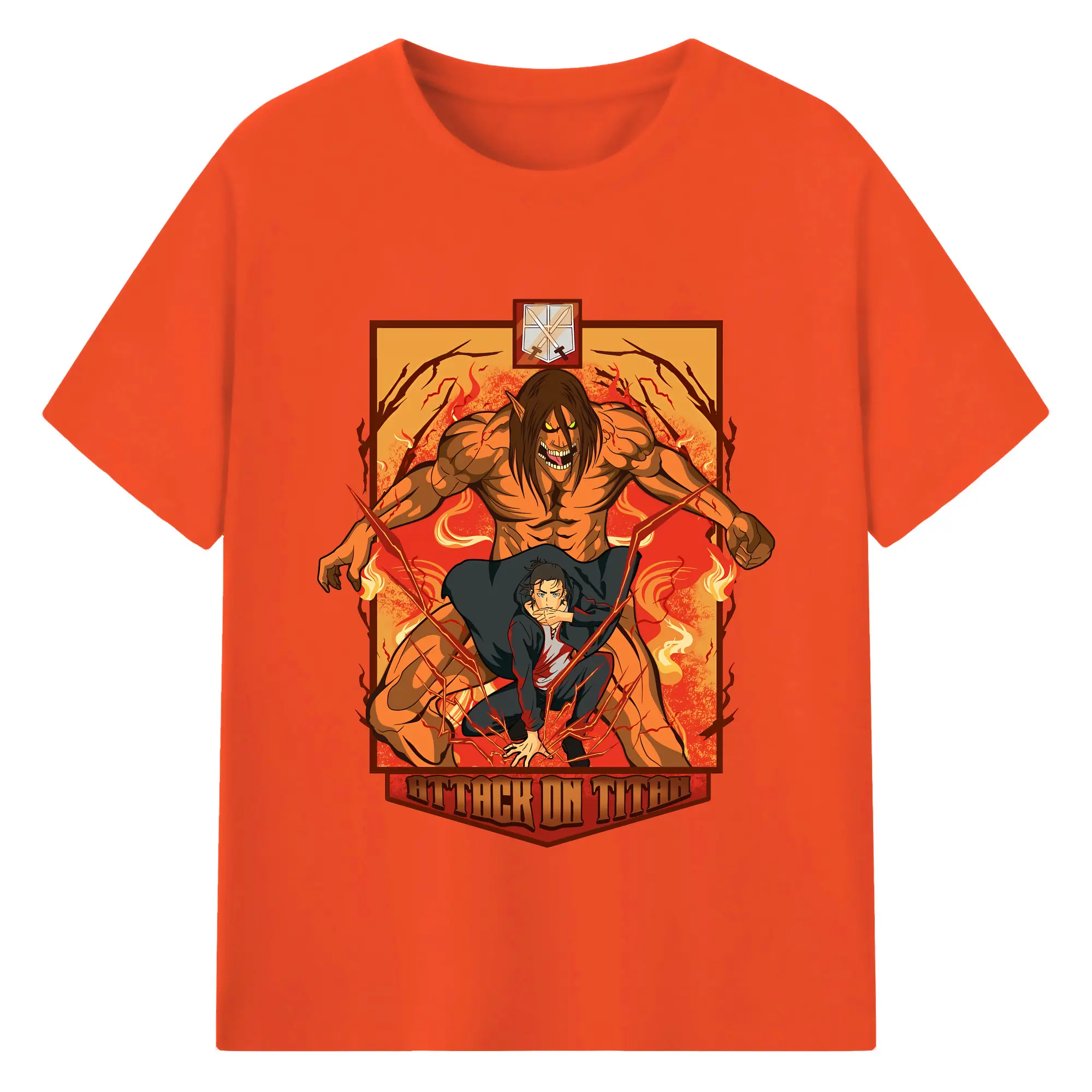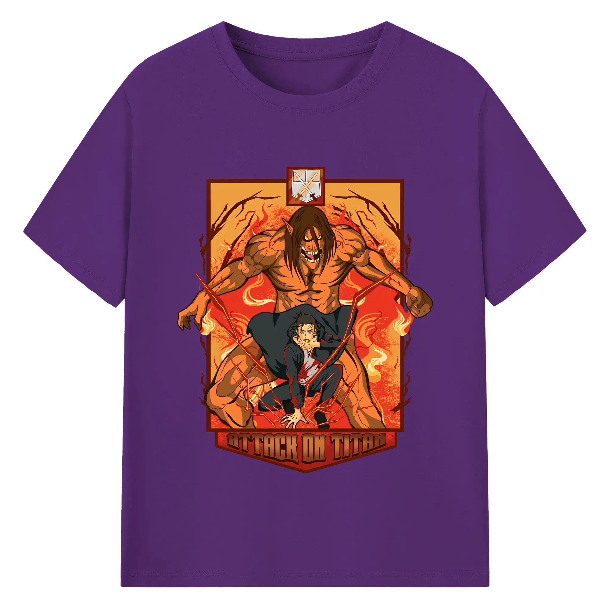 進撃の巨人 グッズ エレン・イェーガー - 綿100% 半袖Tシャツ ・ バックプリント ・ 快適 通気性 ・ 日常使い 散歩 スポーツ用
