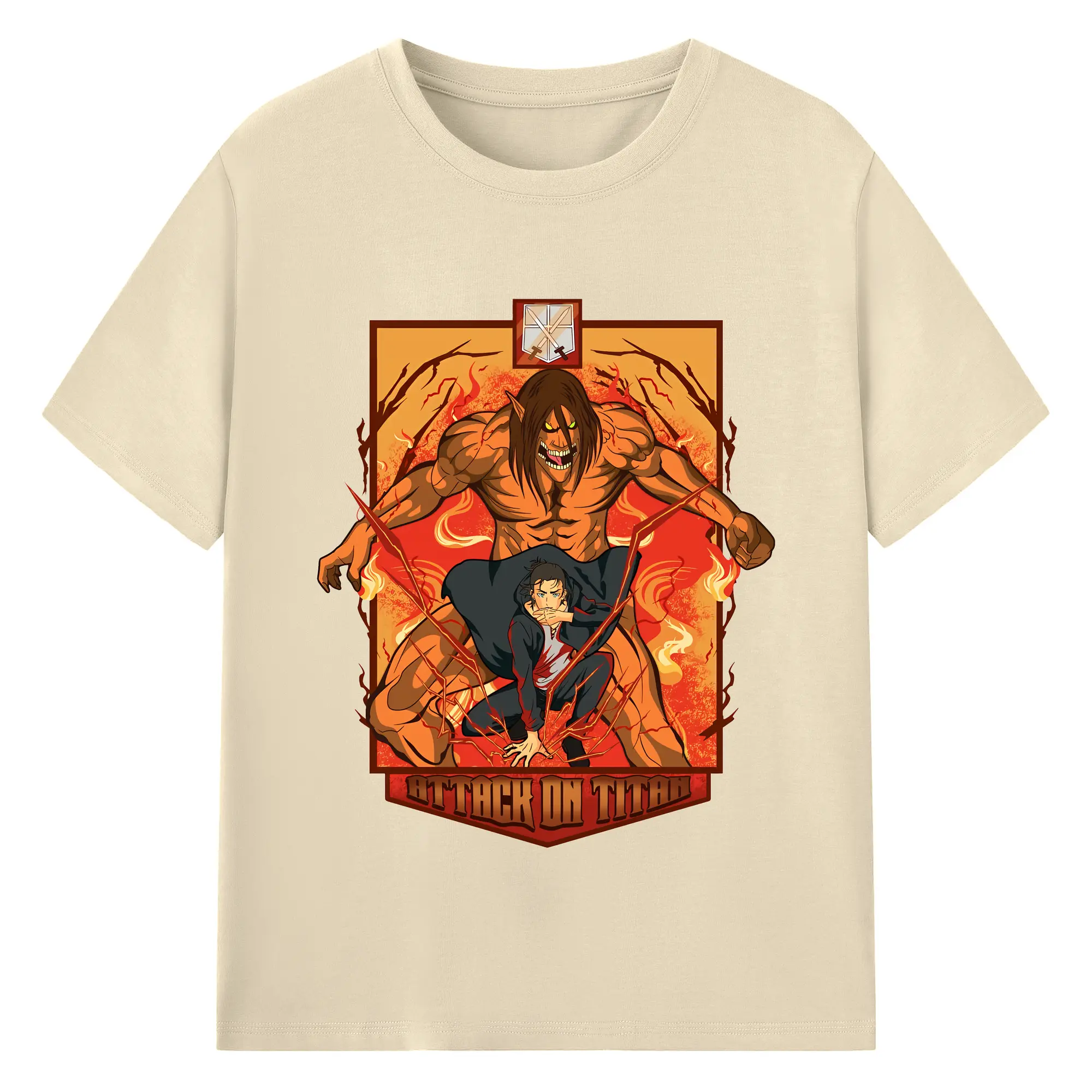 進撃の巨人 グッズ エレン・イェーガー - 綿100% ヴィンテージ風 半袖Tシャツ ・ フロントプリント ・ 柔らか肌触り ・ 通気性 快適 ・ スポーツ カジュアル 外出用