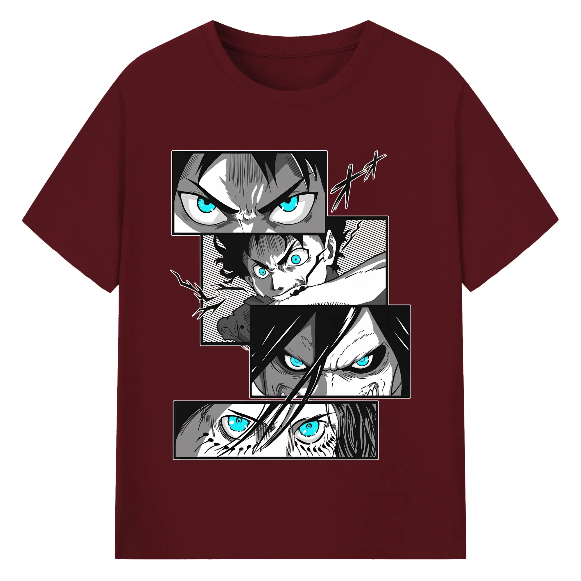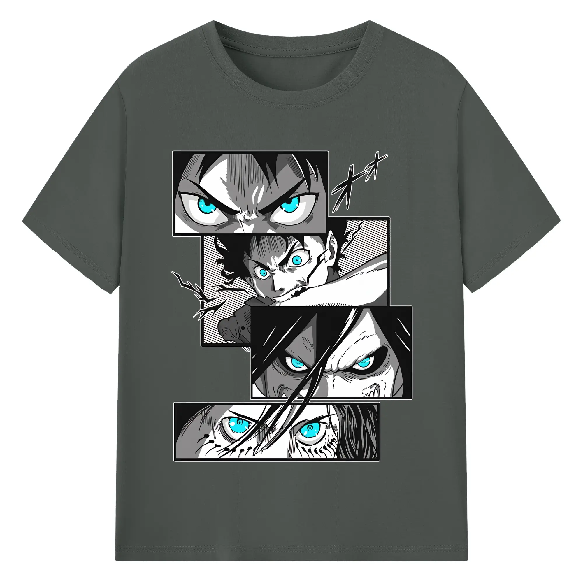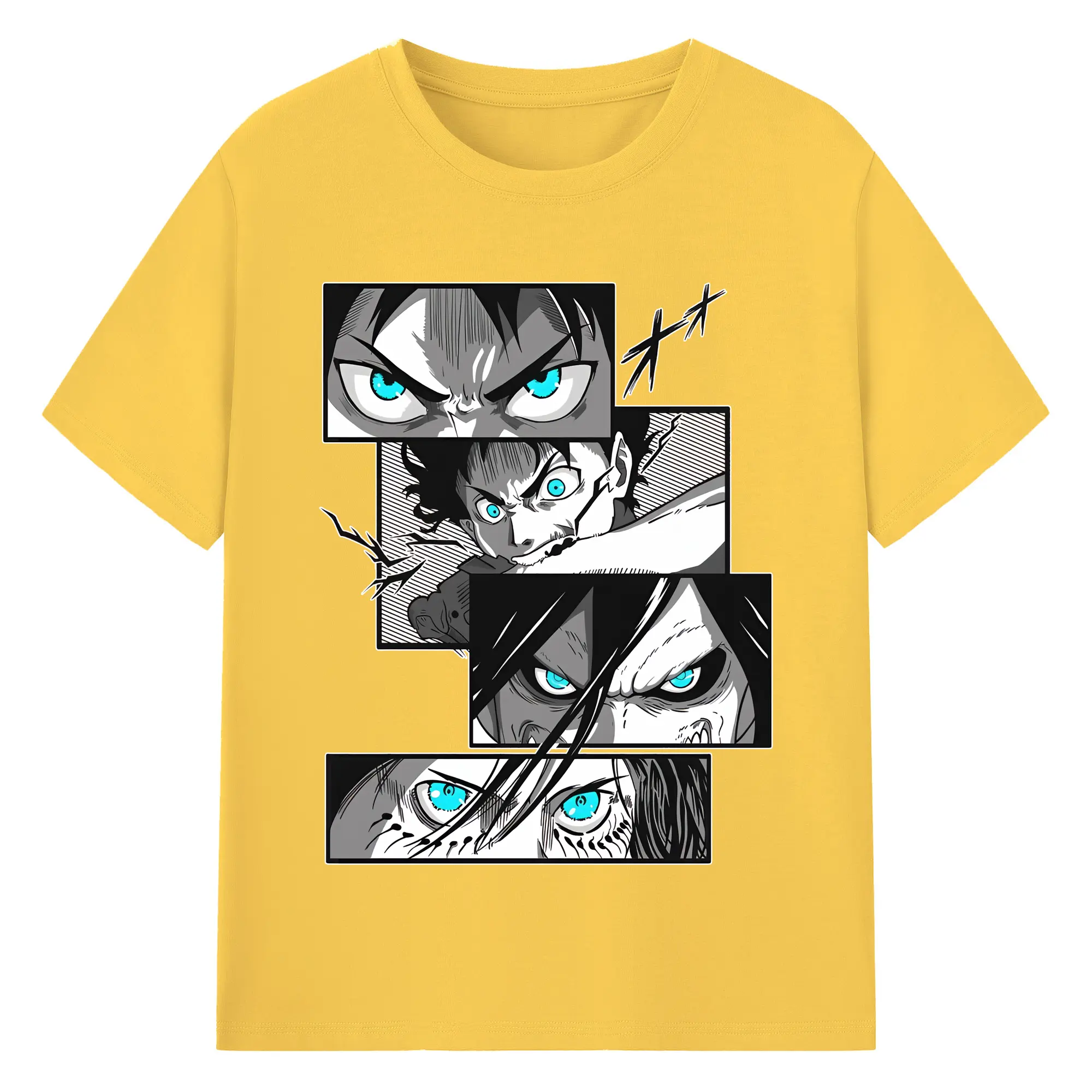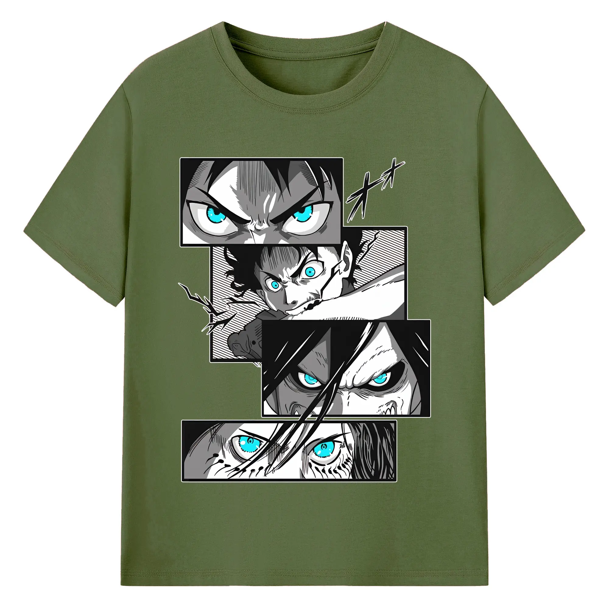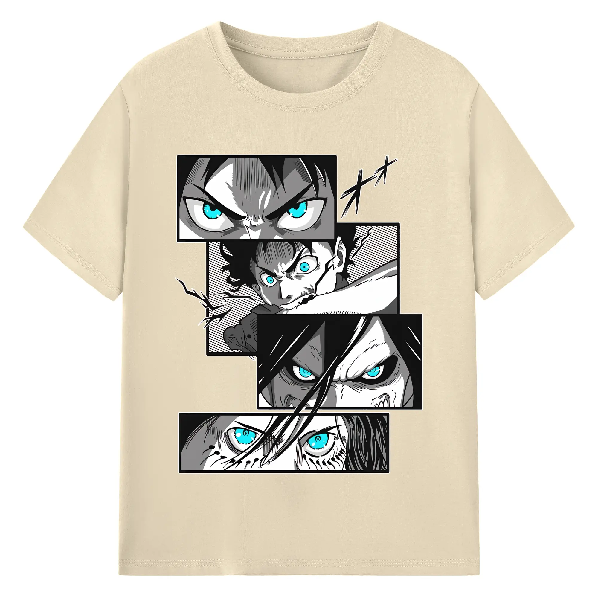 進撃の巨人 グッズ エレン・イェーガー - 綿100% ヴィンテージ風 半袖Tシャツ ・ フロントプリント ・ 柔らか肌触り ・ 通気性 快適 ・ スポーツ カジュアル 外出用
