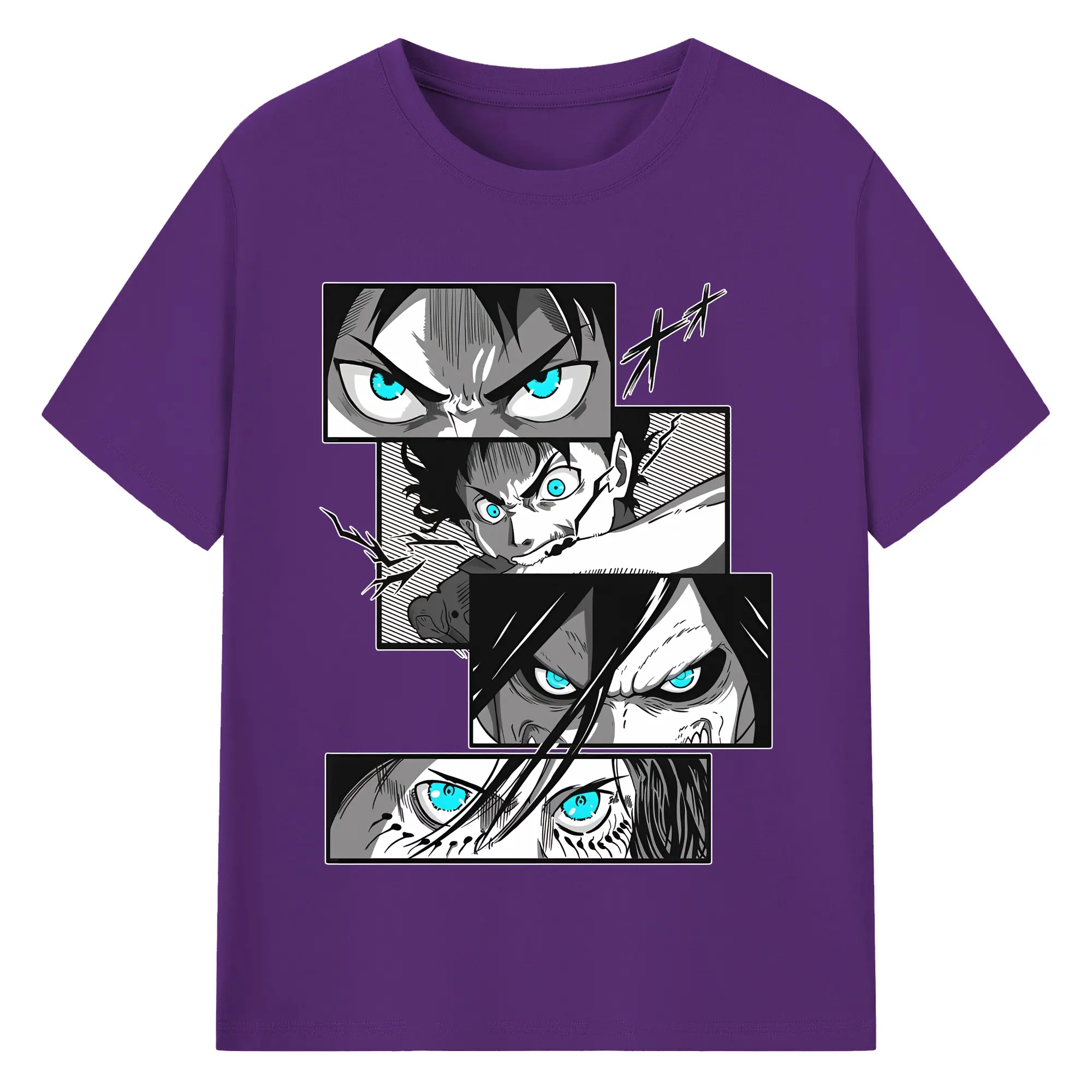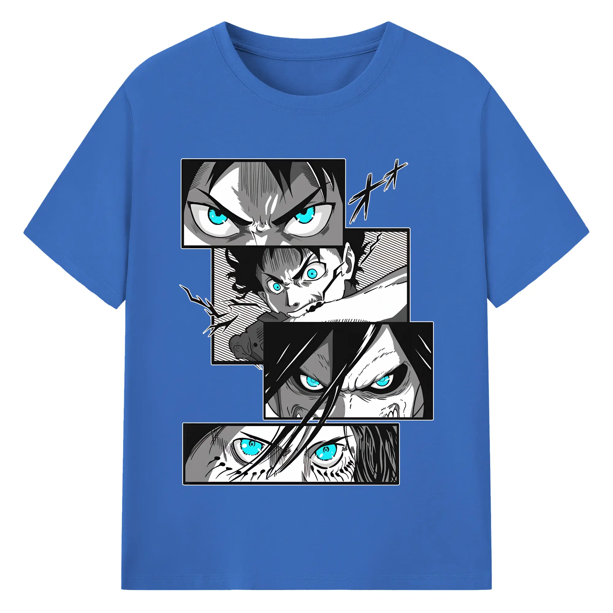 進撃の巨人 グッズ エレン・イェーガー - 綿100% 半袖Tシャツ ・ バックプリント ・ 快適 通気性 ・ 日常使い 散歩 スポーツ用