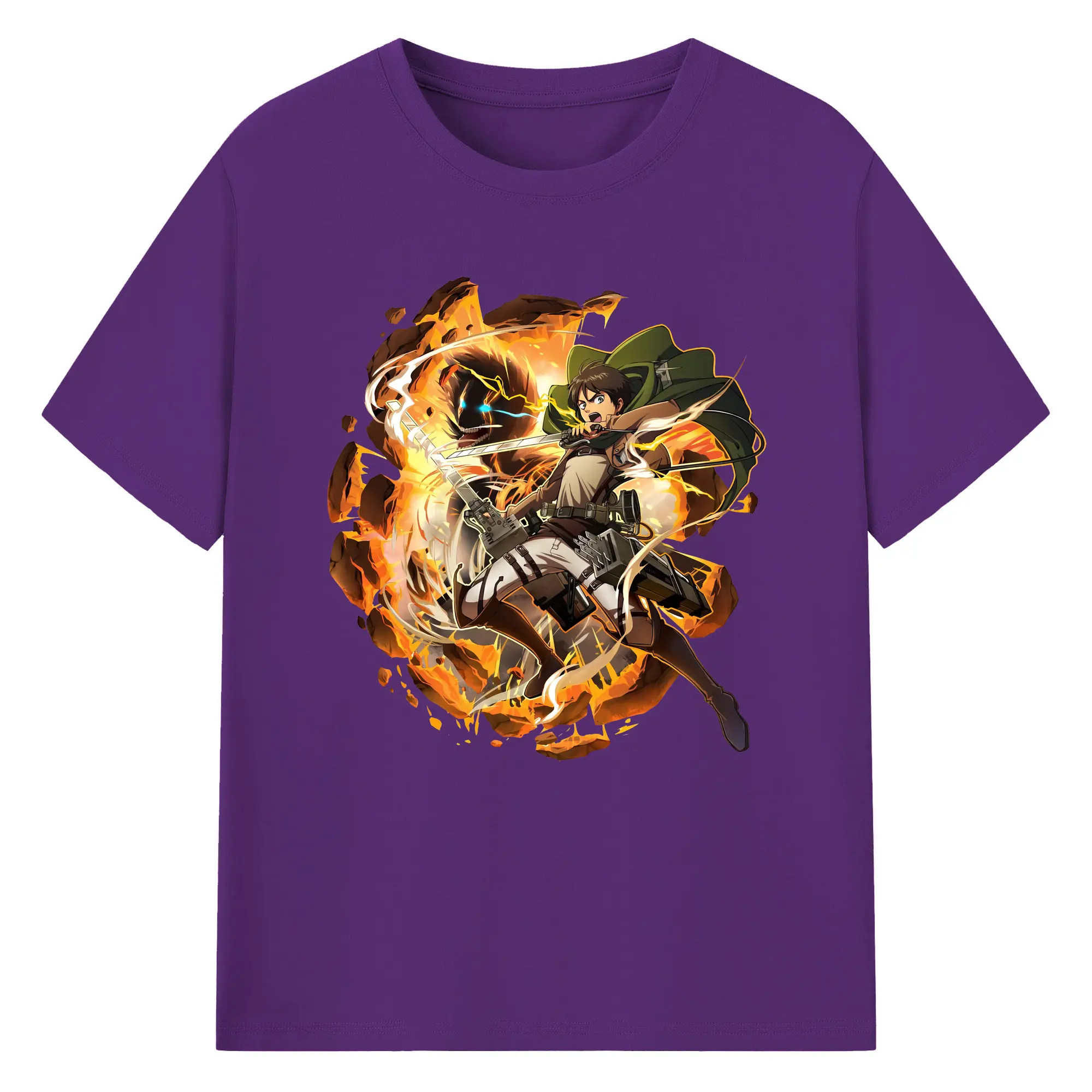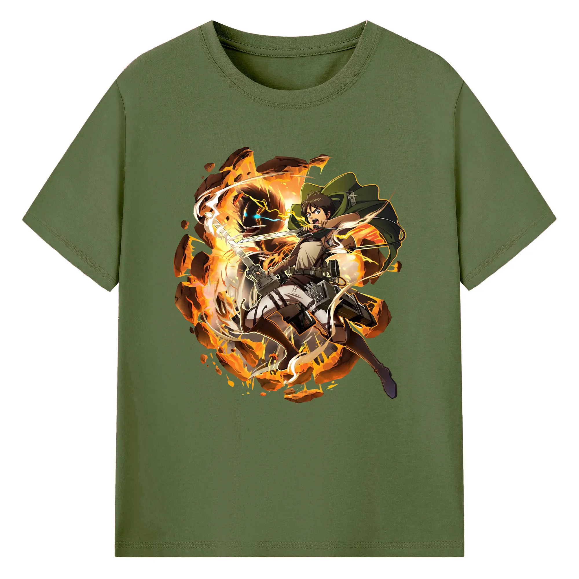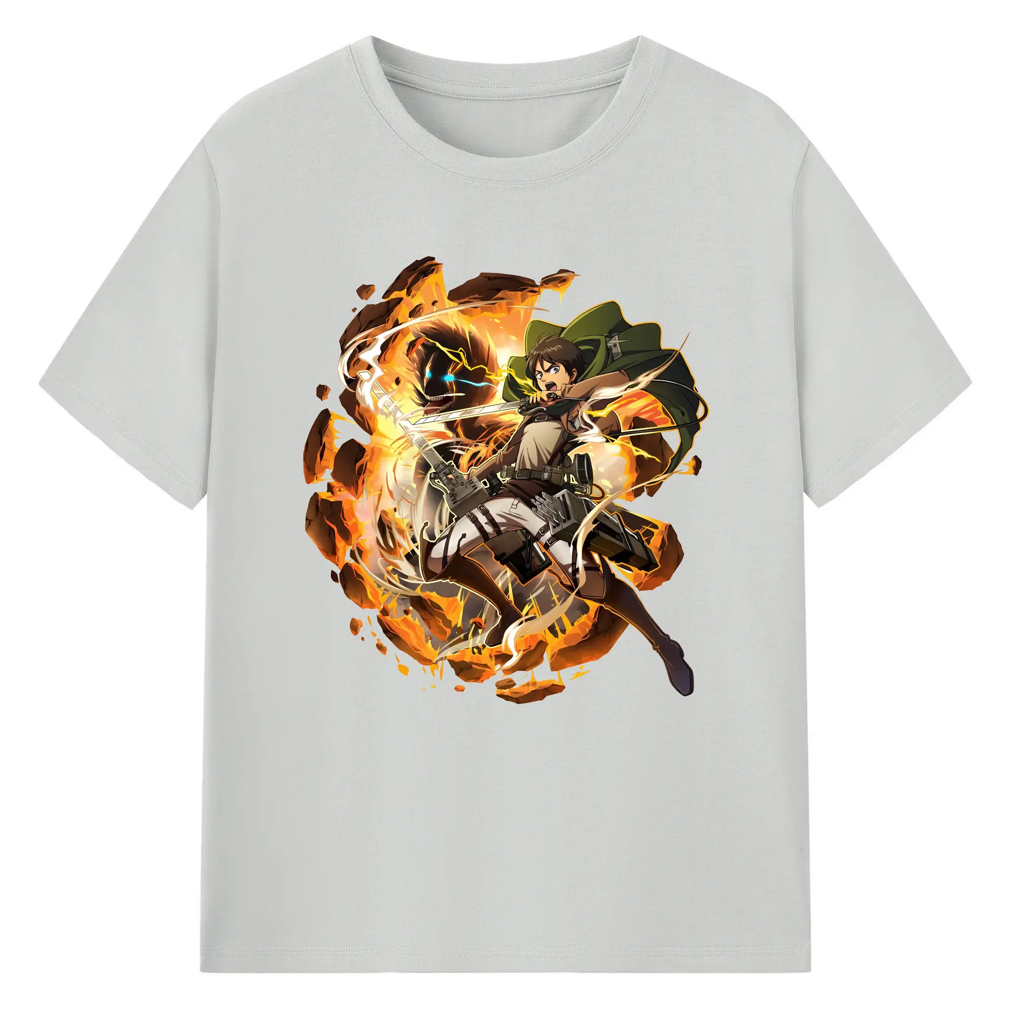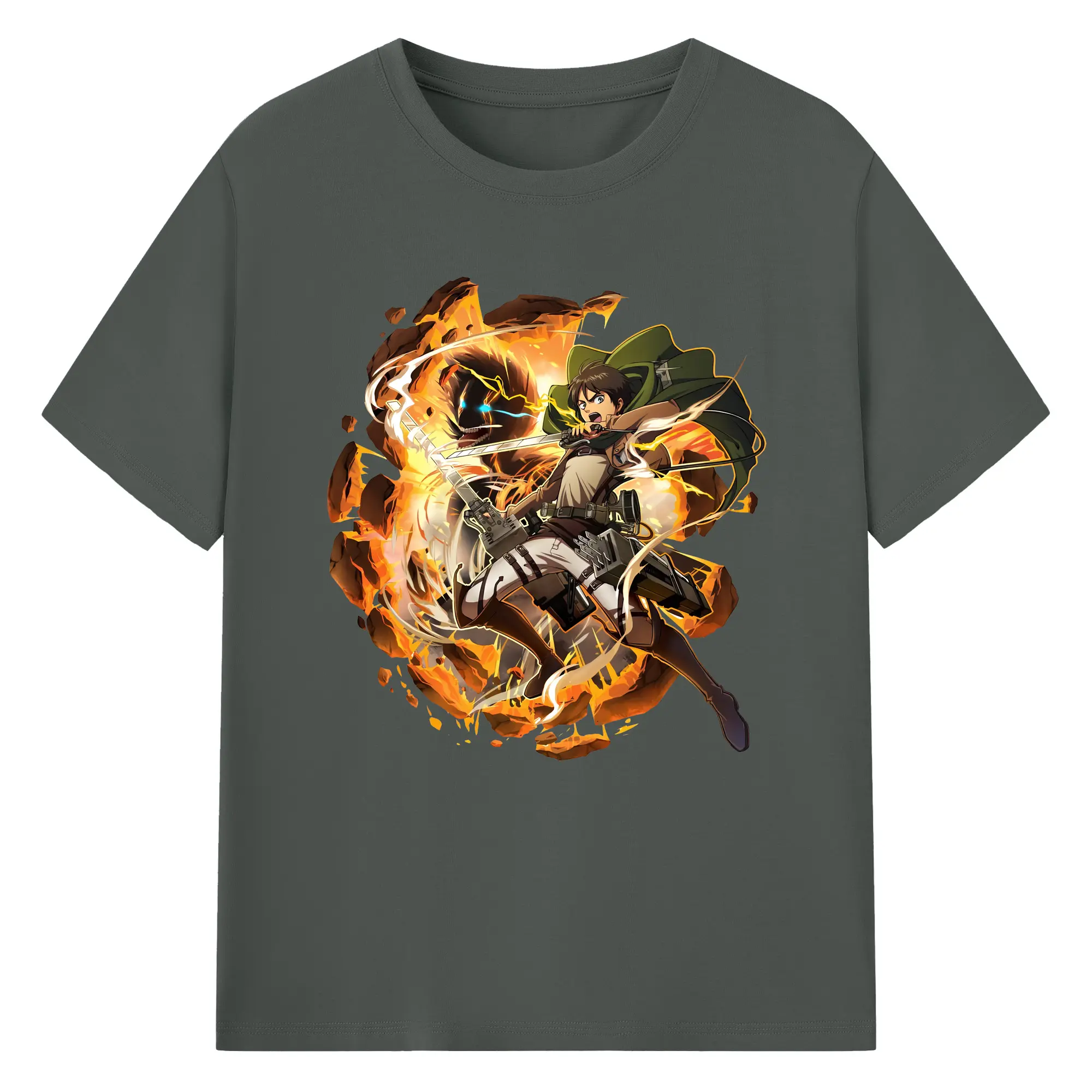 進撃の巨人 グッズ エレン・イェーガー - 綿100% 半袖Tシャツ ・ バックプリント ・ 快適 通気性 ・ 日常使い 散歩 スポーツ用