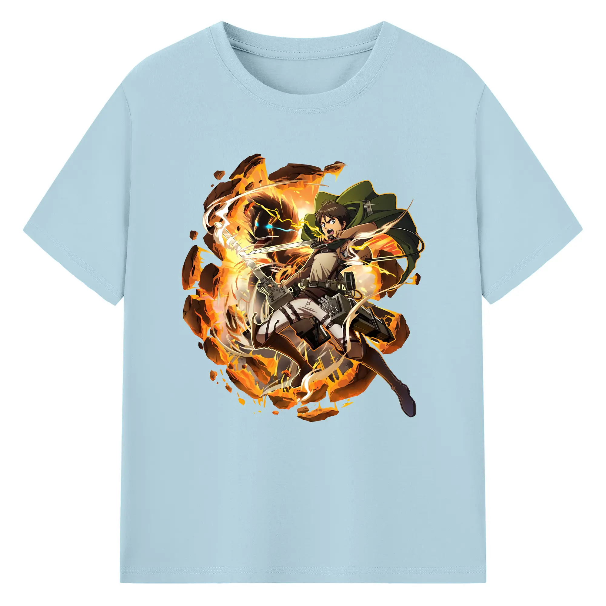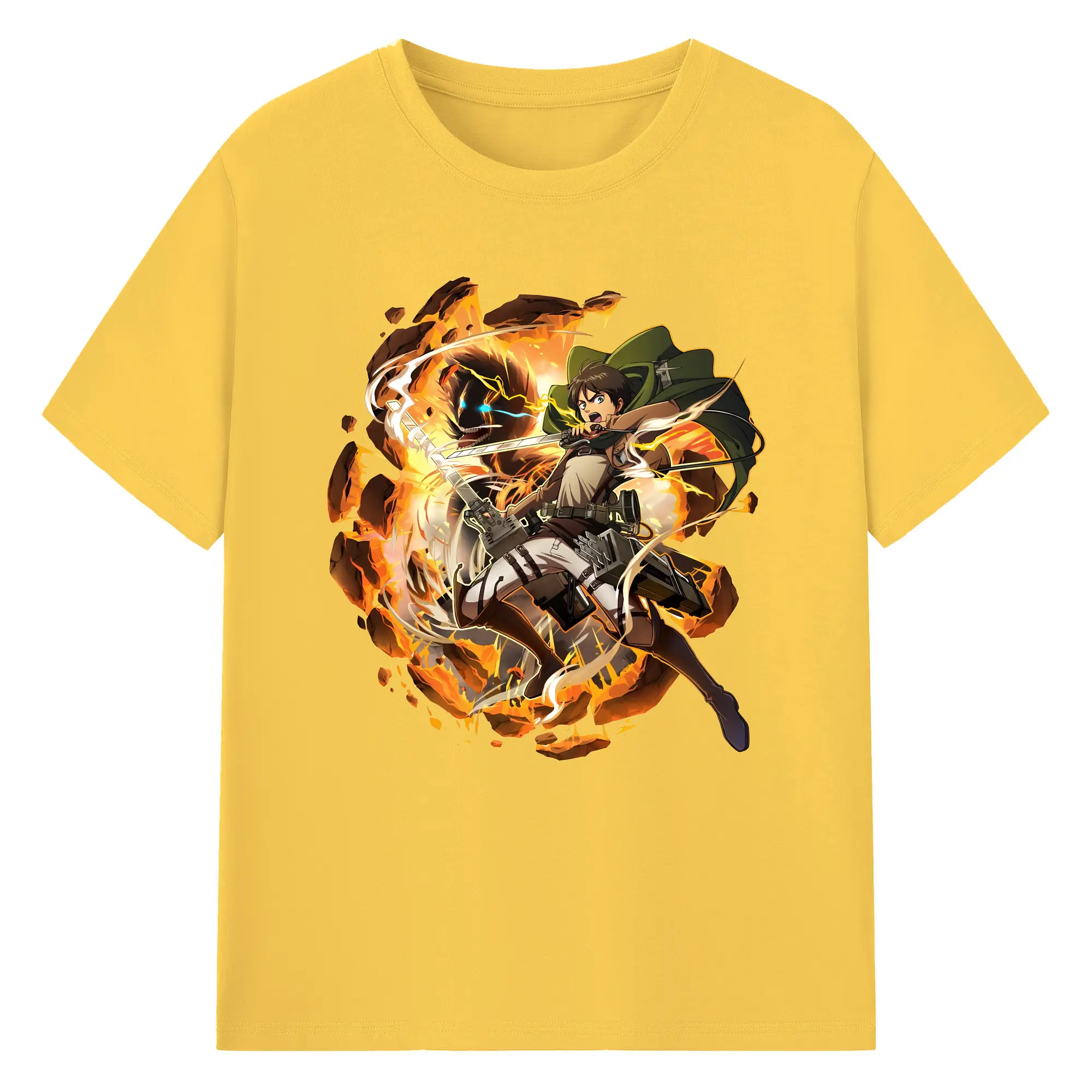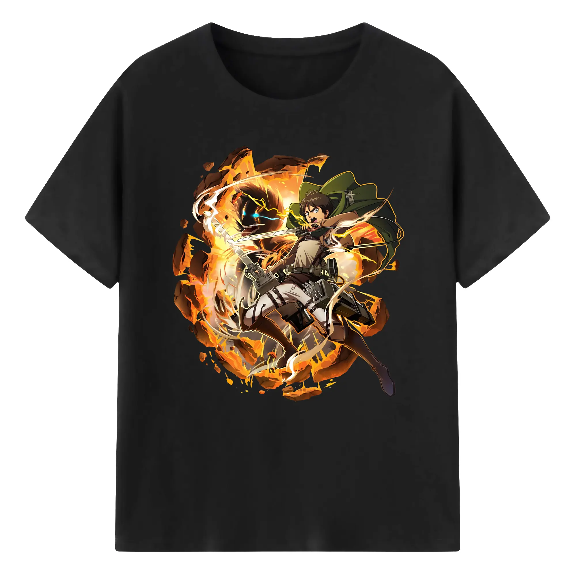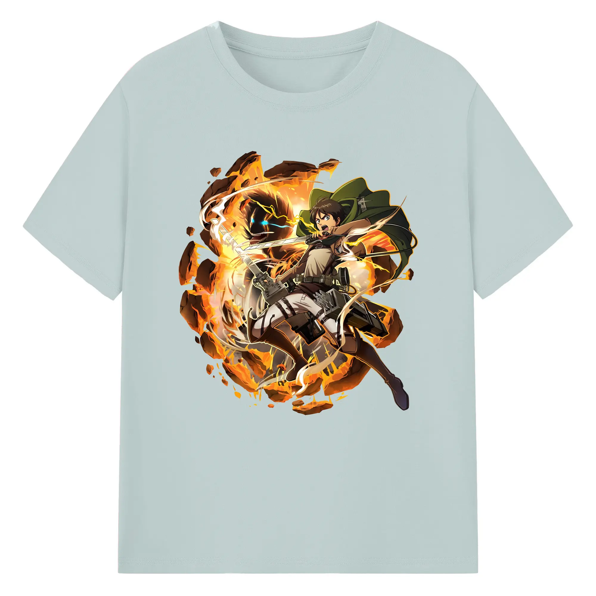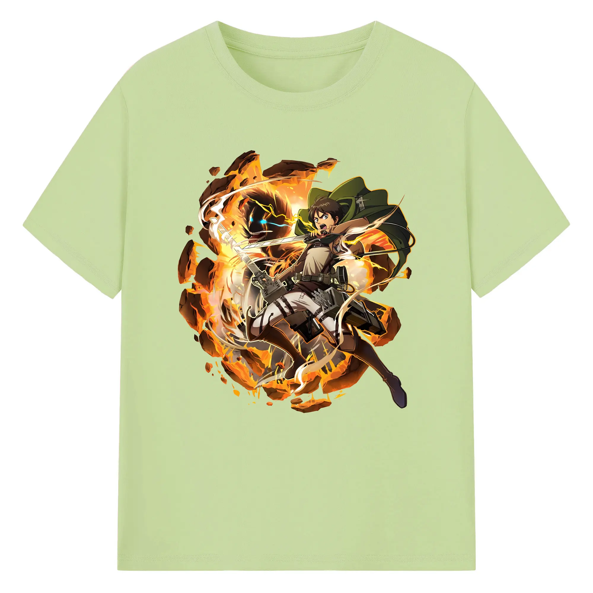進撃の巨人 グッズ エレン・イェーガー - 綿100% 半袖Tシャツ ・ バックプリント ・ 快適 通気性 ・ 日常使い 散歩 スポーツ用