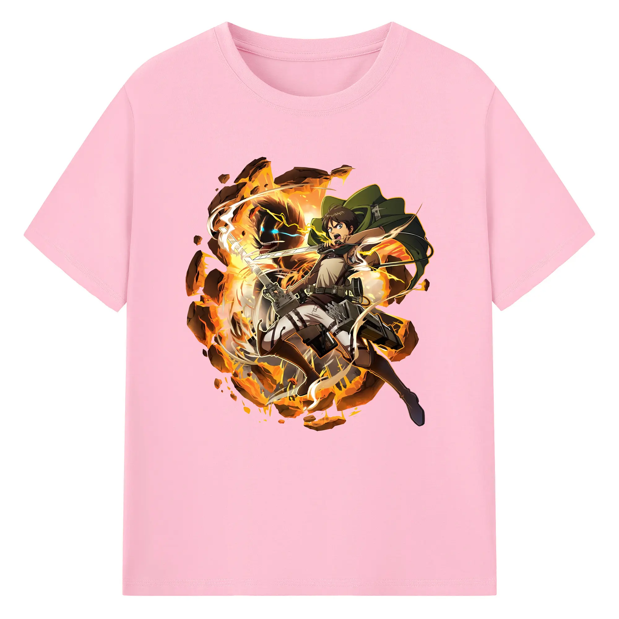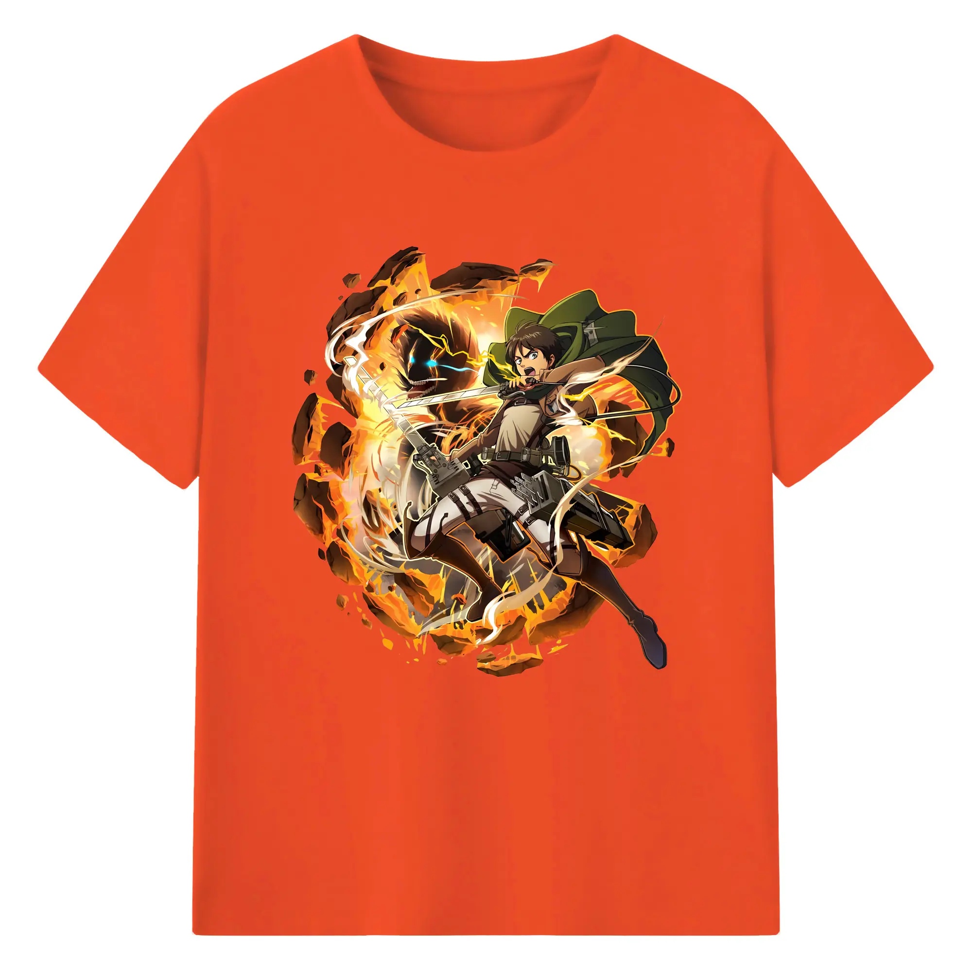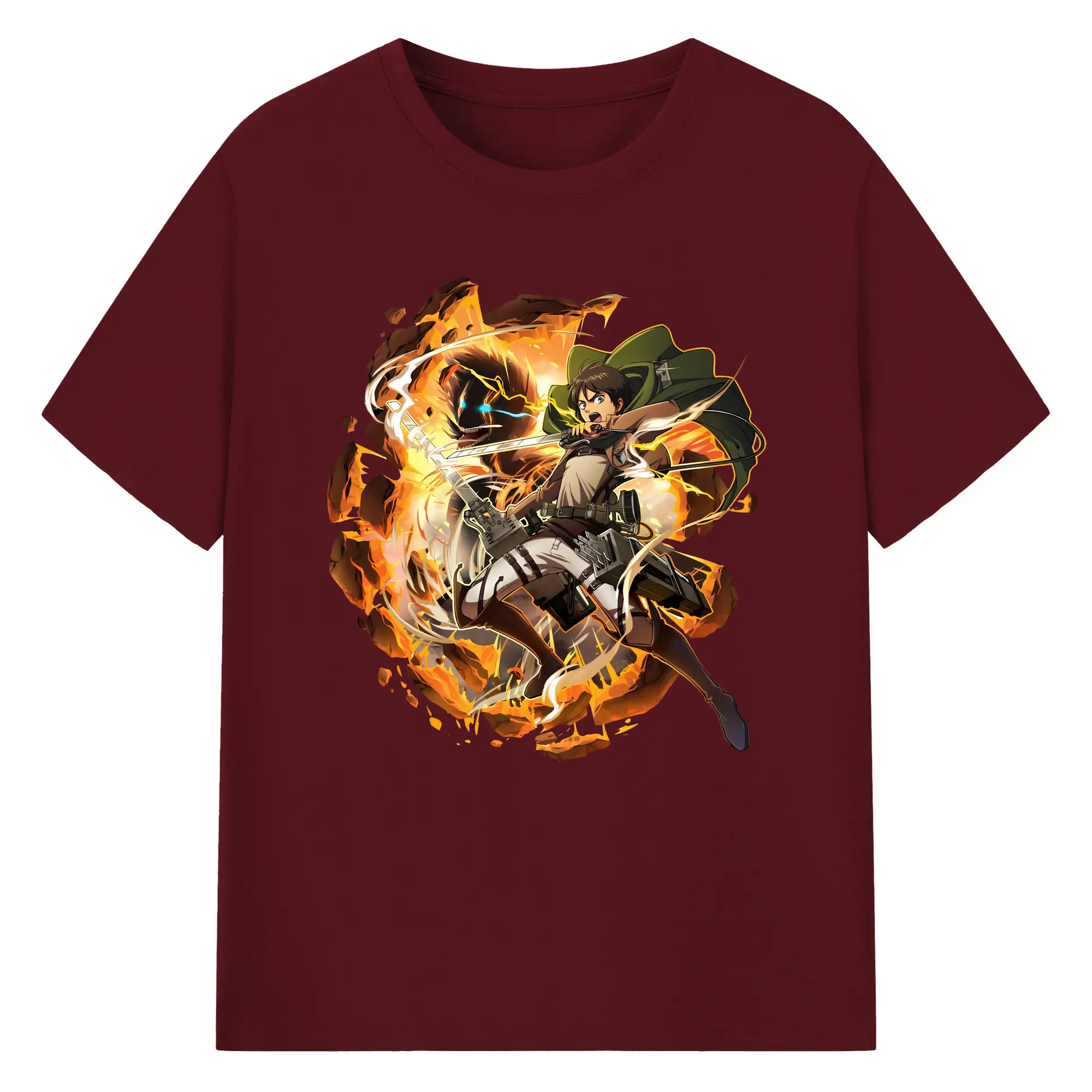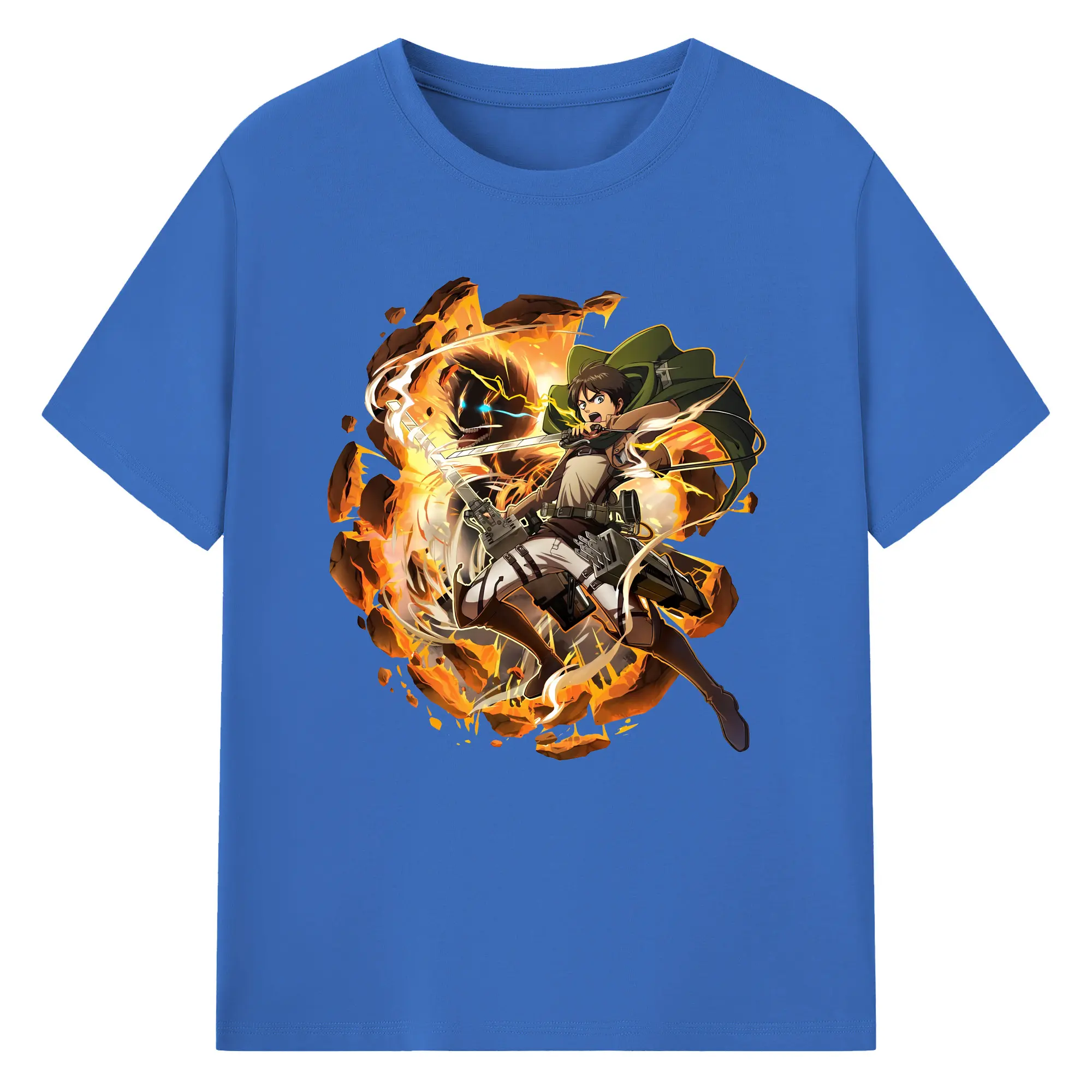 進撃の巨人 グッズ エレン・イェーガー - 綿100% 半袖Tシャツ ・ バックプリント ・ 快適 通気性 ・ 日常使い 散歩 スポーツ用