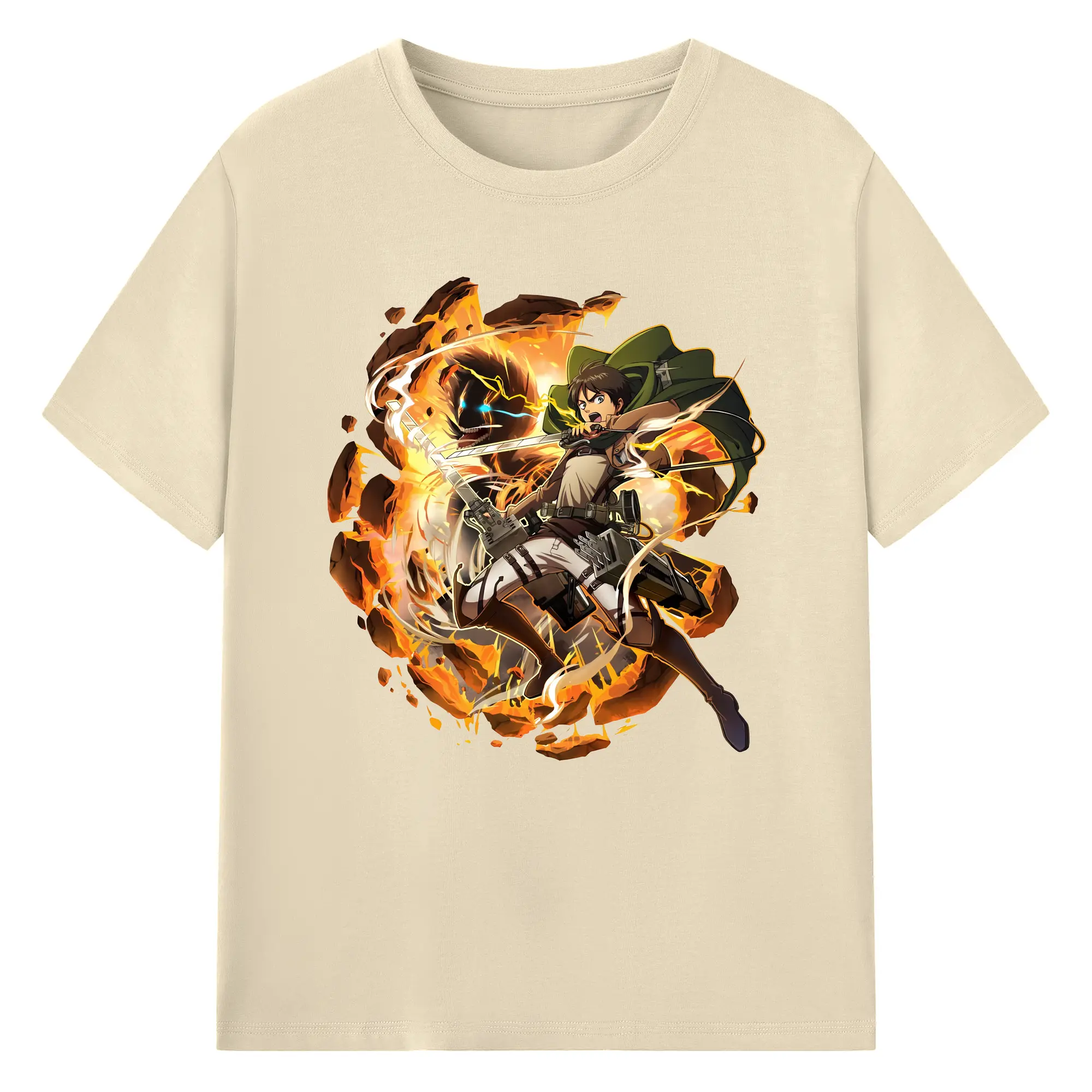 進撃の巨人 グッズ エレン・イェーガー - 綿100% ヴィンテージ風 半袖Tシャツ ・ フロントプリント ・ 柔らか肌触り ・ 通気性 快適 ・ スポーツ カジュアル 外出用