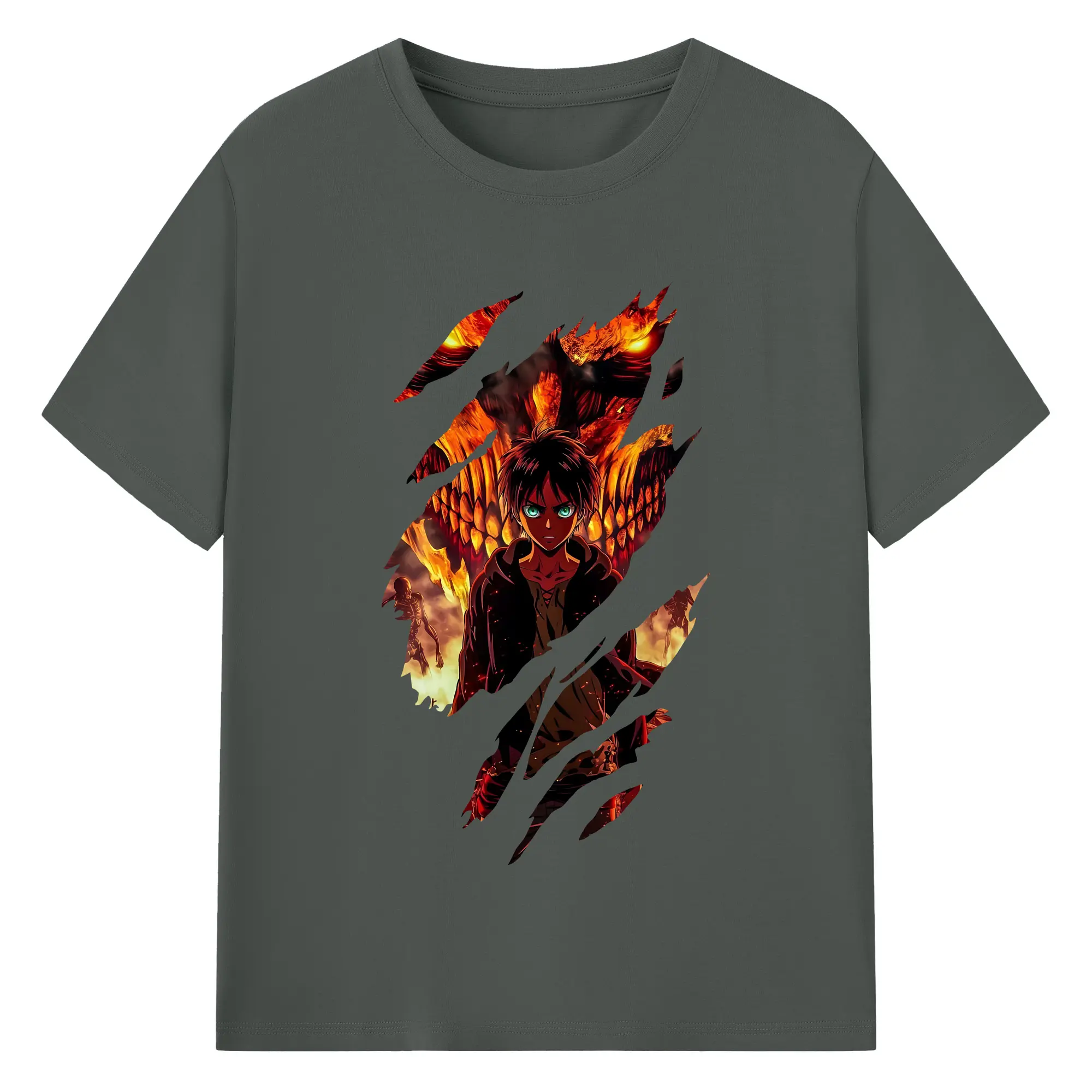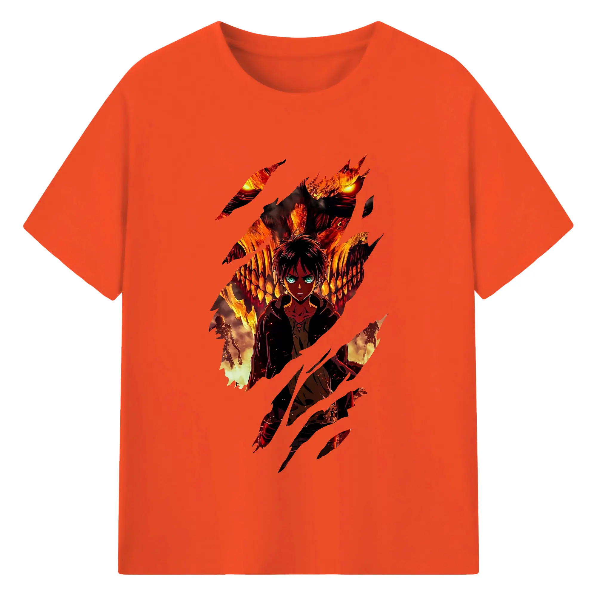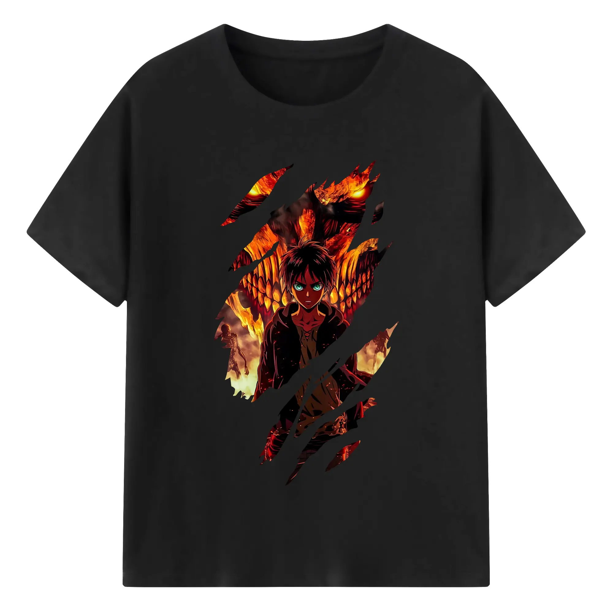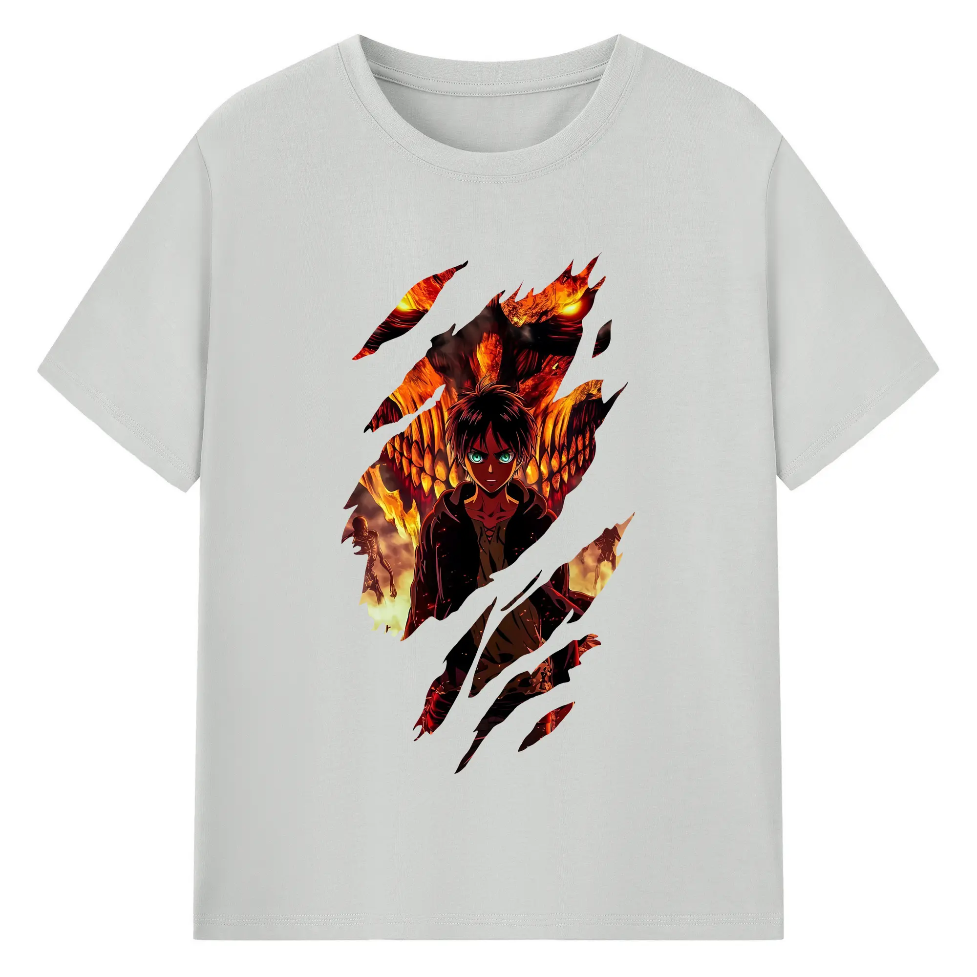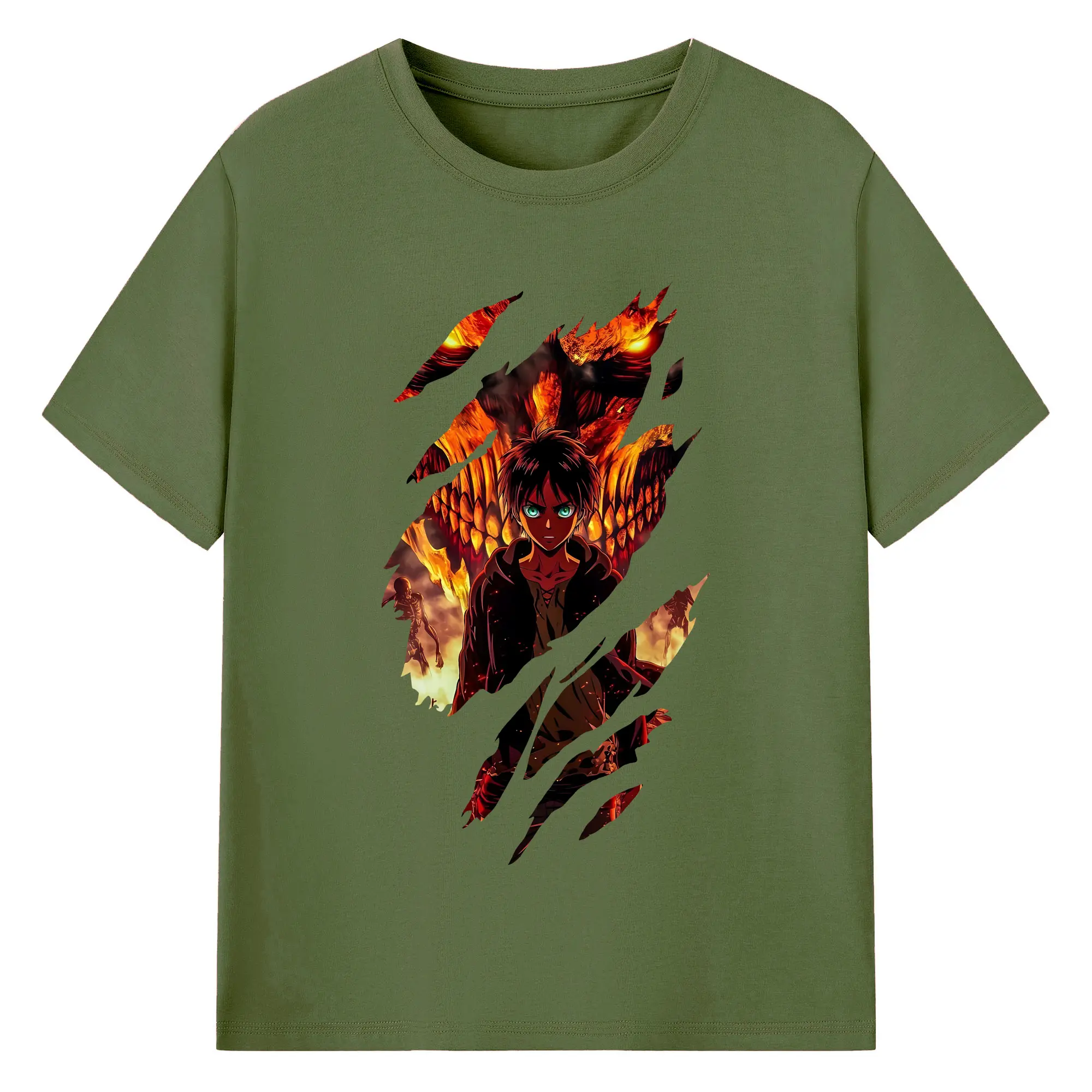 進撃の巨人 グッズ エレン・イェーガー - 綿100% 半袖Tシャツ ・ バックプリント ・ 快適 通気性 ・ 日常使い 散歩 スポーツ用