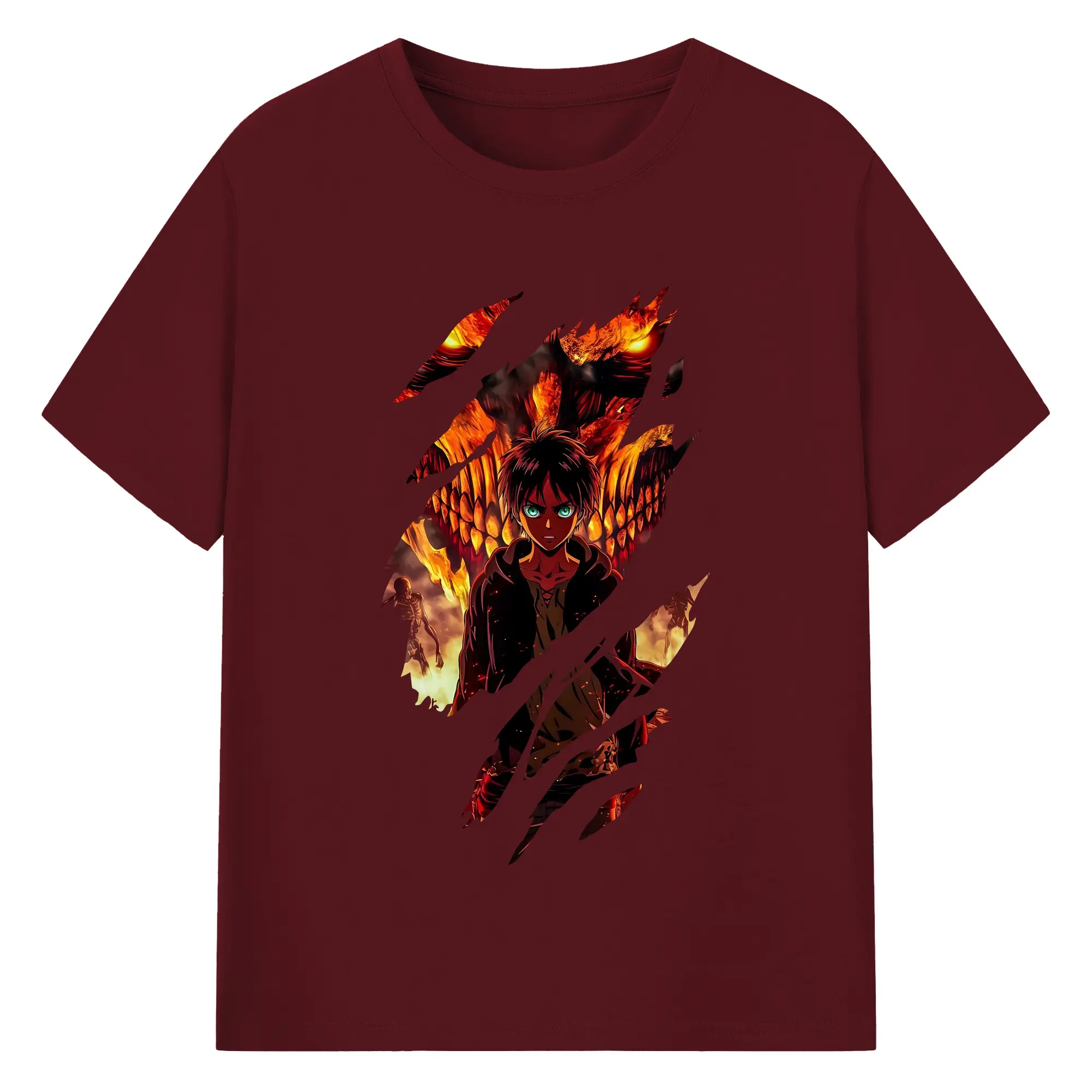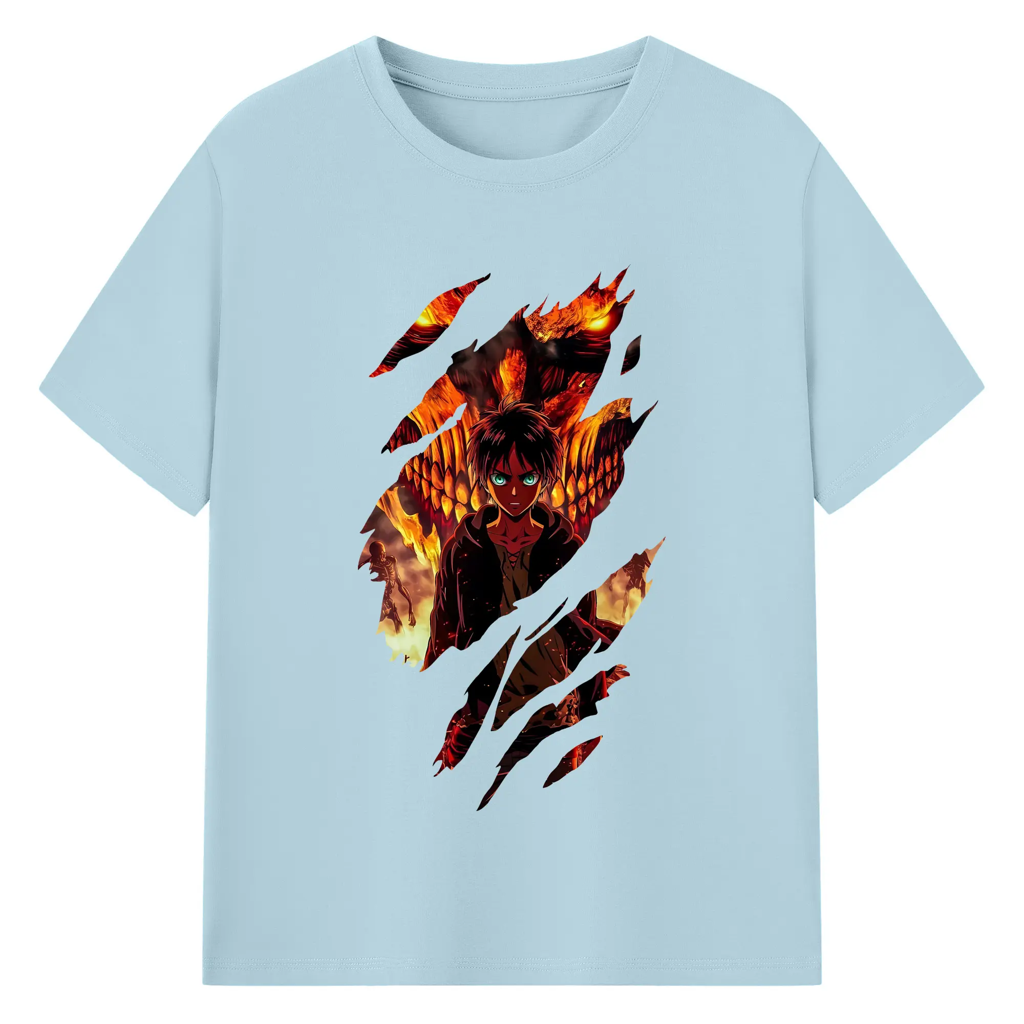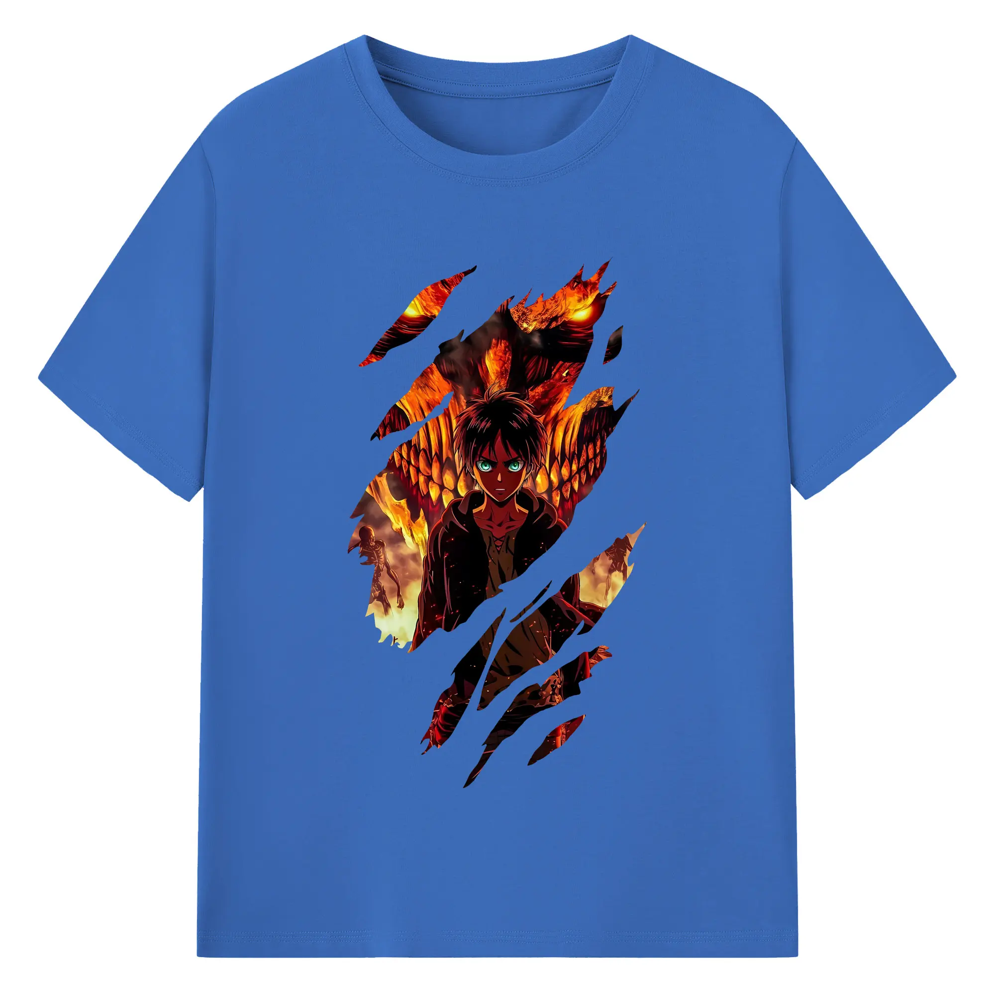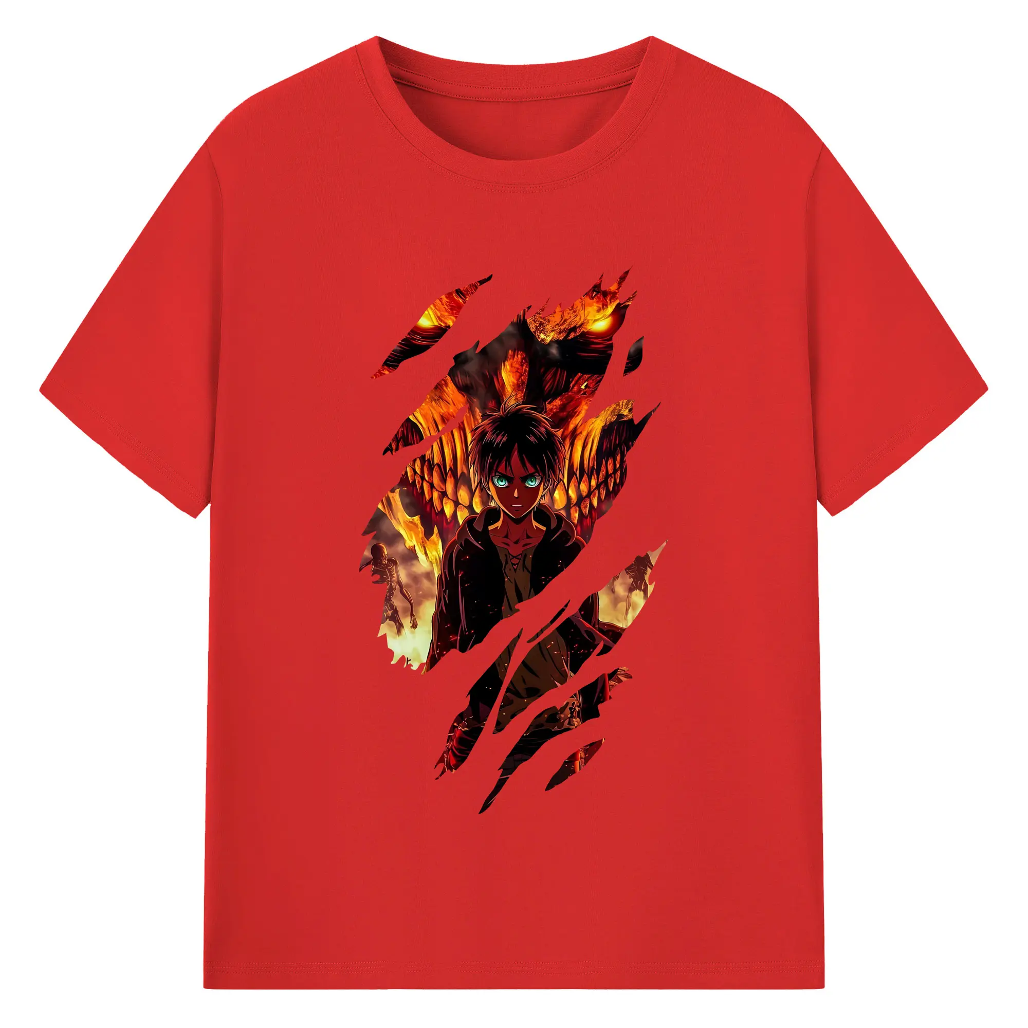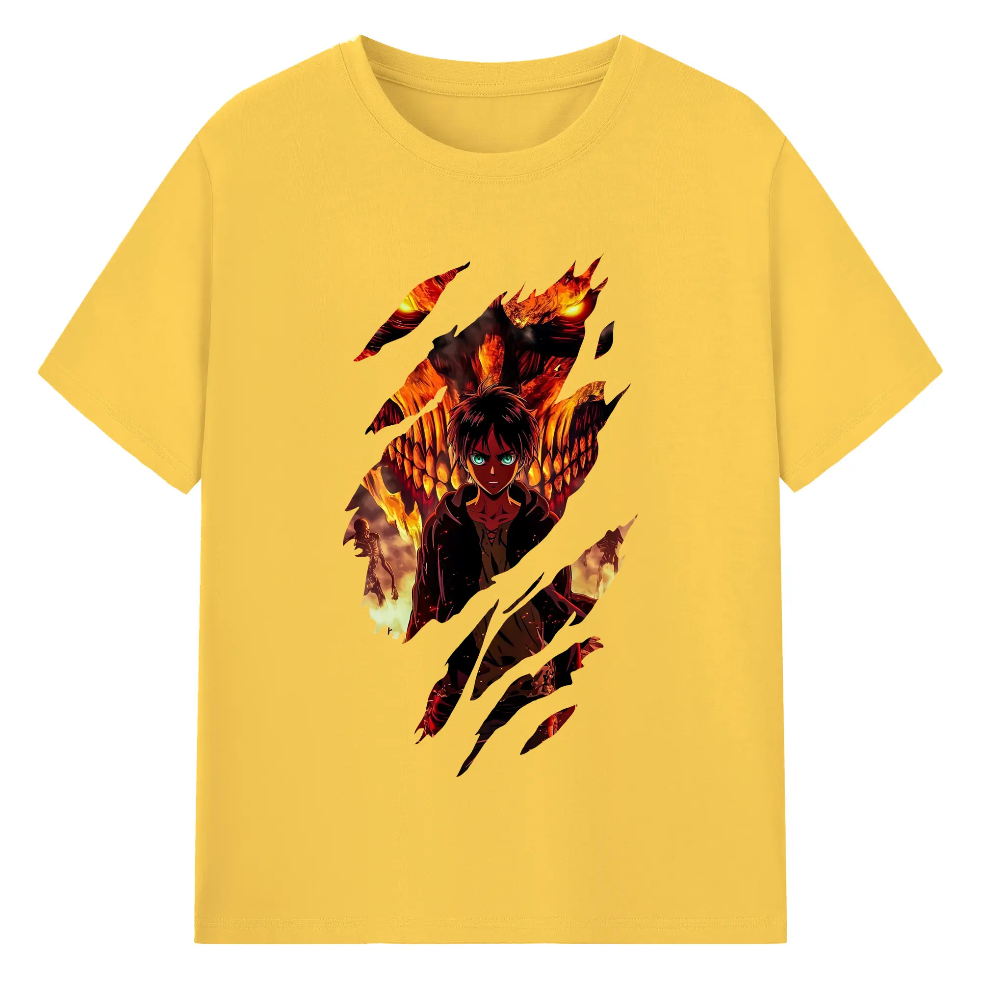 進撃の巨人 グッズ エレン・イェーガー - 綿100% 半袖Tシャツ ・ バックプリント ・ 快適 通気性 ・ 日常使い 散歩 スポーツ用