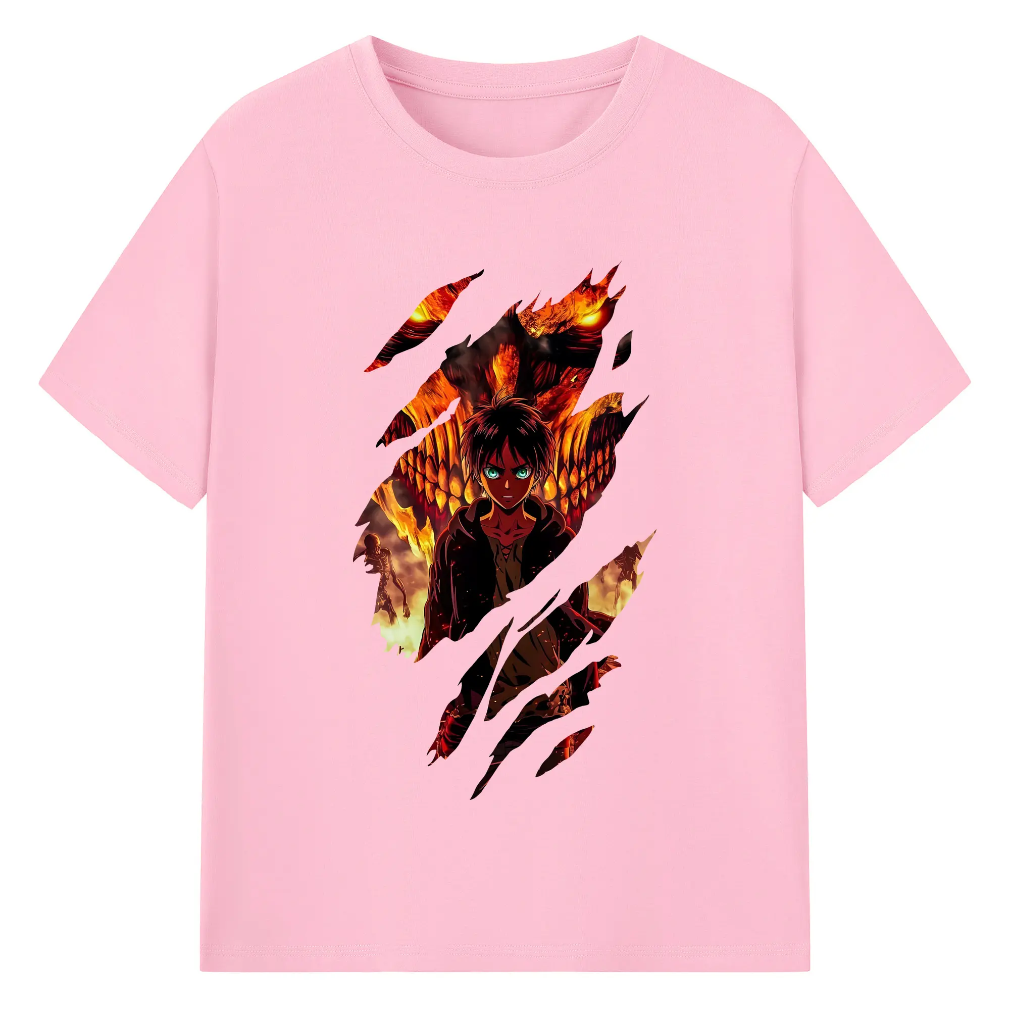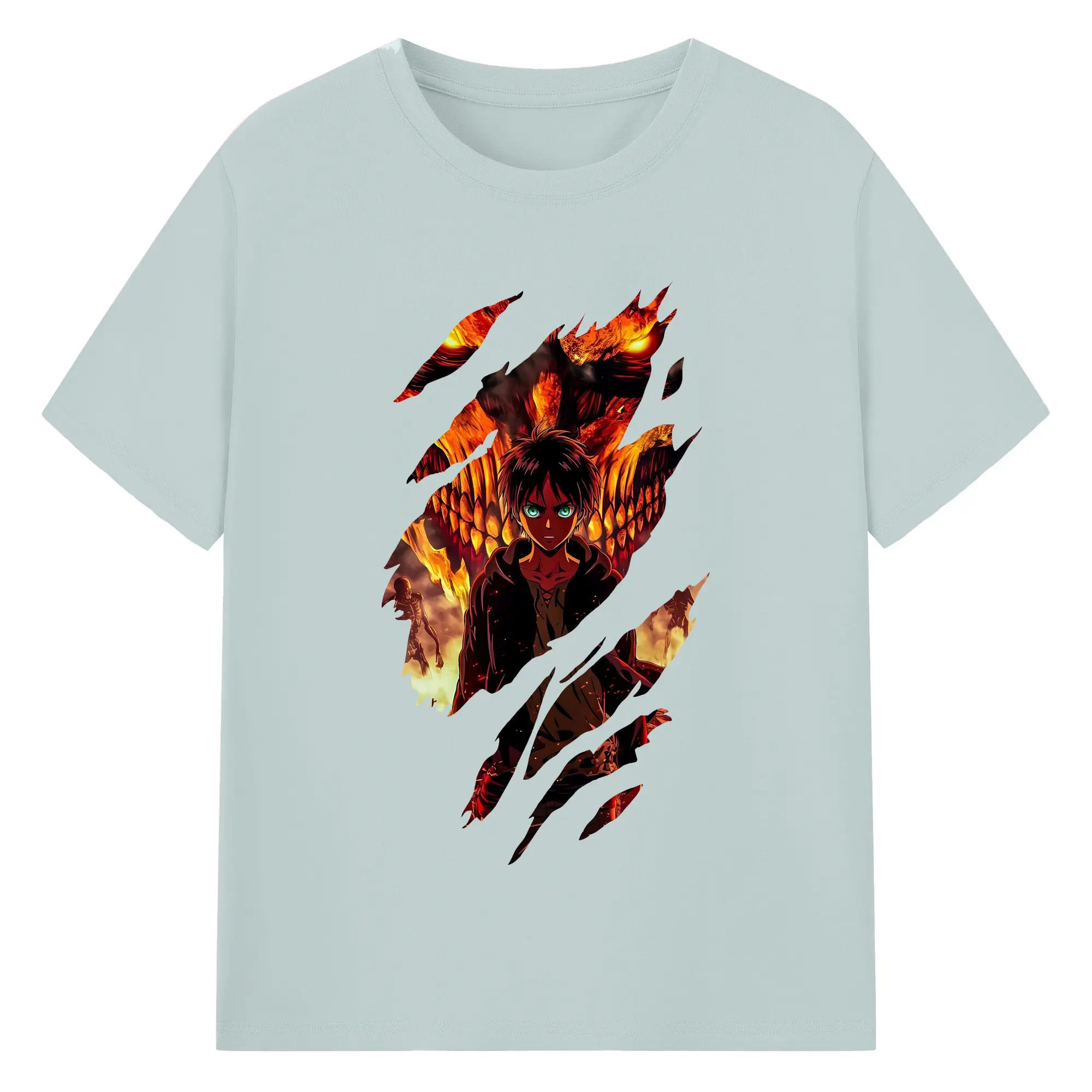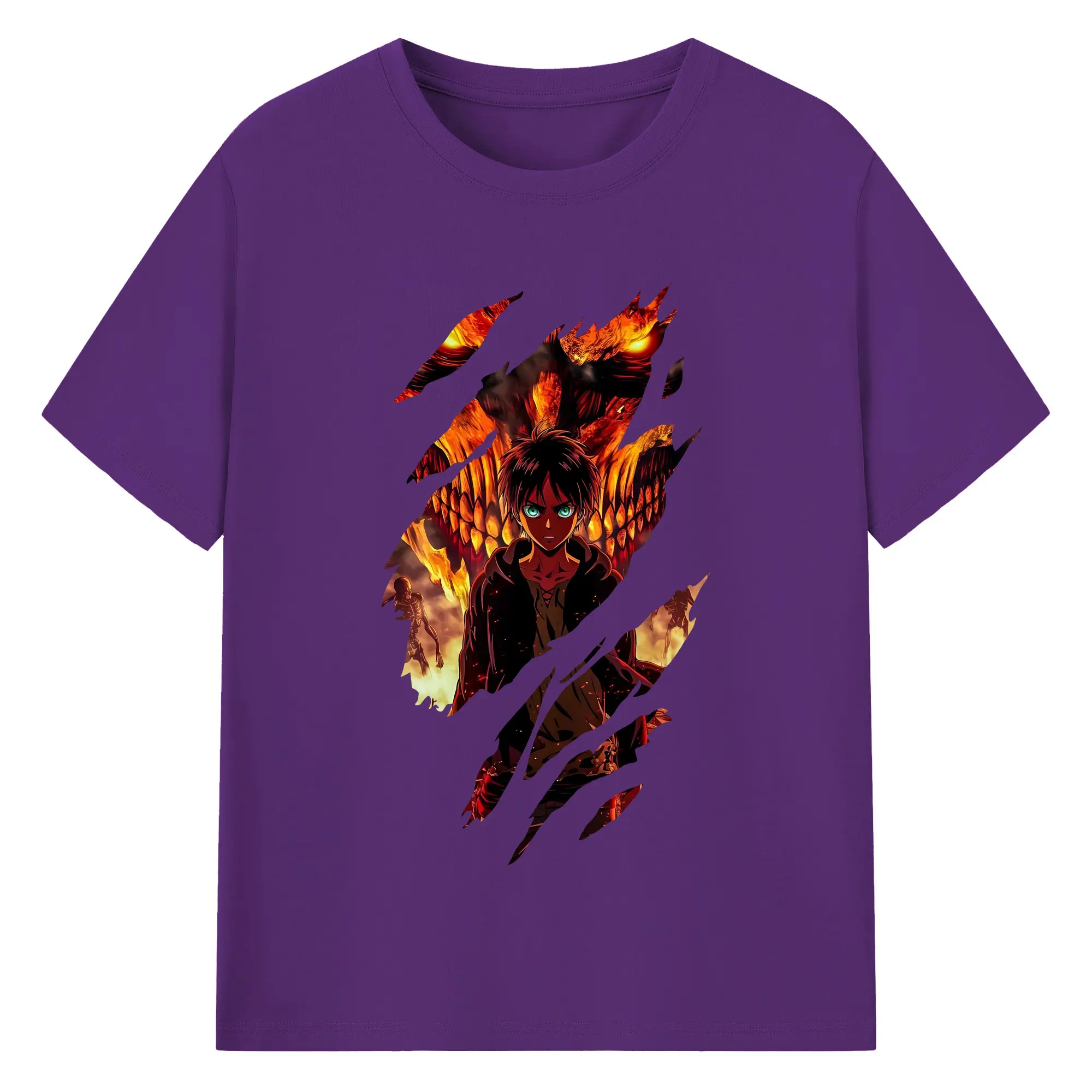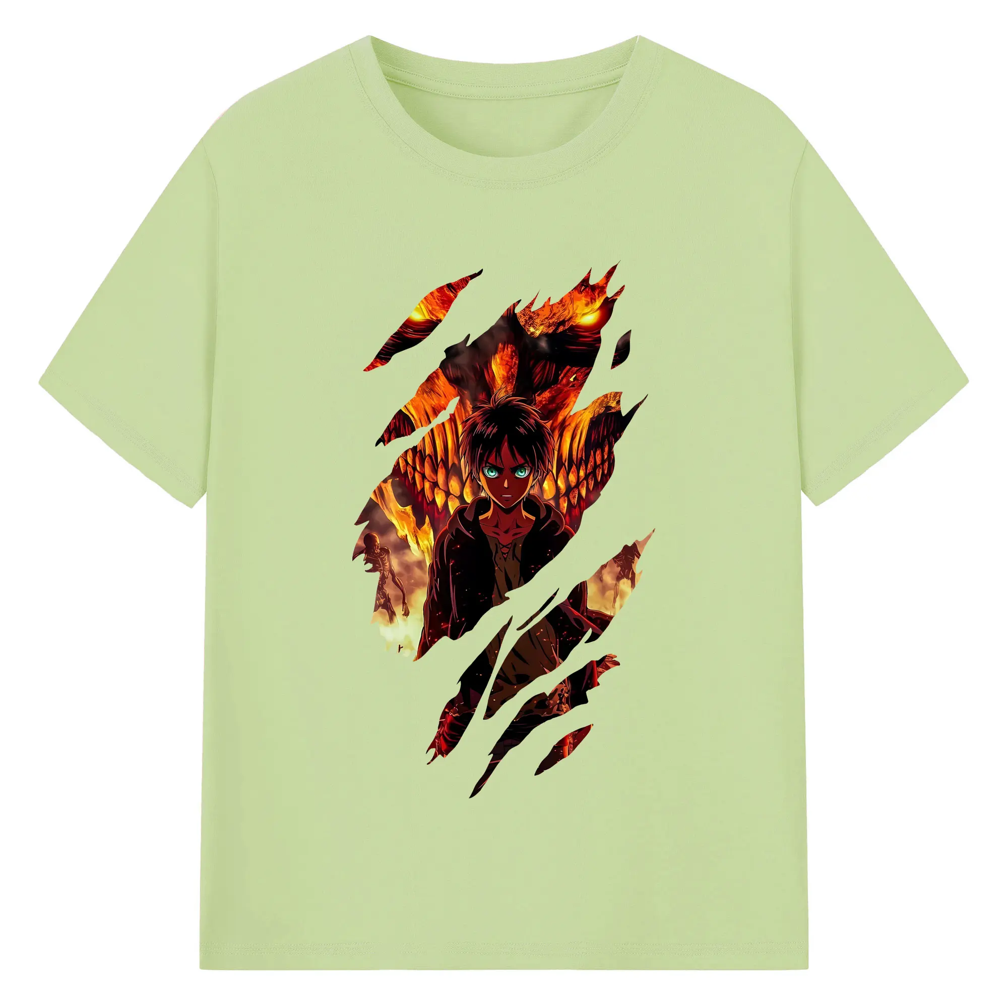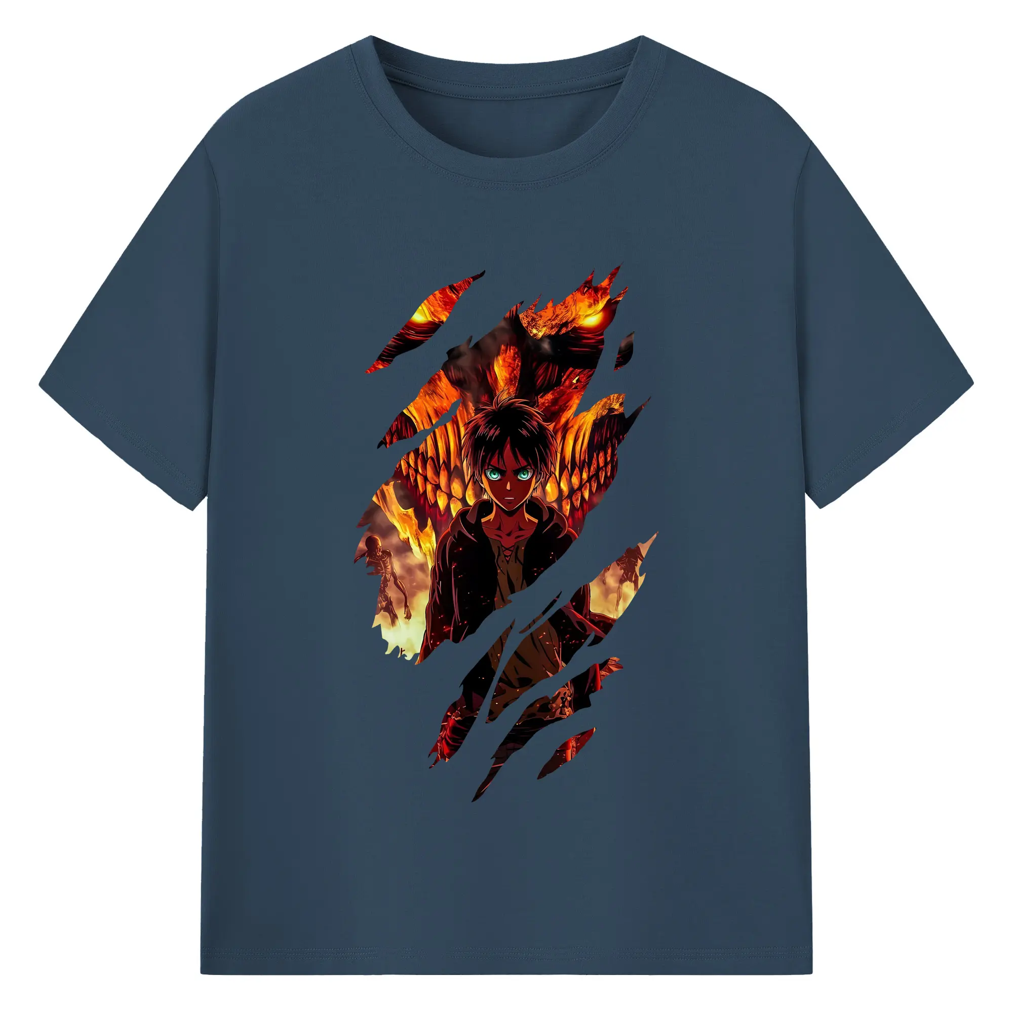 進撃の巨人 グッズ エレン・イェーガー - 綿100% 半袖Tシャツ ・ バックプリント ・ 快適 通気性 ・ 日常使い 散歩 スポーツ用
