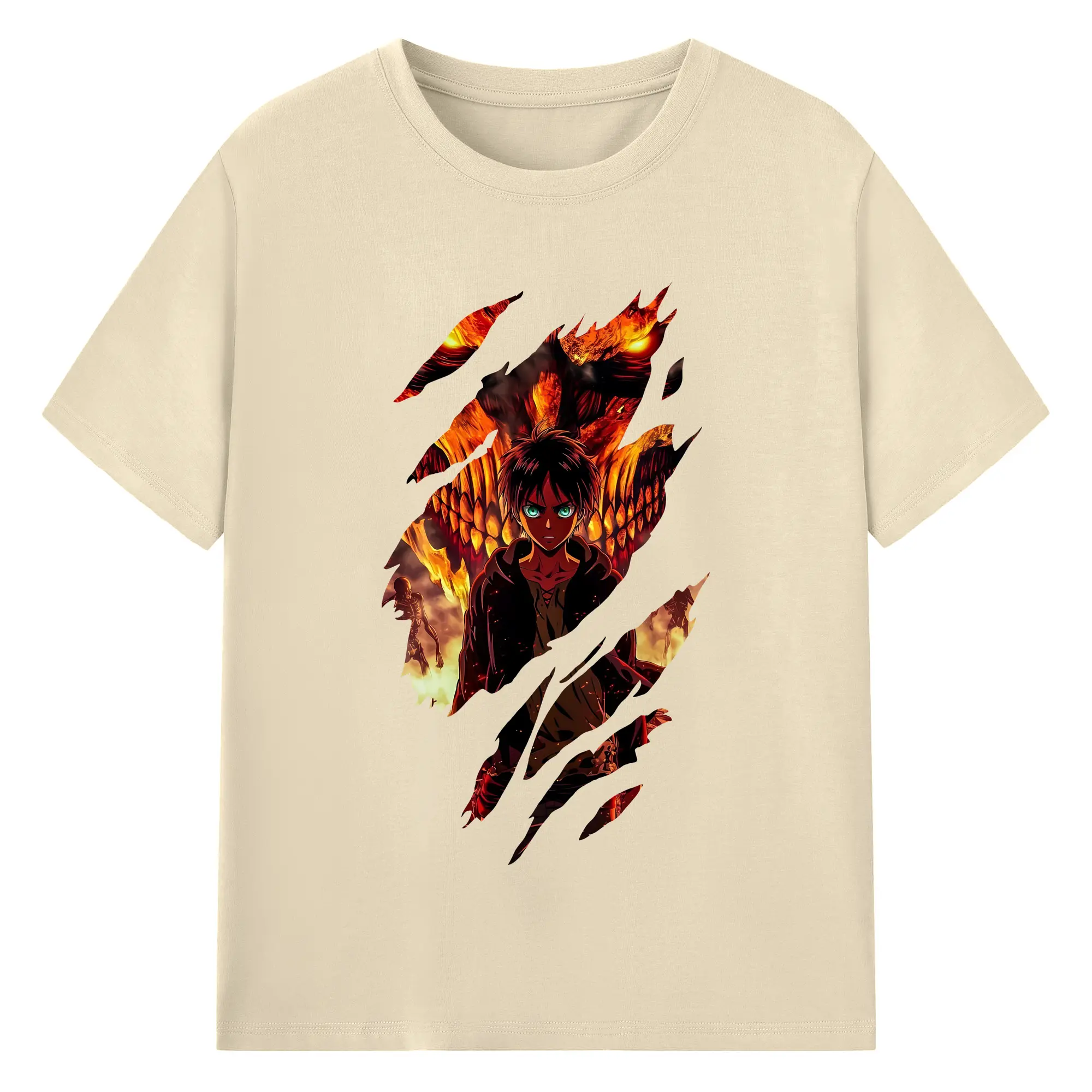 進撃の巨人 グッズ エレン・イェーガー - 綿100% ヴィンテージ風 半袖Tシャツ ・ フロントプリント ・ 柔らか肌触り ・ 通気性 快適 ・ スポーツ カジュアル 外出用