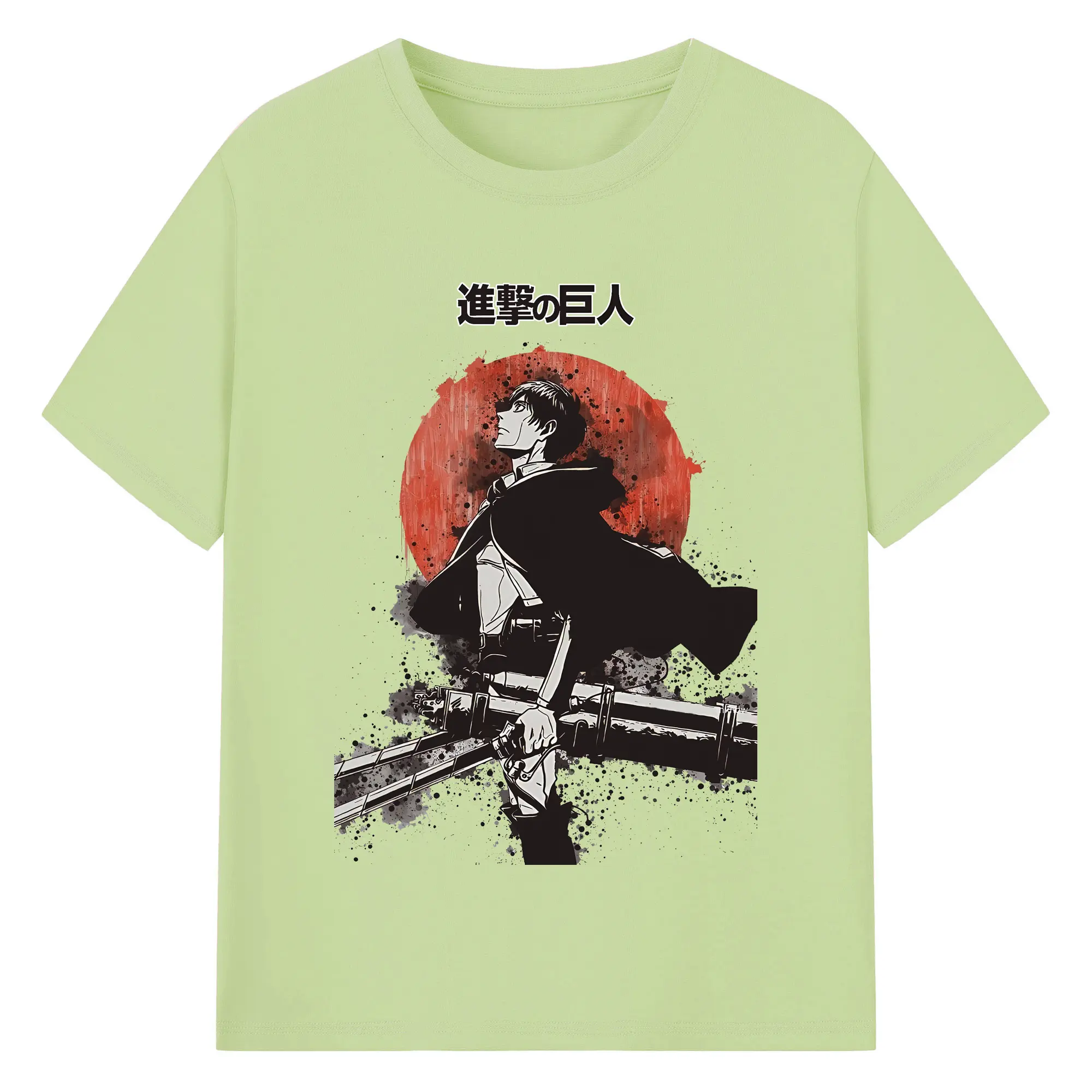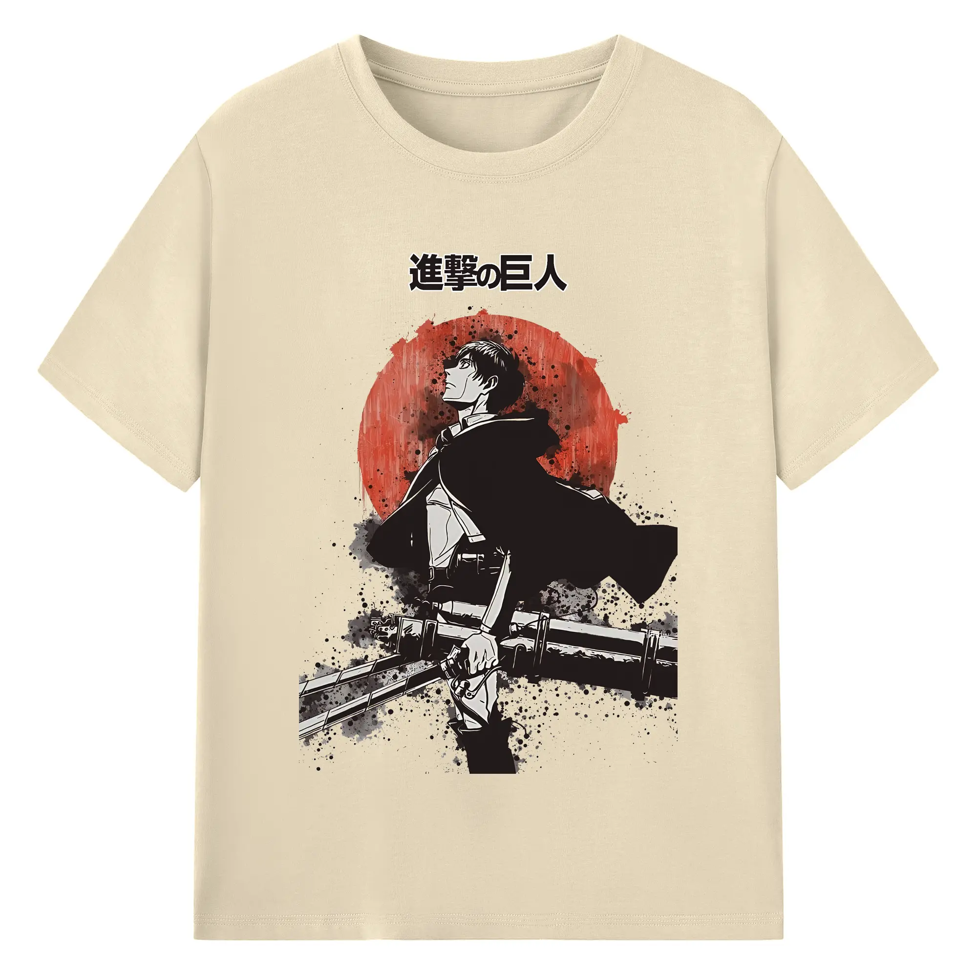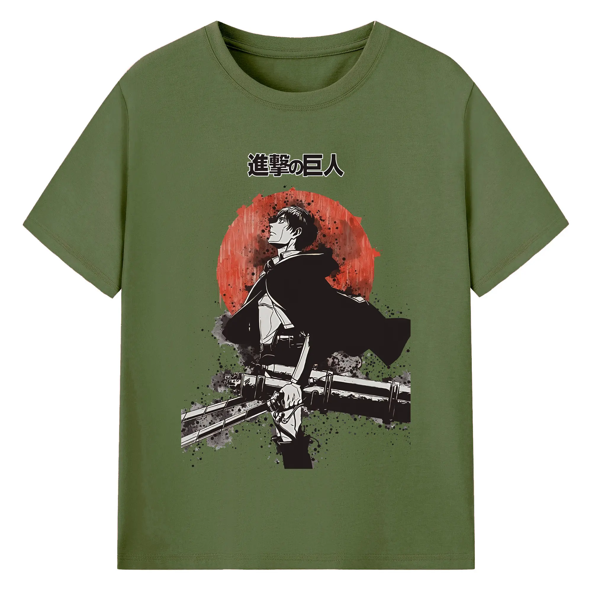 進撃の巨人 グッズ エレン・イェーガー - 綿100% 半袖Tシャツ ・ バックプリント ・ 快適 通気性 ・ 日常使い 散歩 スポーツ用