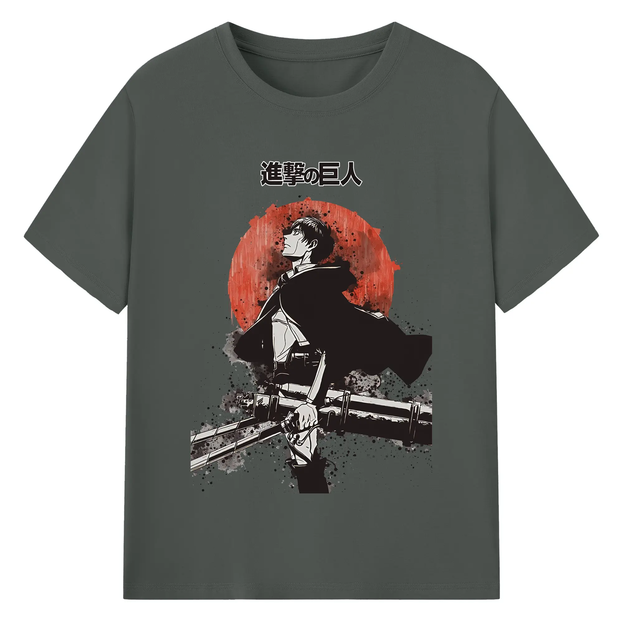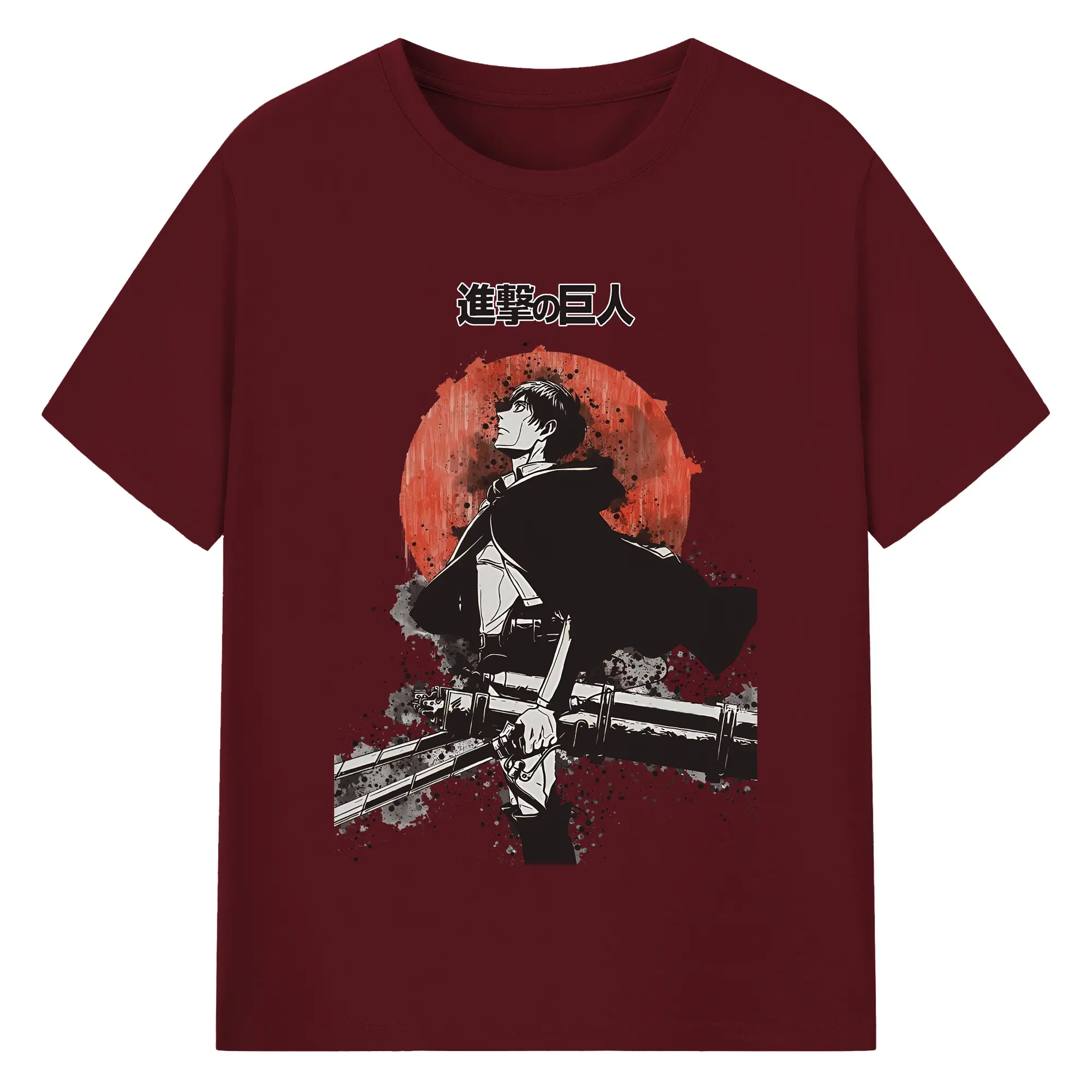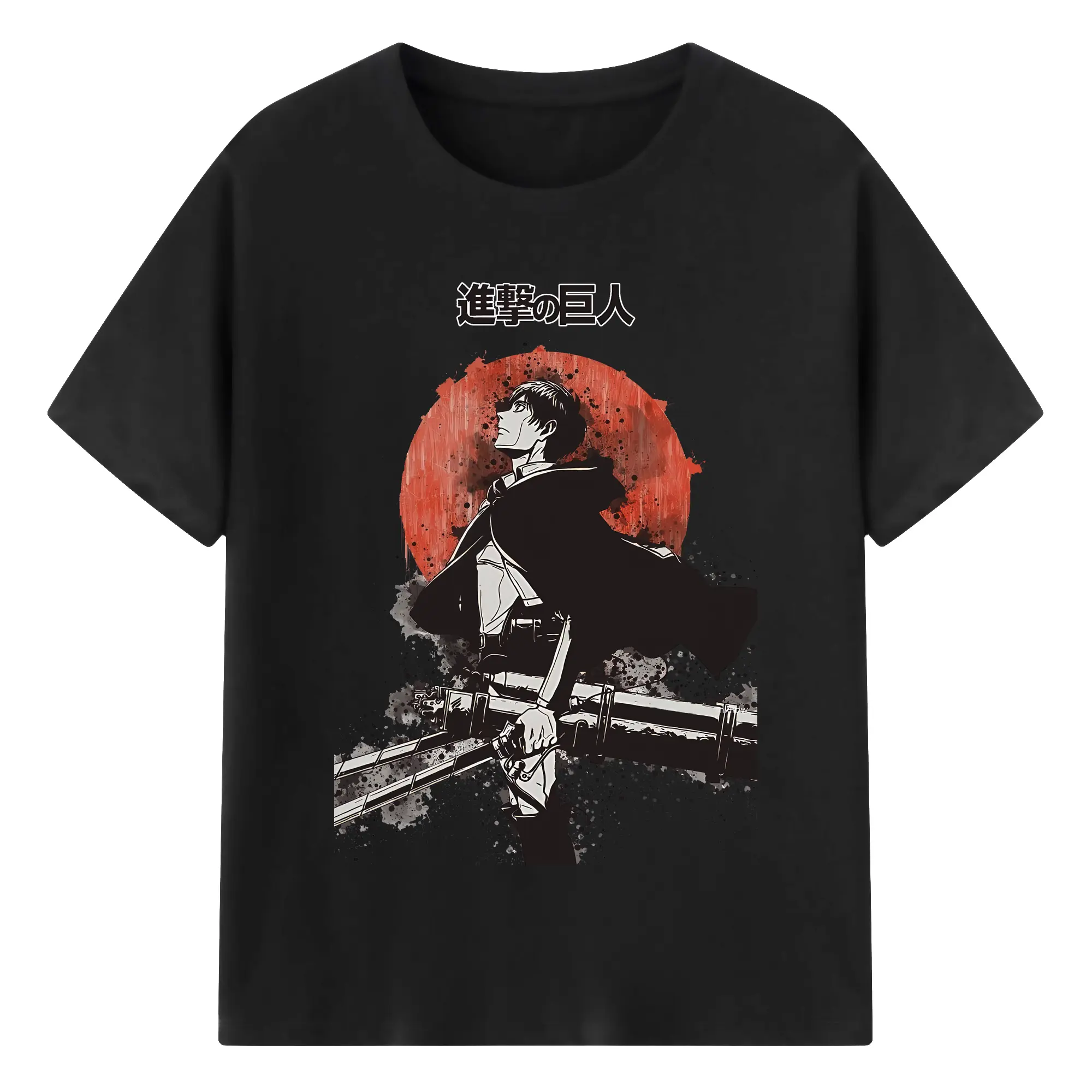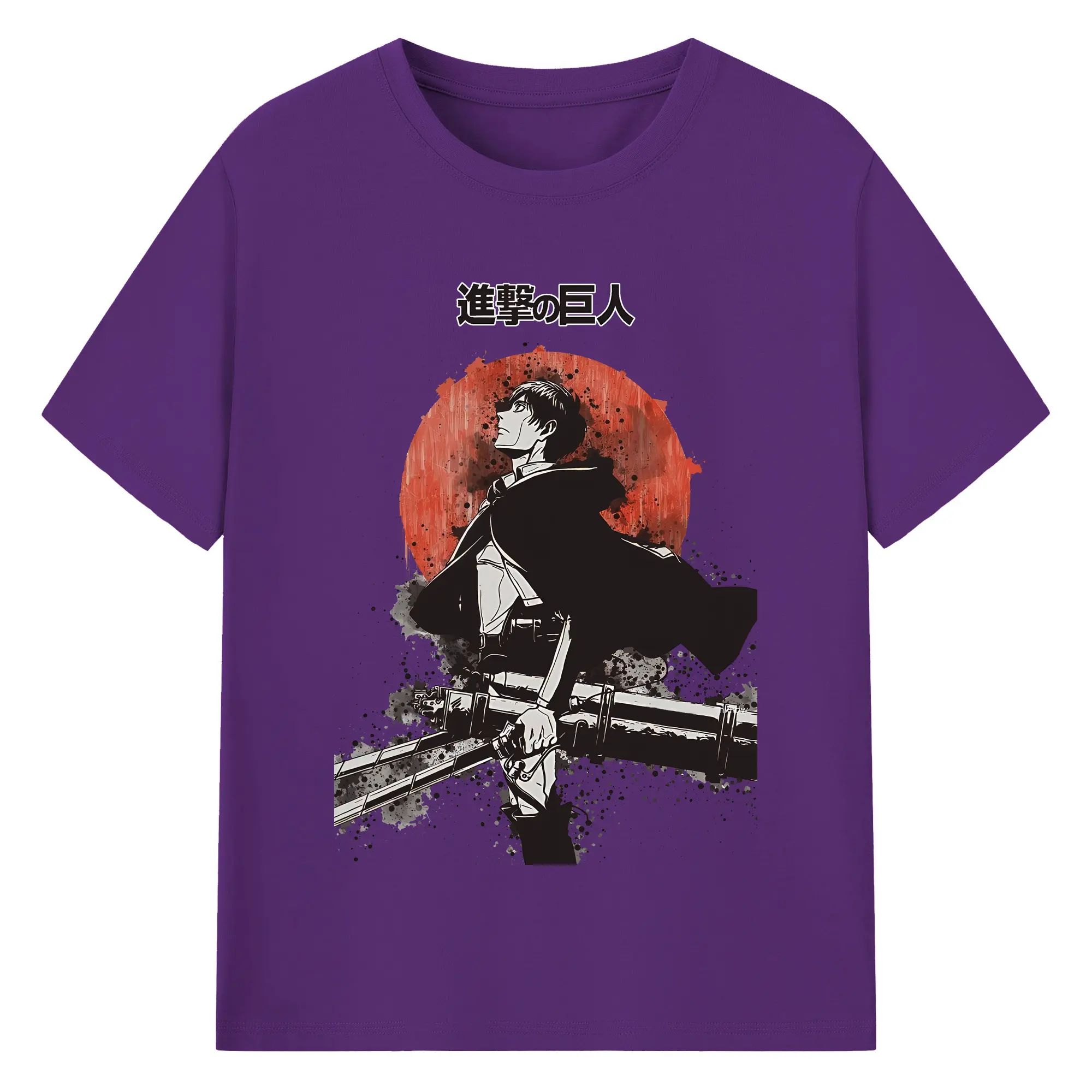 進撃の巨人 グッズ エレン・イェーガー - 綿100% 半袖Tシャツ ・ バックプリント ・ 快適 通気性 ・ 日常使い 散歩 スポーツ用