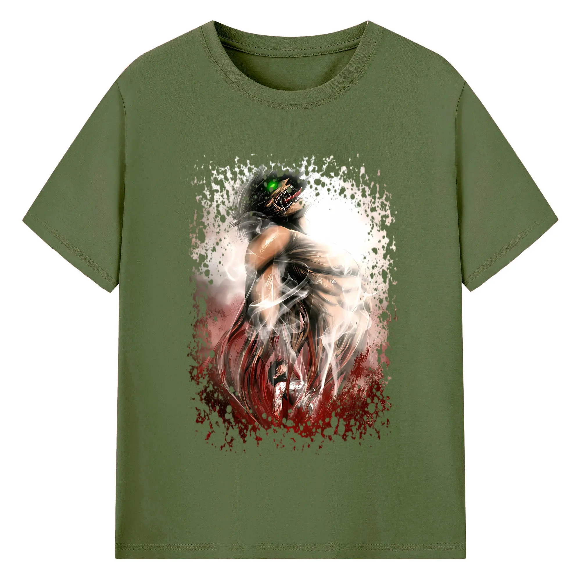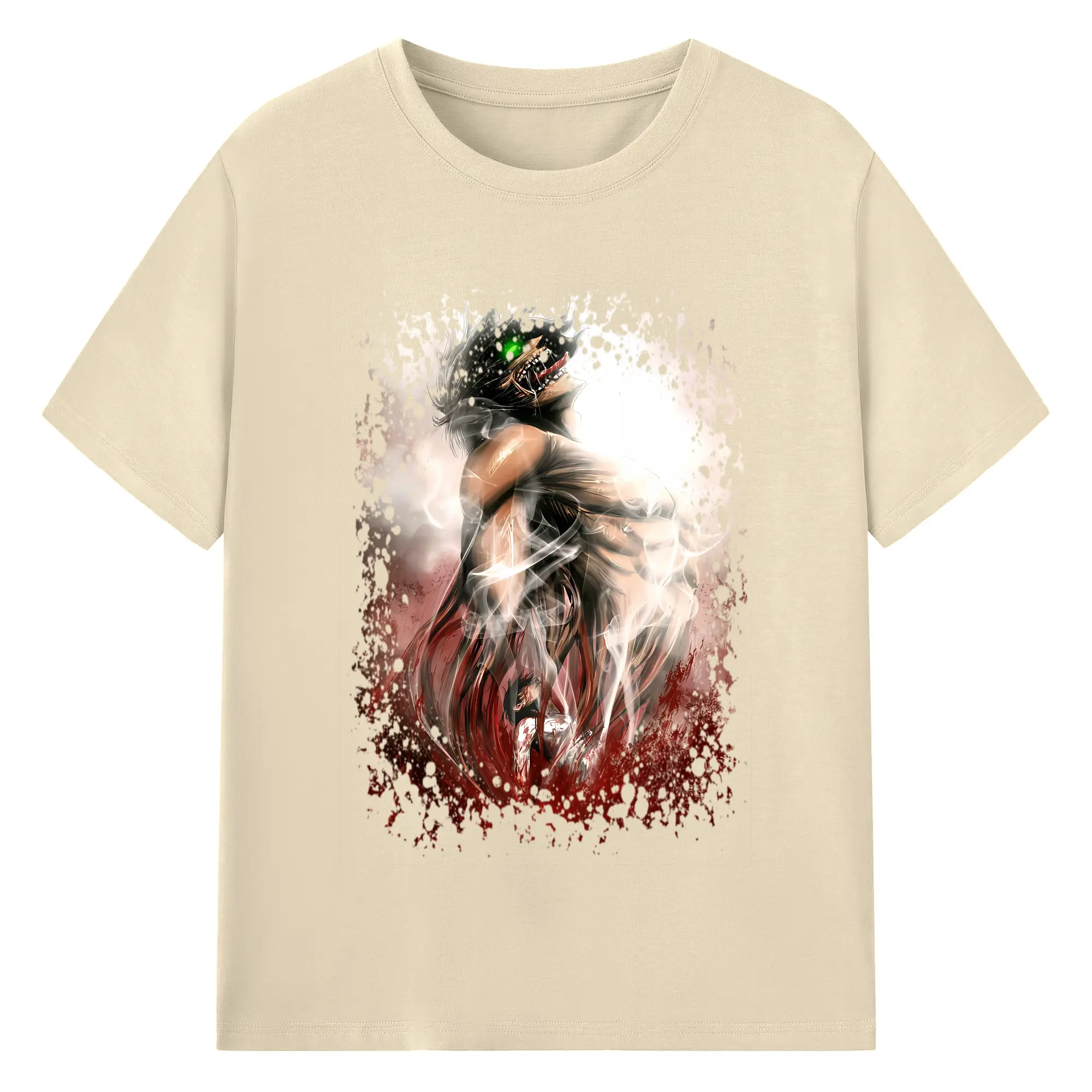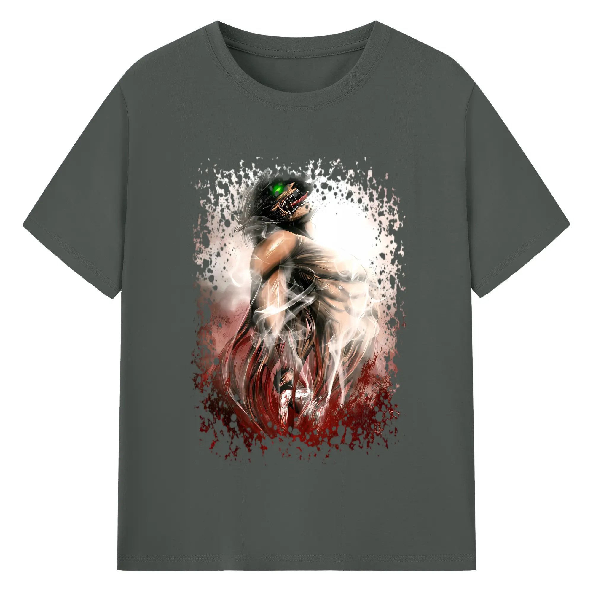 進撃の巨人 グッズ エレン・イェーガー - 綿100% ヴィンテージ風 半袖Tシャツ ・ フロントプリント ・ 柔らか肌触り ・ 通気性 快適 ・ スポーツ カジュアル 外出用