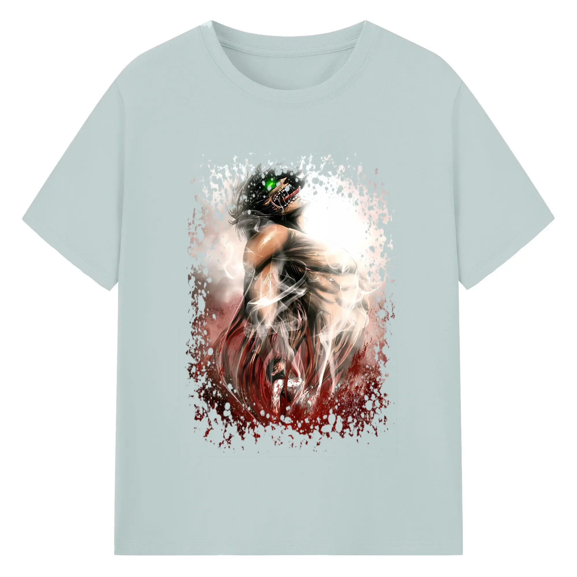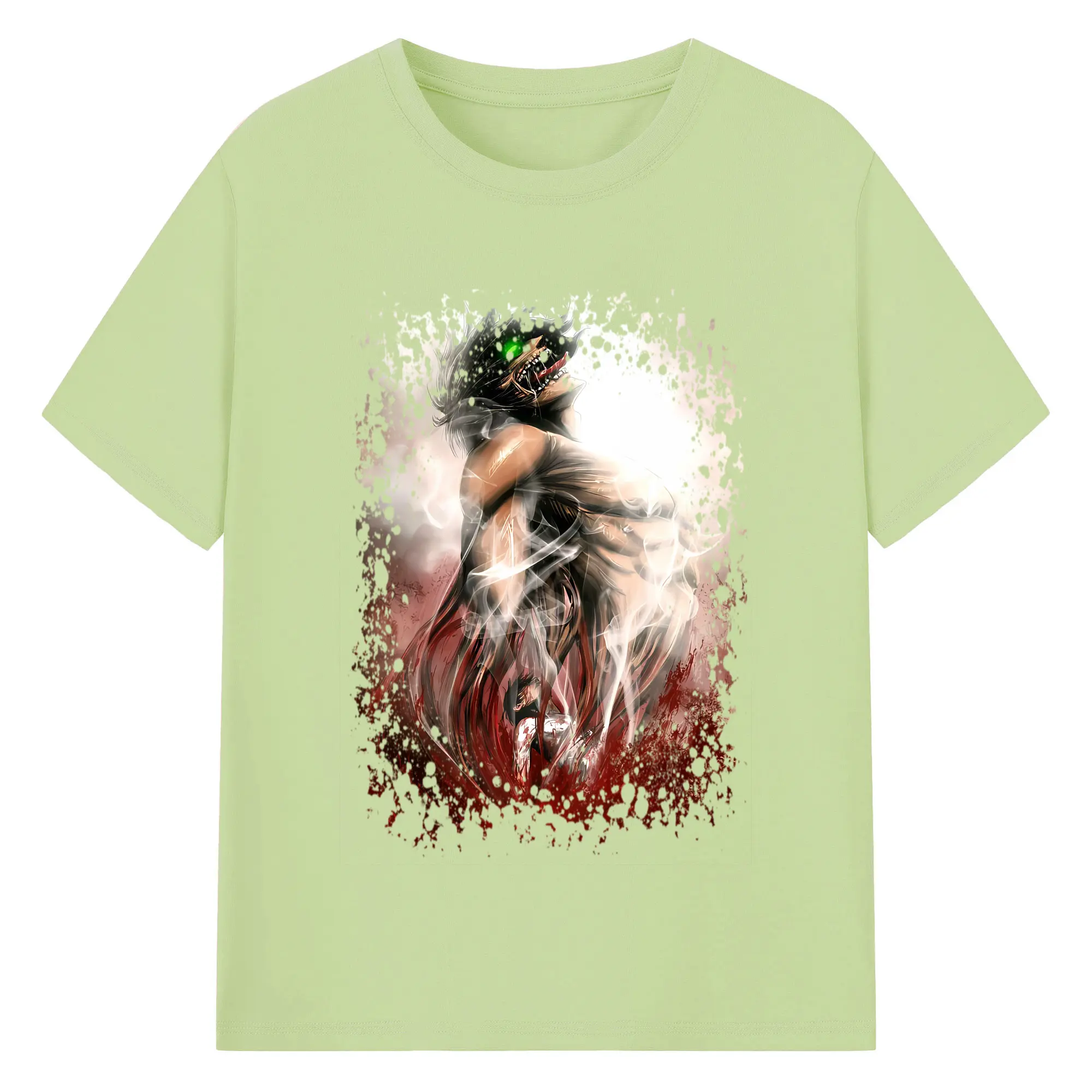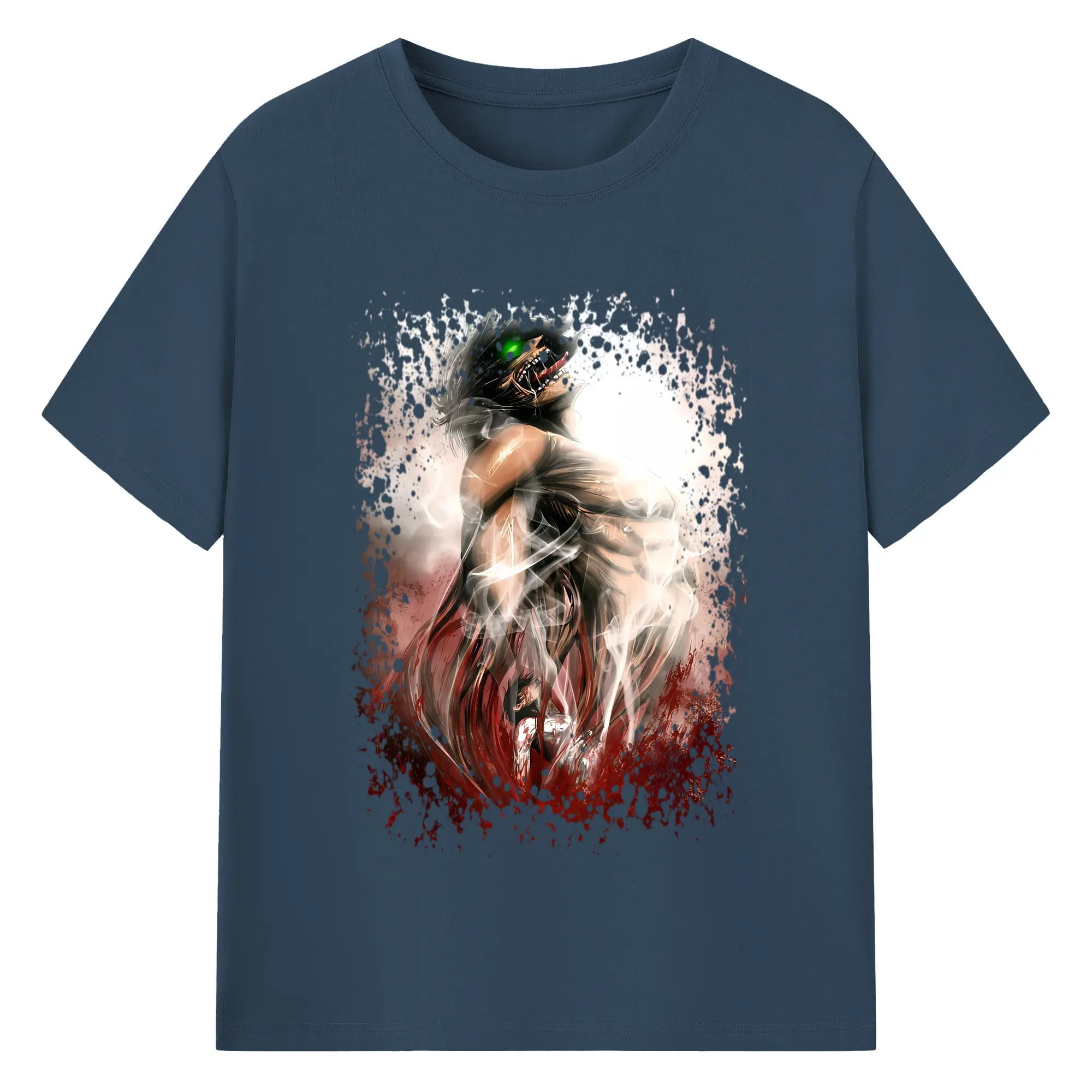 進撃の巨人 グッズ エレン・イェーガー - 綿100% ヴィンテージ風 半袖Tシャツ ・ フロントプリント ・ 柔らか肌触り ・ 通気性 快適 ・ スポーツ カジュアル 外出用