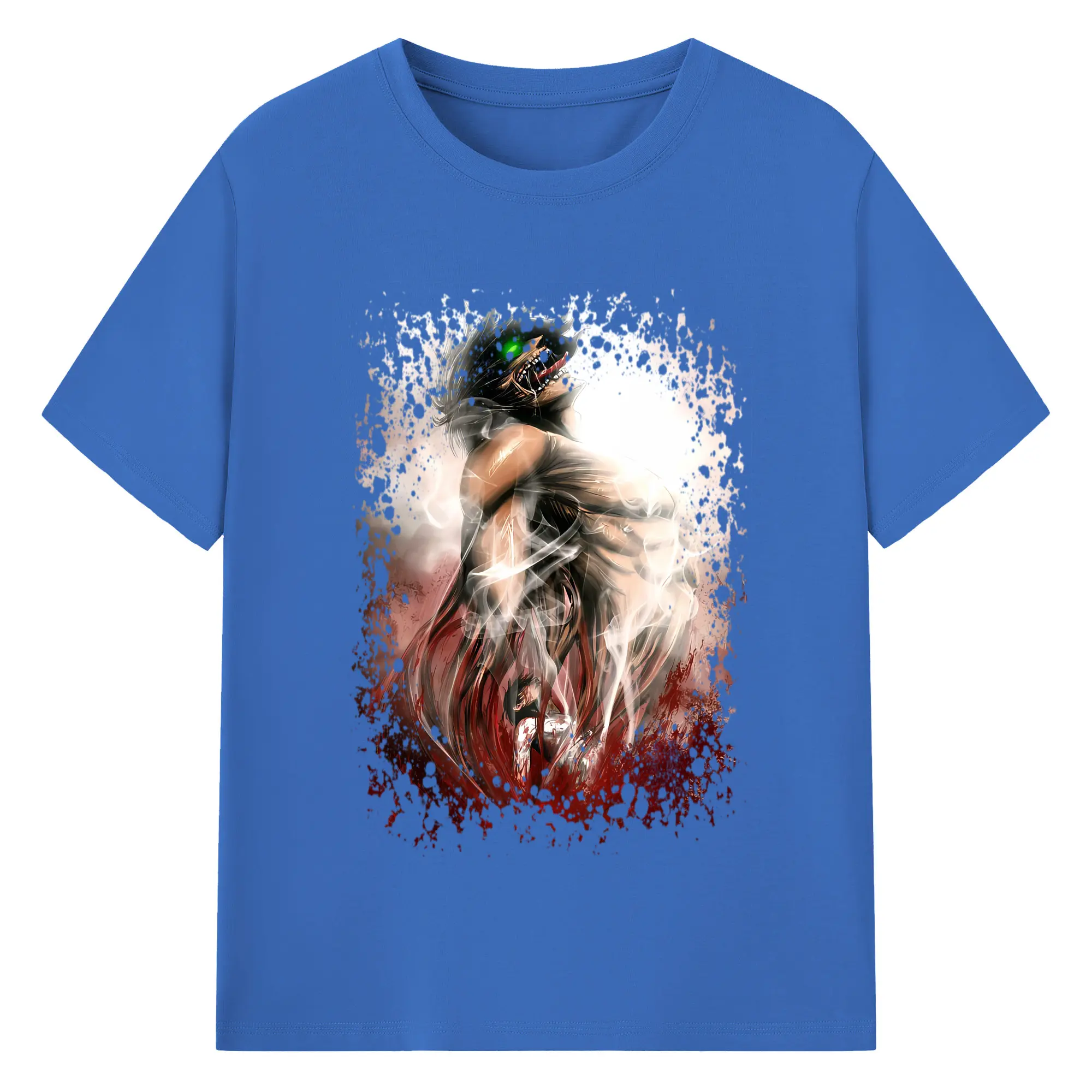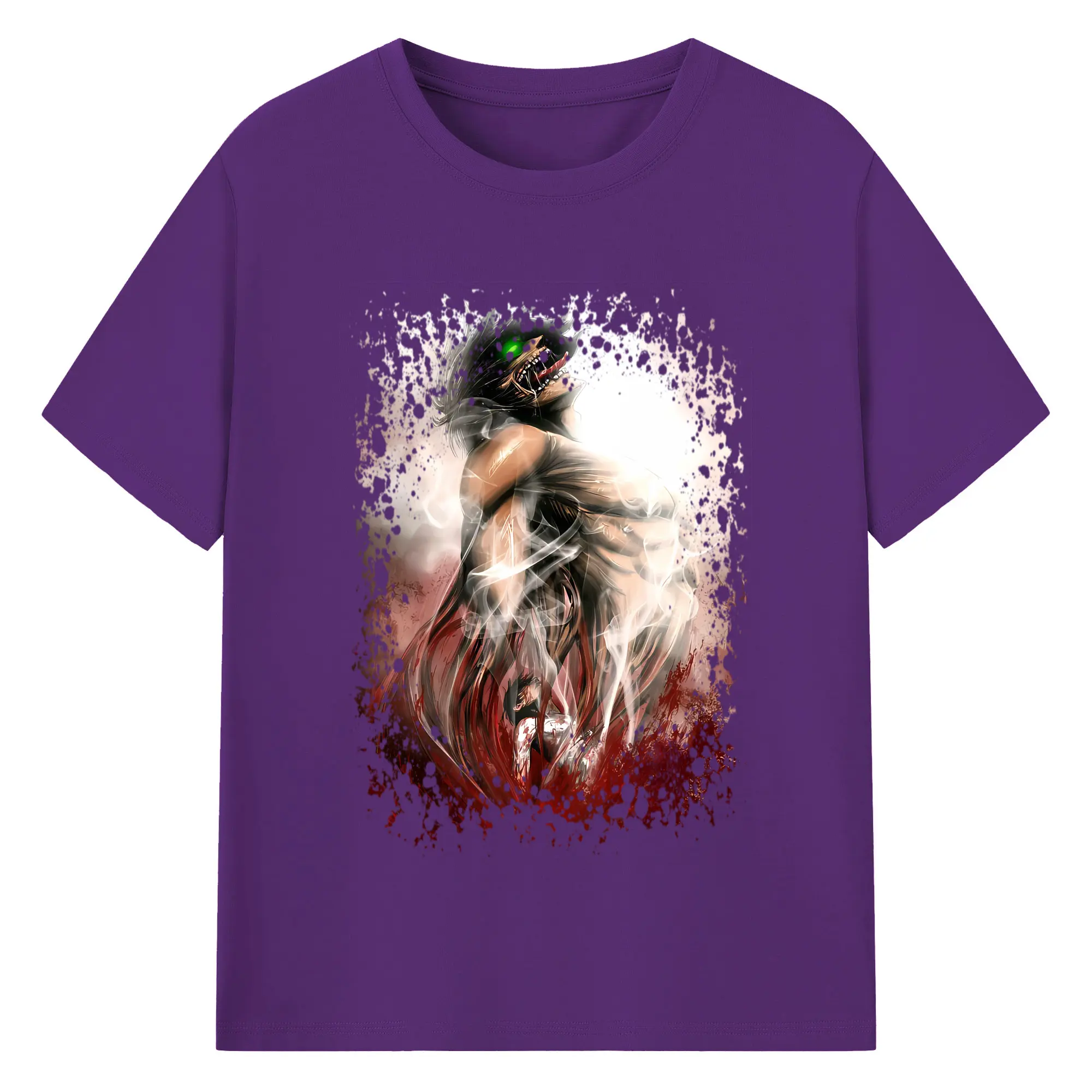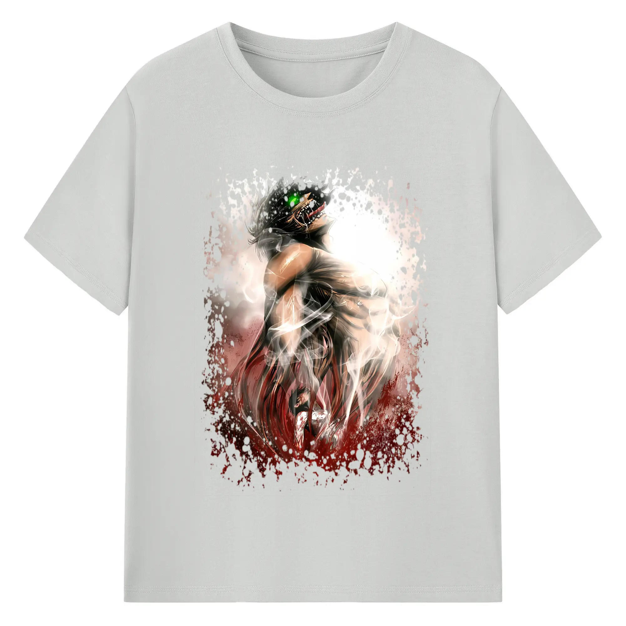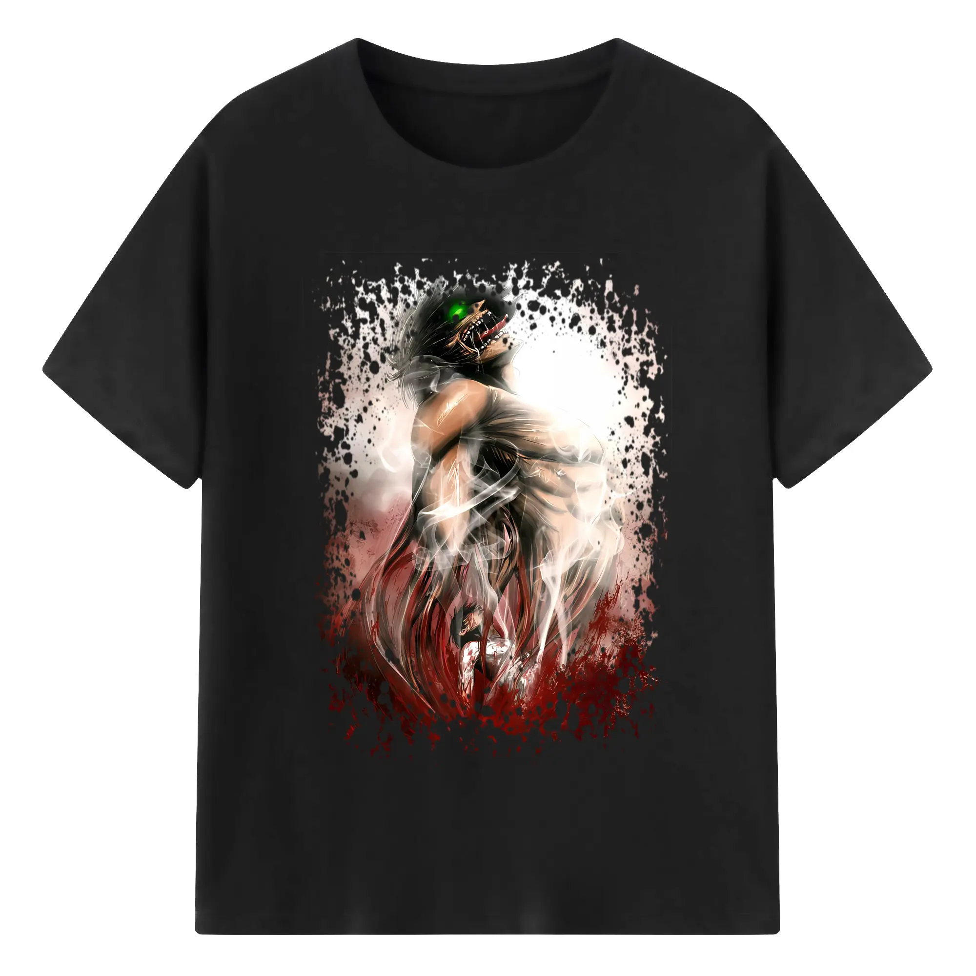 進撃の巨人 グッズ エレン・イェーガー - 綿100% 半袖Tシャツ ・ バックプリント ・ 快適 通気性 ・ 日常使い 散歩 スポーツ用