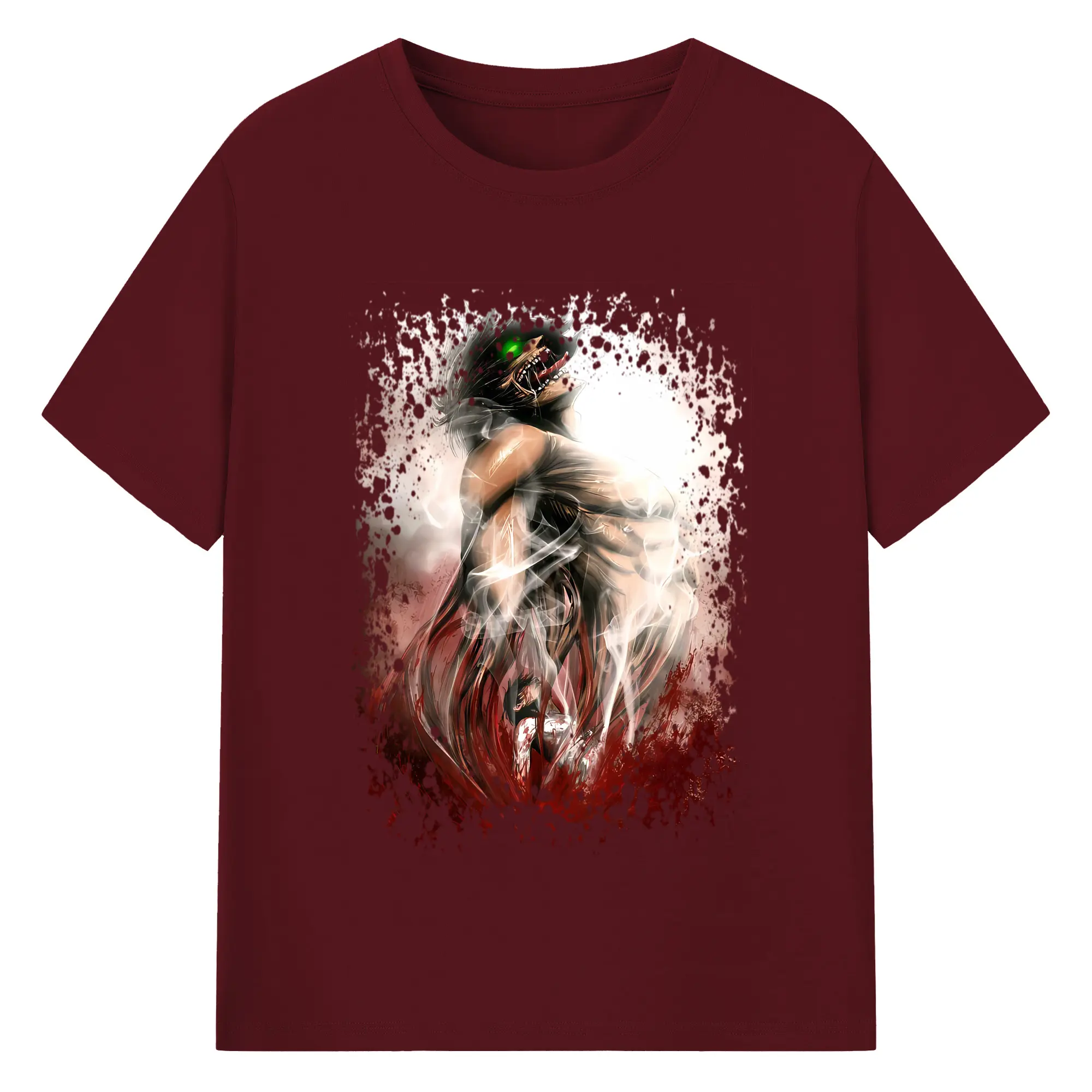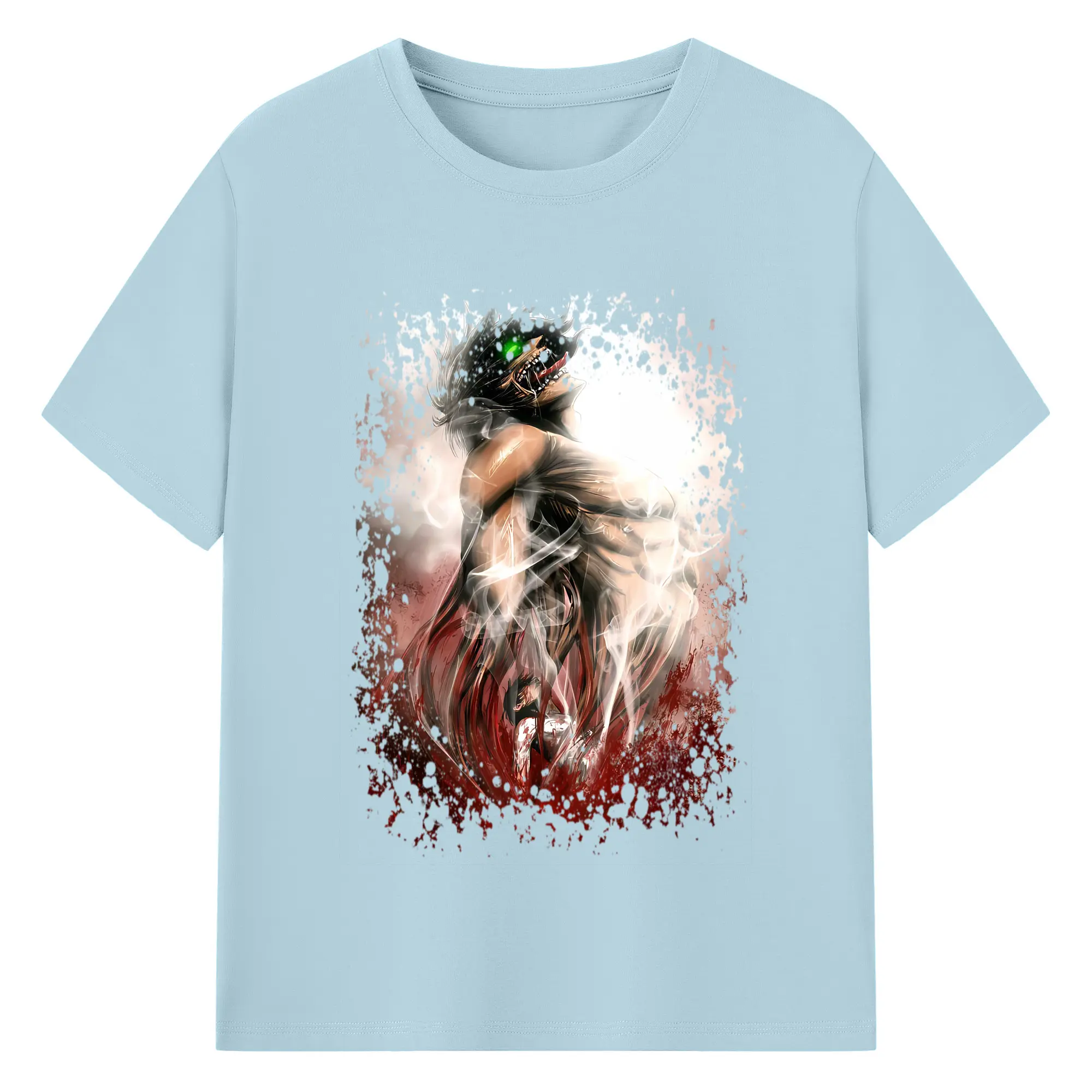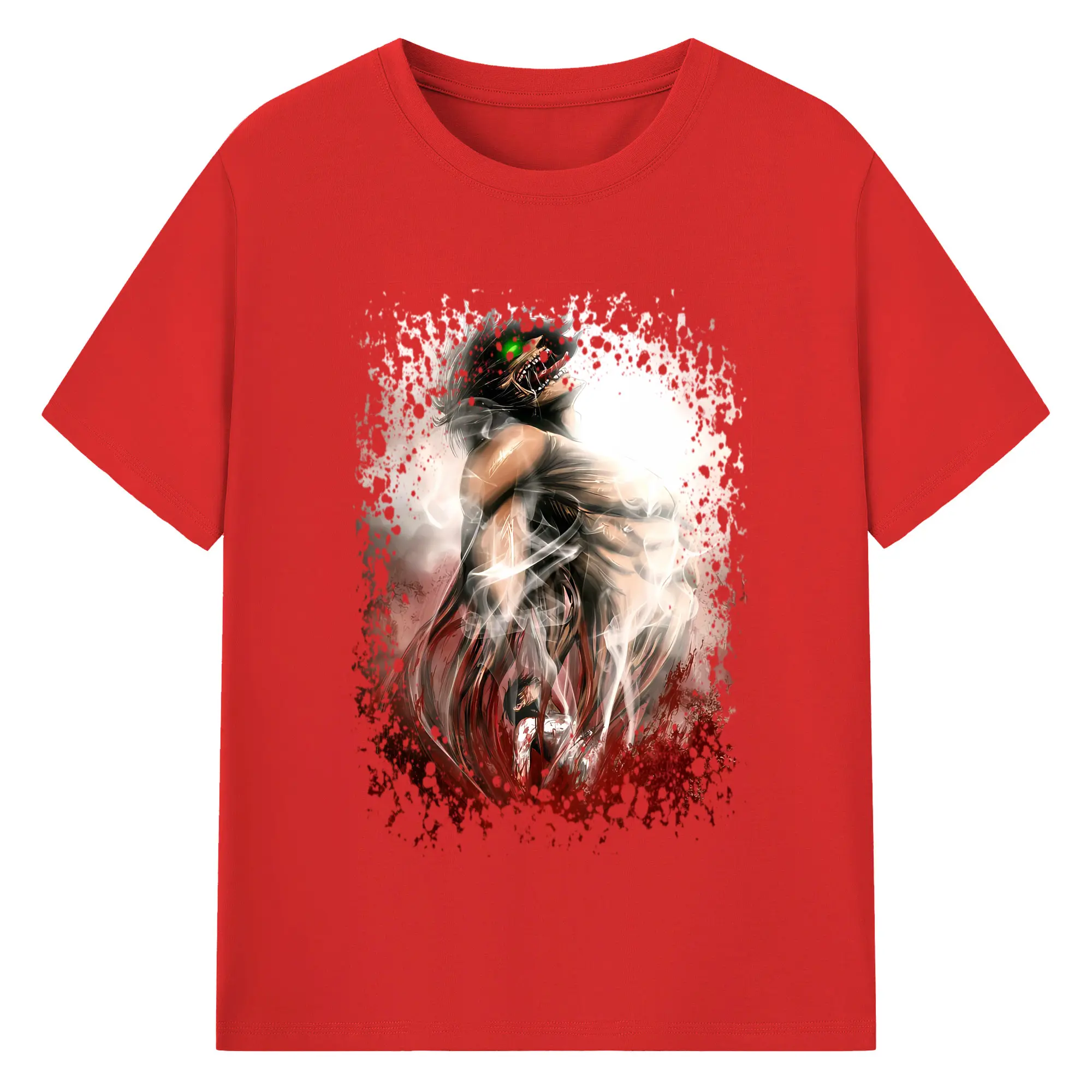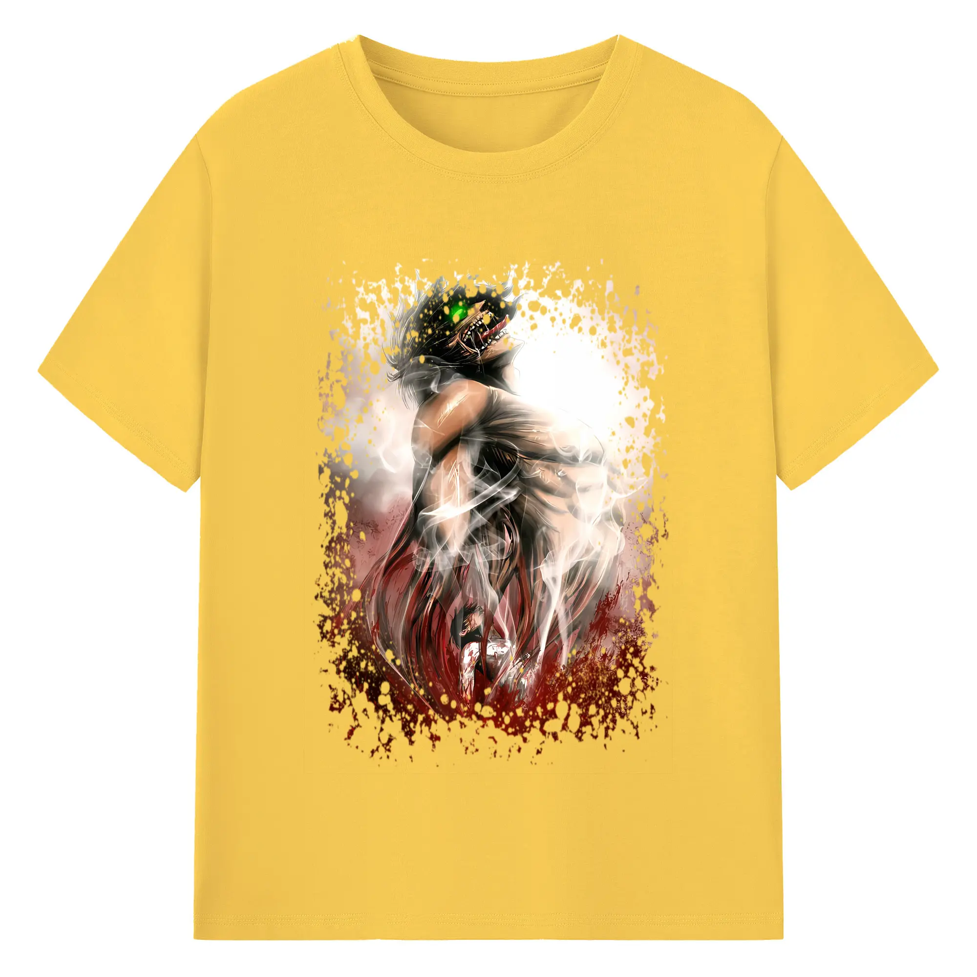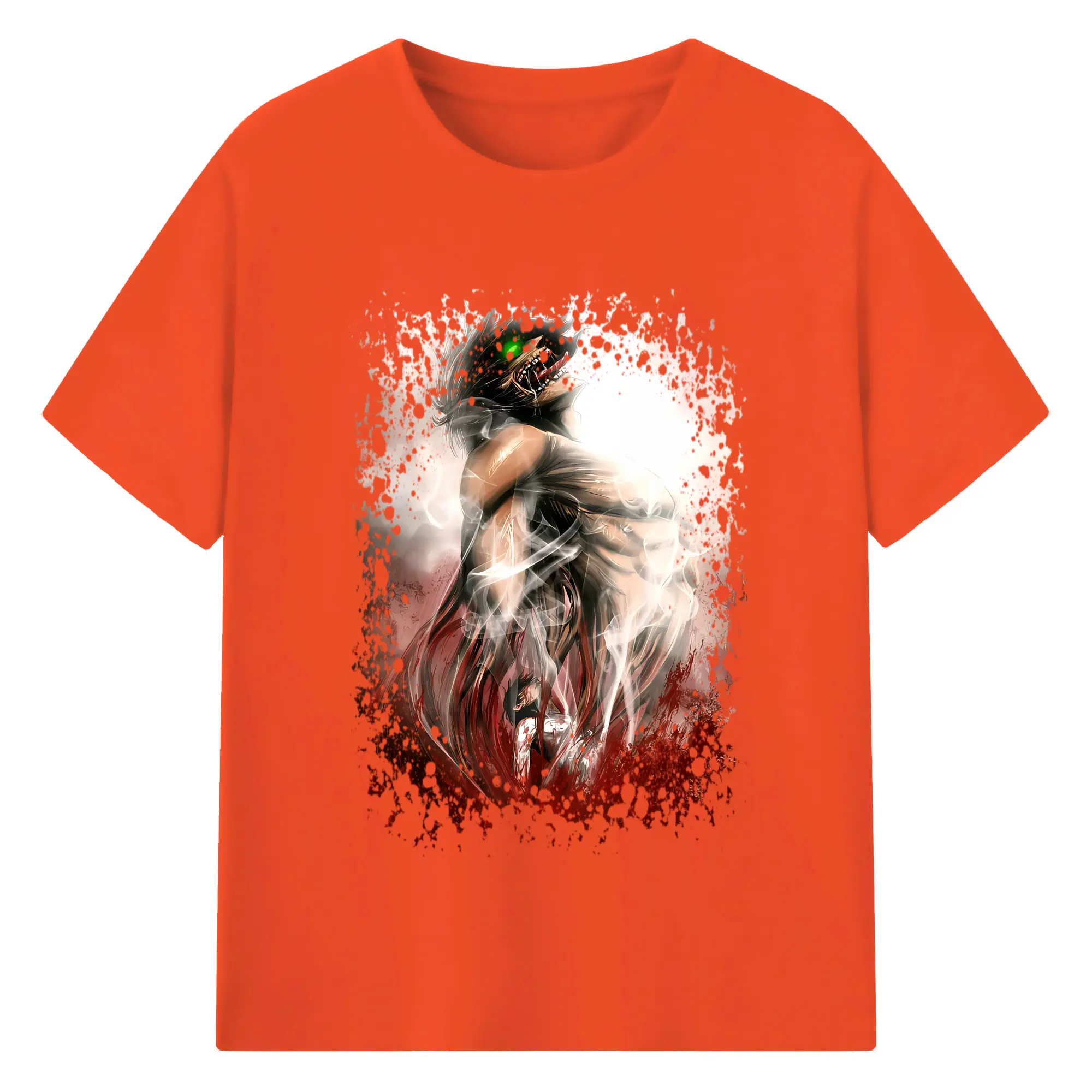 進撃の巨人 グッズ エレン・イェーガー - 綿100% 半袖Tシャツ ・ バックプリント ・ 快適 通気性 ・ 日常使い 散歩 スポーツ用