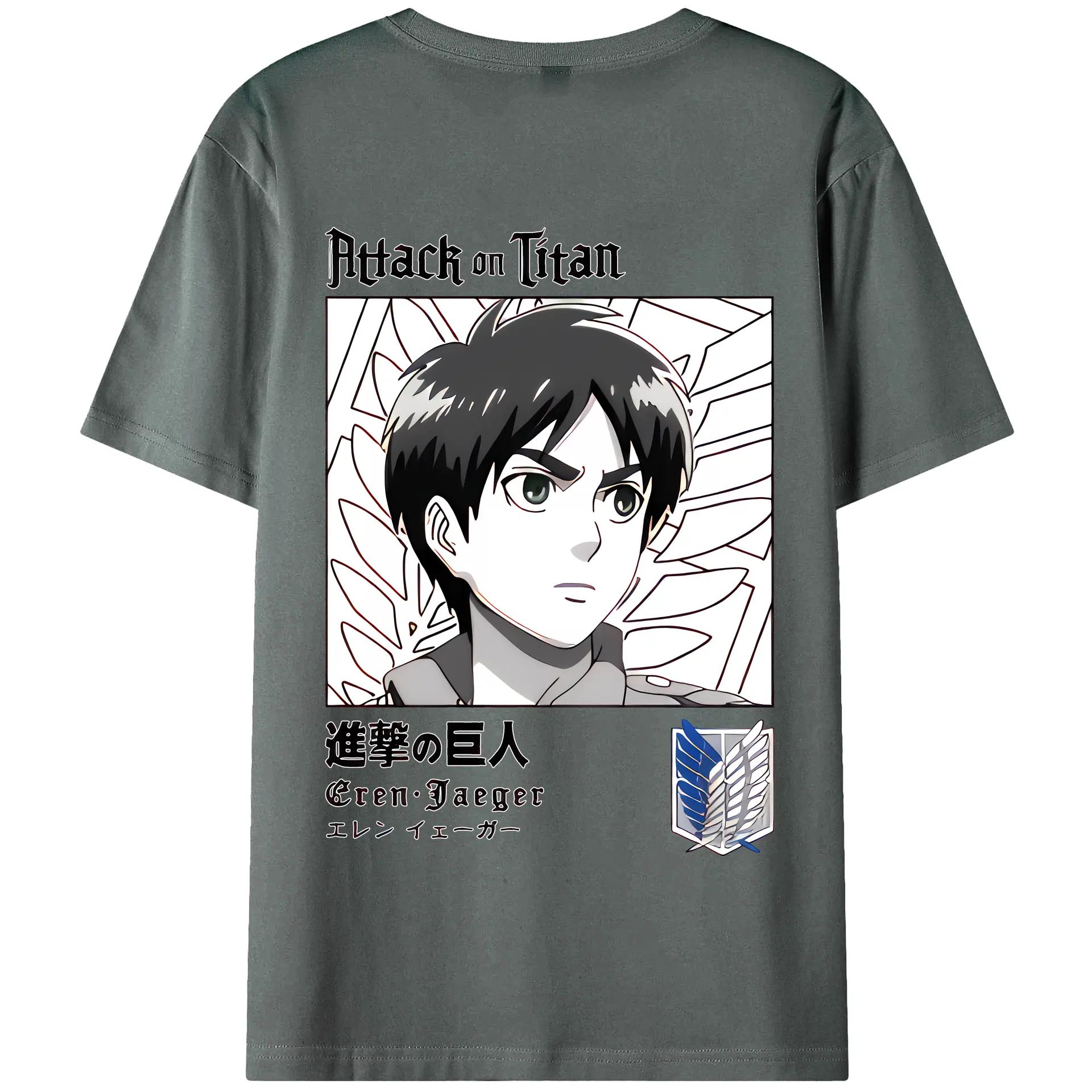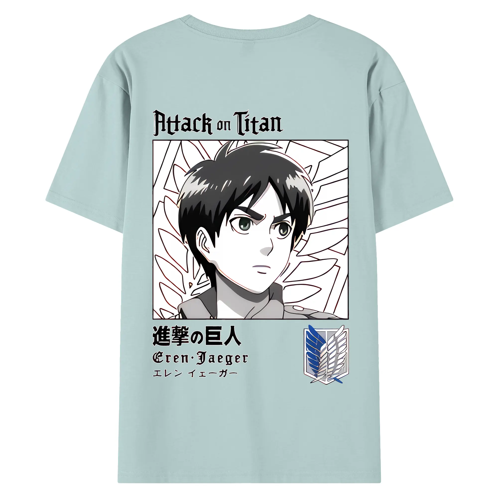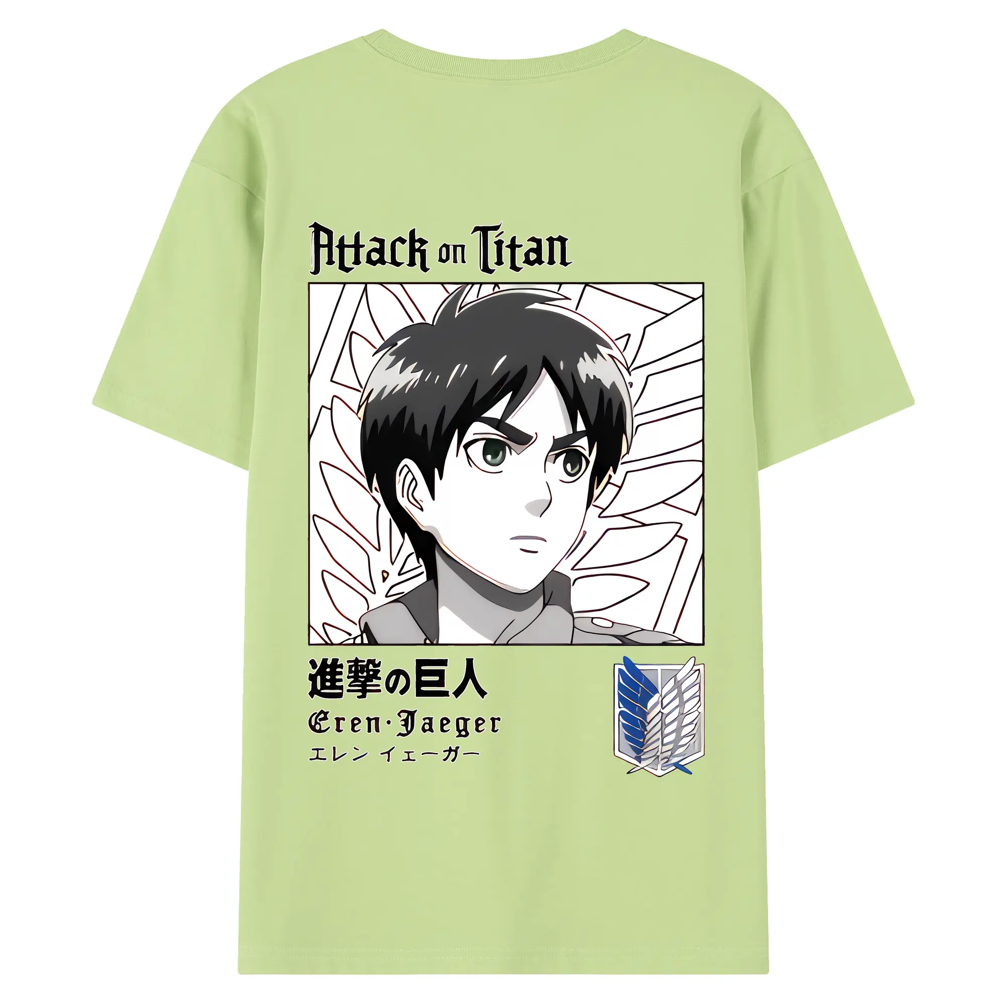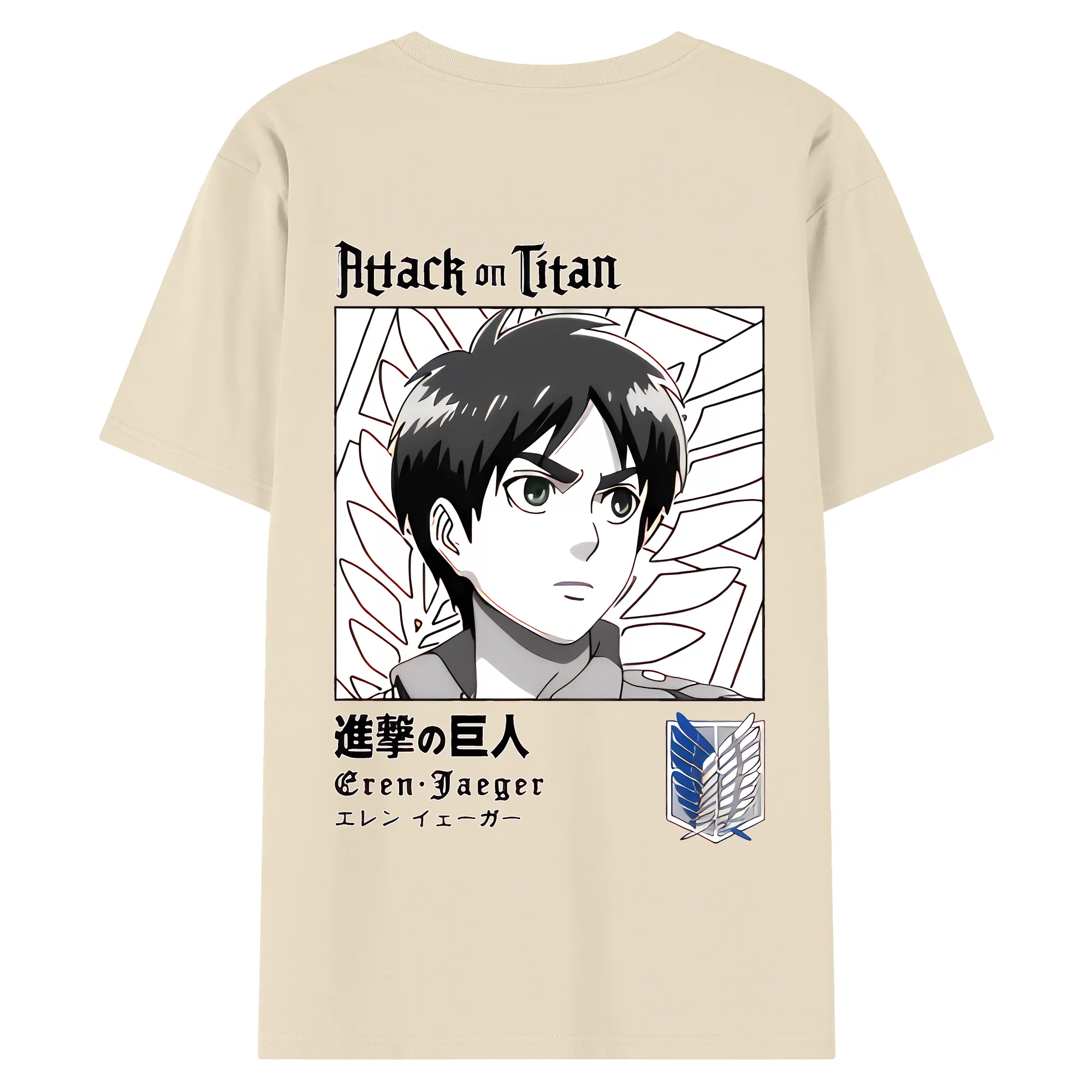 進撃の巨人 グッズ エレン・イェーガー - 綿100% ヴィンテージ風 半袖Tシャツ ・ 背面プリント ・ 柔らか肌触り ・ 通気性 快適 ・ スポーツ カジュアル 外出用