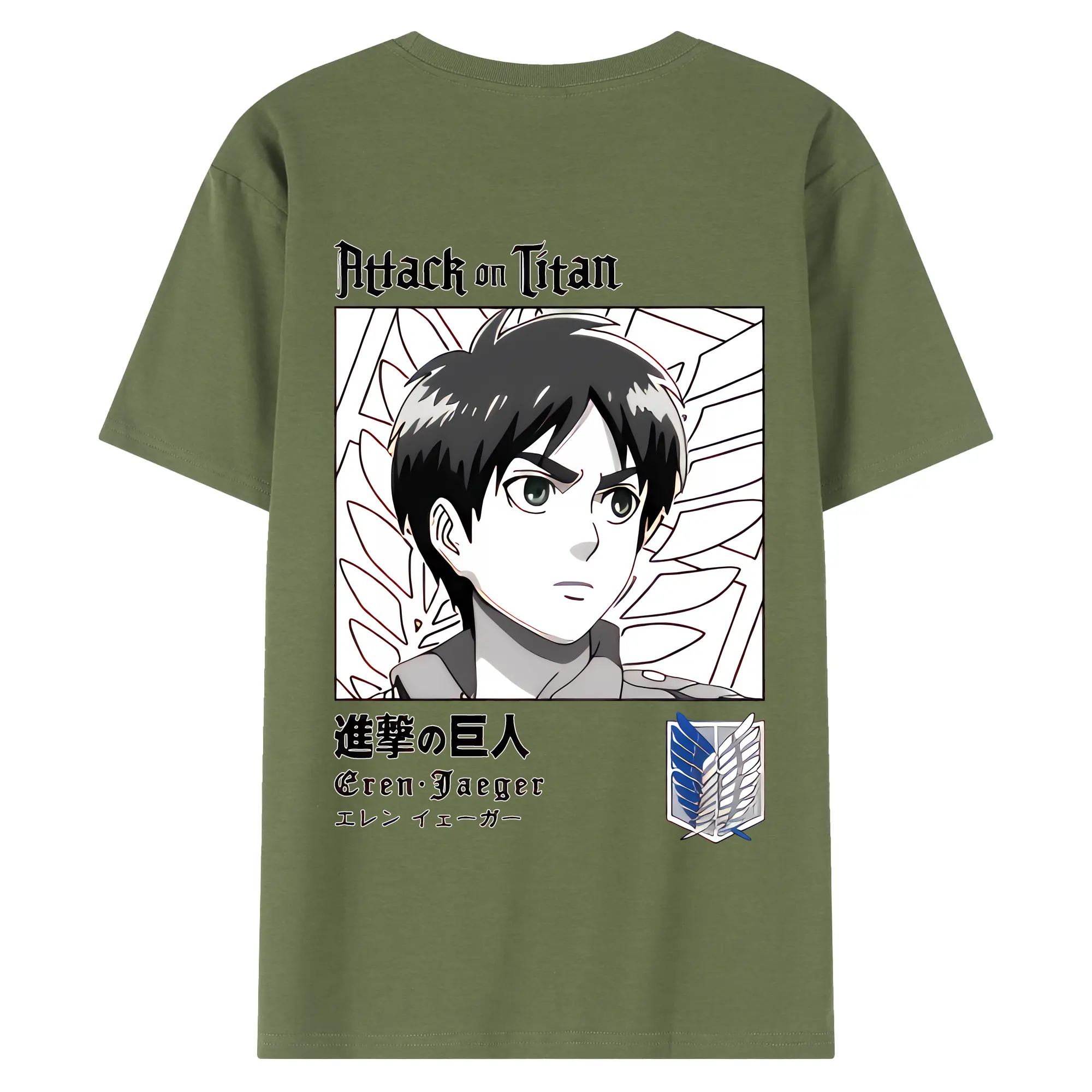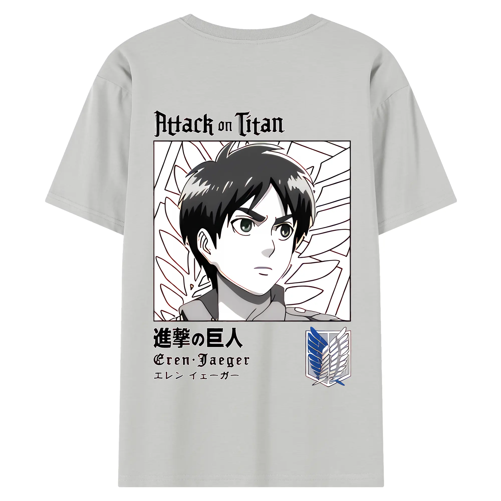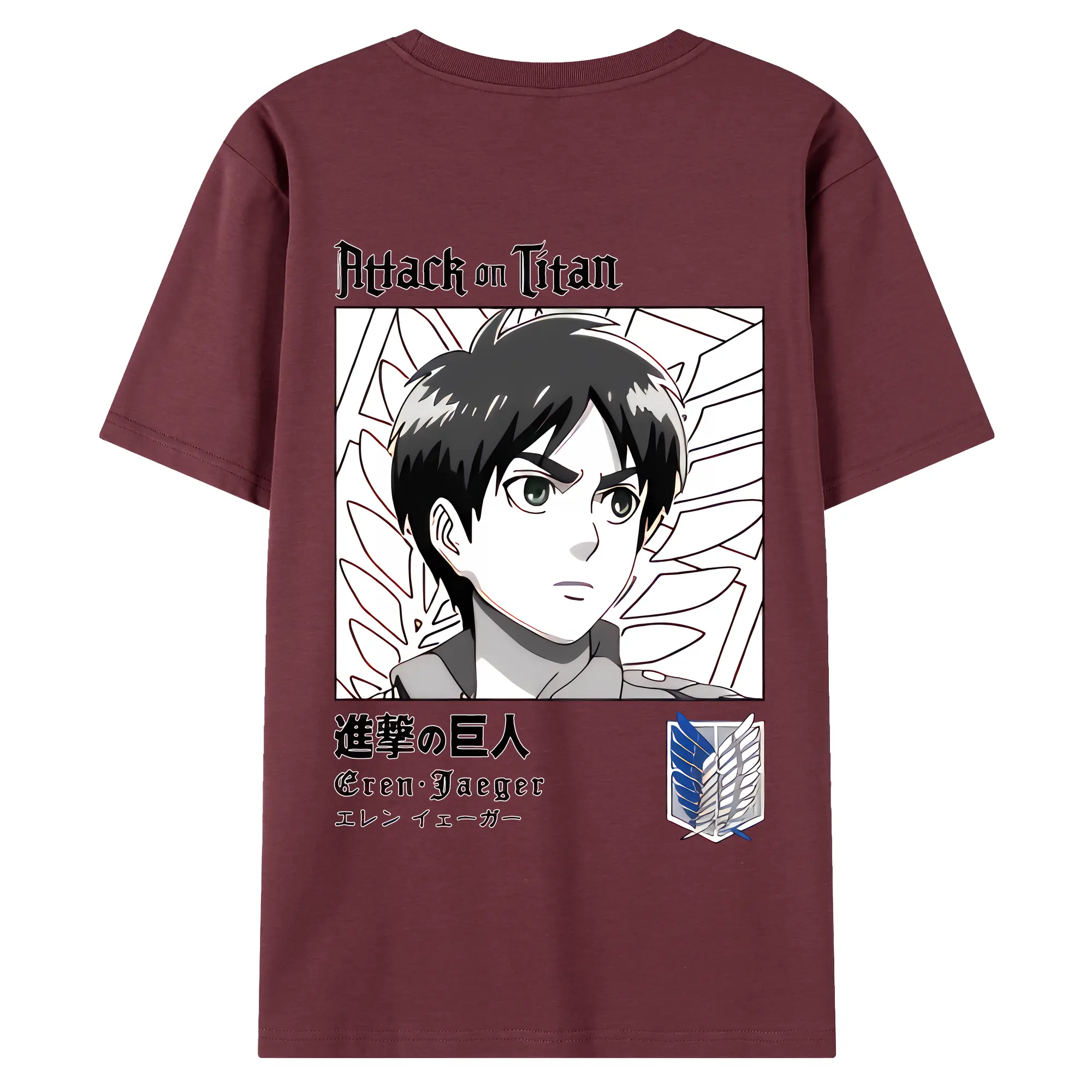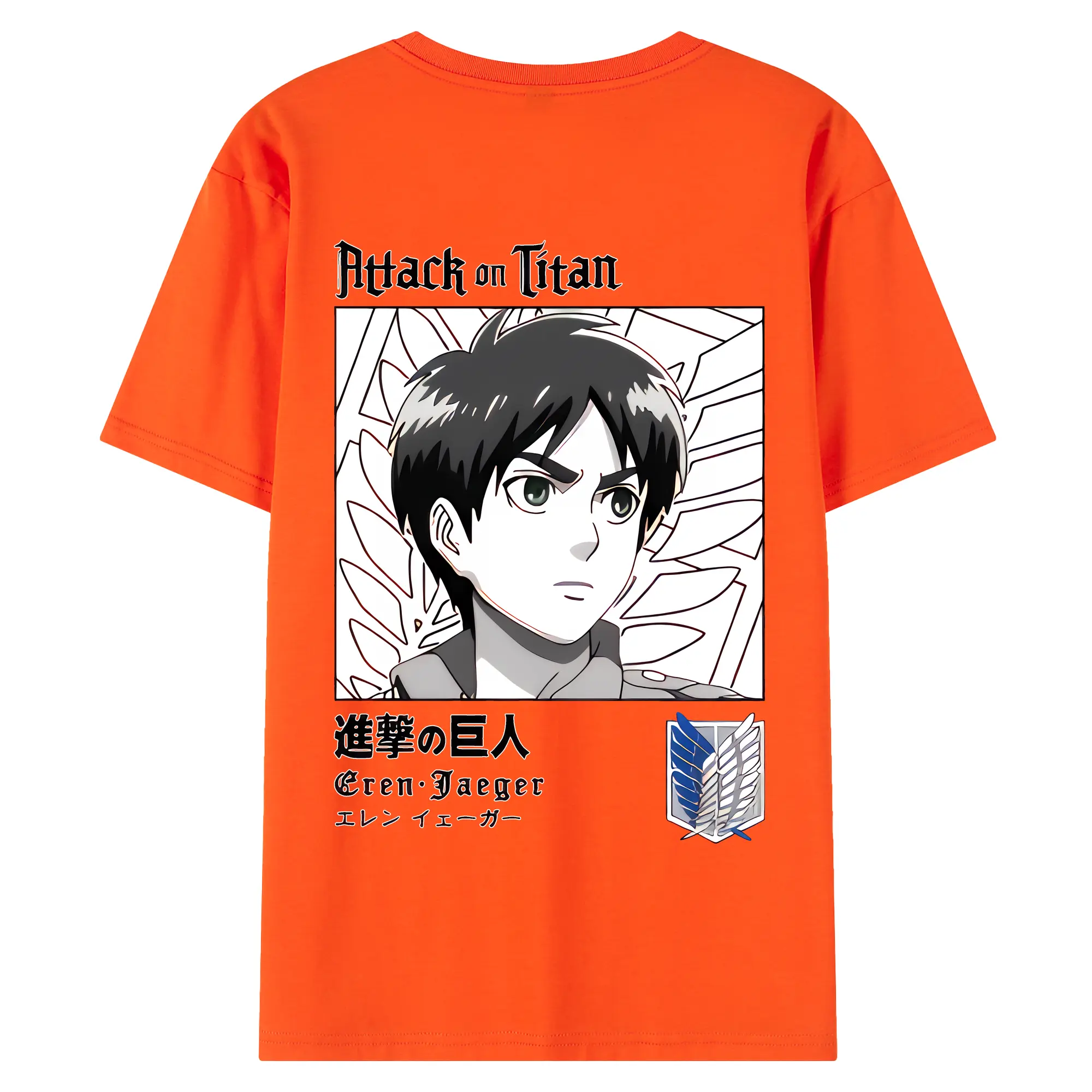進撃の巨人 グッズ エレン・イェーガー - 綿100% ヴィンテージ風 半袖Tシャツ ・ 背面プリント ・ 柔らか肌触り ・ 通気性 快適 ・ スポーツ カジュアル 外出用