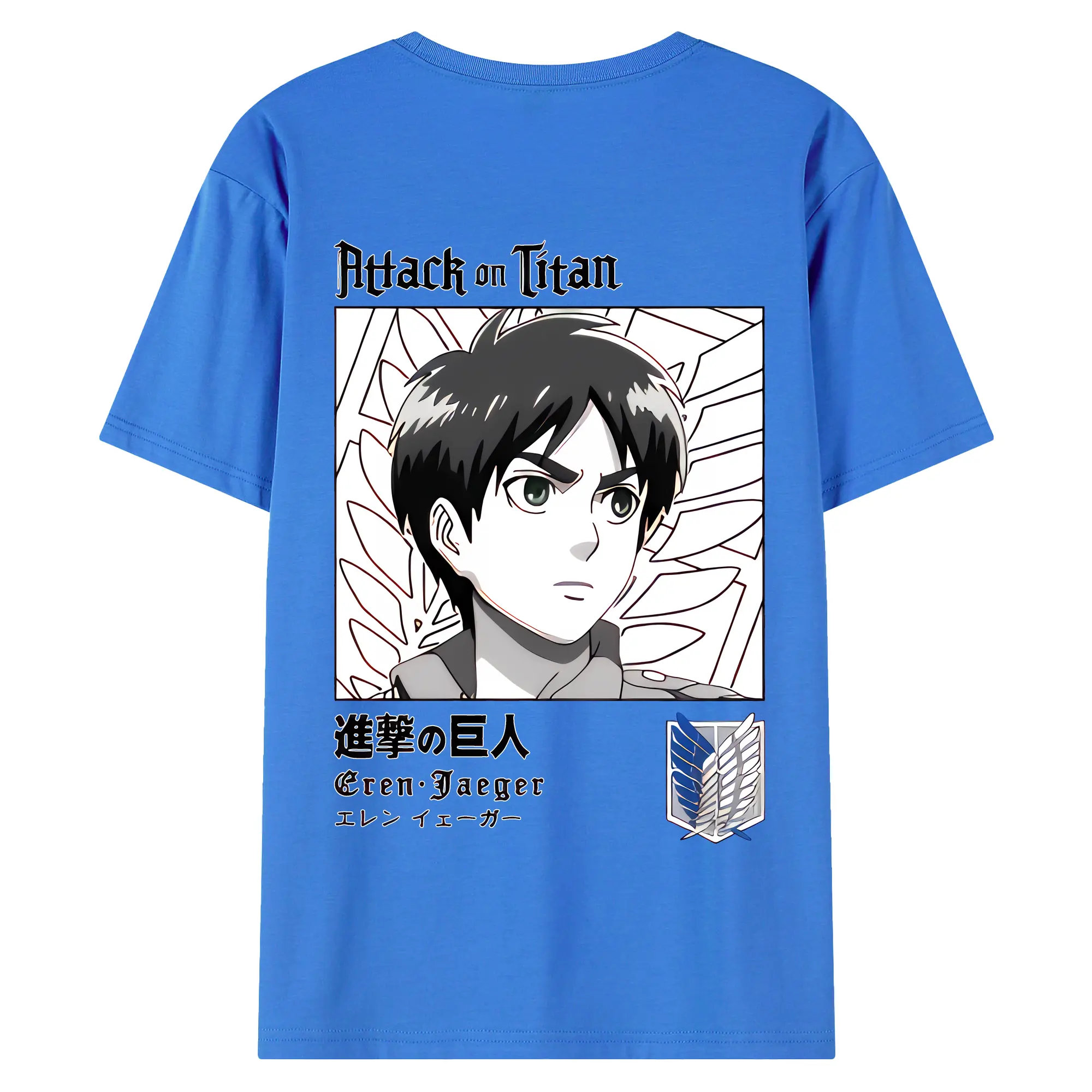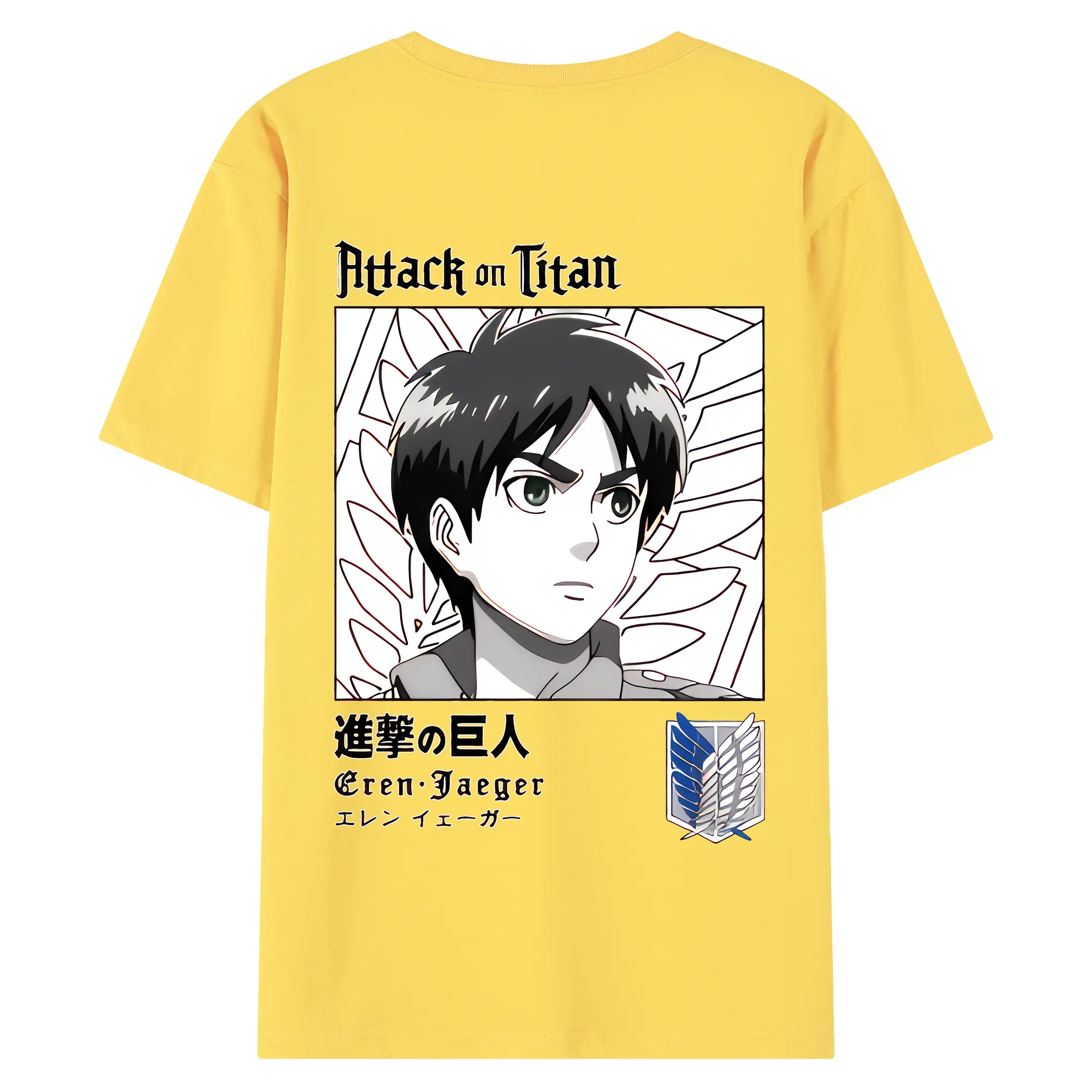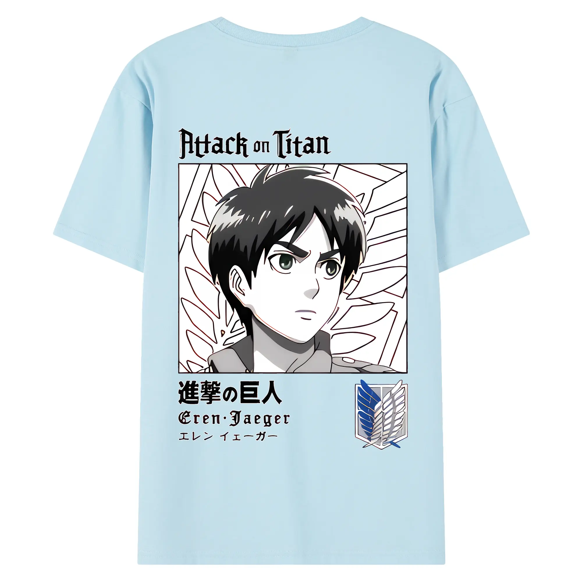 進撃の巨人 グッズ エレン・イェーガー - 綿100% 半袖Tシャツ ・ フロントプリント ・ 快適 通気性 ・ 日常使い 散歩 スポーツ用