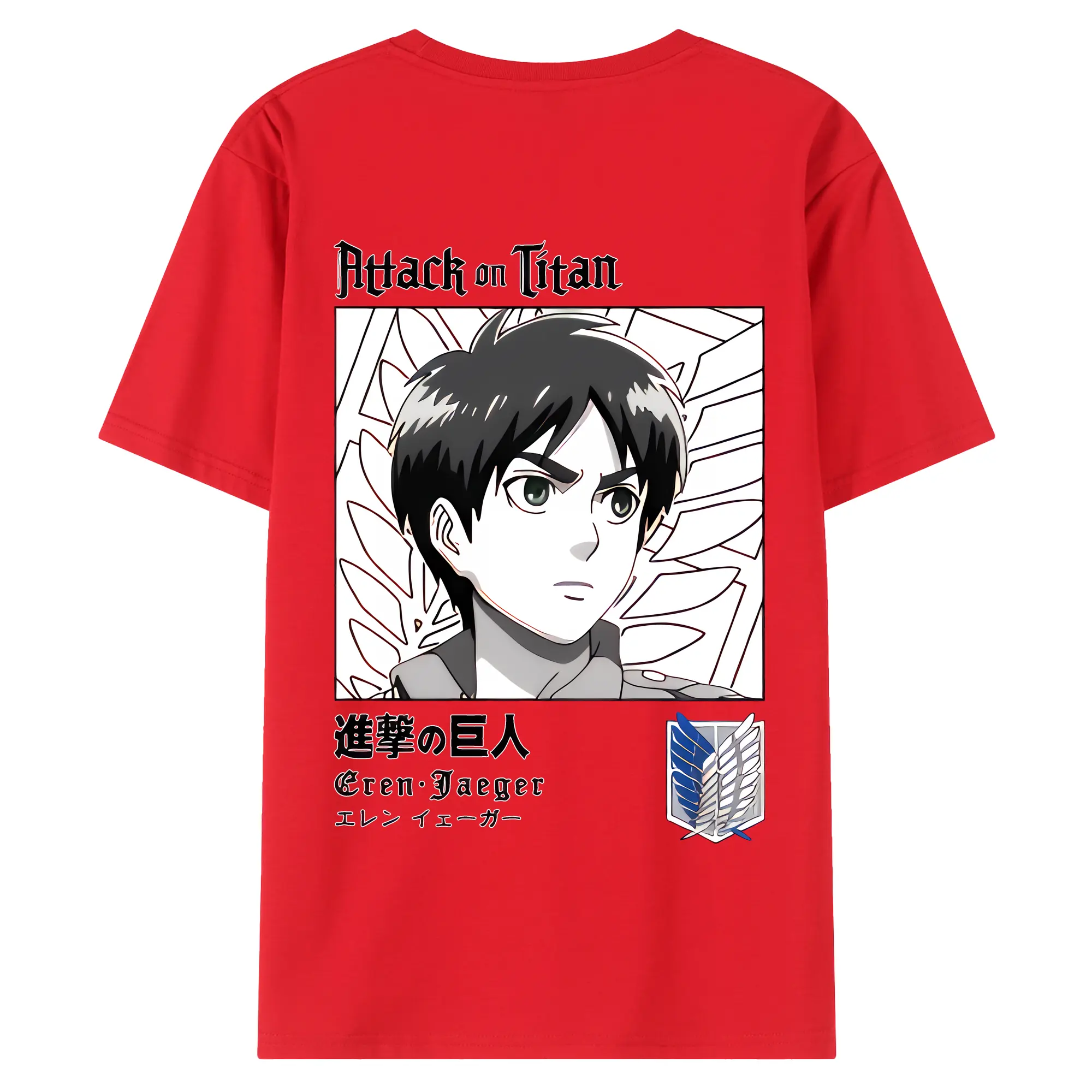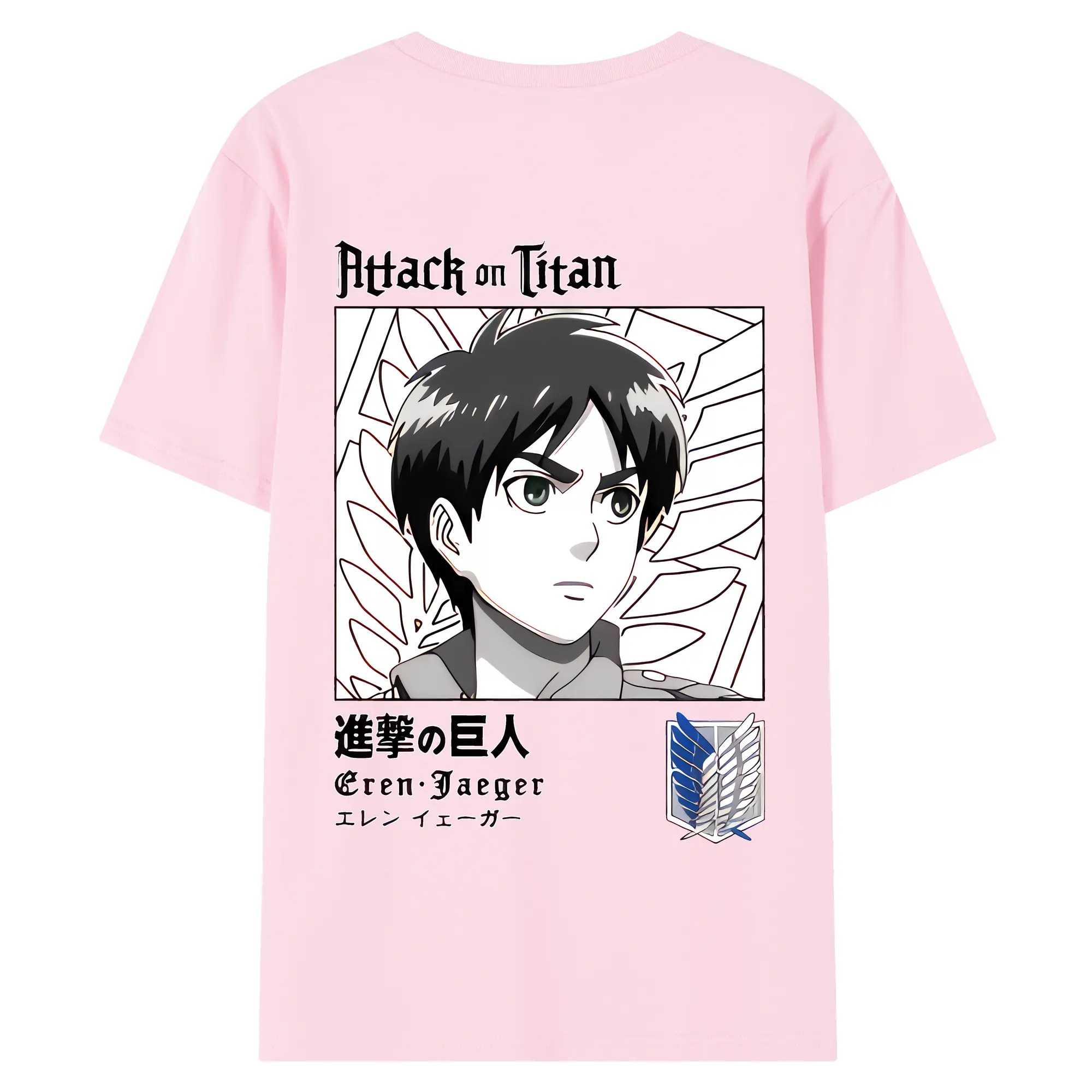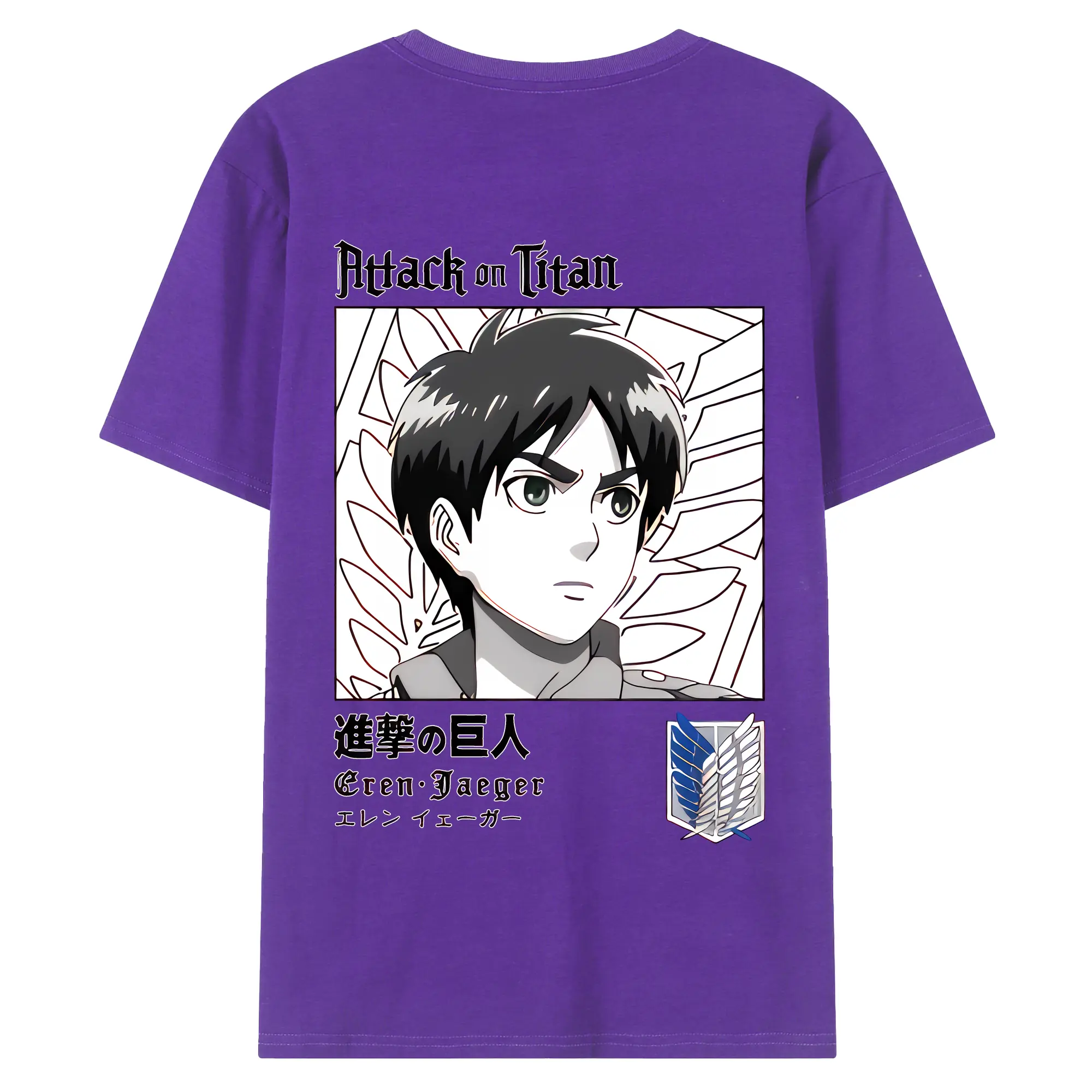 進撃の巨人 グッズ エレン・イェーガー - 綿100% 半袖Tシャツ ・ フロントプリント ・ 快適 通気性 ・ 日常使い 散歩 スポーツ用
