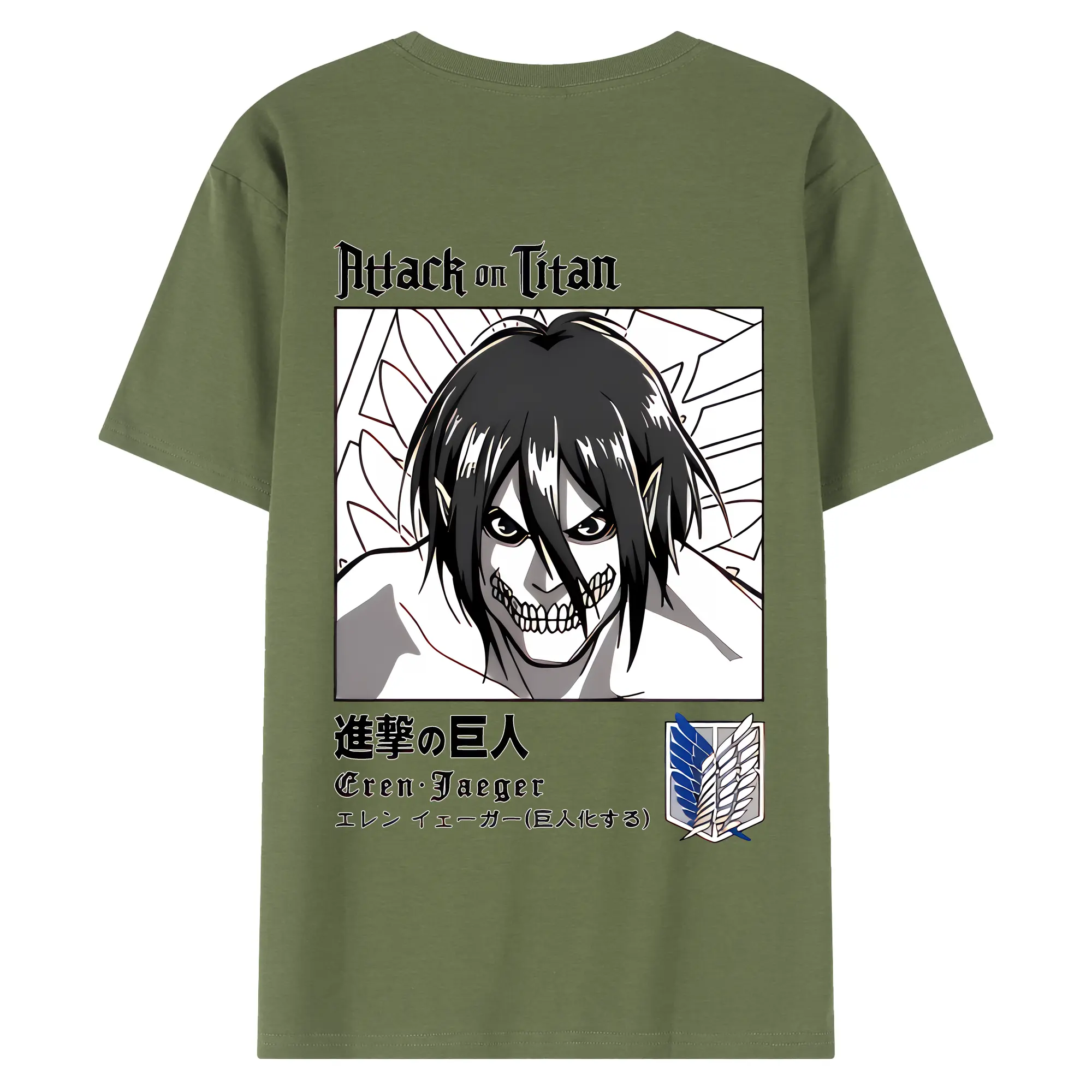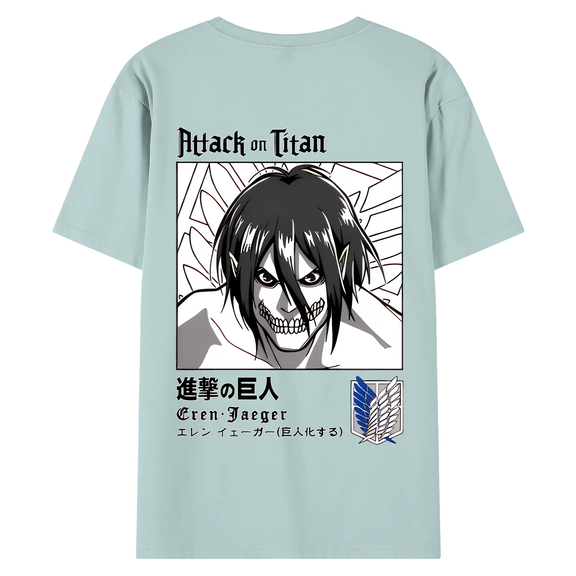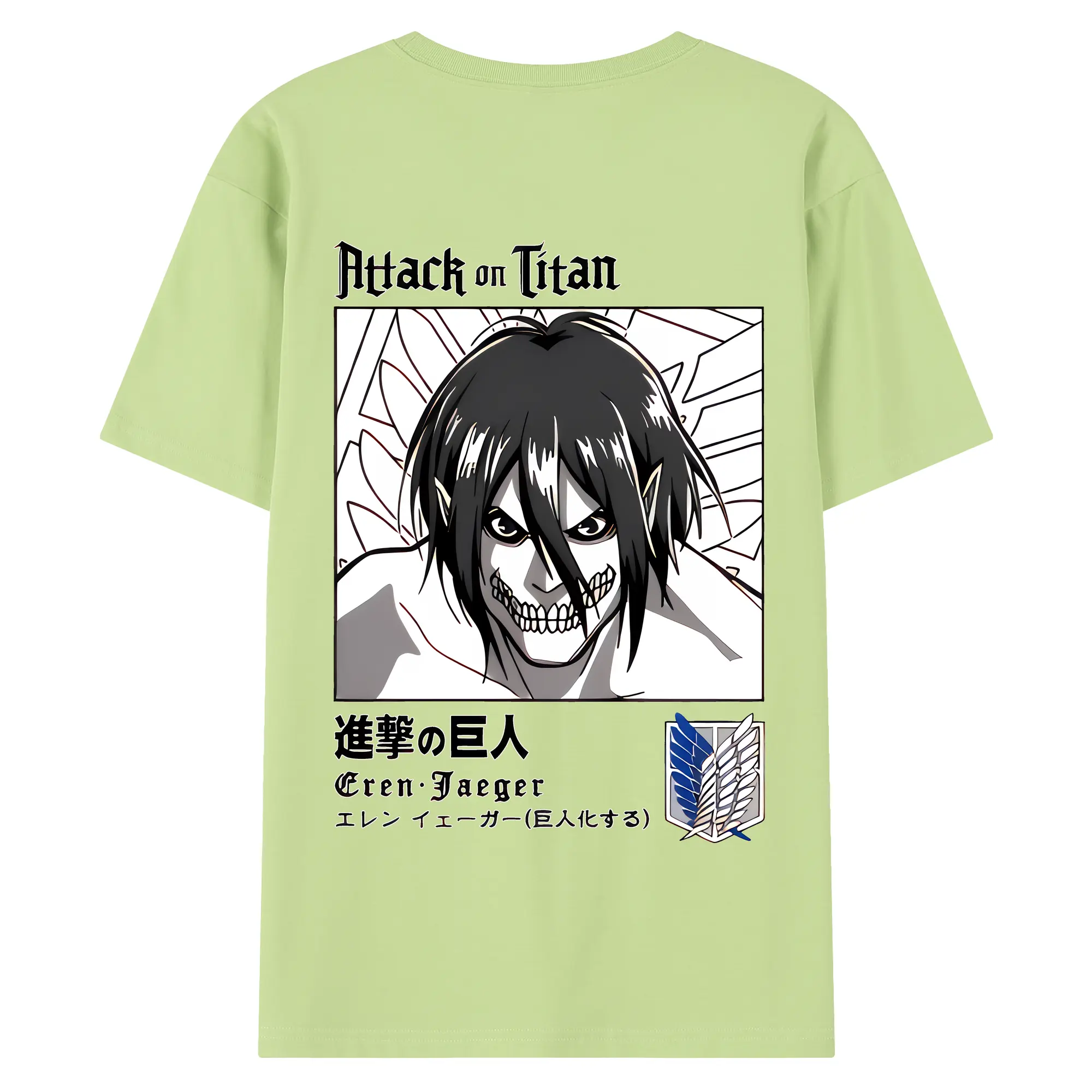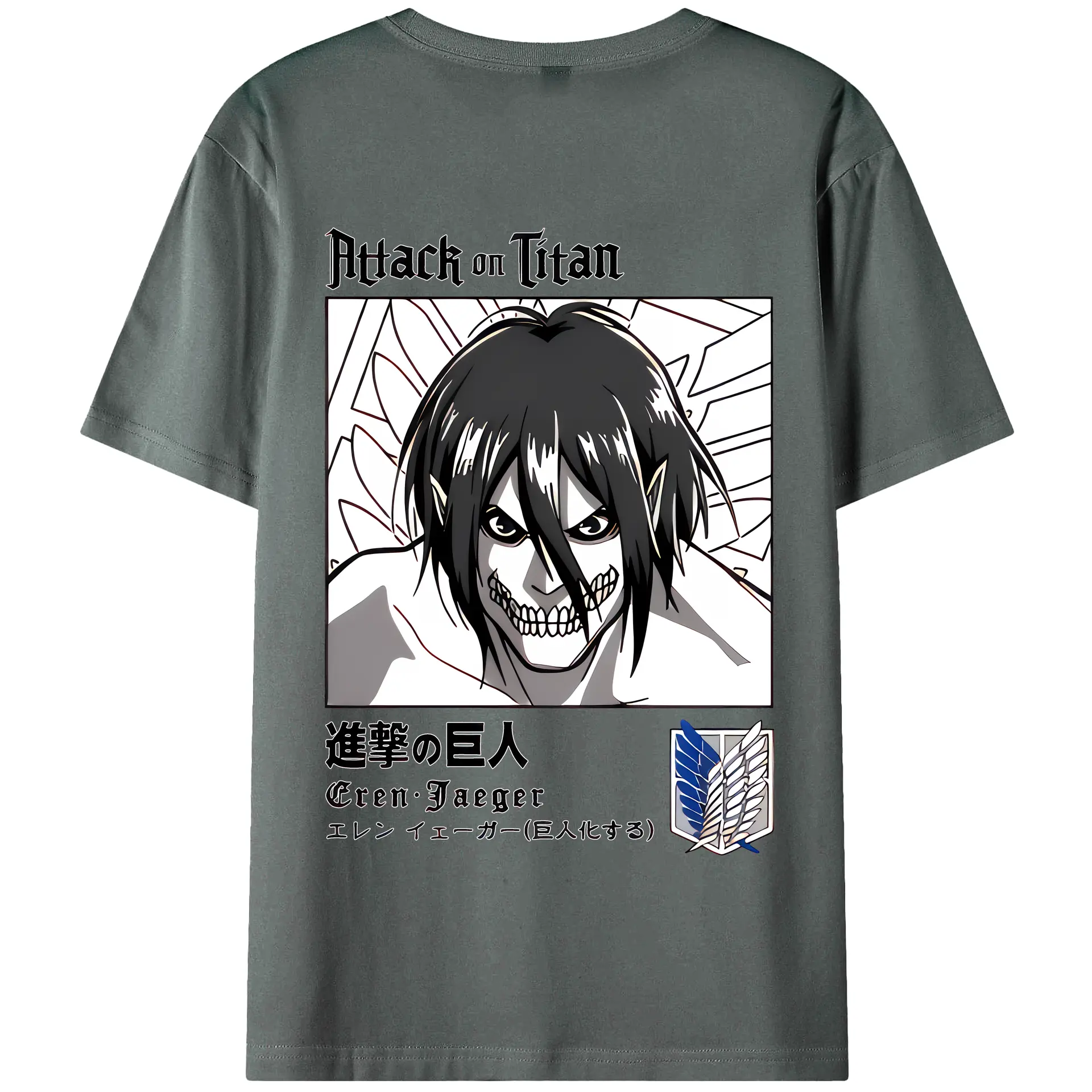 進撃の巨人 グッズ エレン・イェーガー - 綿100% ヴィンテージ風 半袖Tシャツ ・ 背面プリント ・ 柔らか肌触り ・ 通気性 快適 ・ スポーツ カジュアル 外出用